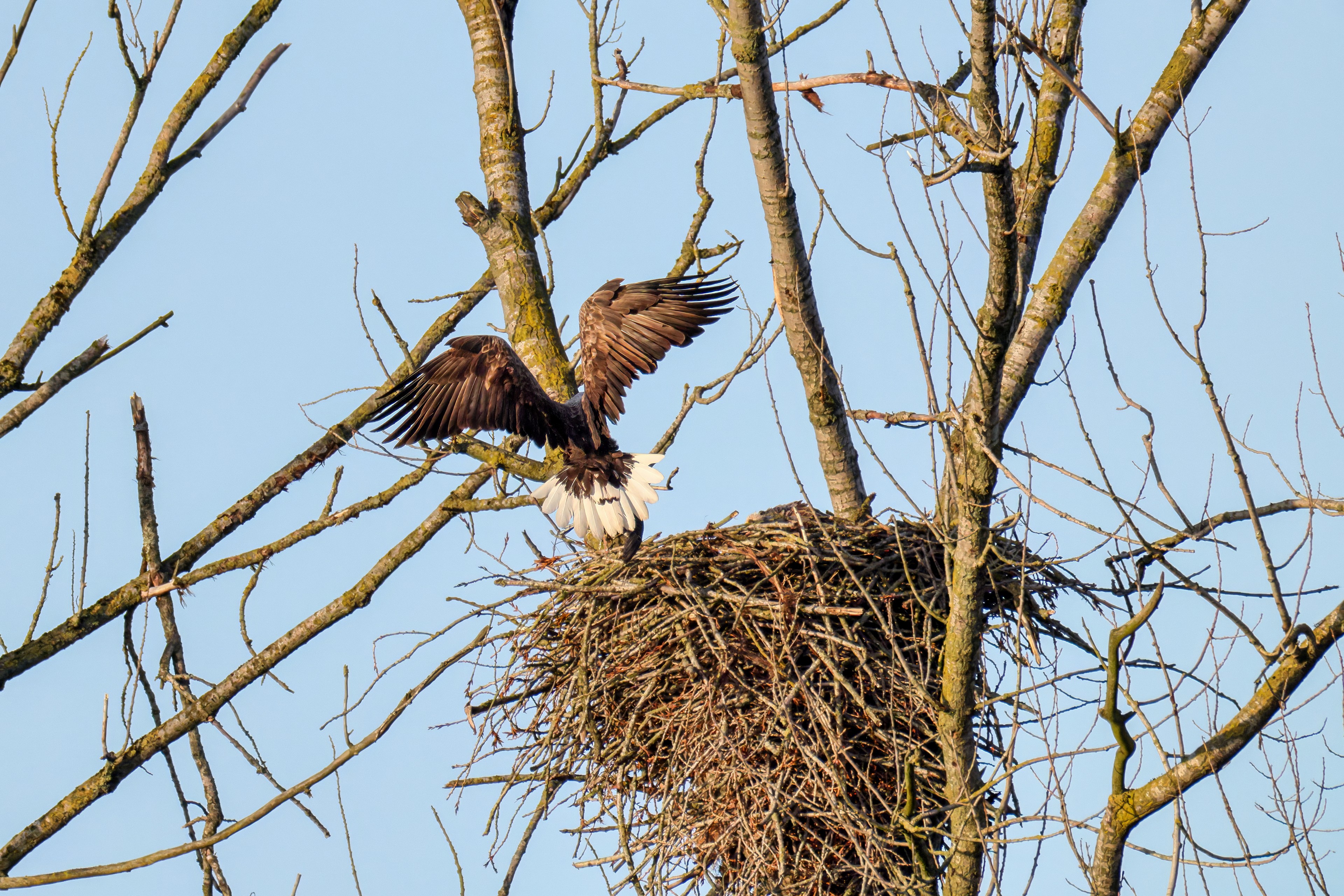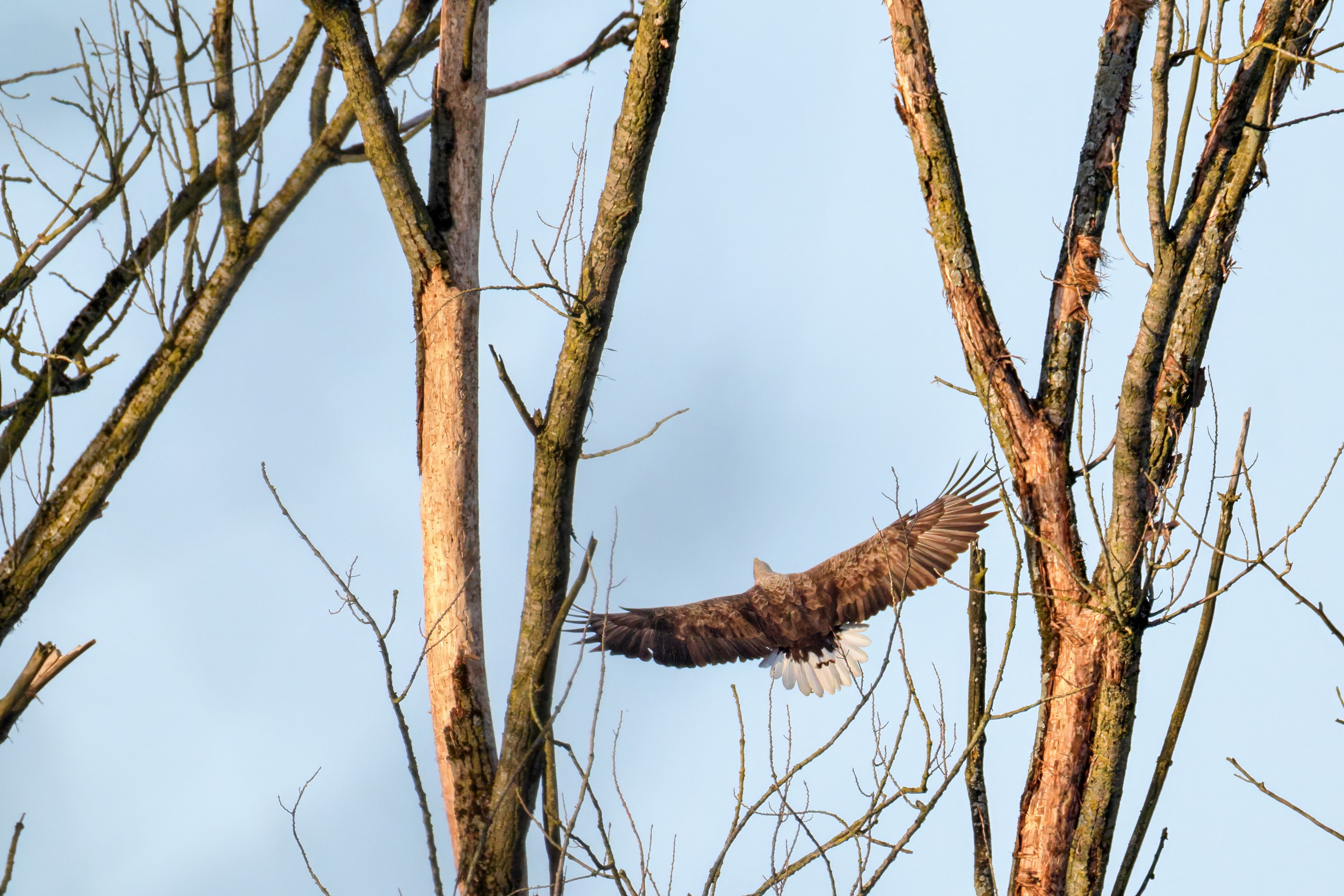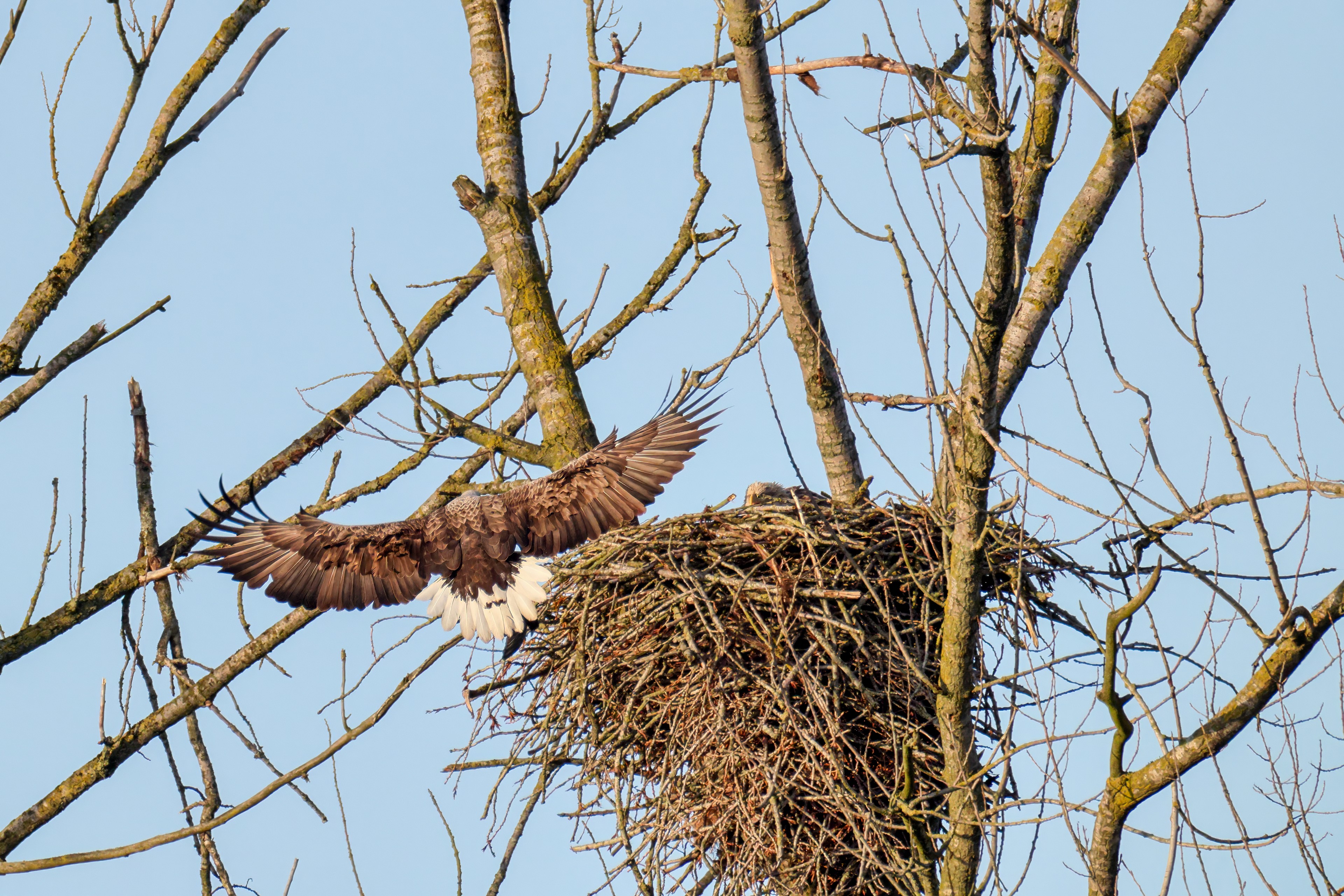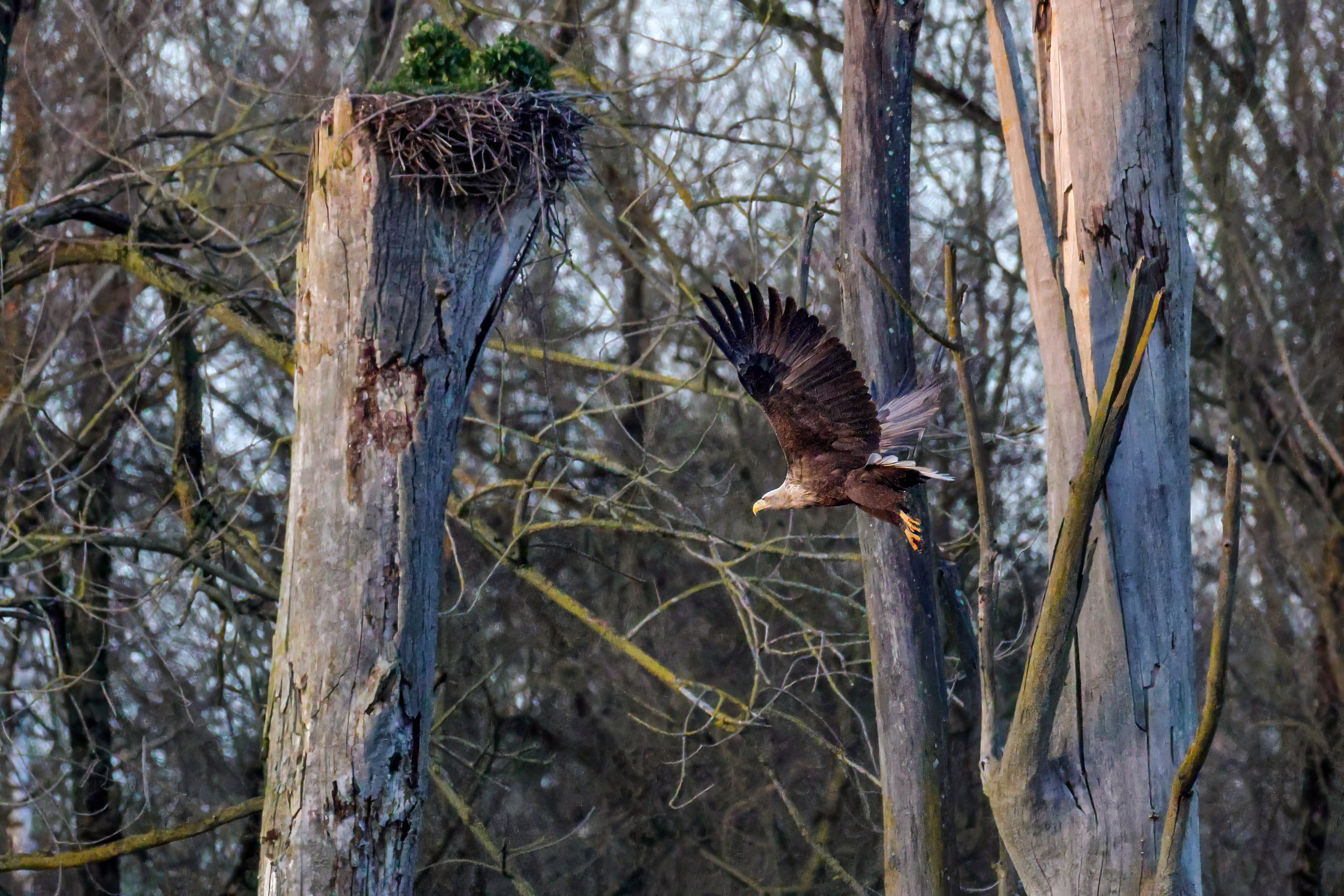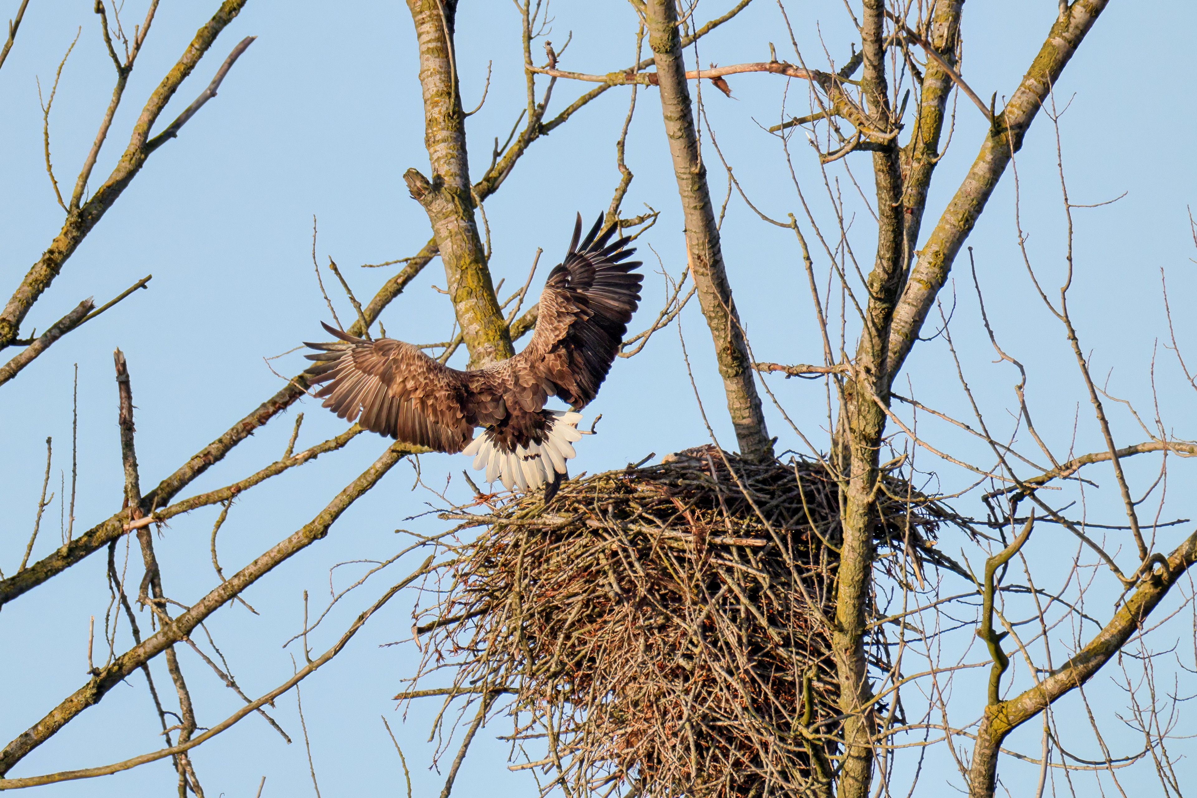 Vorbildlich sorgt das Seeadlermännchen für Nahrung, um den Nachwuchs zu versorgen