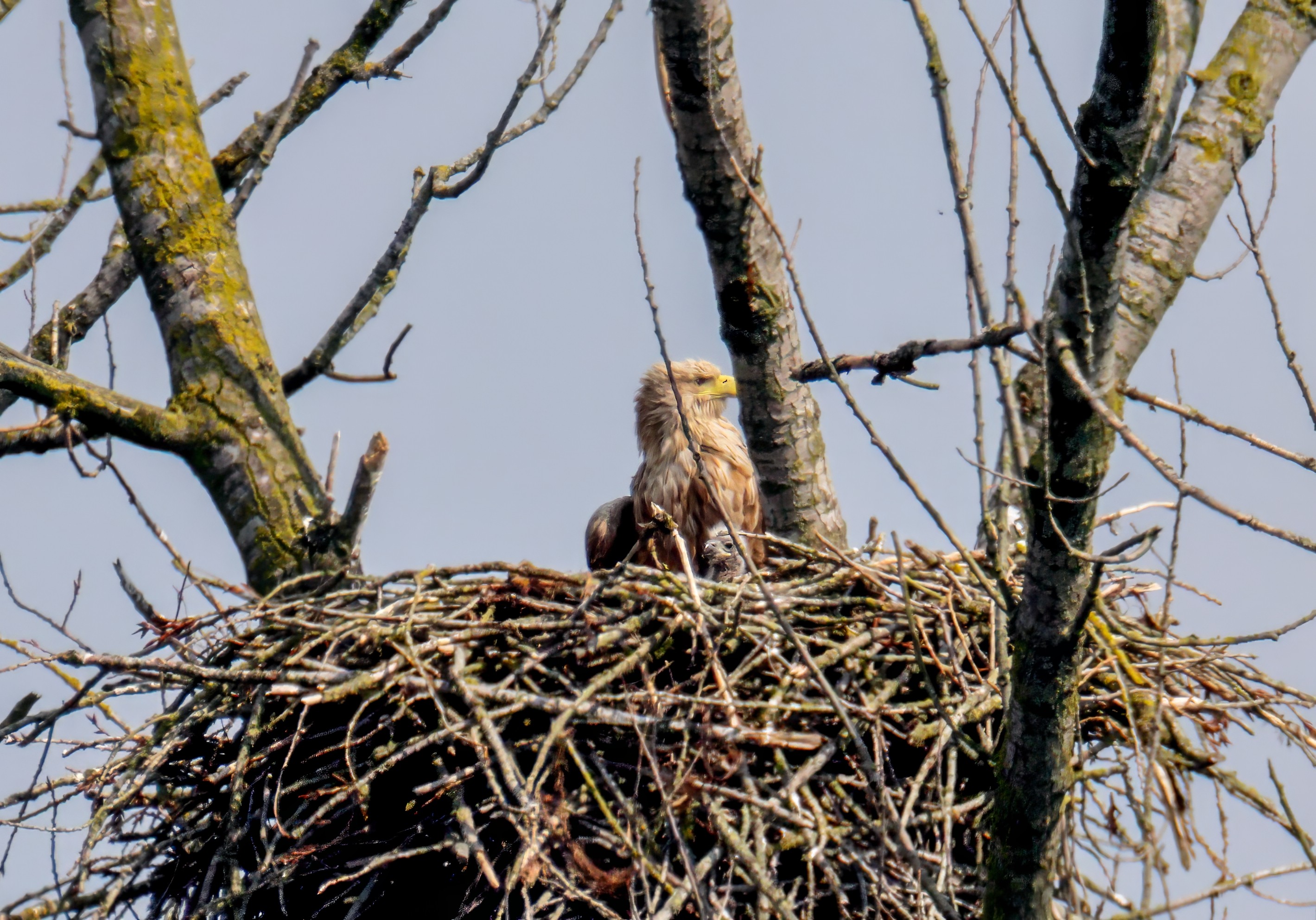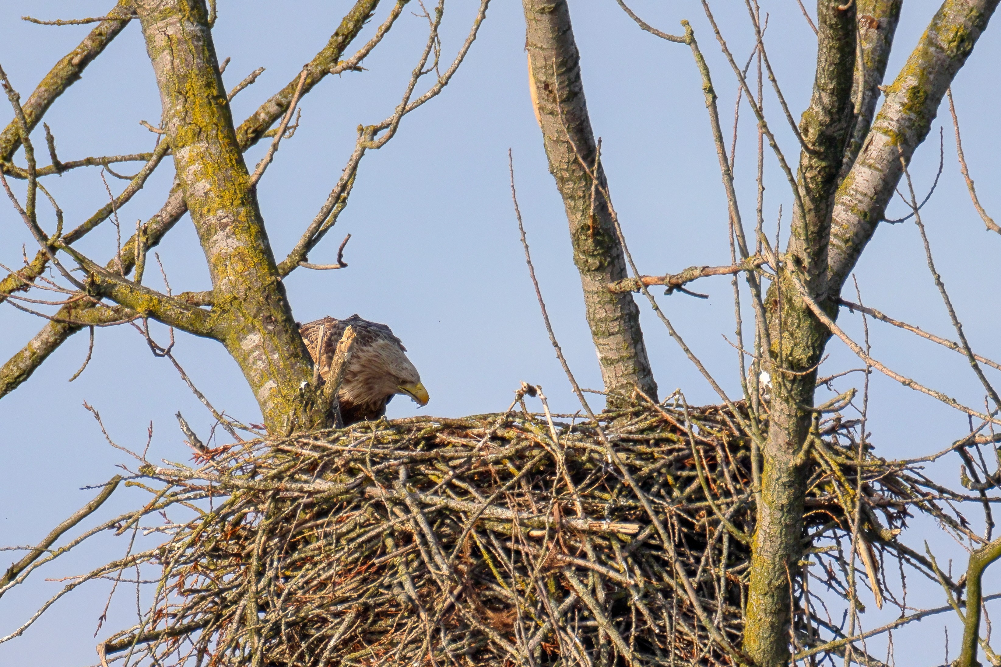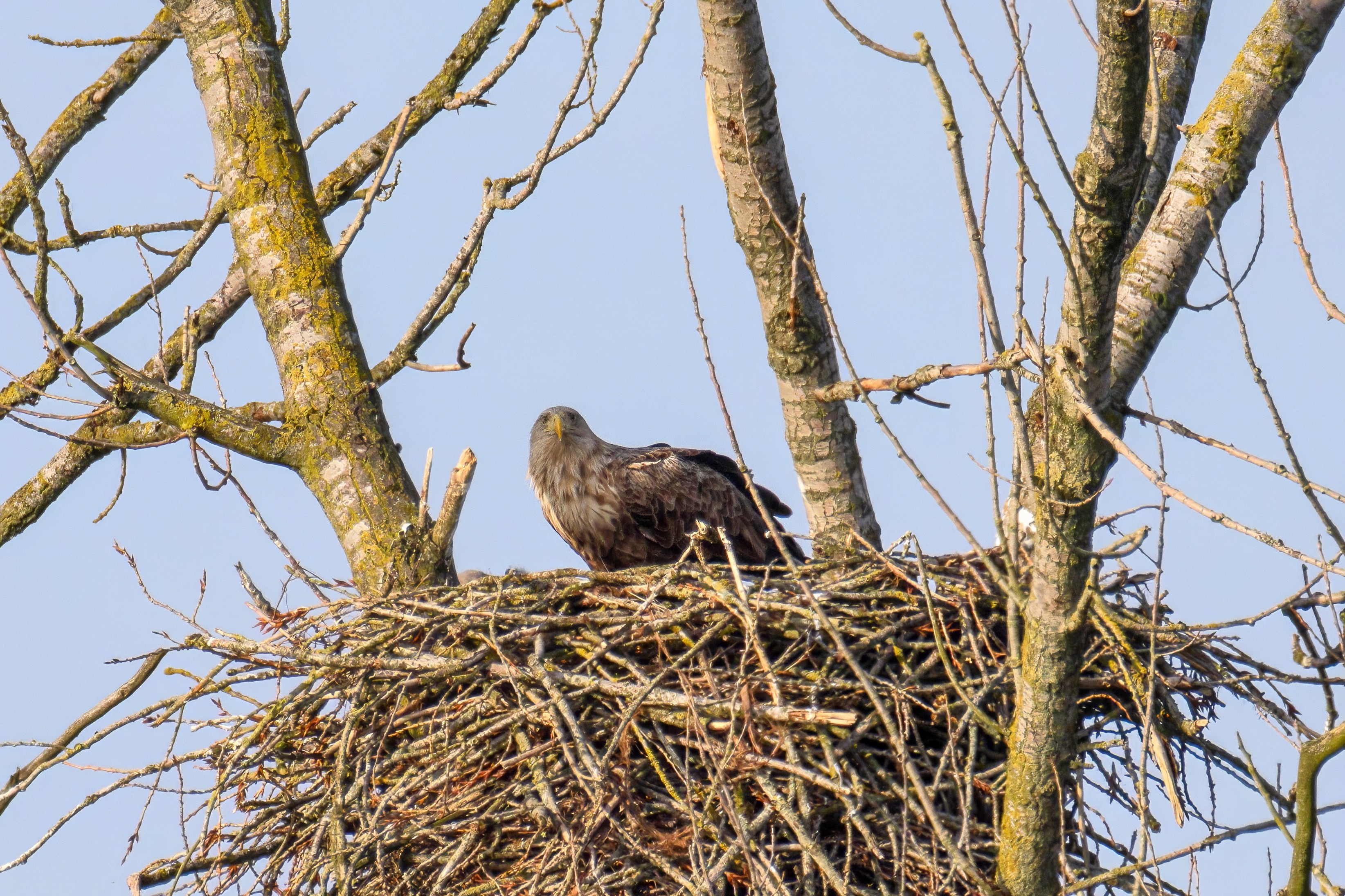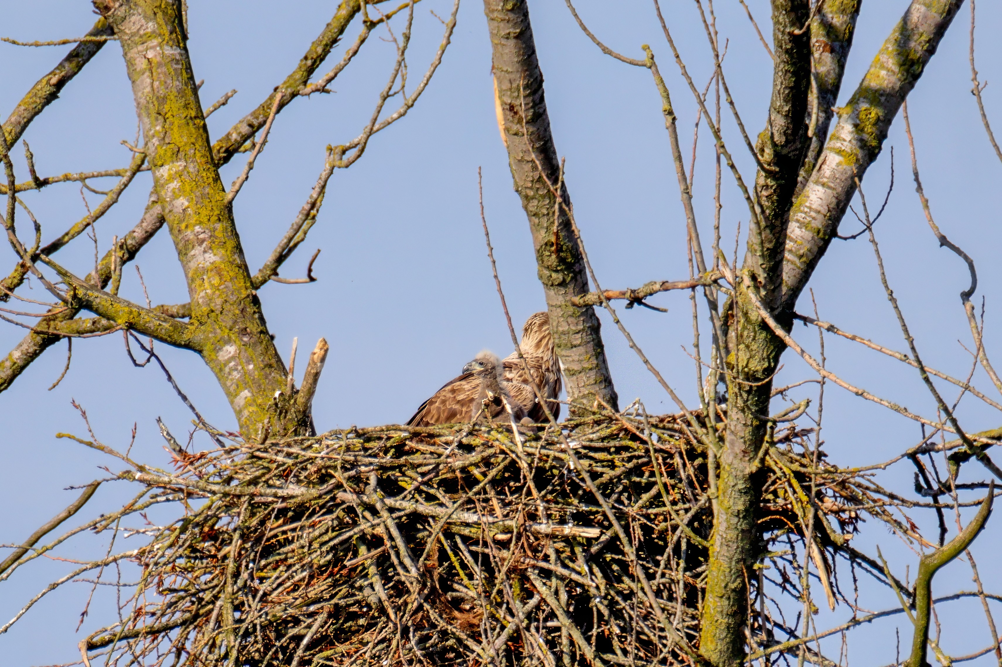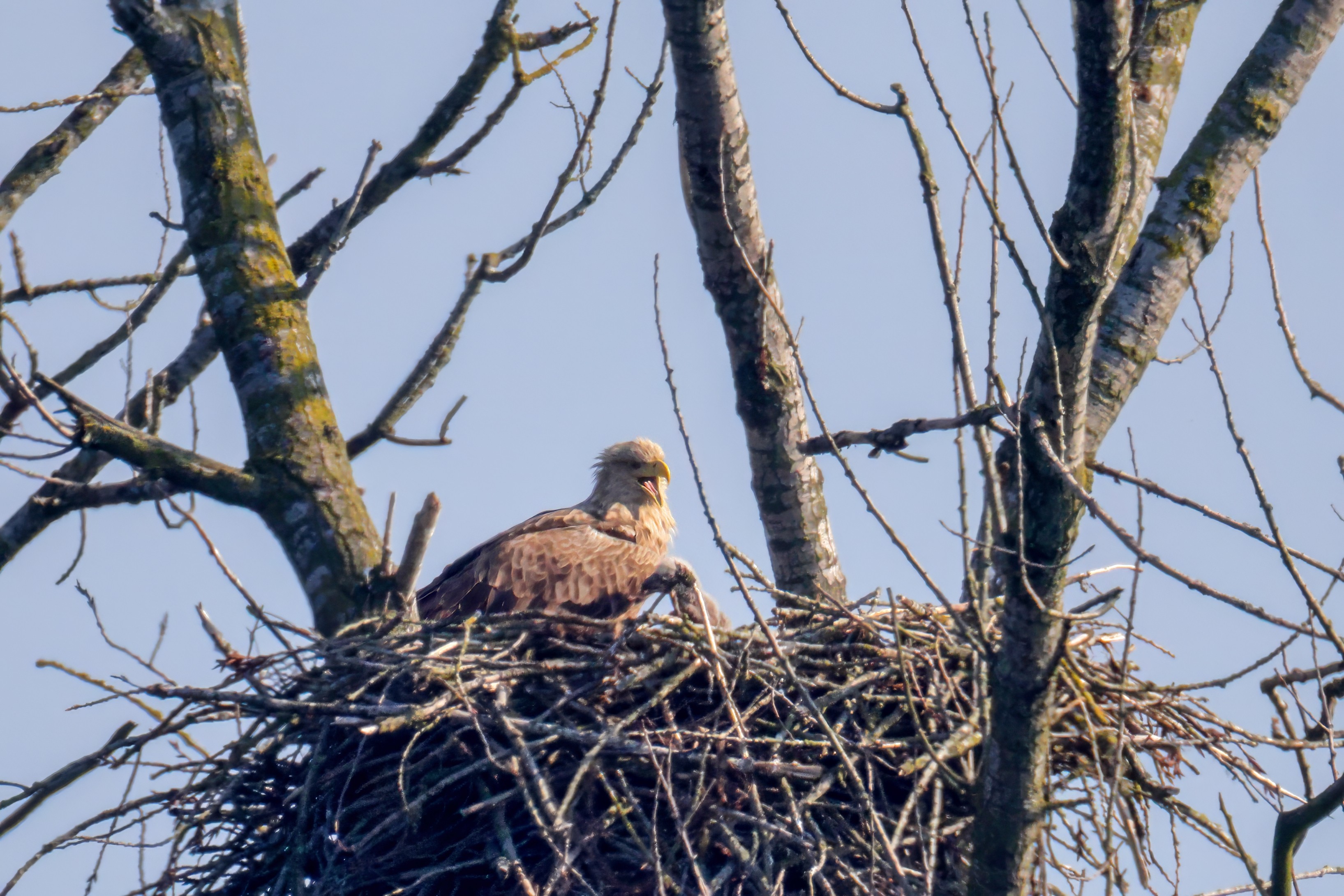 Vorbildlich versorgt das Seeadlereibchen ihre Nestlinge