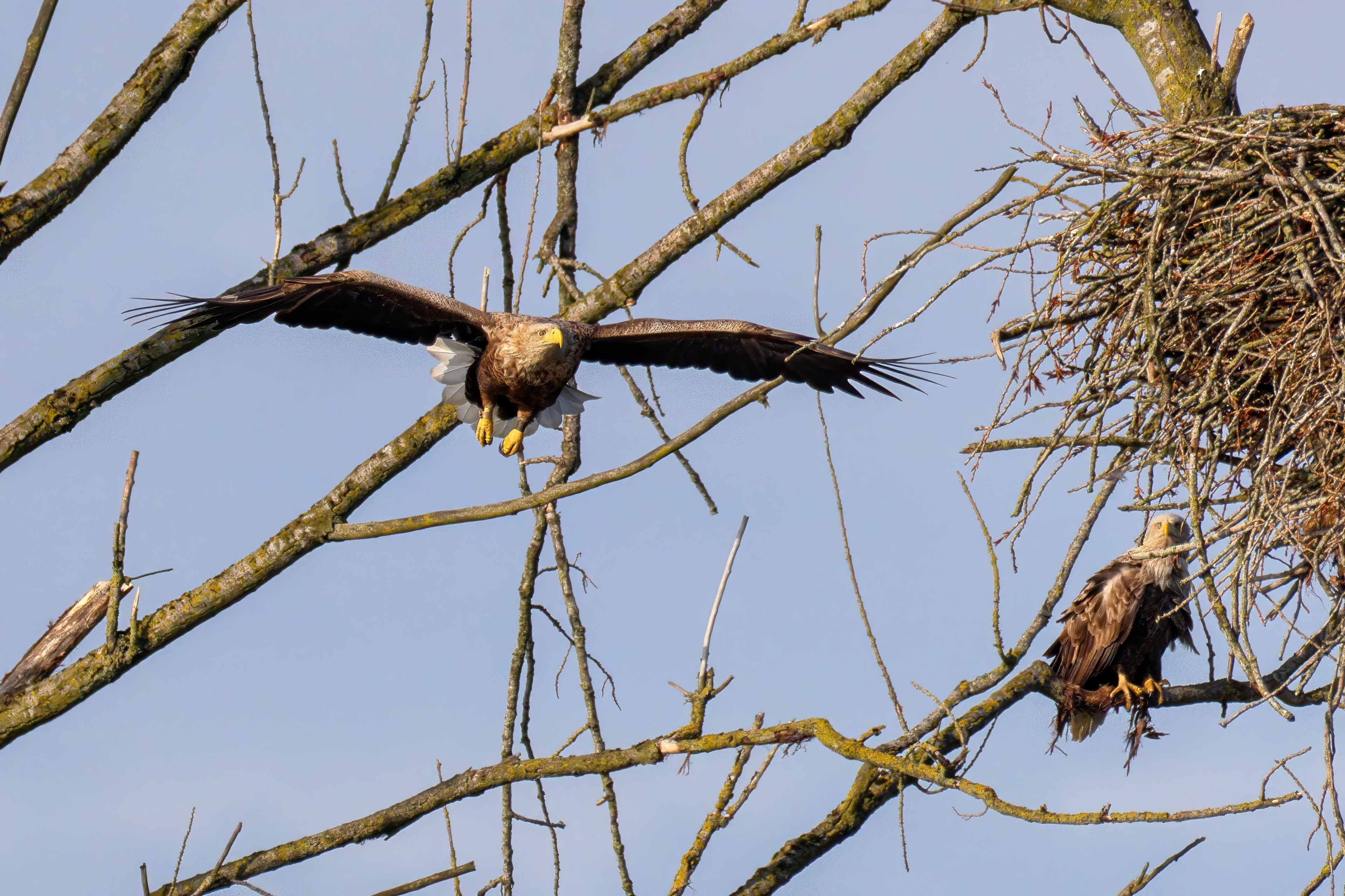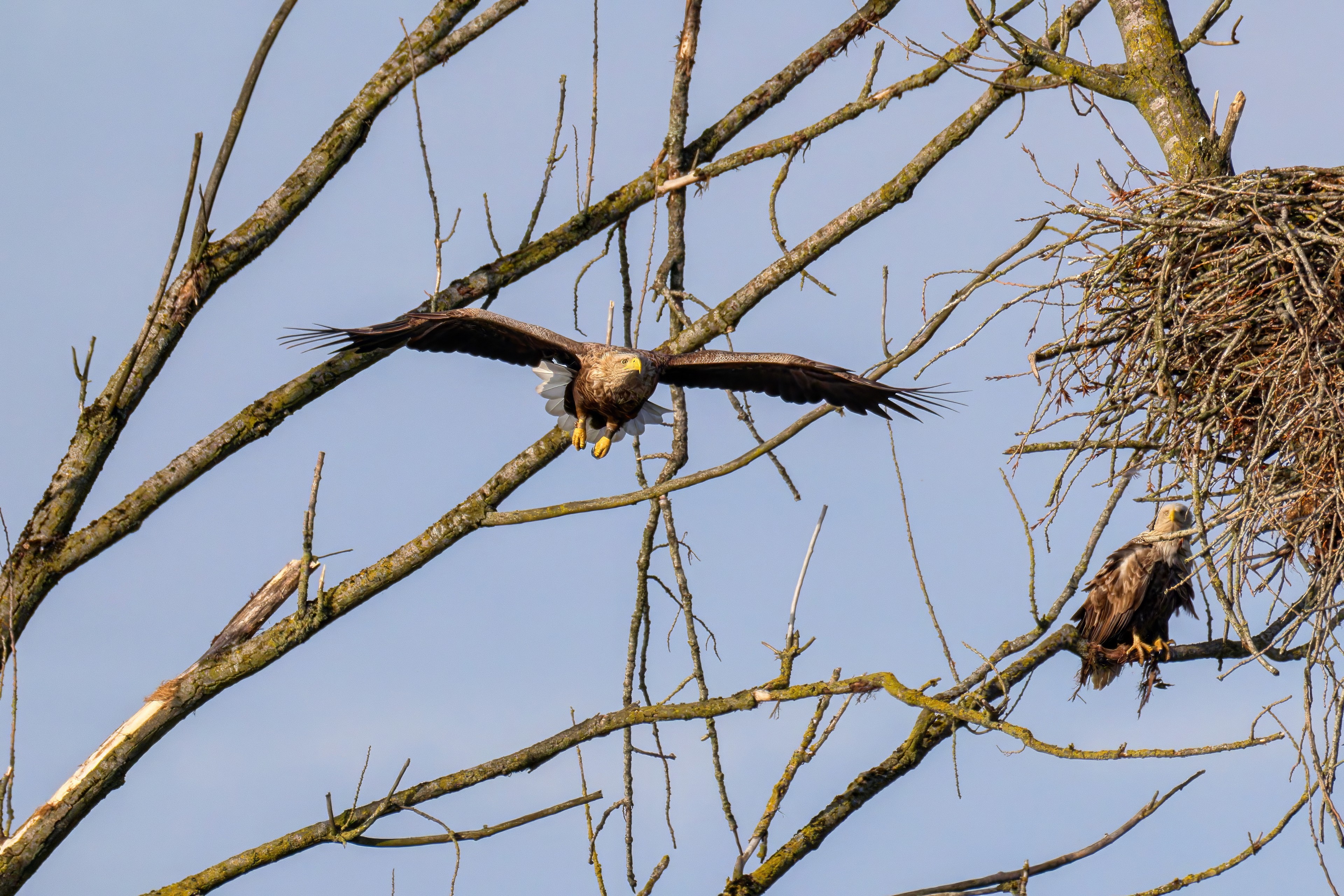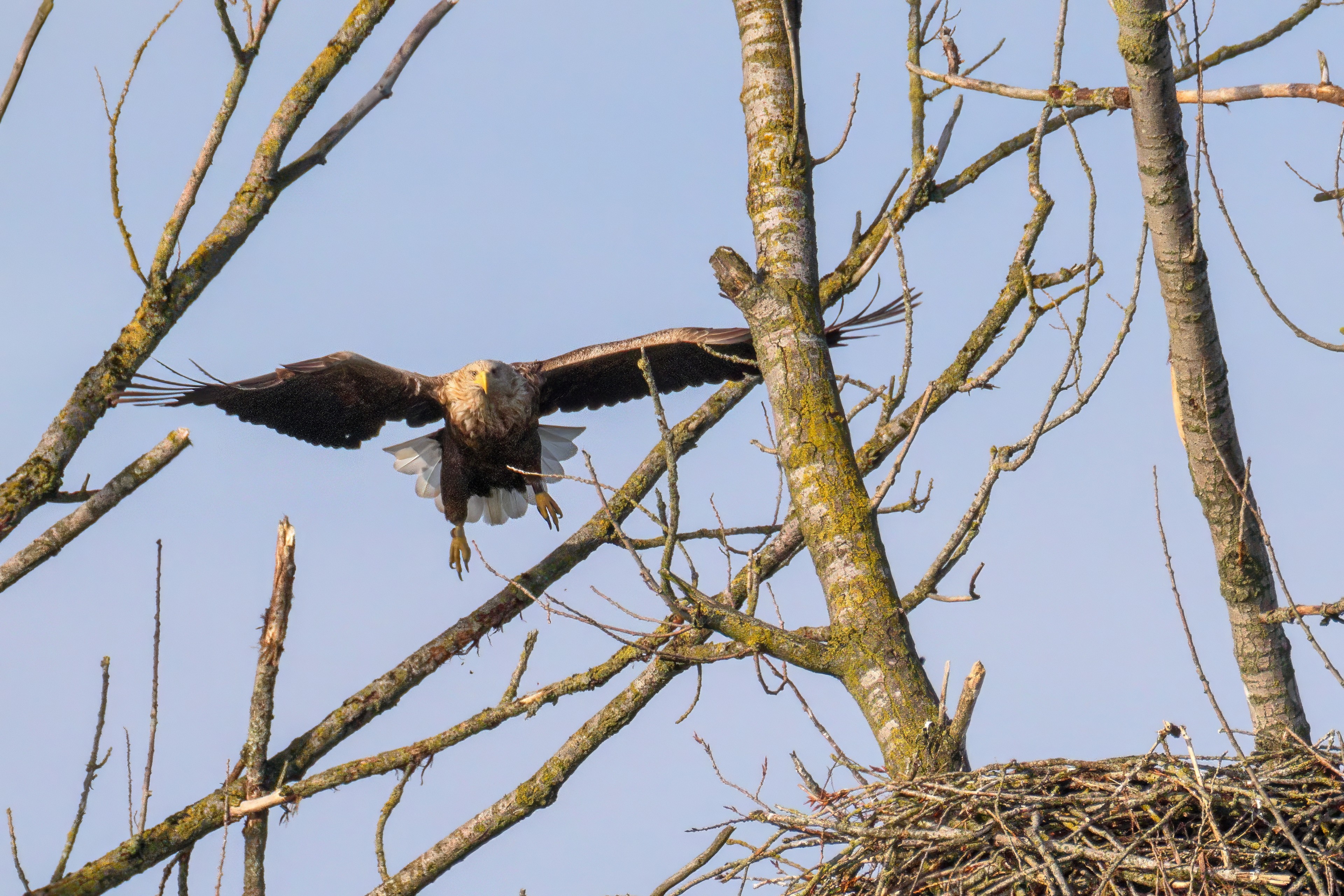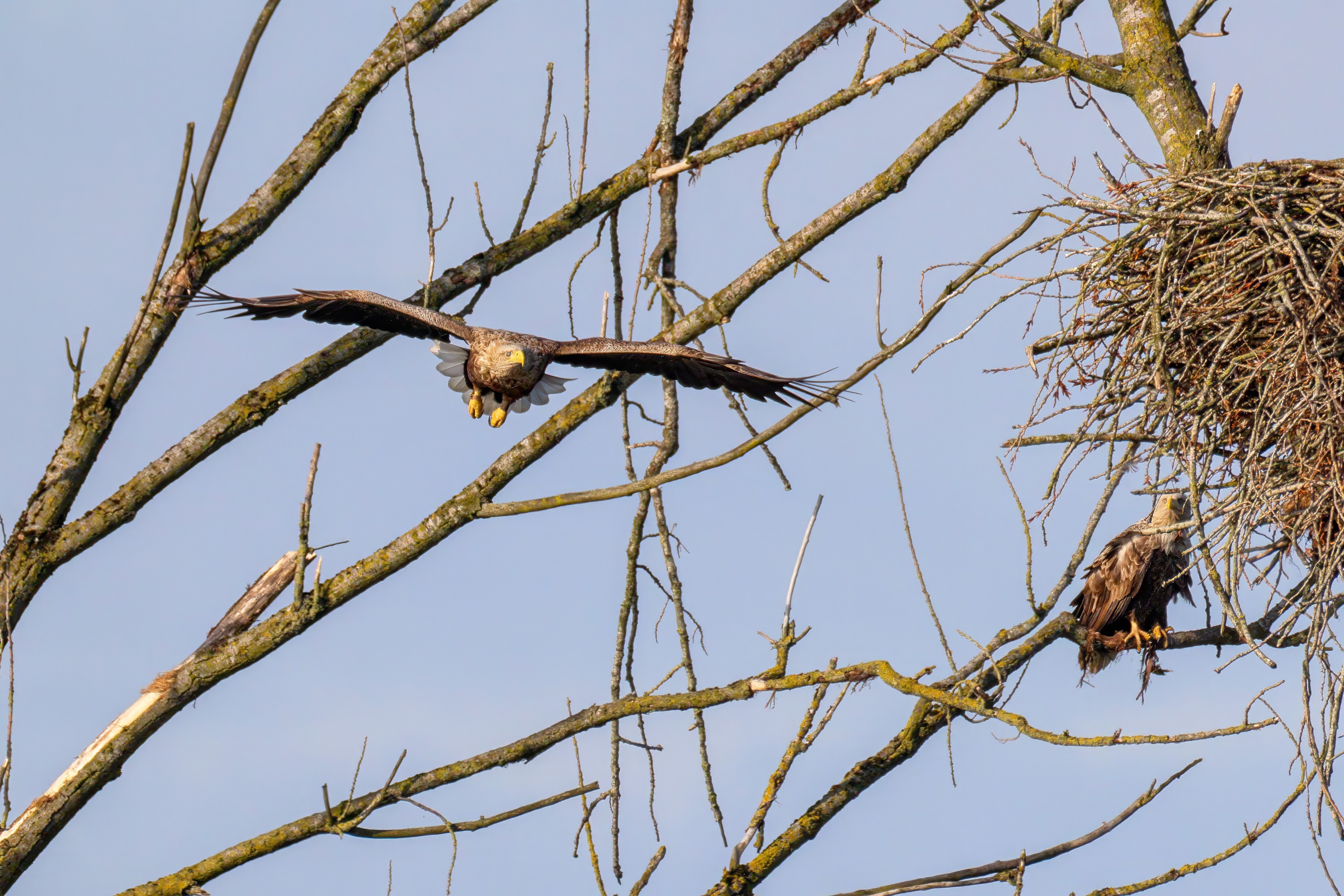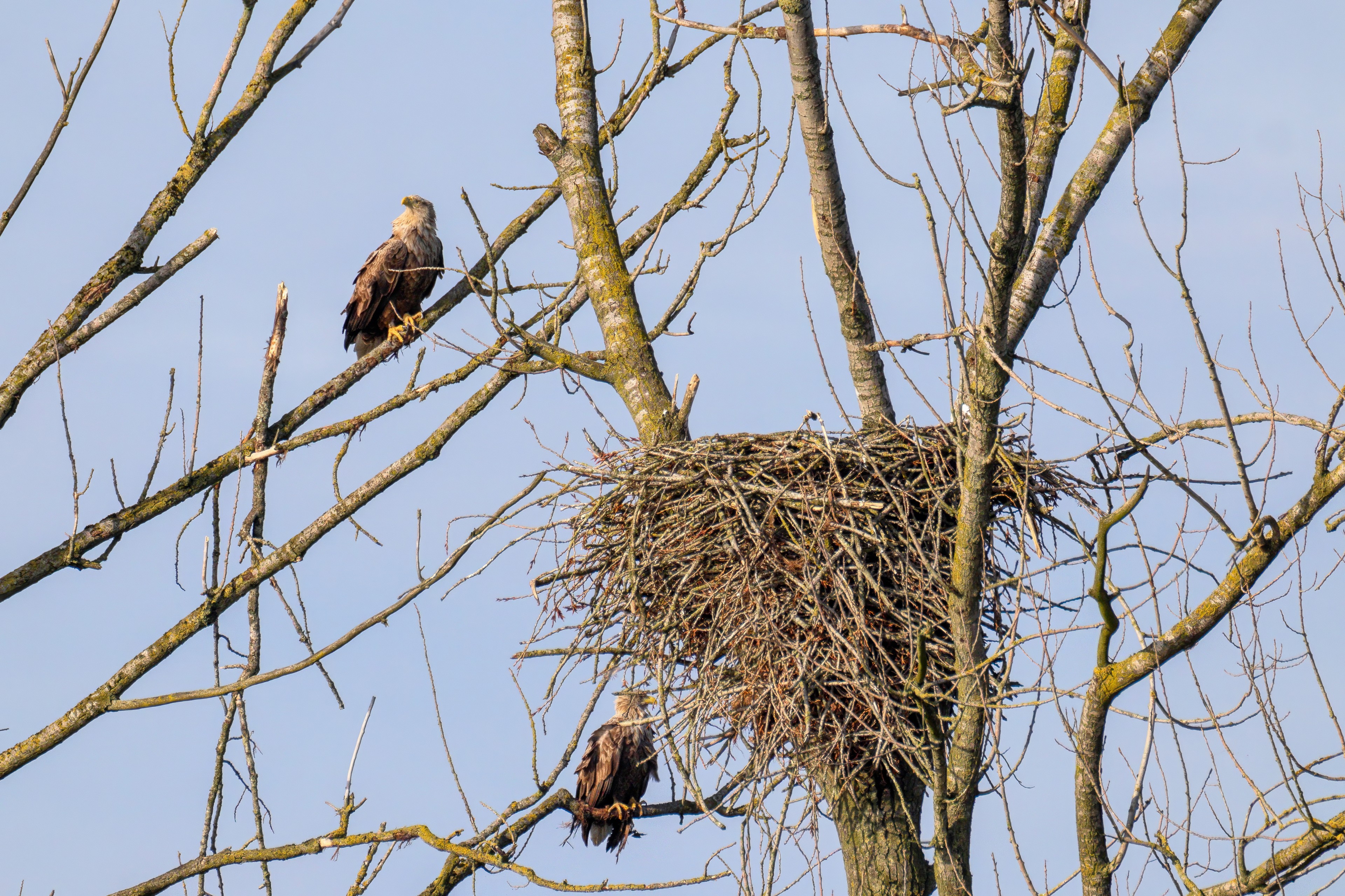 Vorbildlich versorgt das Seeadlereibchen ihre Nestlinge