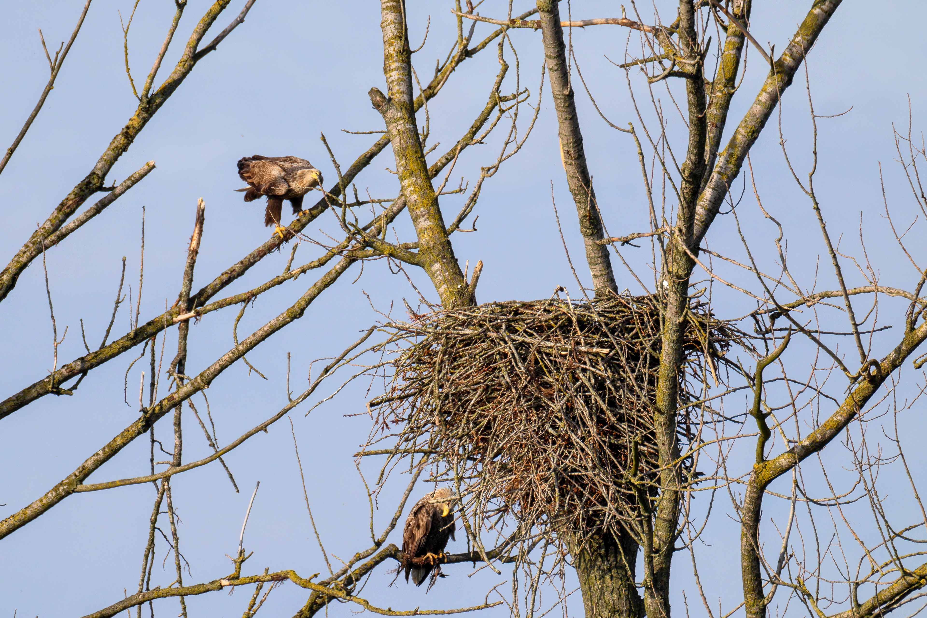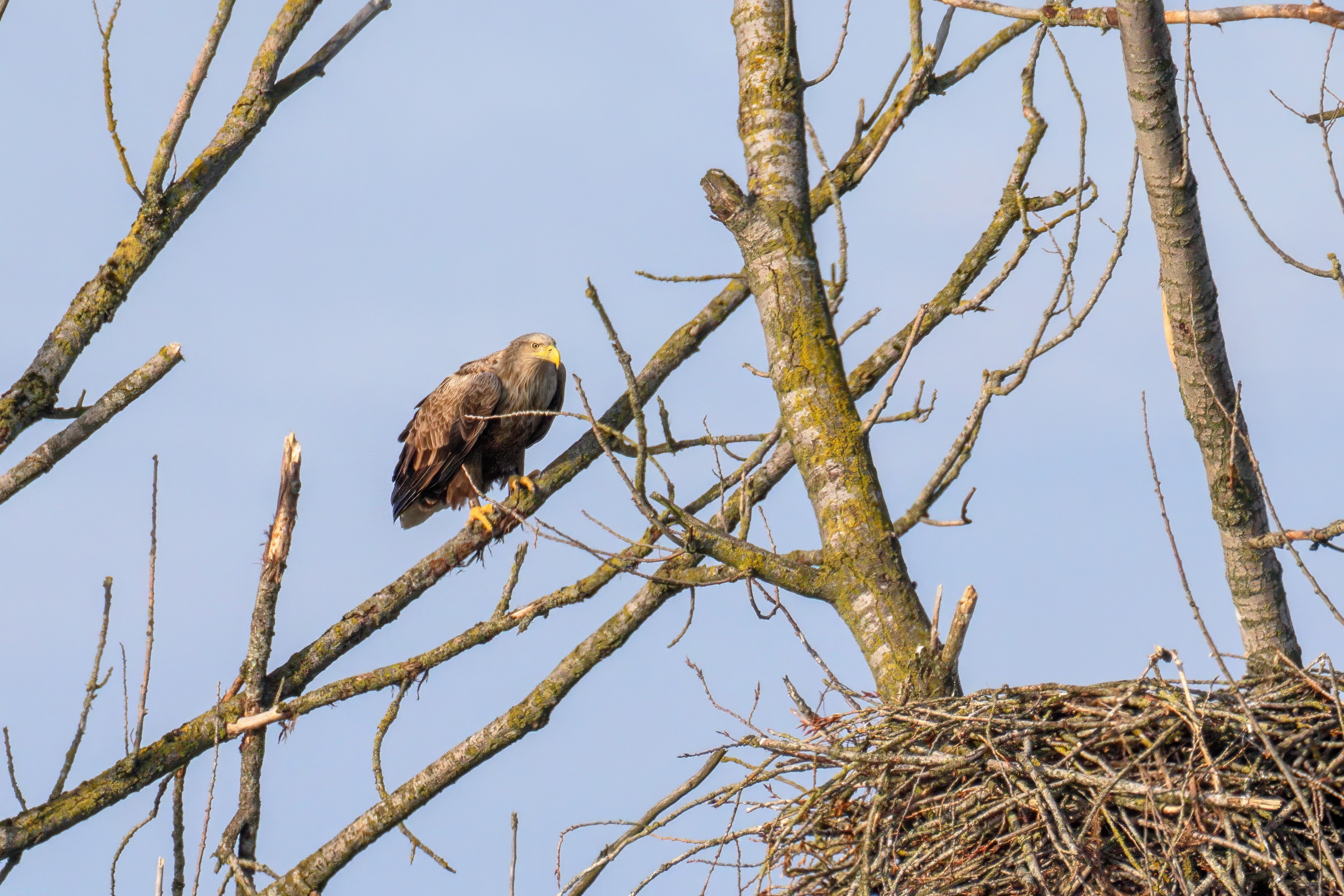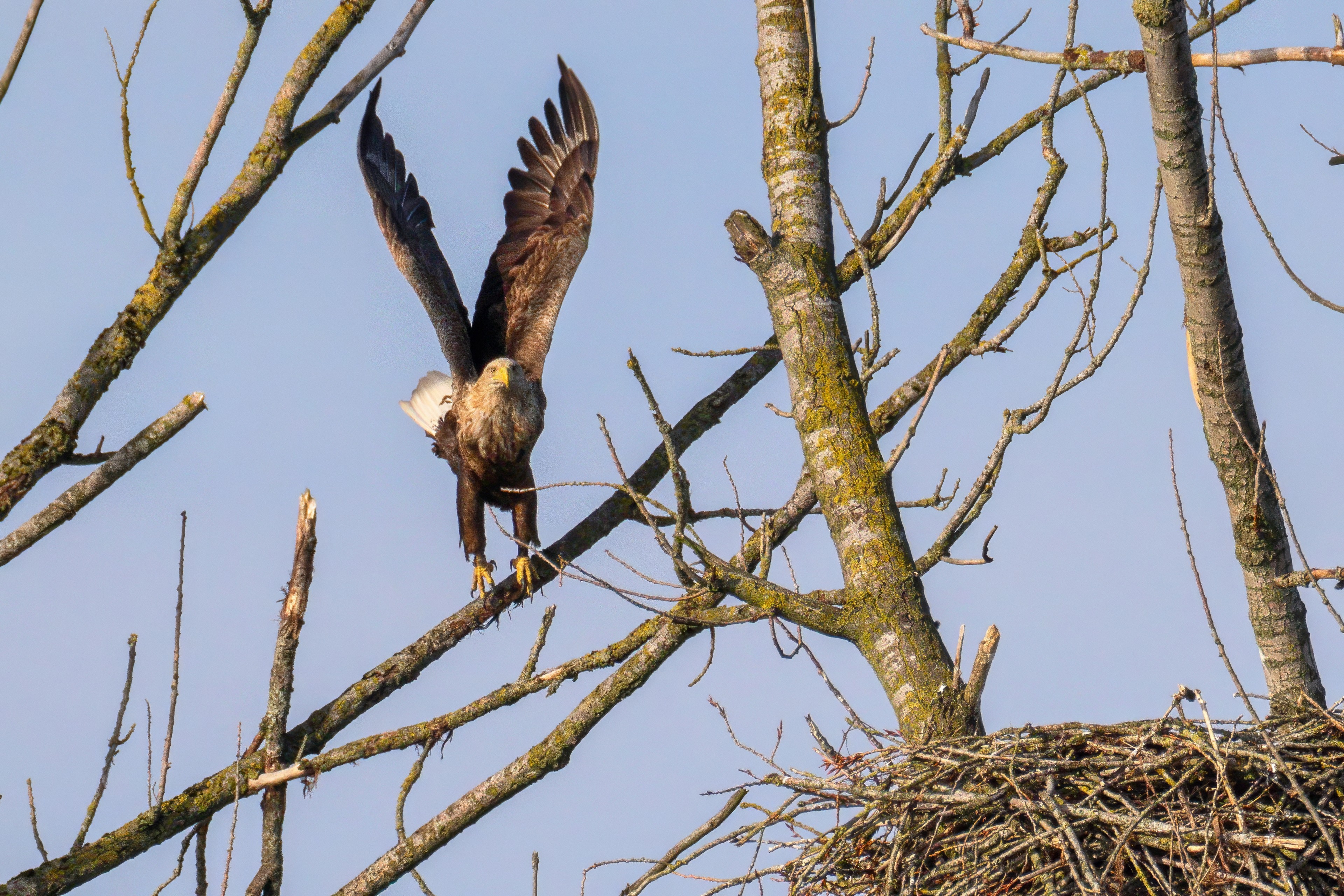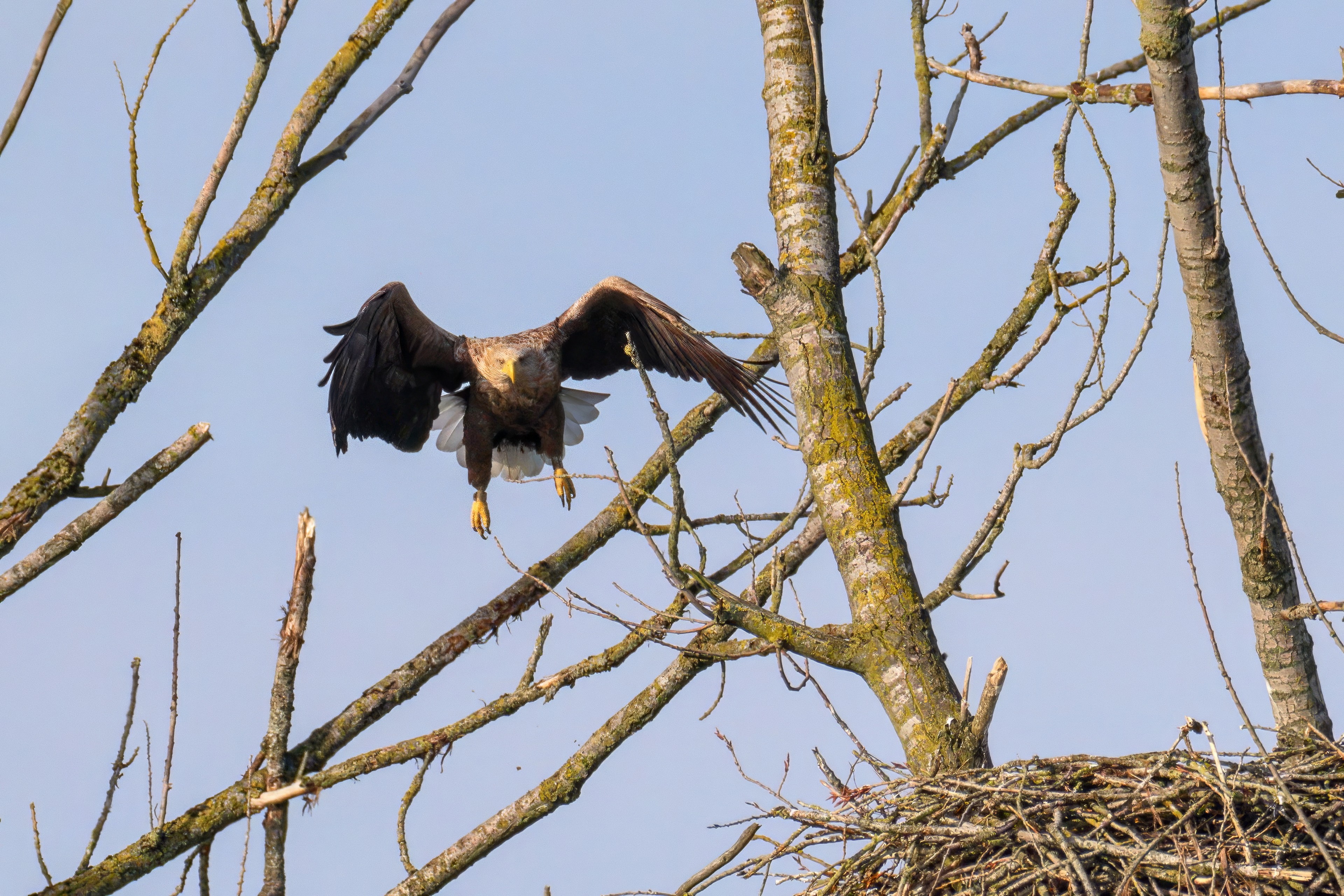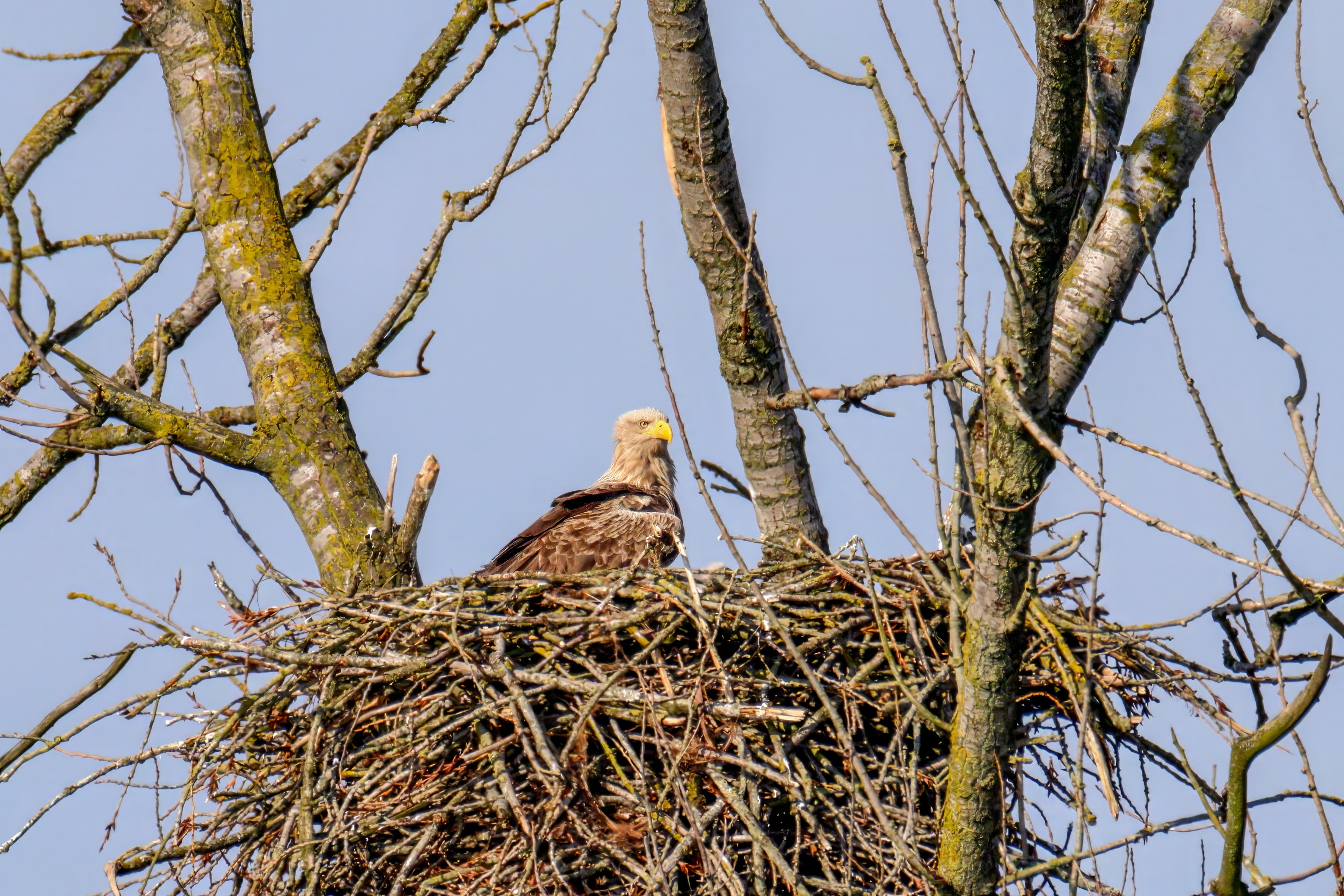 Vorbildlich versorgt das Seeadlereibchen ihre Nestlinge