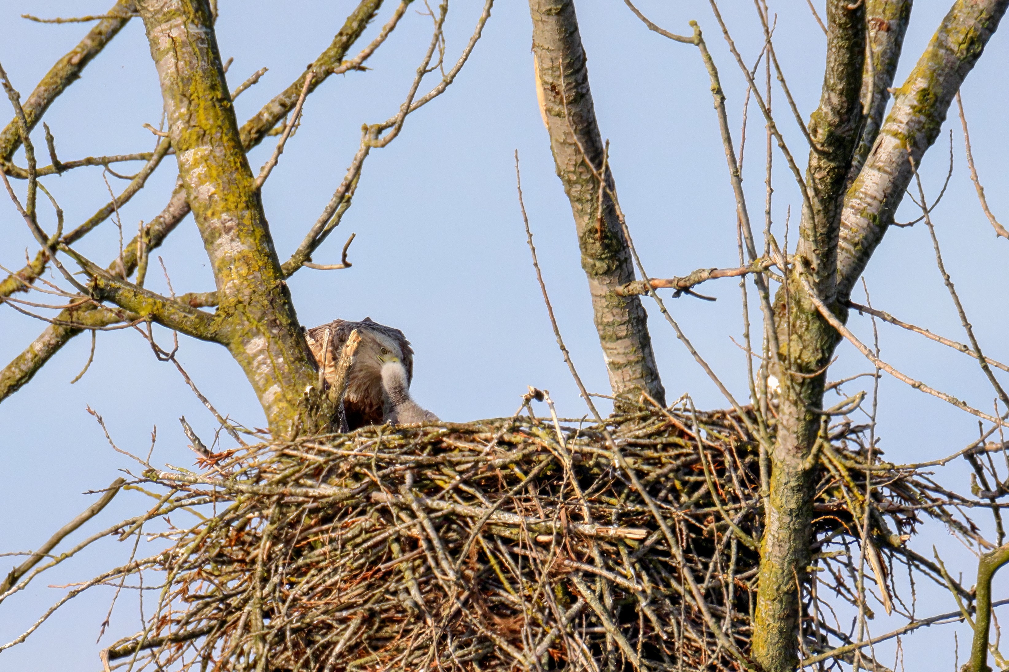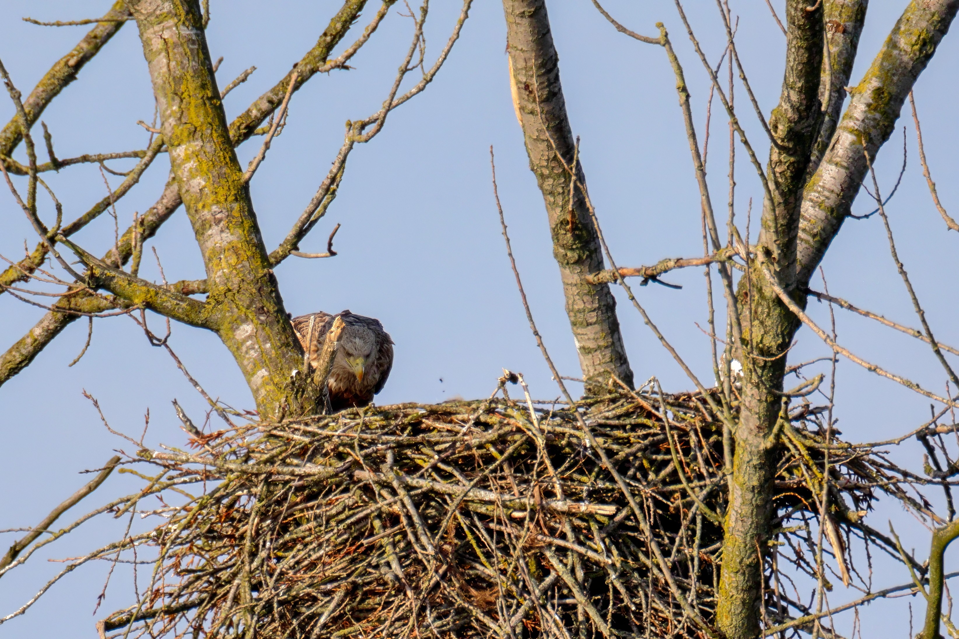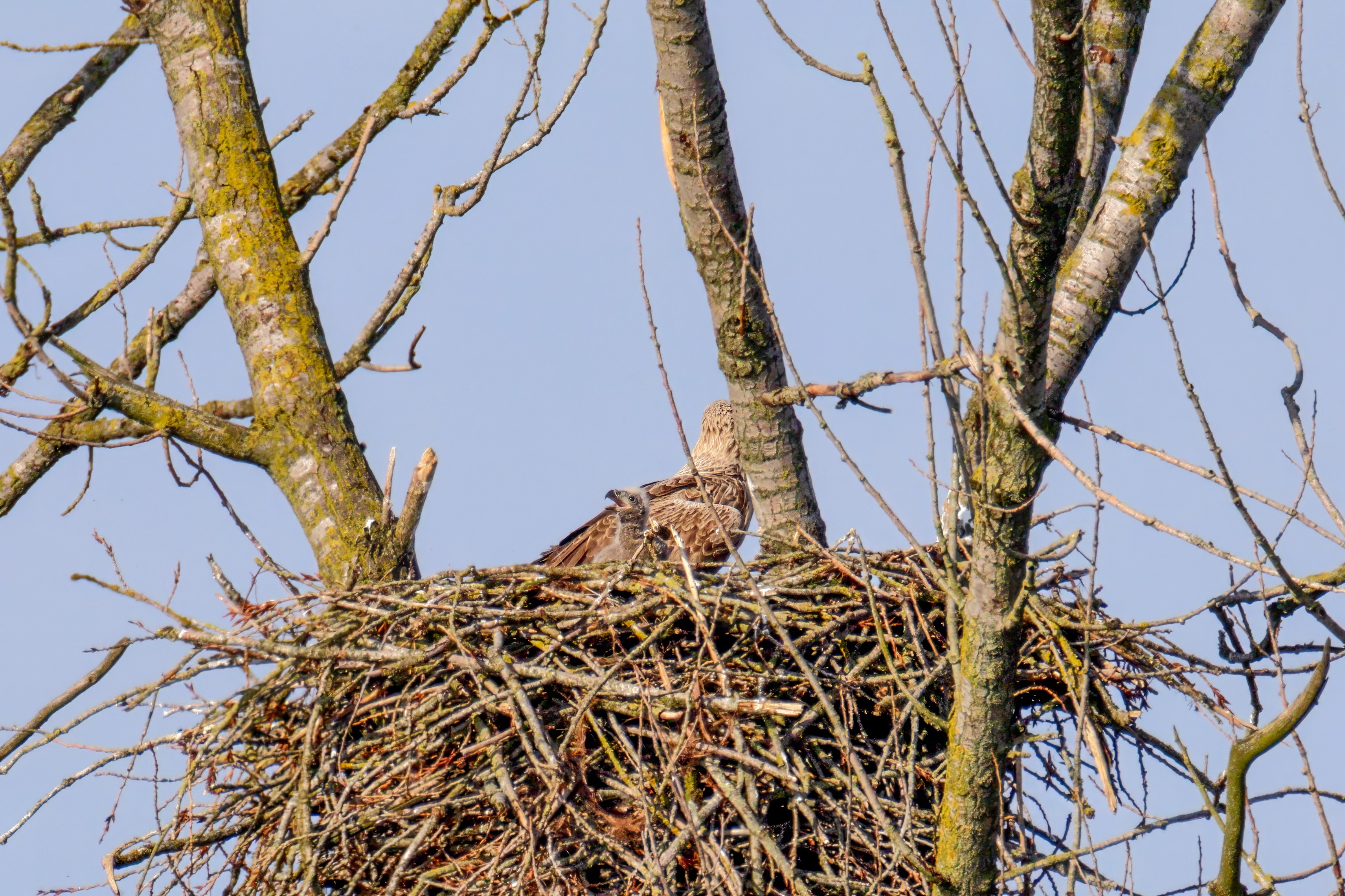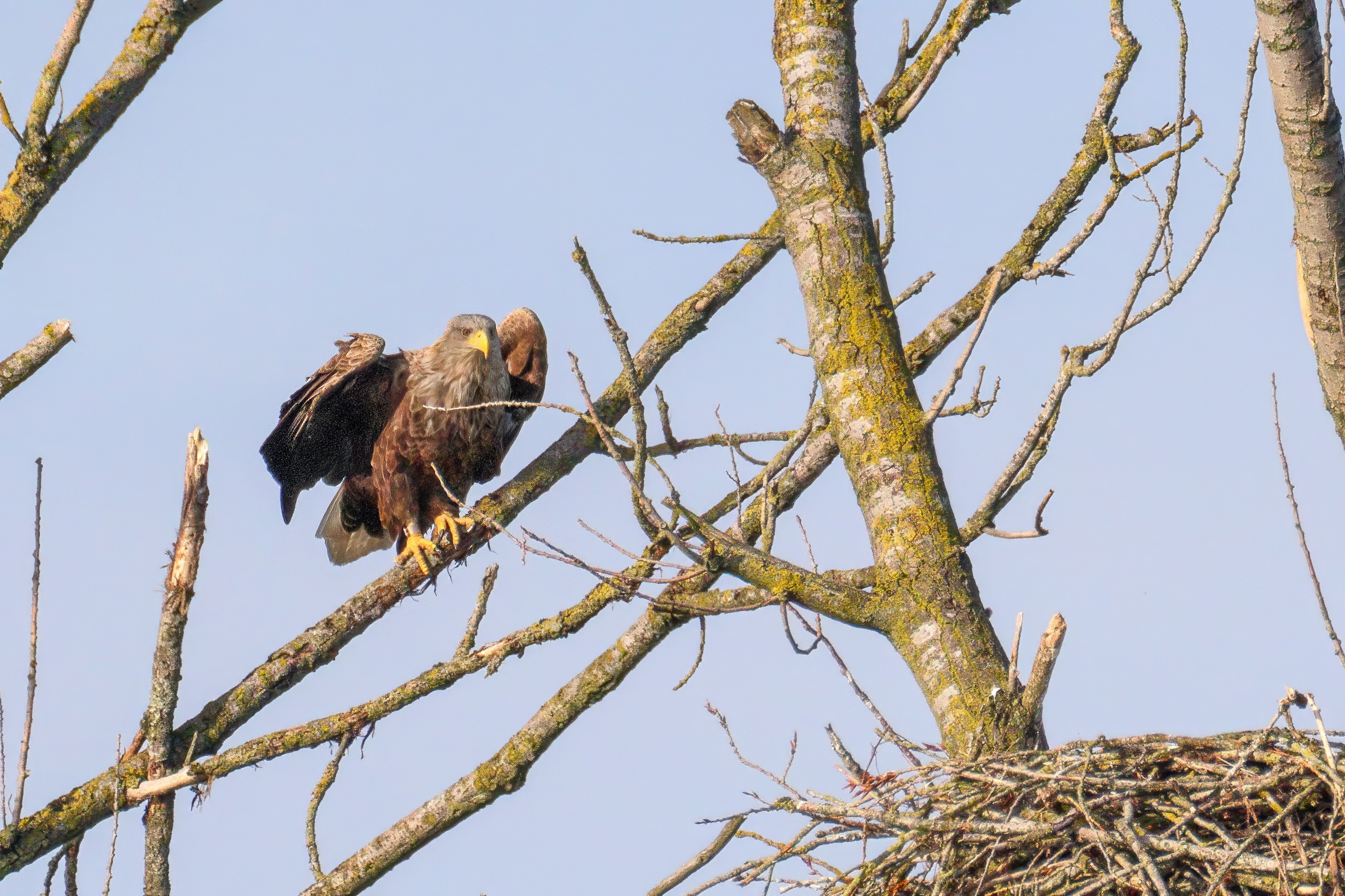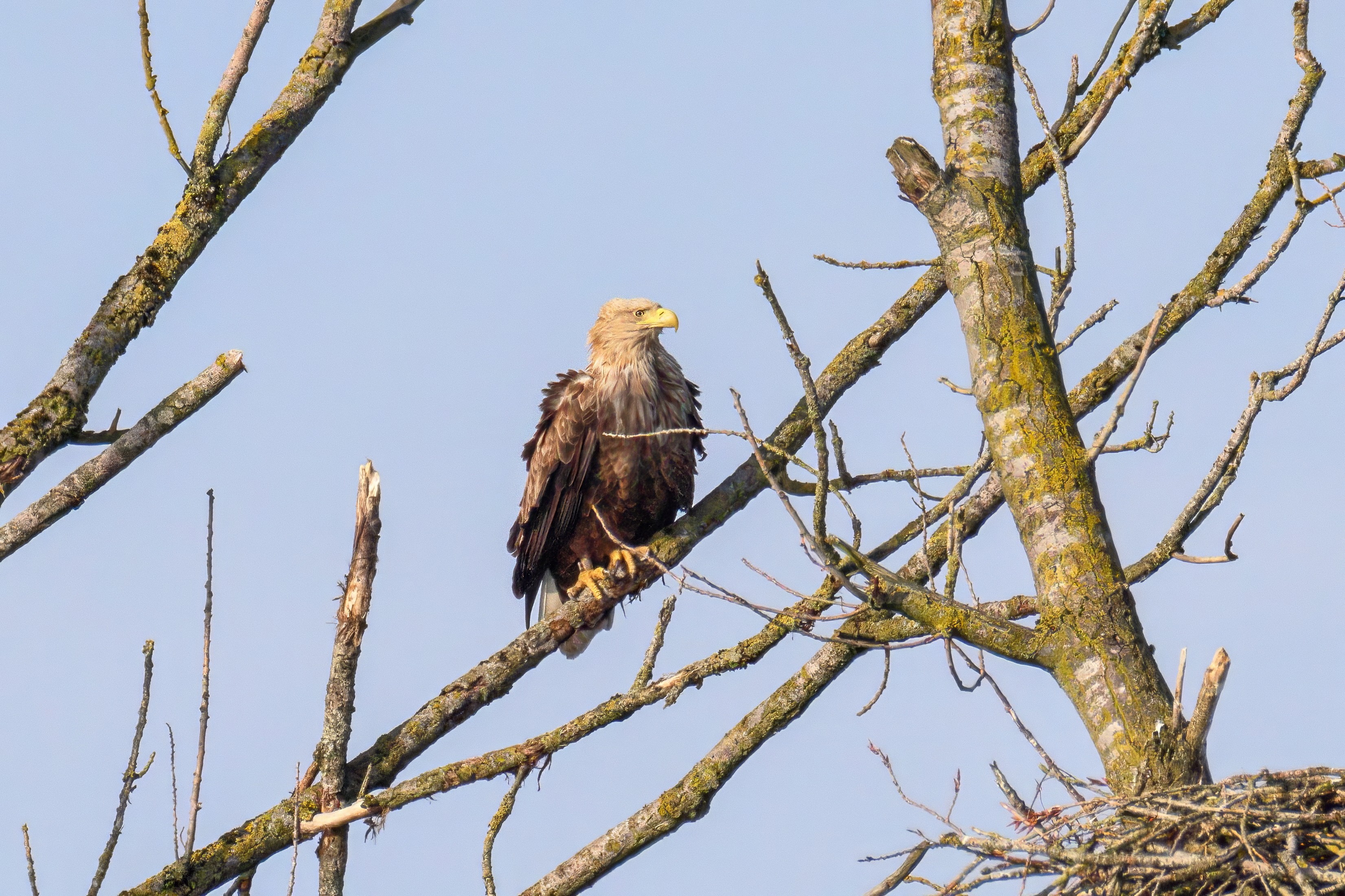 Vorbildlich versorgt das Seeadlereibchen ihre Nestlinge