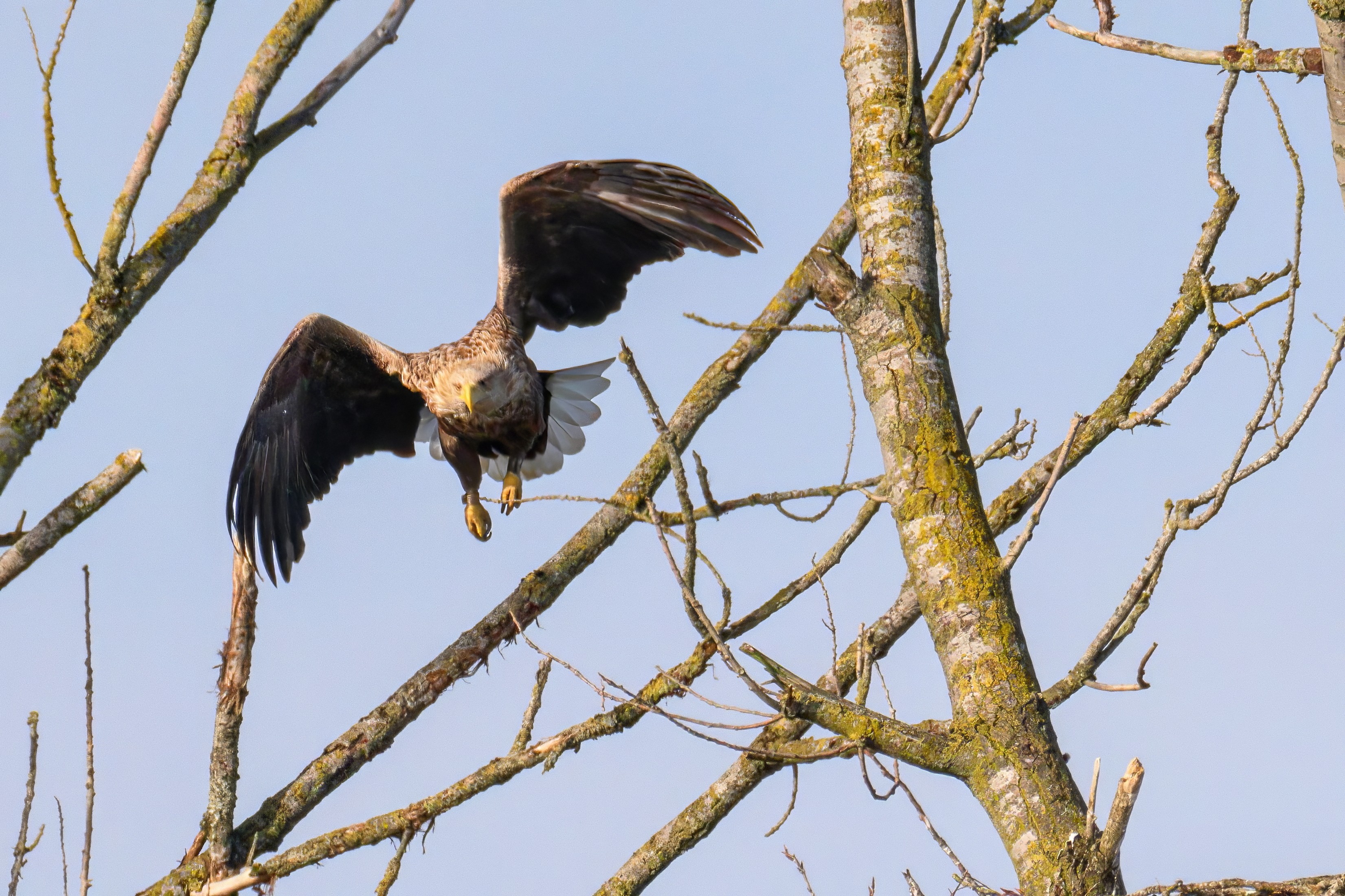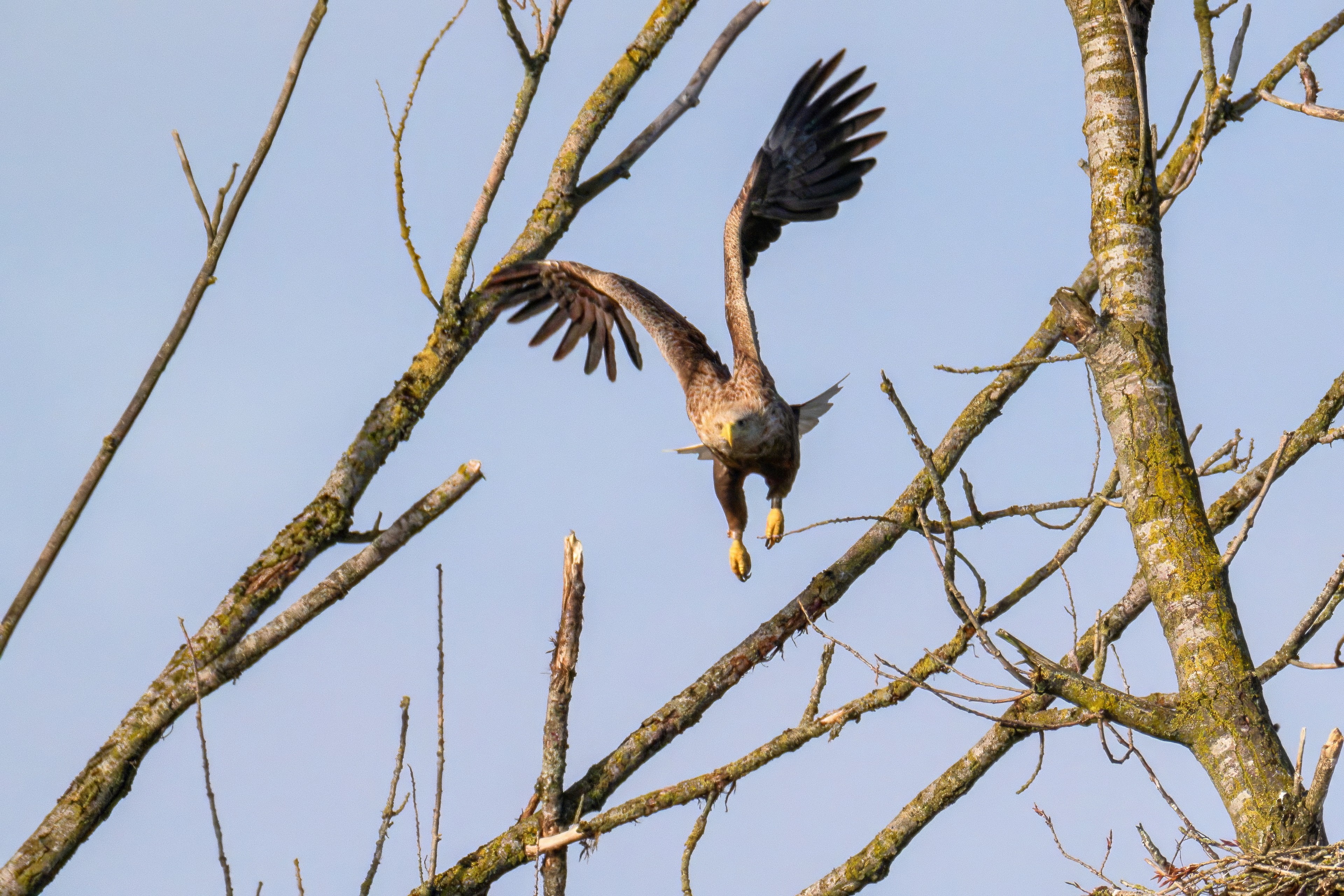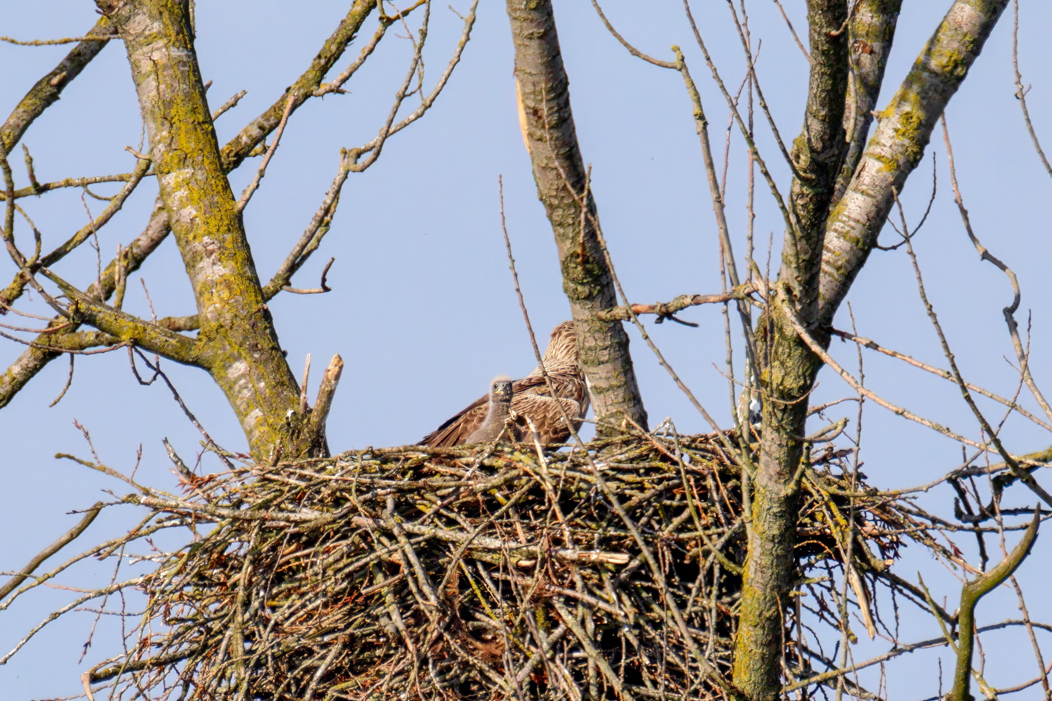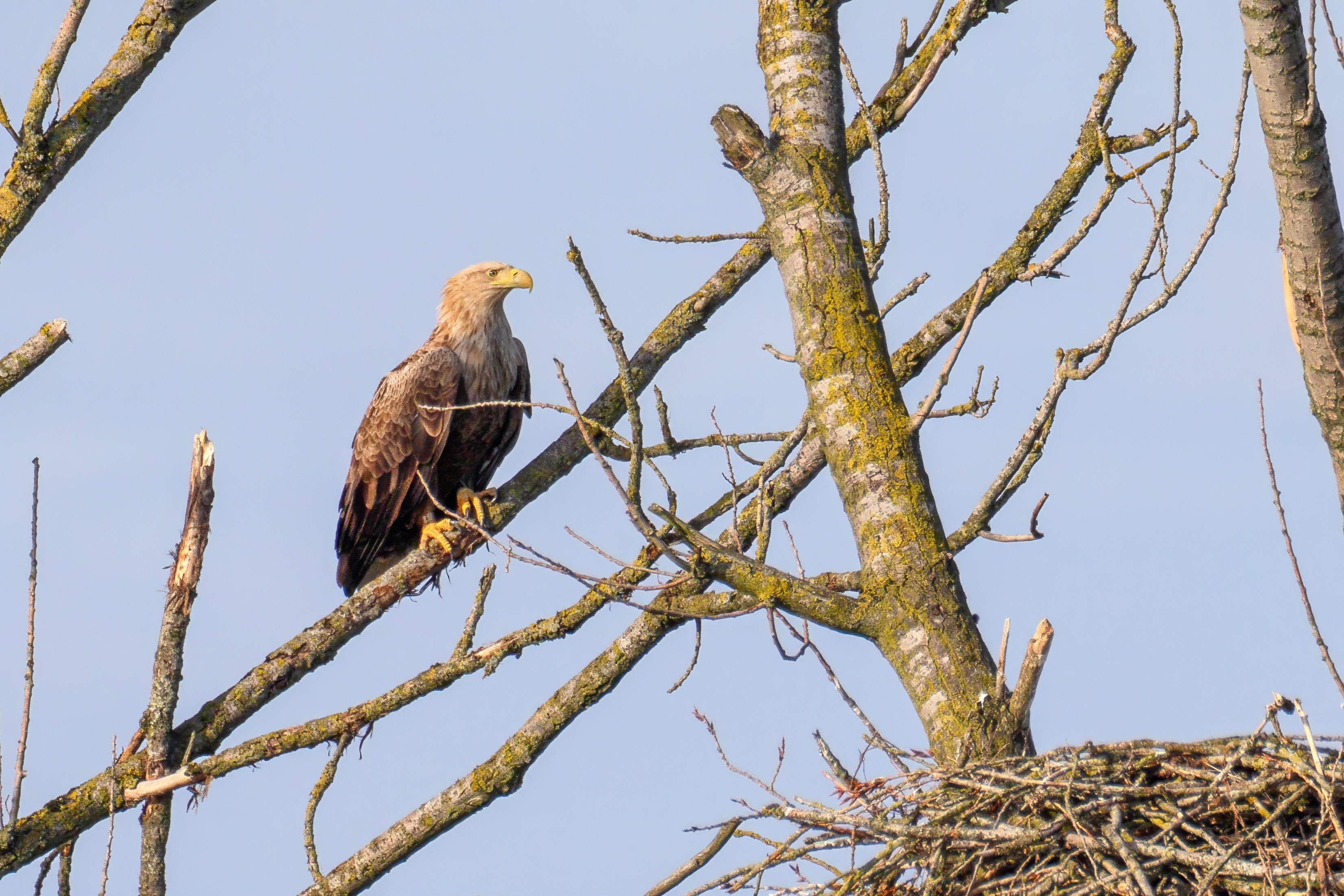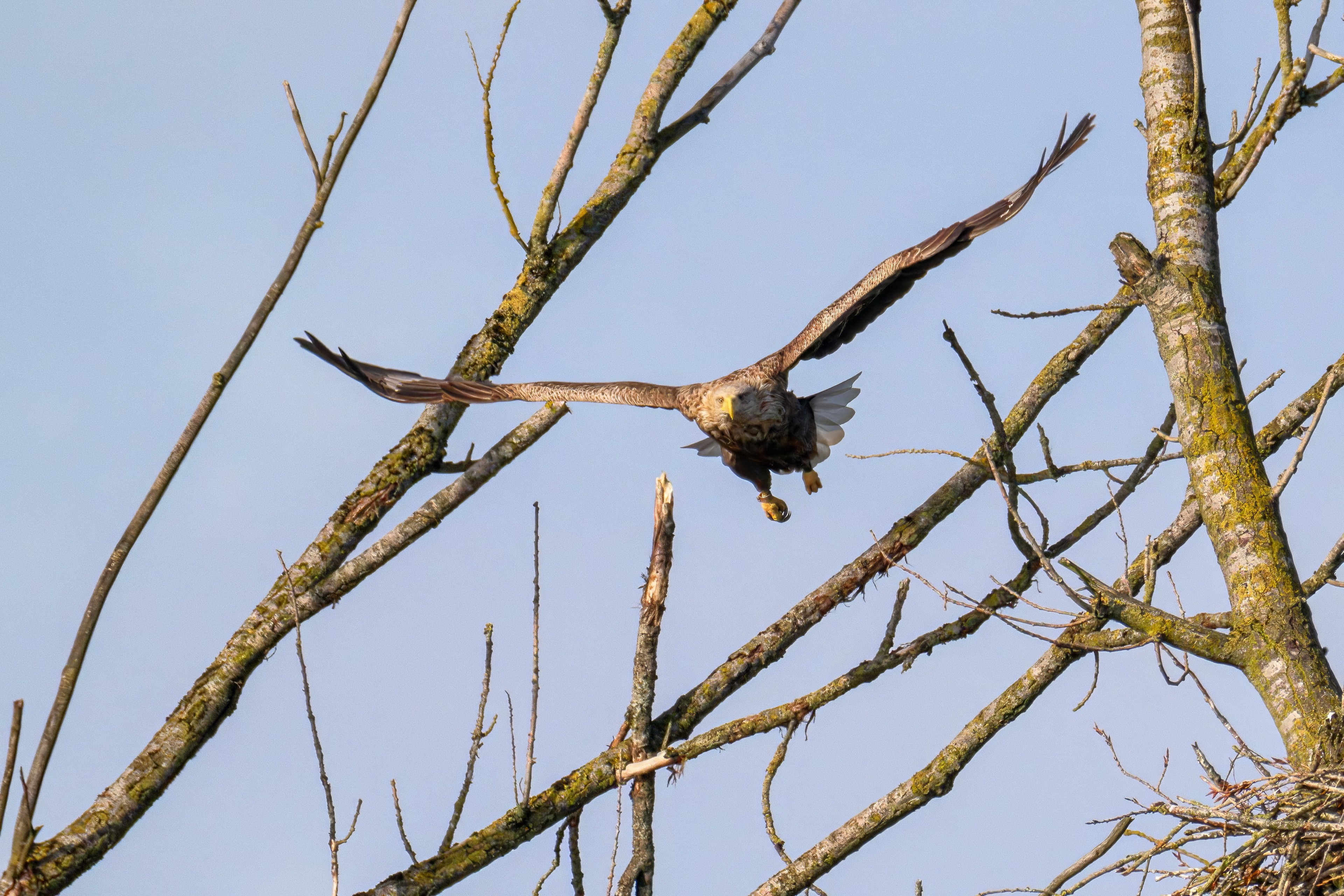Vorbildlich versorgt das Seeadlereibchen ihre Nestlinge