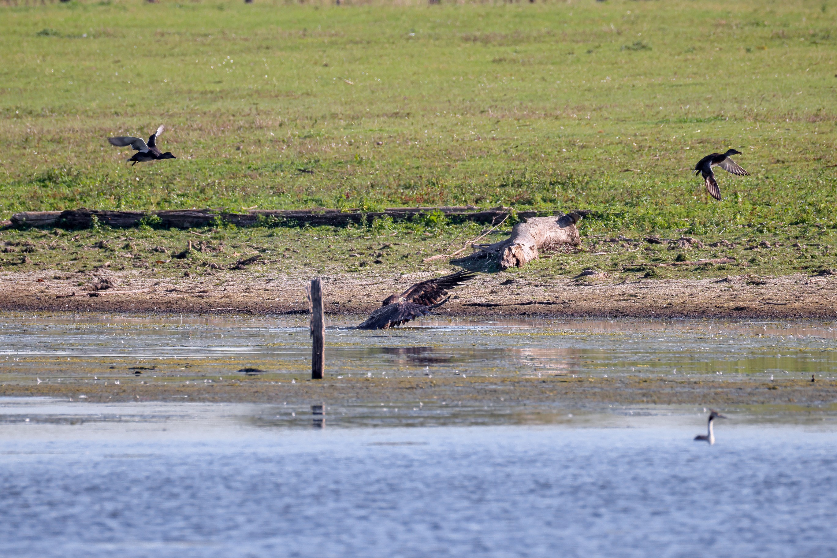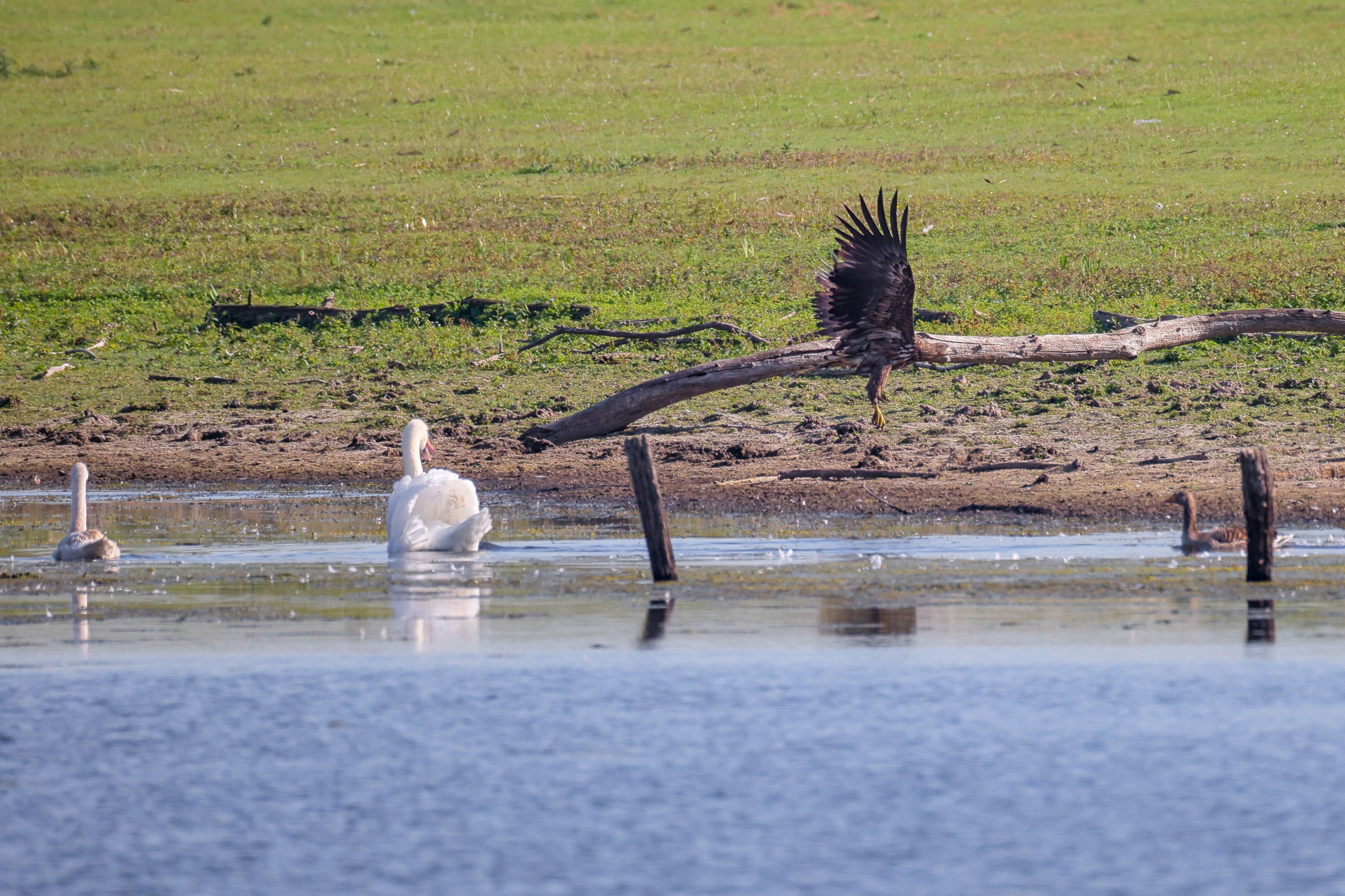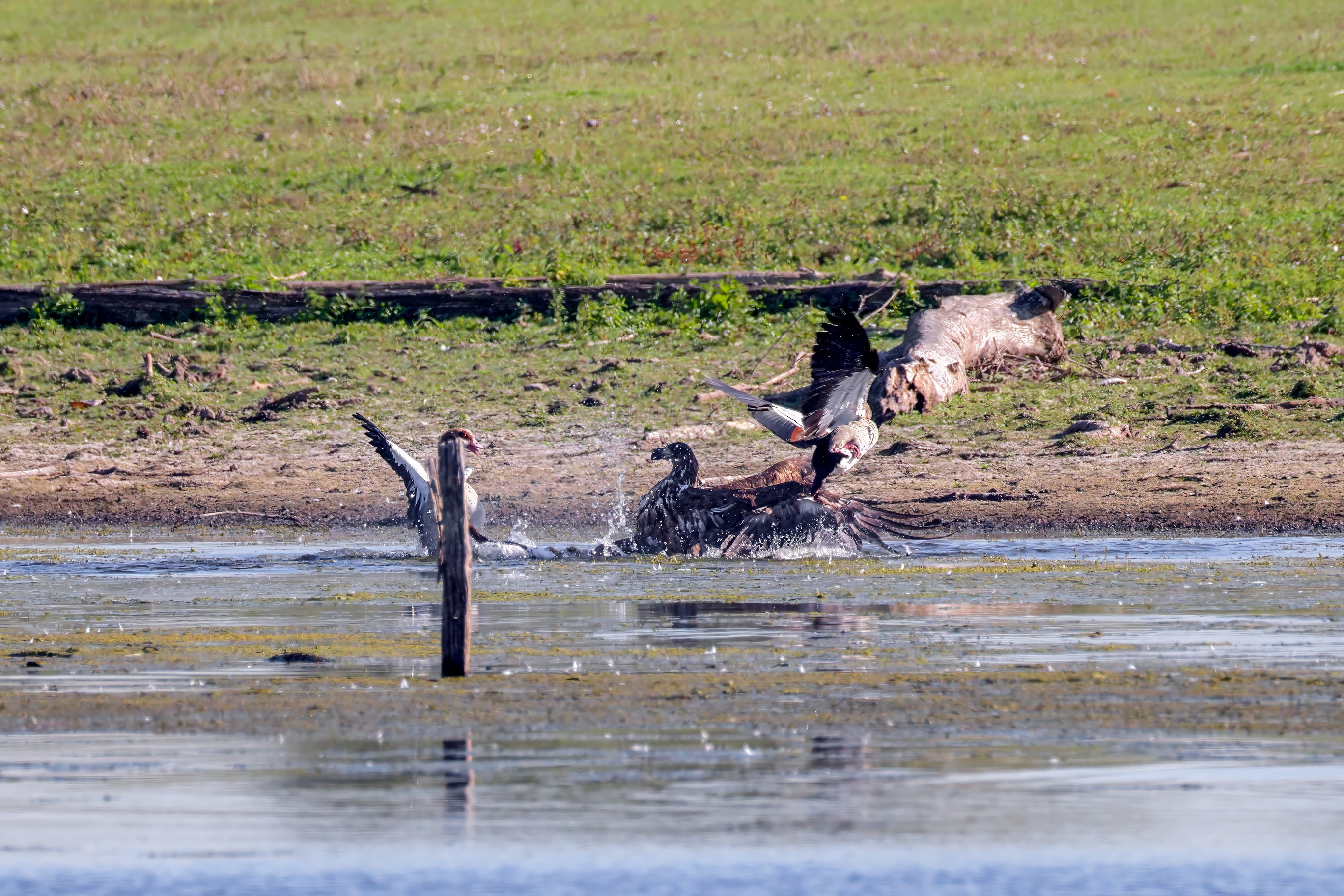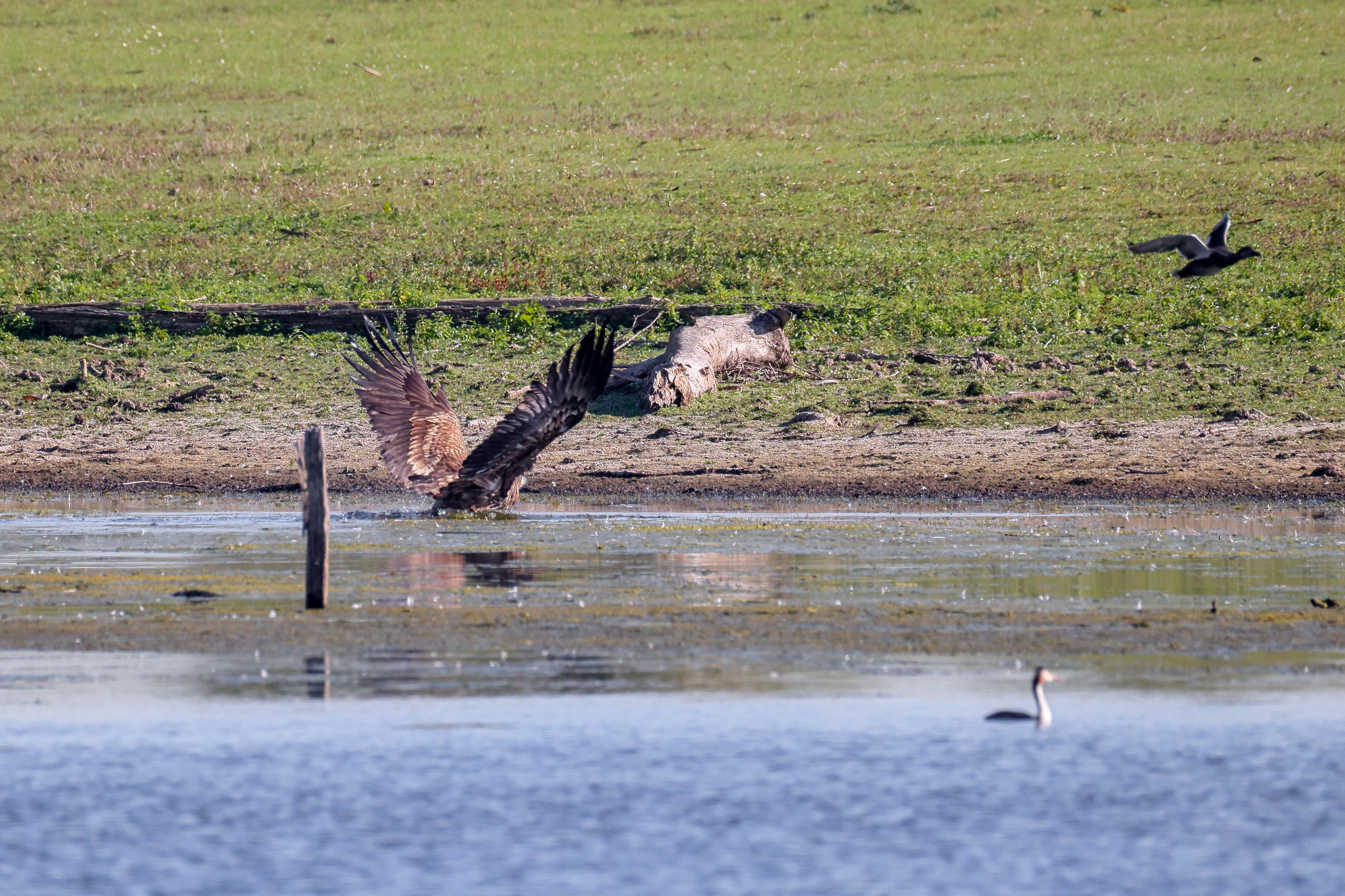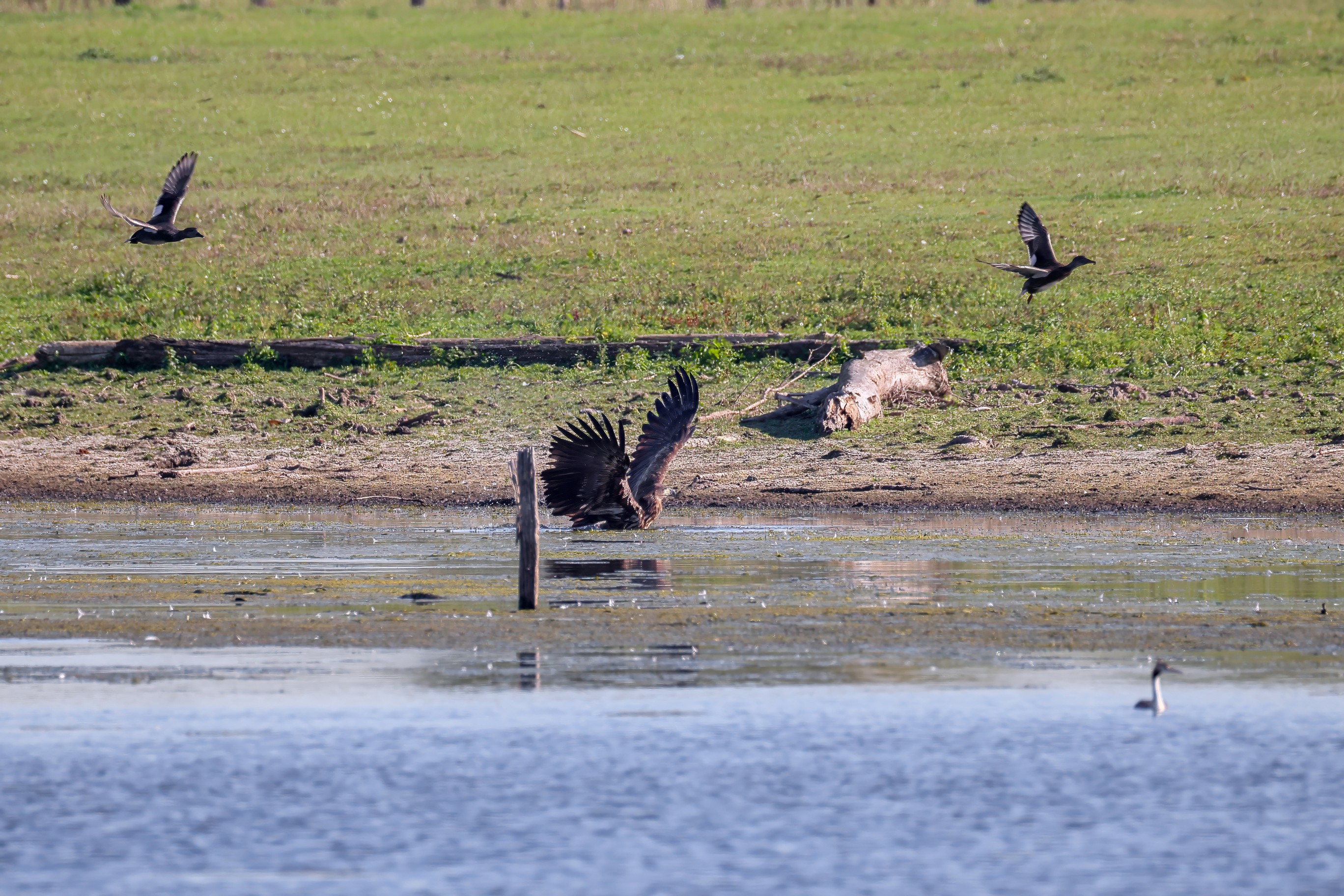Ein besonders eindrucksvolles Erlebnis bot sich beim Versuch eine junge Nilgans zu erbeuten. Die entschlossene Abwehr der Nilganseltern überraschte den jungen Adler sichtlich und brachte ihm eine deutliche Lektion ein. Aus dieser Niederlage wird er lernen müssen künftig eine überlegtere Strategie zu wählen, wenn er sich an wehrhaft umsorgte Beute heranwagt.