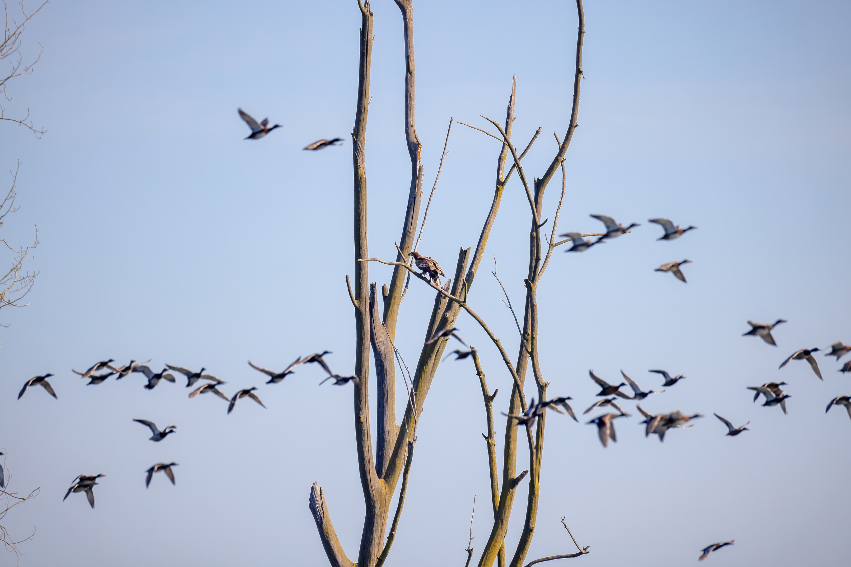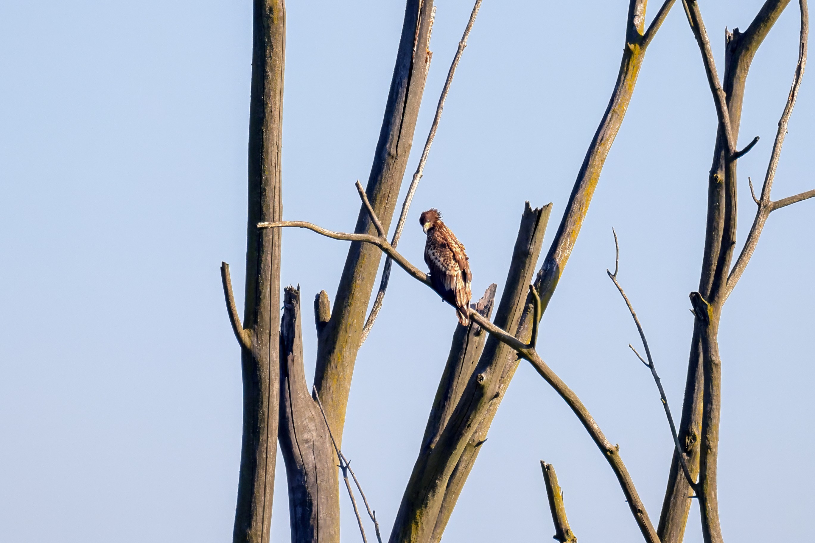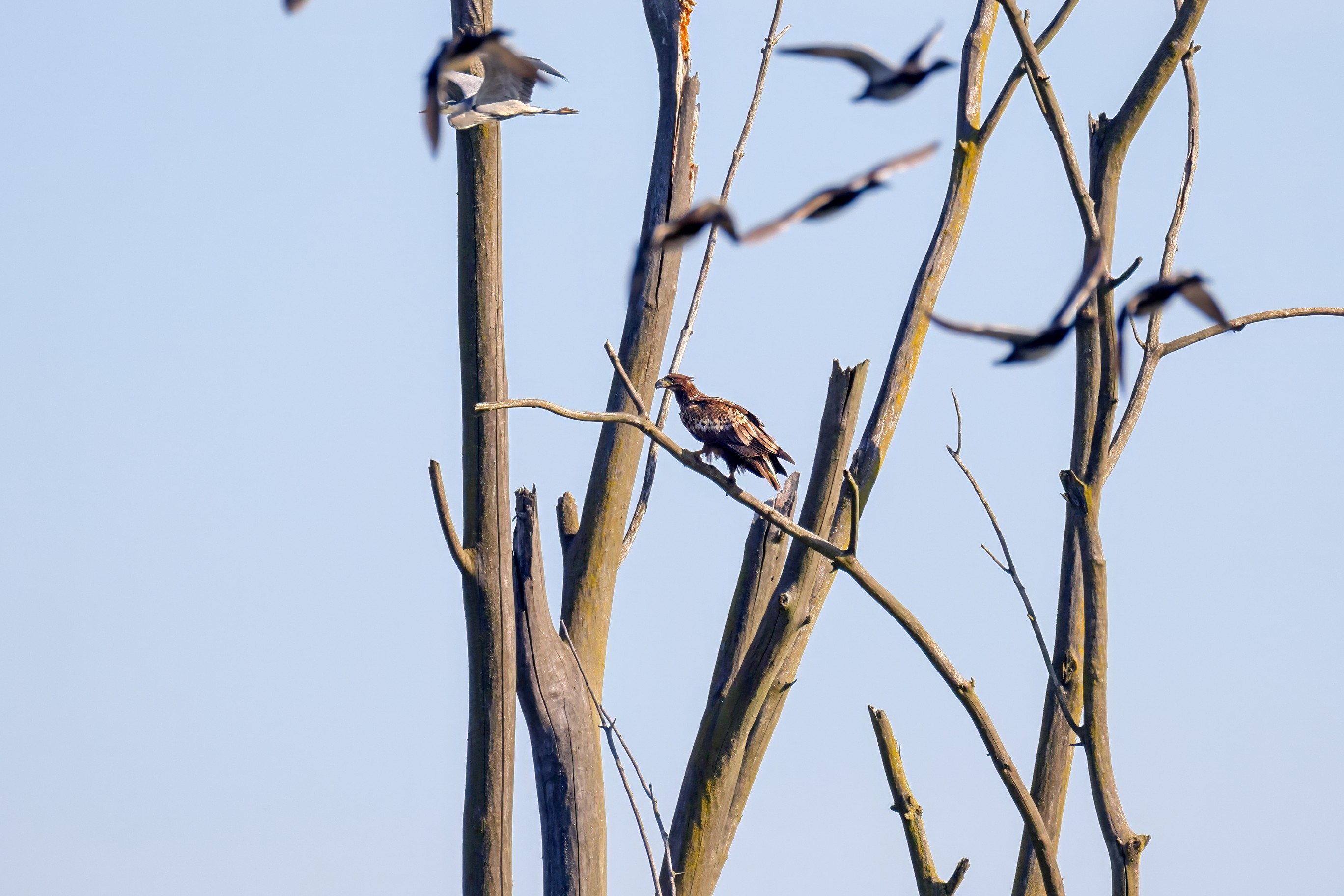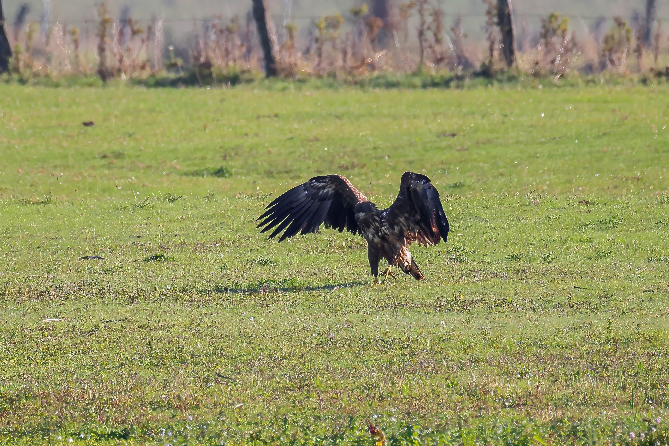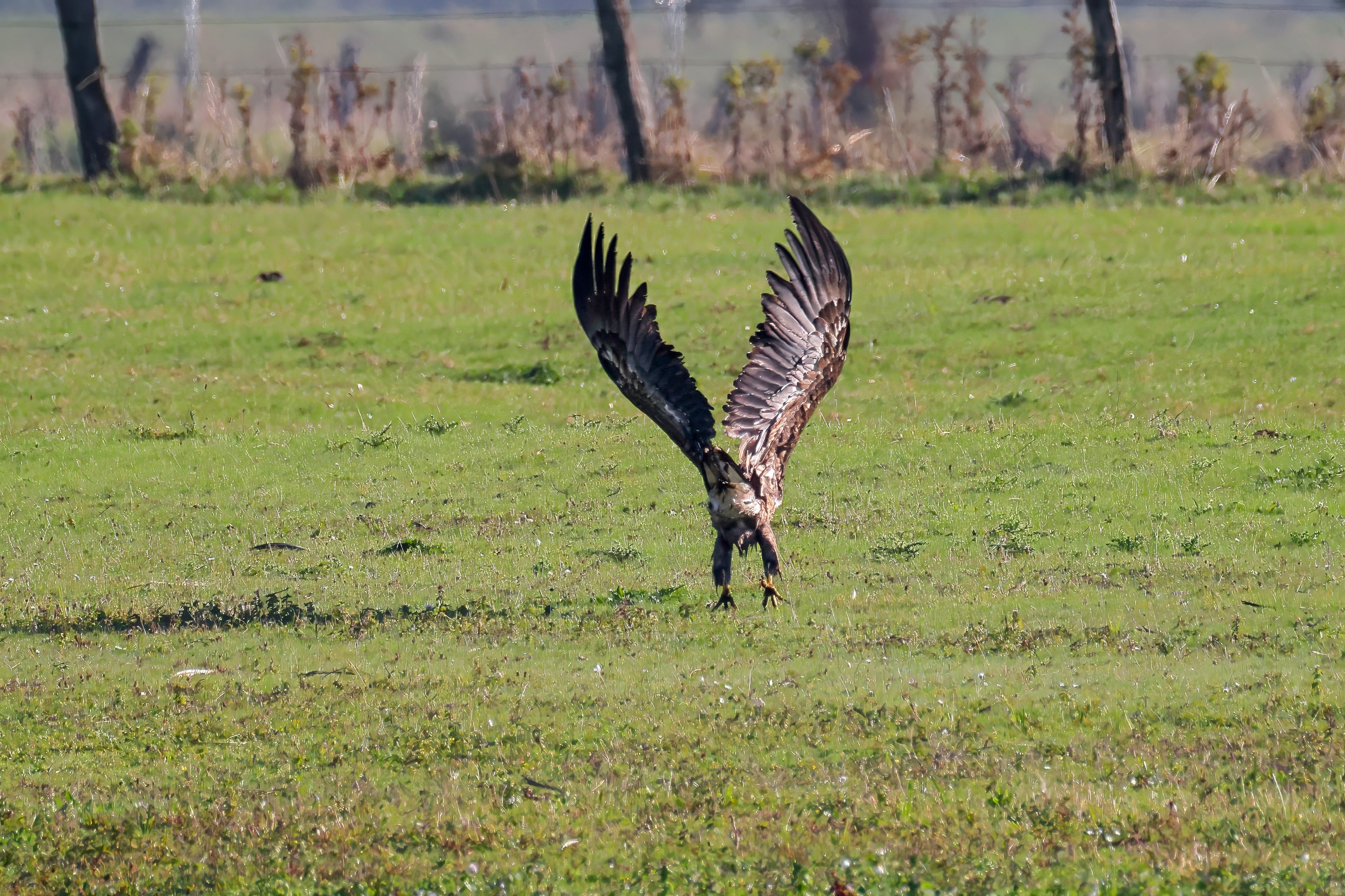 Ein besonders eindrucksvolles Erlebnis bot sich beim Versuch eine junge Nilgans zu erbeuten. Die entschlossene Abwehr der Nilganseltern überraschte den jungen Adler sichtlich und brachte ihm eine deutliche Lektion ein. Aus dieser Niederlage wird er lernen müssen künftig eine überlegtere Strategie zu wählen, wenn er sich an wehrhaft umsorgte Beute heranwagt.