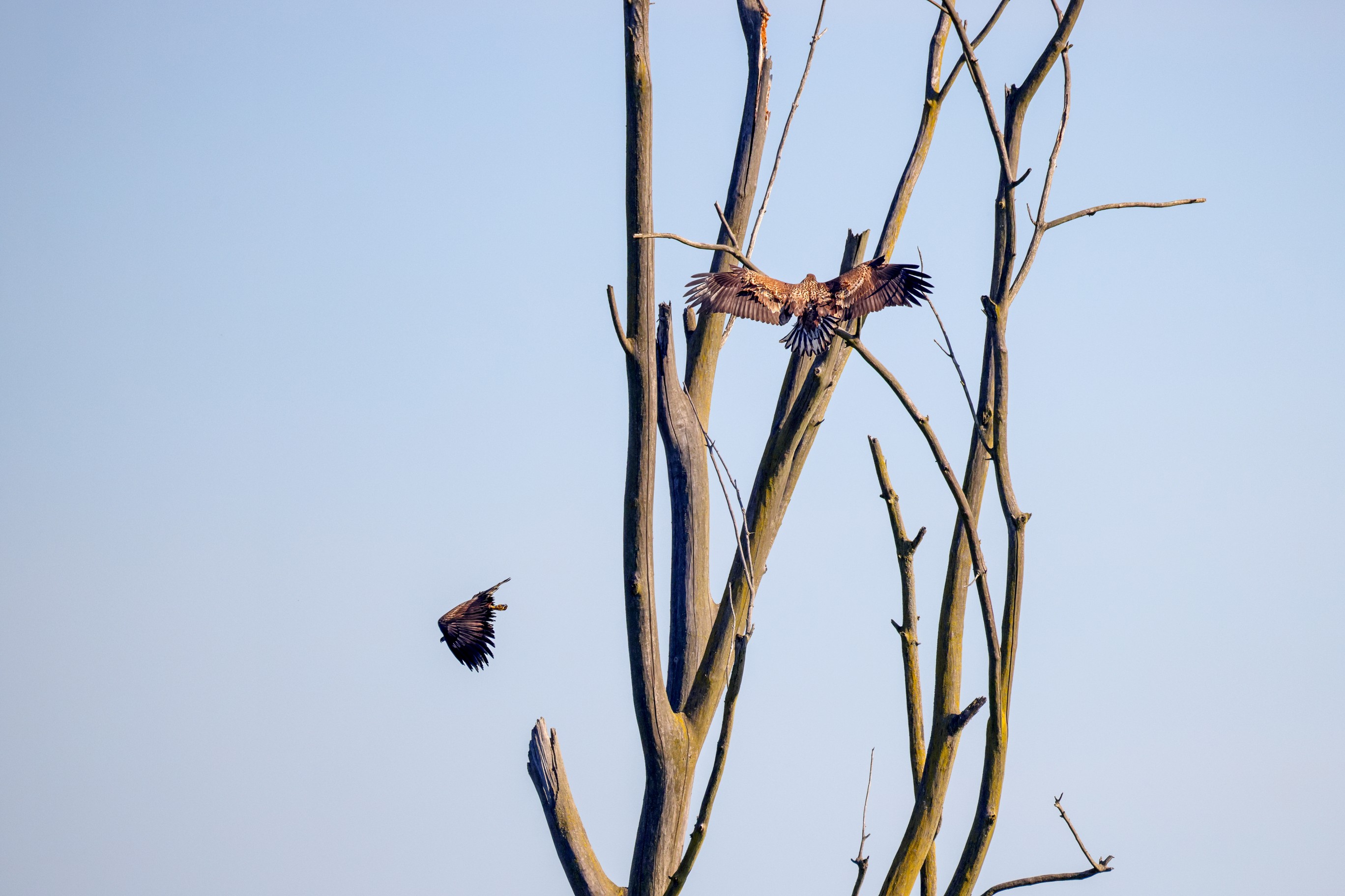 Die jungen Seeadler haben sich prächtig entwickelt. Mit wachsendem Selbstvertrauen kümmern sie sich nun zunehmend um ihre eigene Versorgung. Noch vor ihrem Abflug in die große Freiheit, der für das Monatsende erwartet wird, kann man sie dabei beobachten wie sie wertvolle Erfahrungen sammeln.