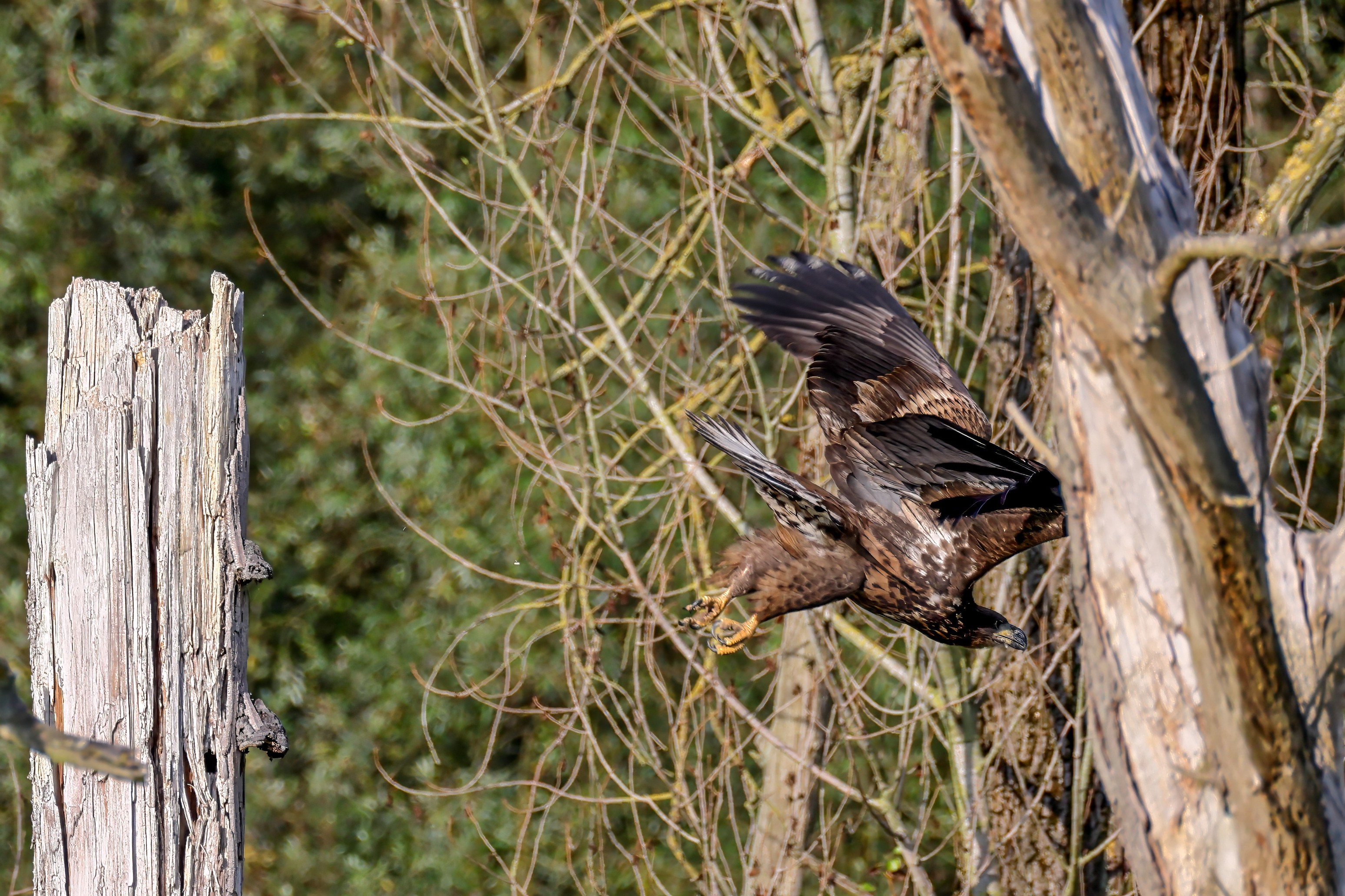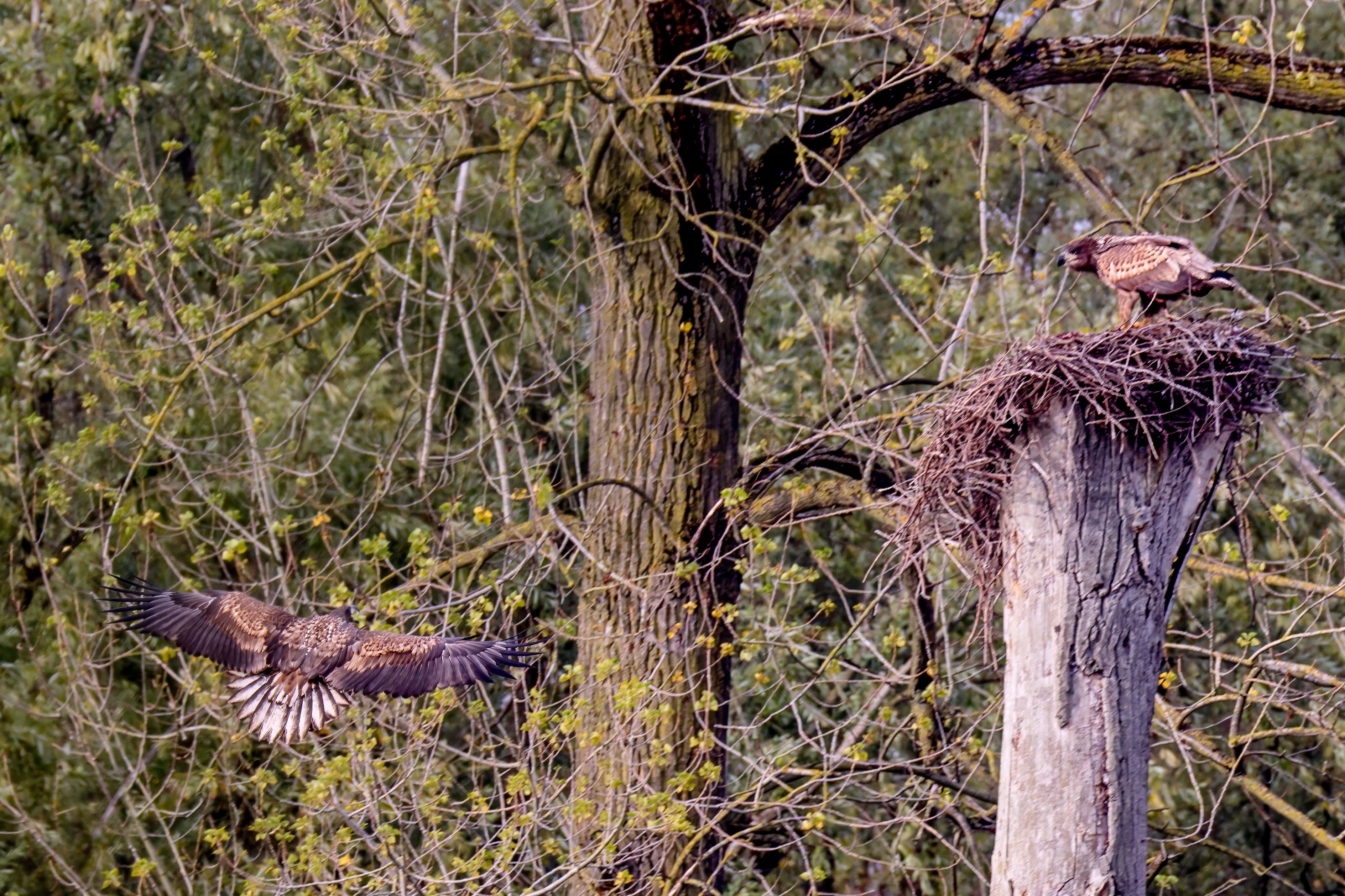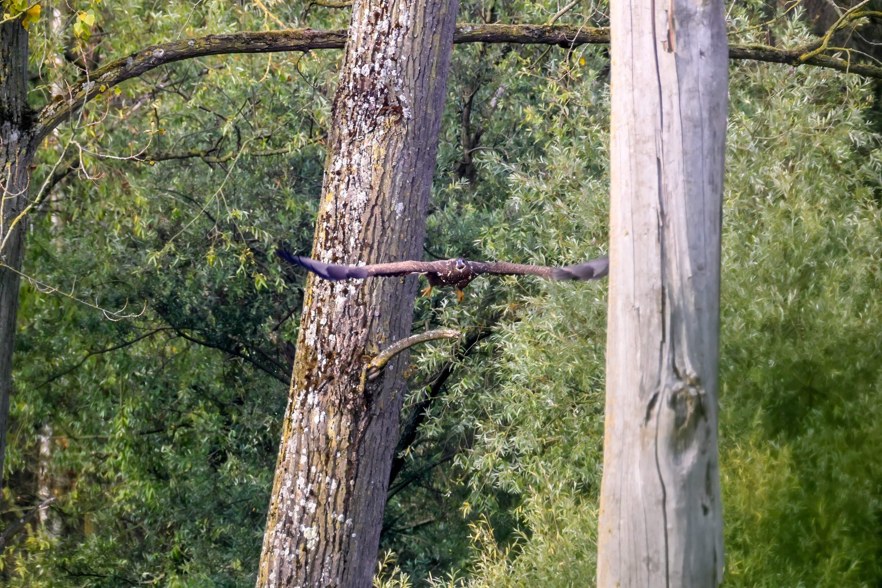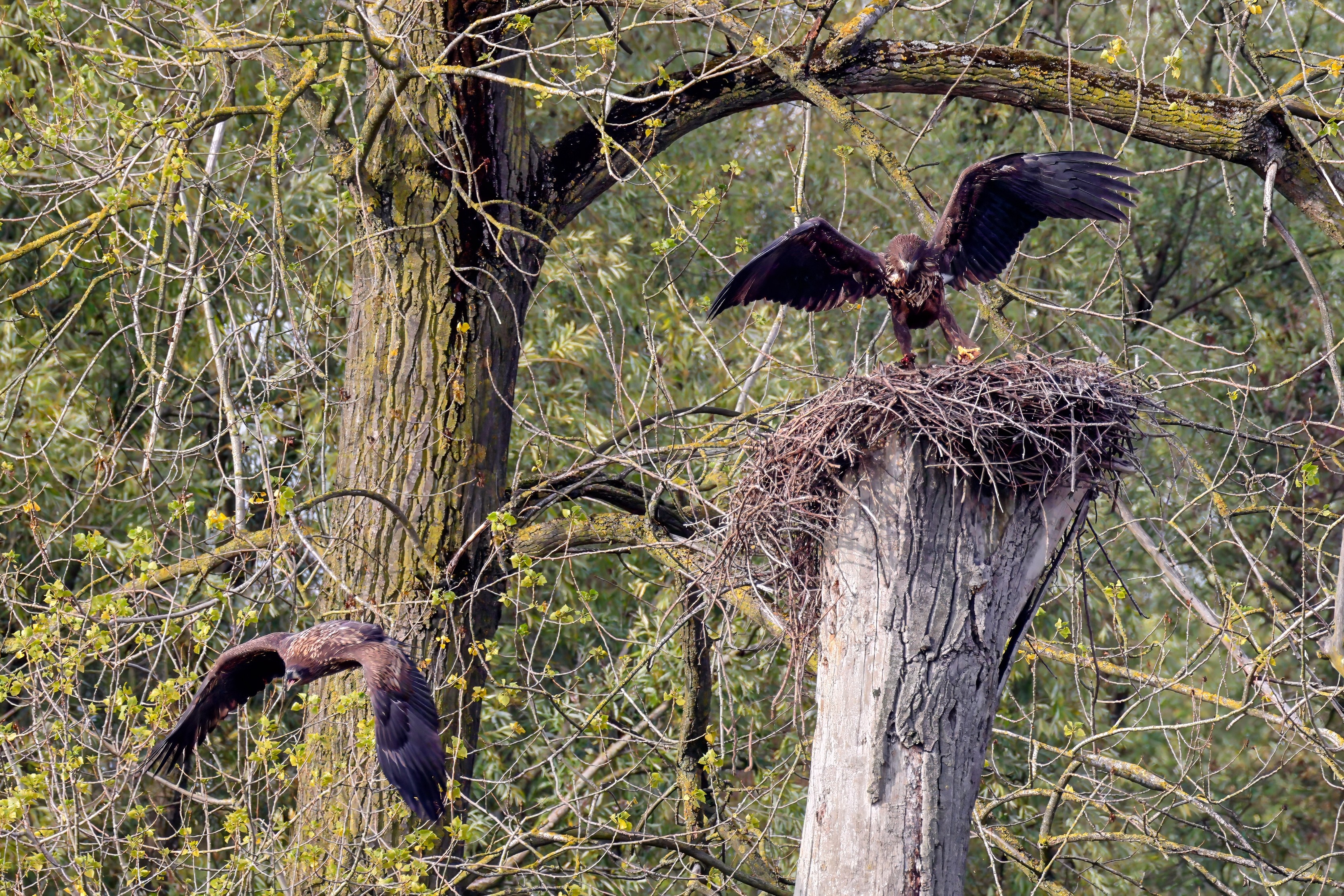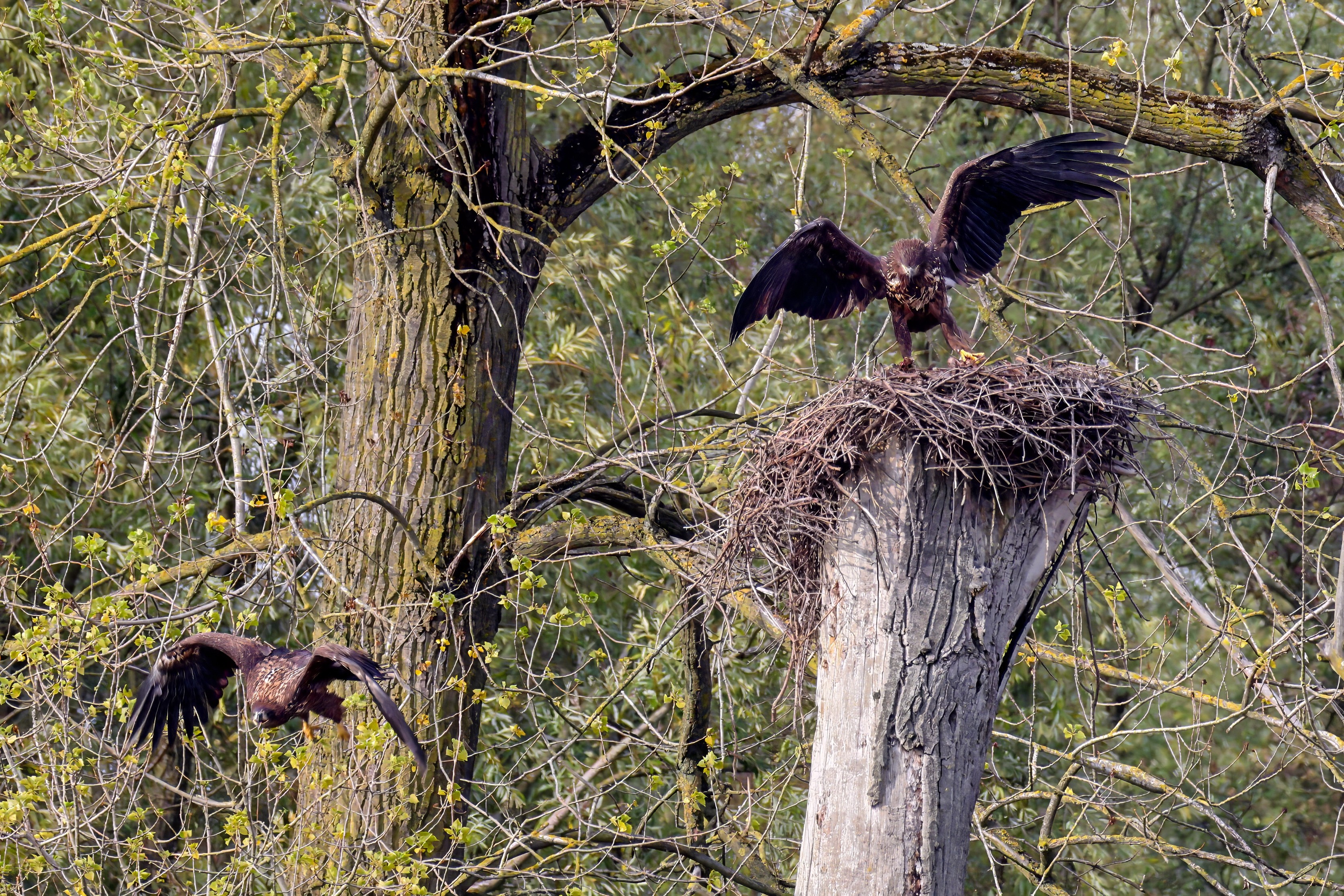 In der warmen Jahreszeit lohnt sich ein genauer Blick auf die Jungseeadler der Bislicher Insel. Sie haben sich prächtig entwickelt und zeigen inzwischen beeindruckende Flugkünste.