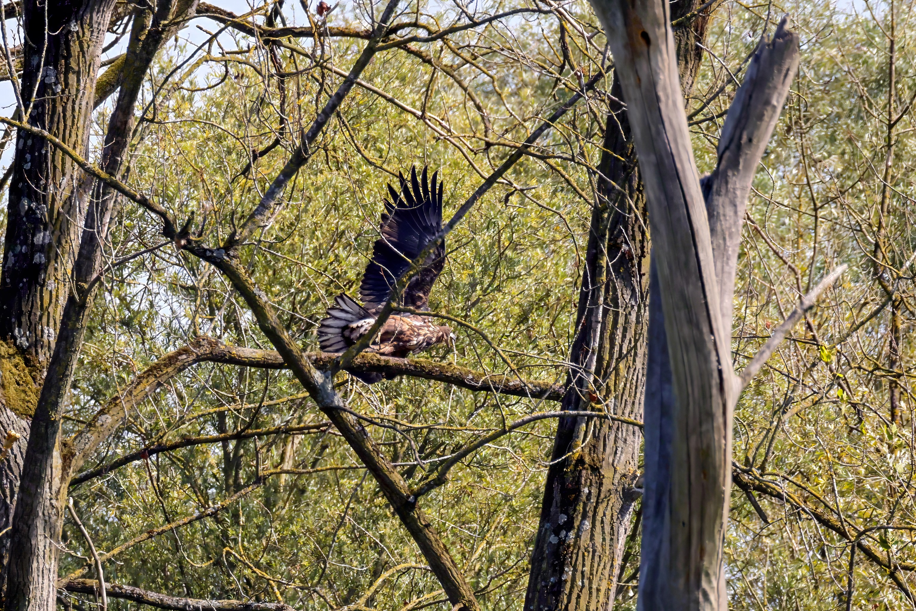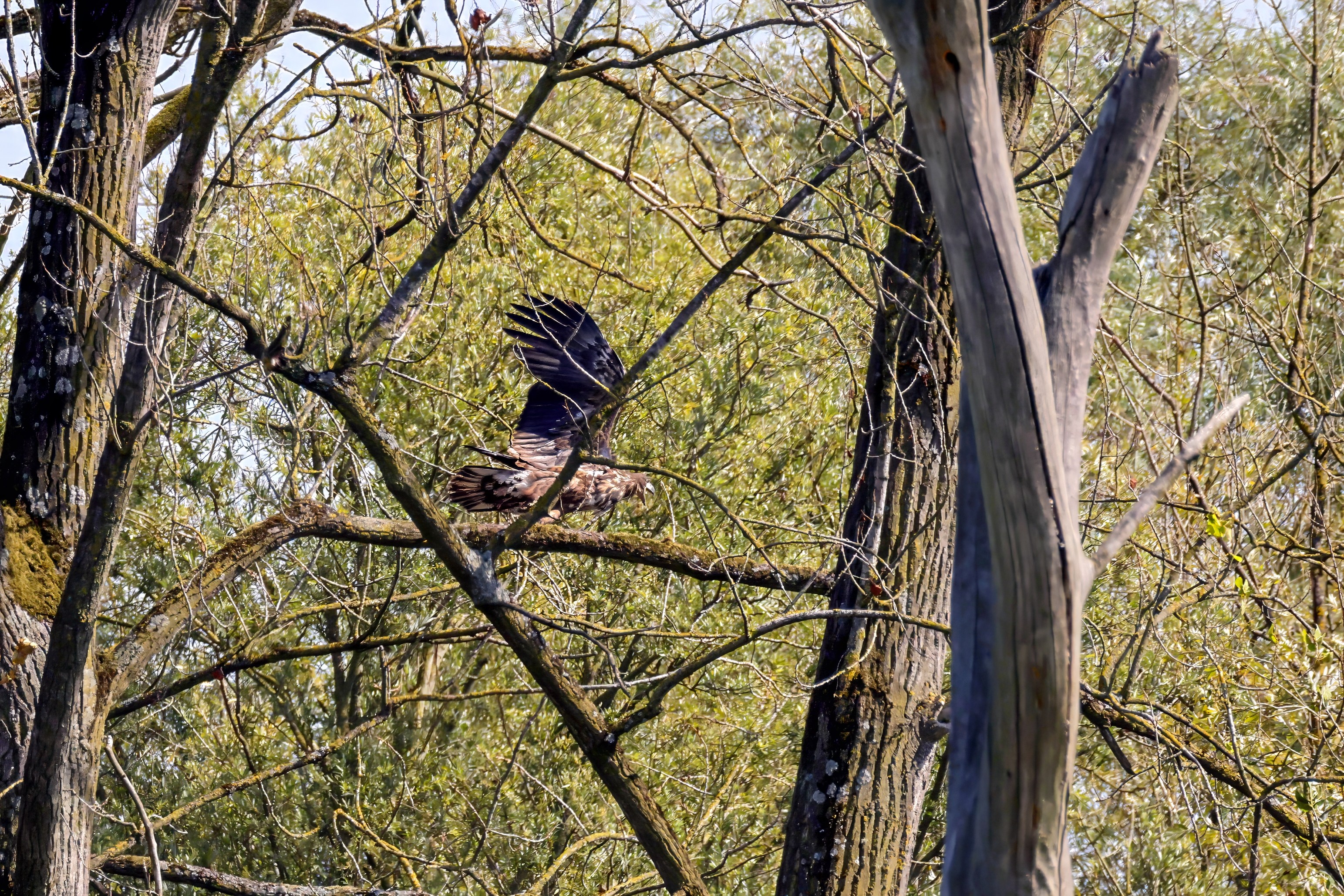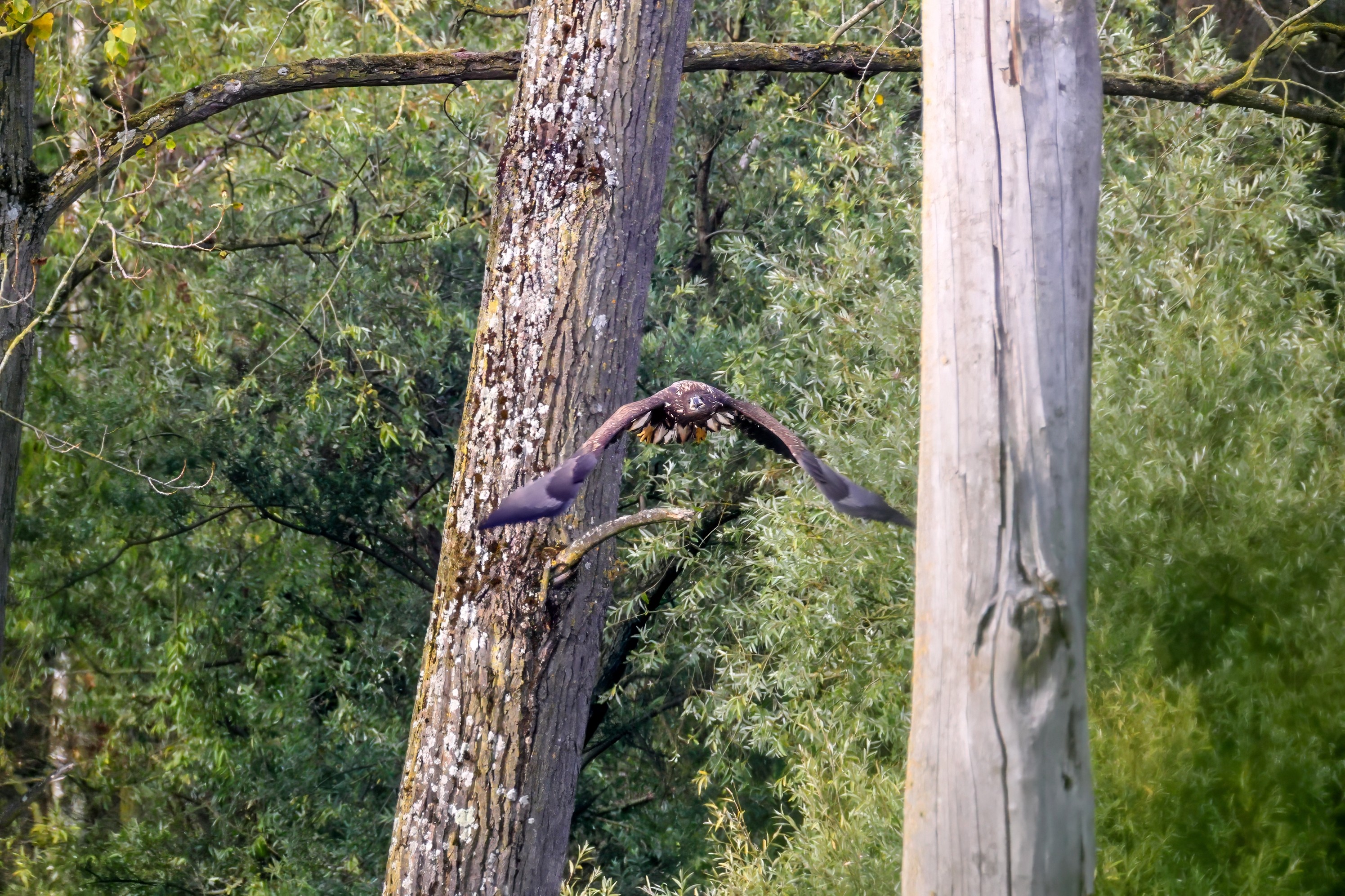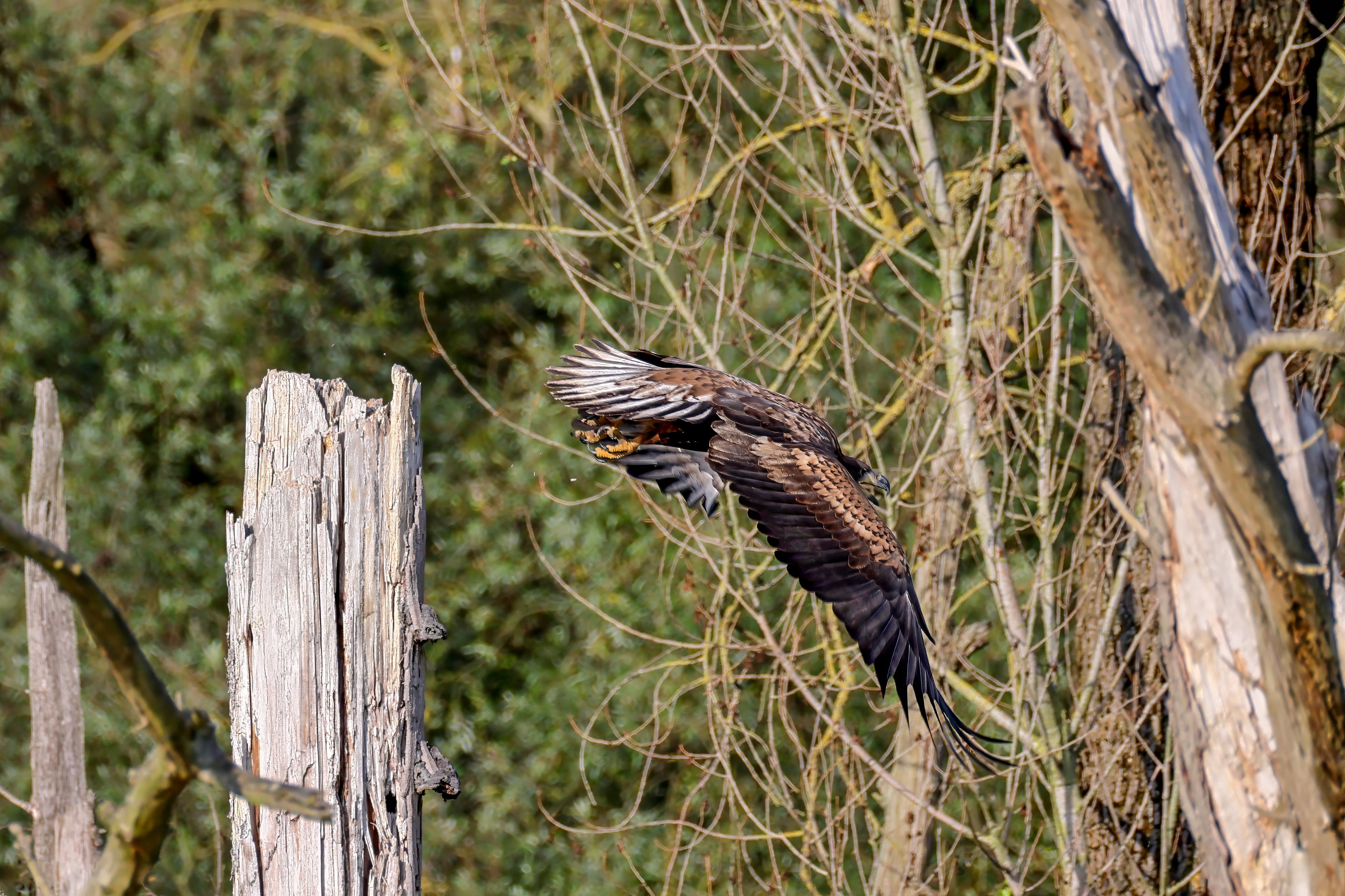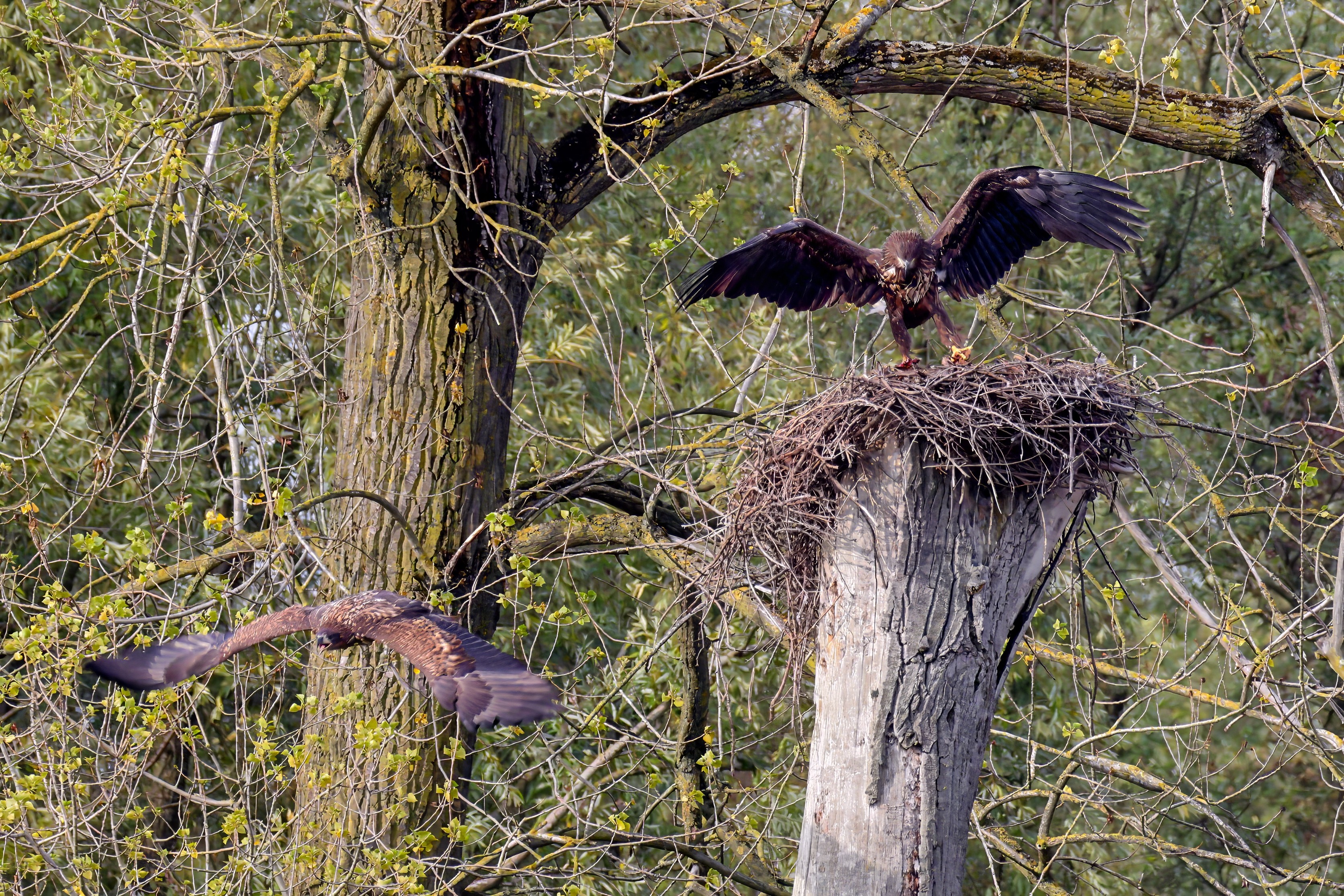 In der warmen Jahreszeit lohnt sich ein genauer Blick auf die Jungseeadler der Bislicher Insel. Sie haben sich prächtig entwickelt und zeigen inzwischen beeindruckende Flugkünste.