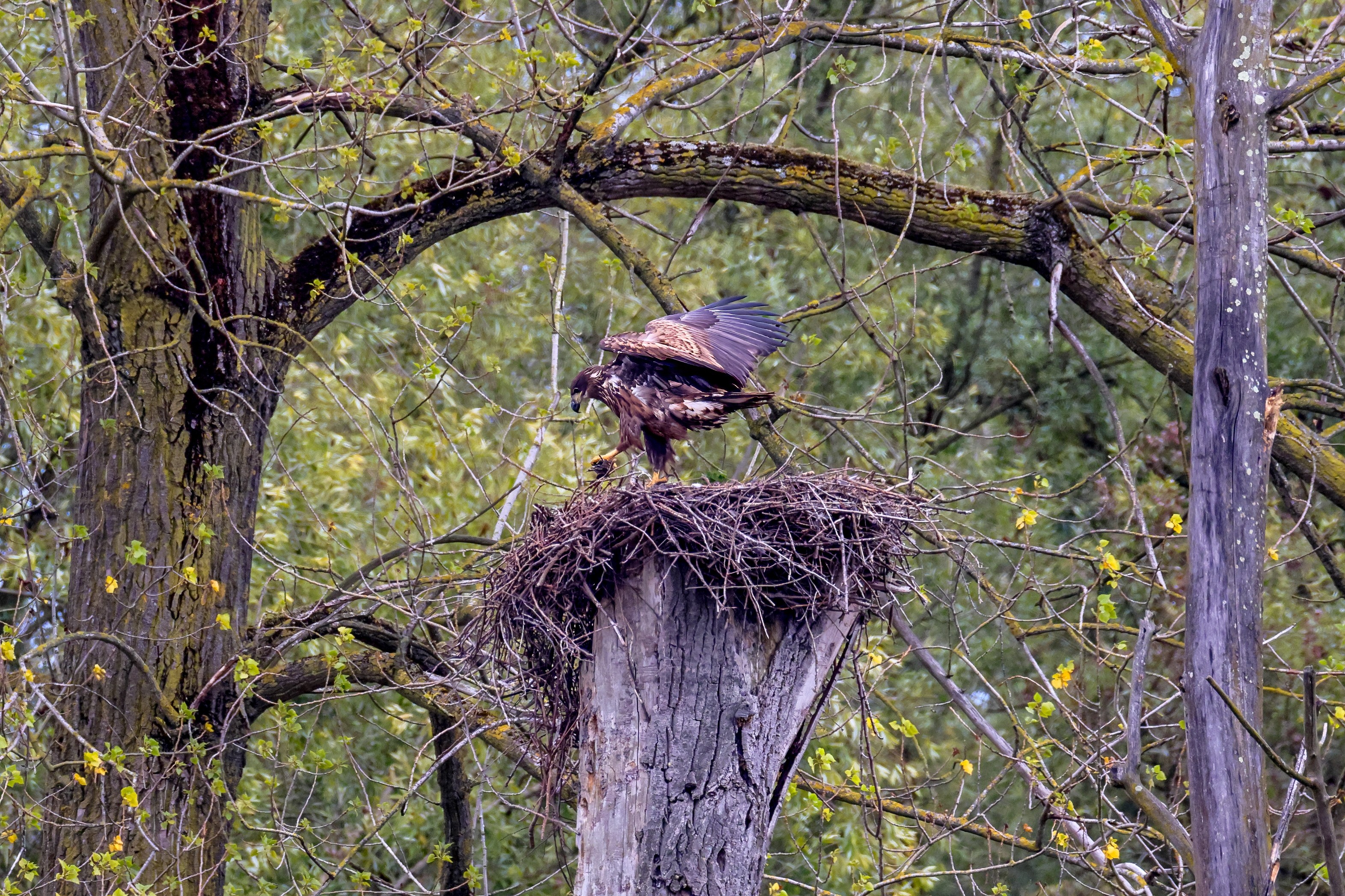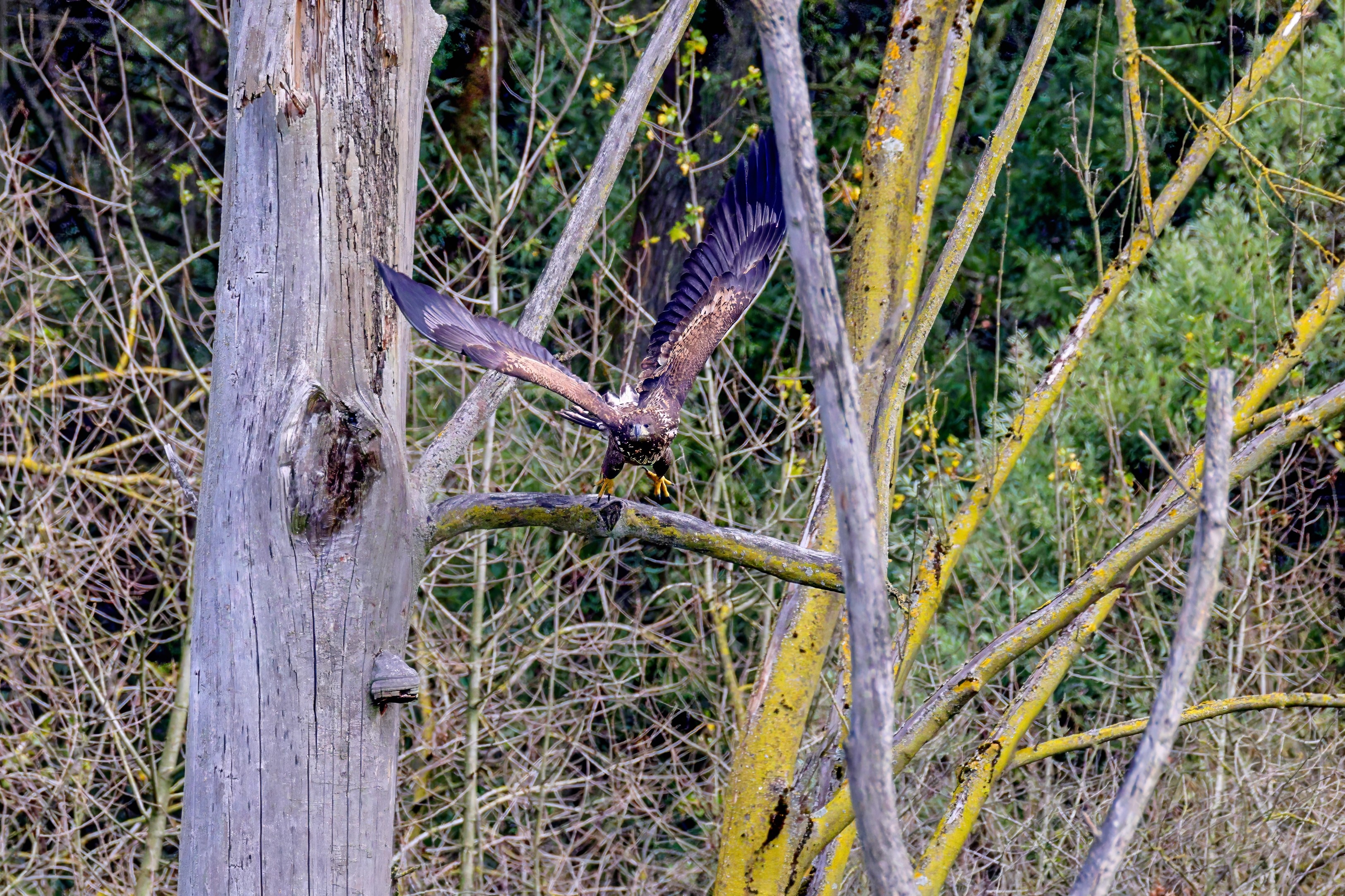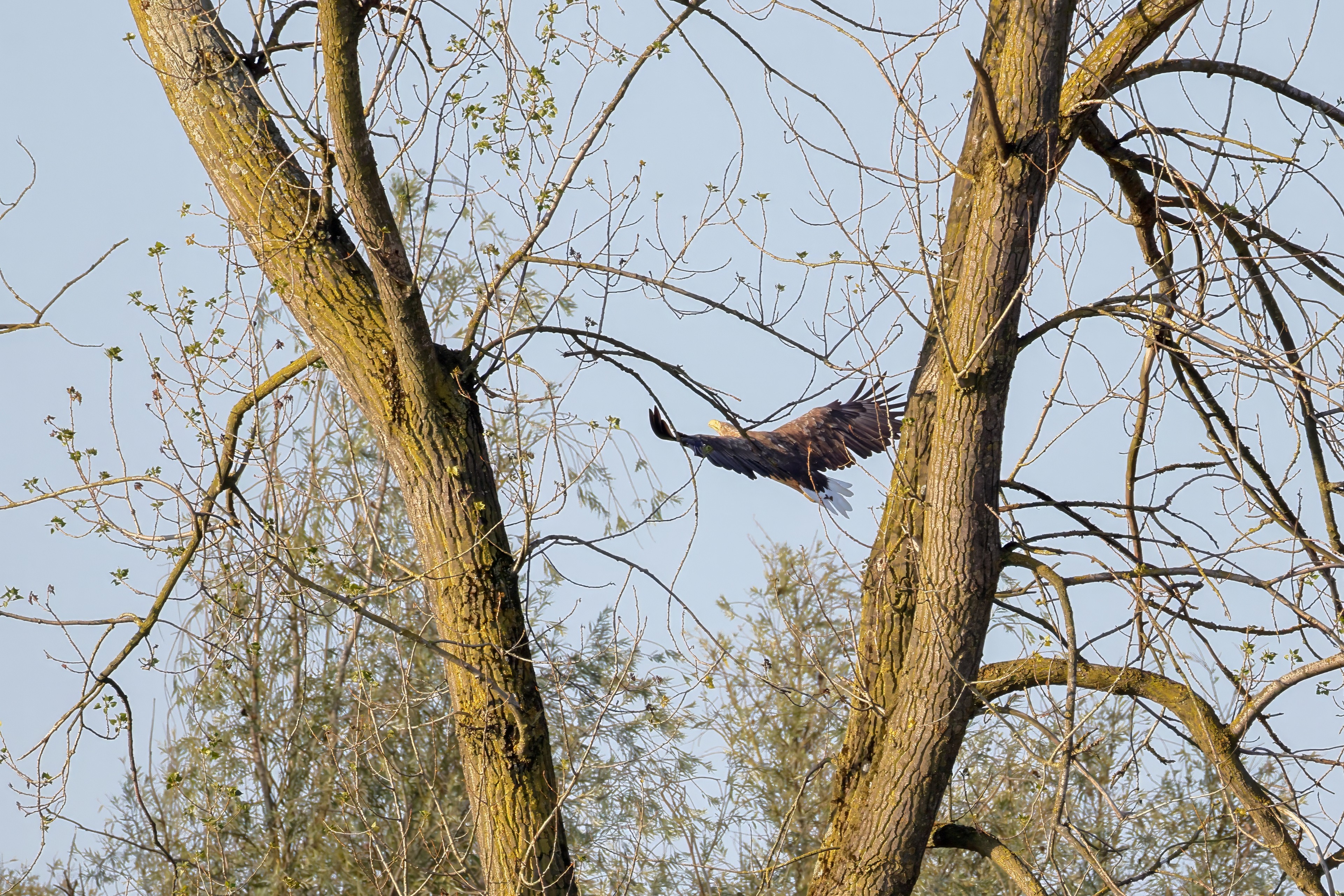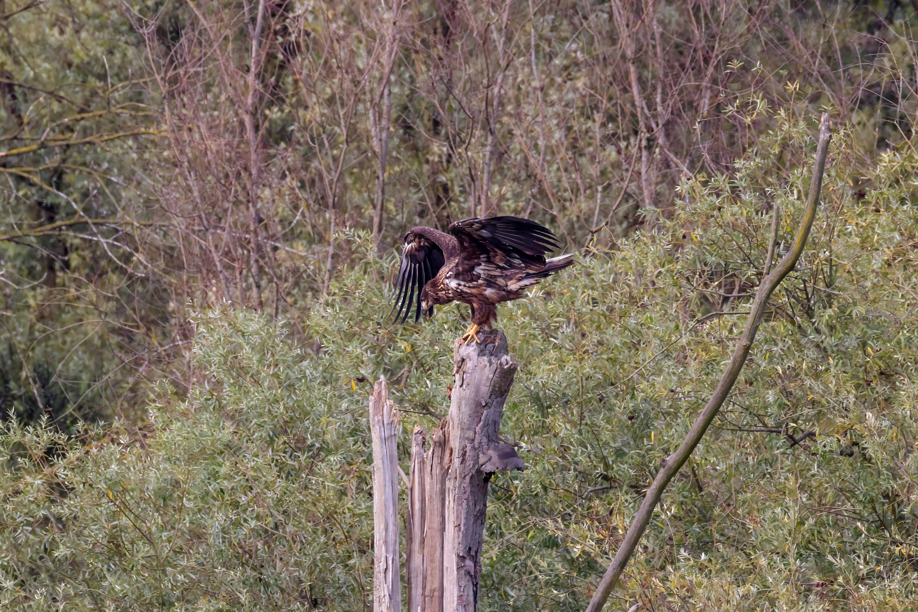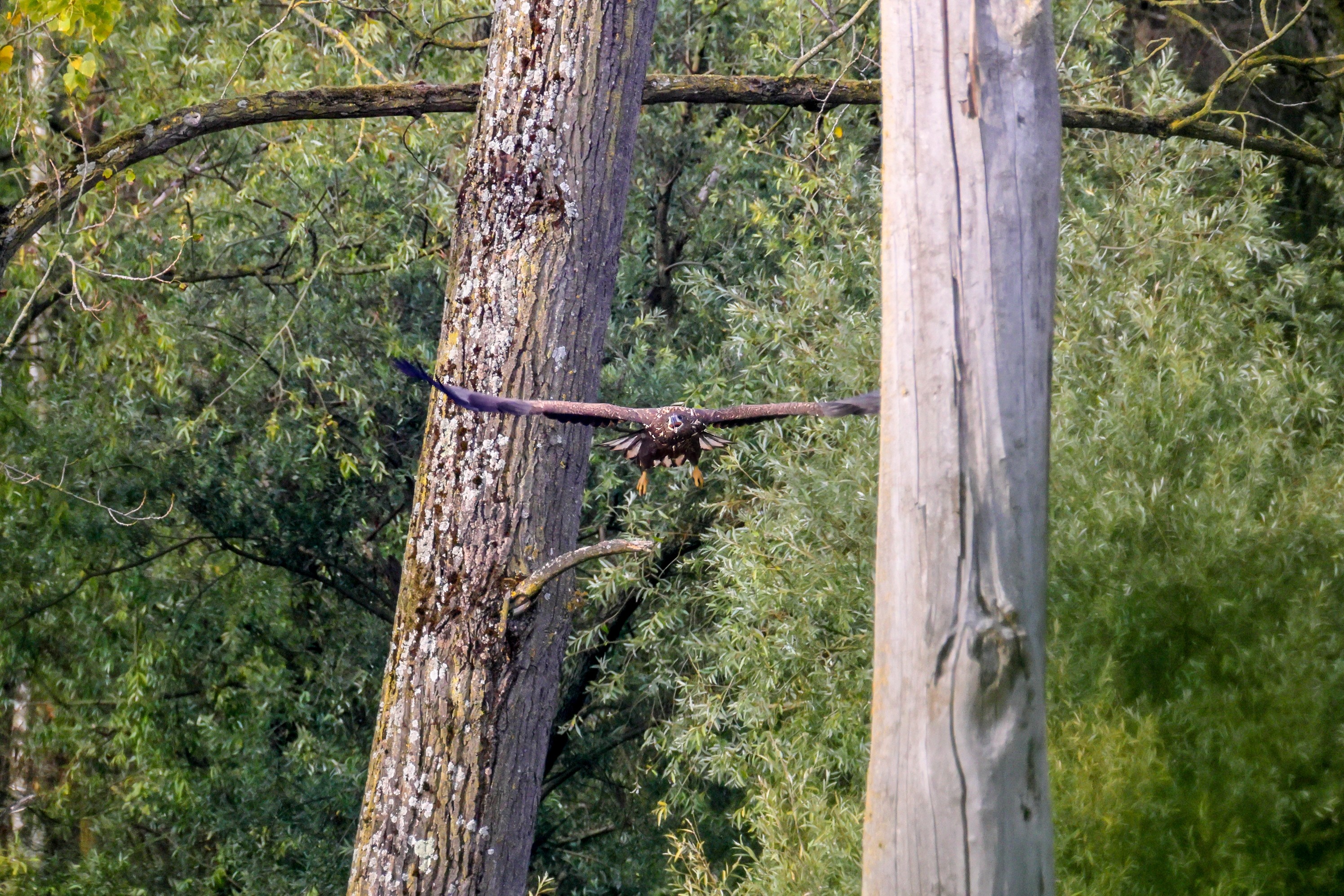 In der warmen Jahreszeit lohnt sich ein genauer Blick auf die Jungseeadler der Bislicher Insel. Sie haben sich prächtig entwickelt und zeigen inzwischen beeindruckende Flugkünste.