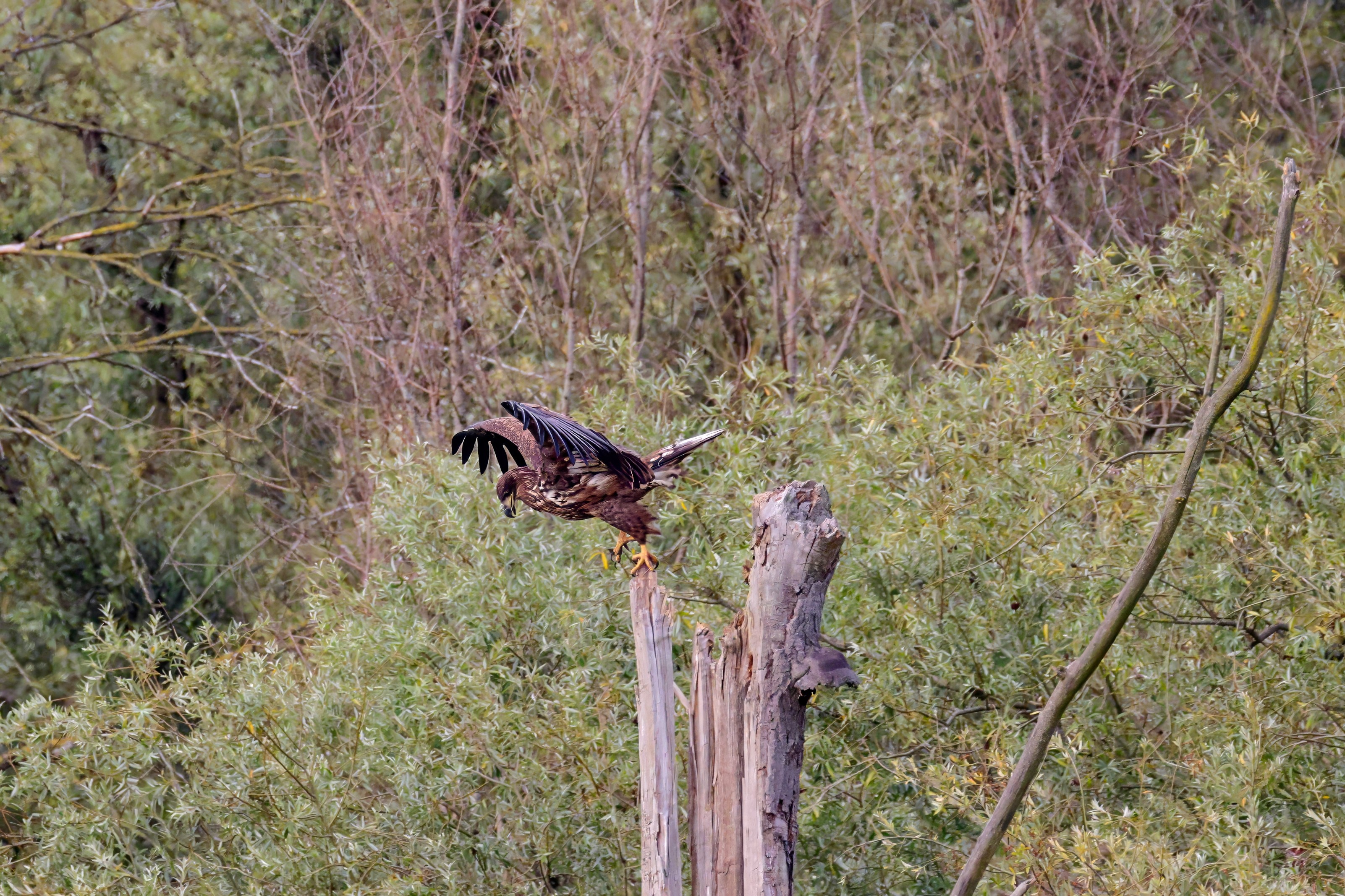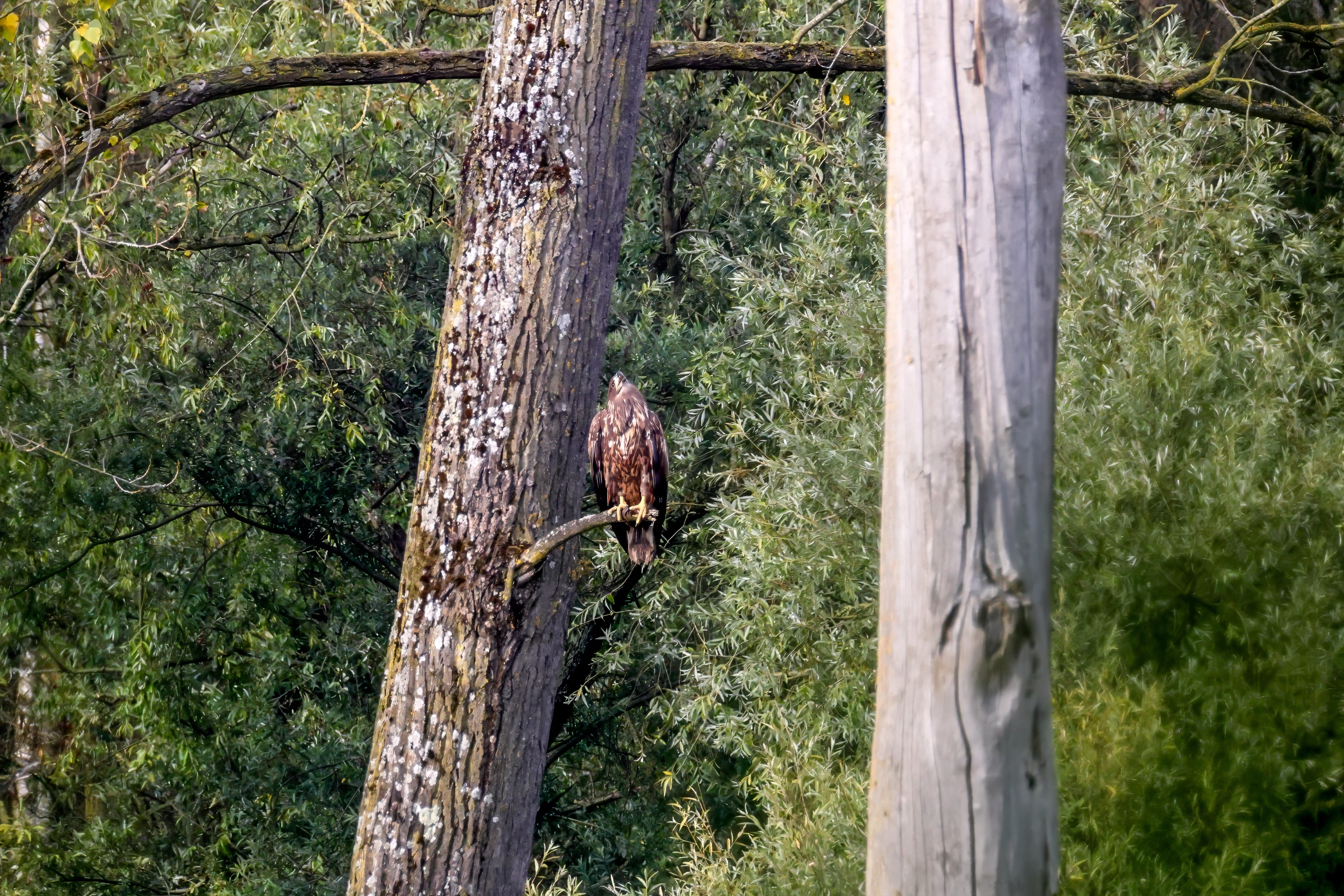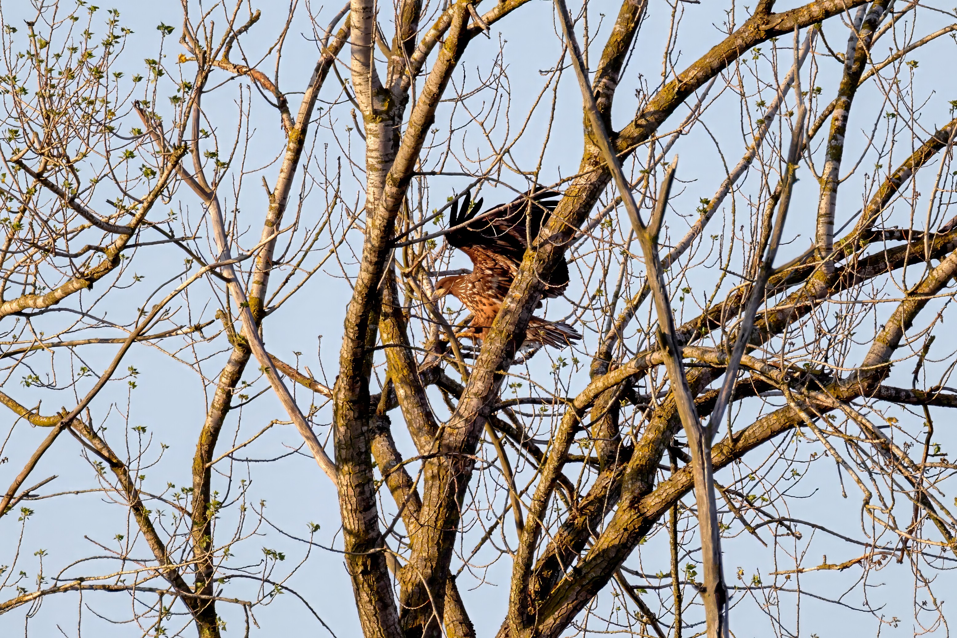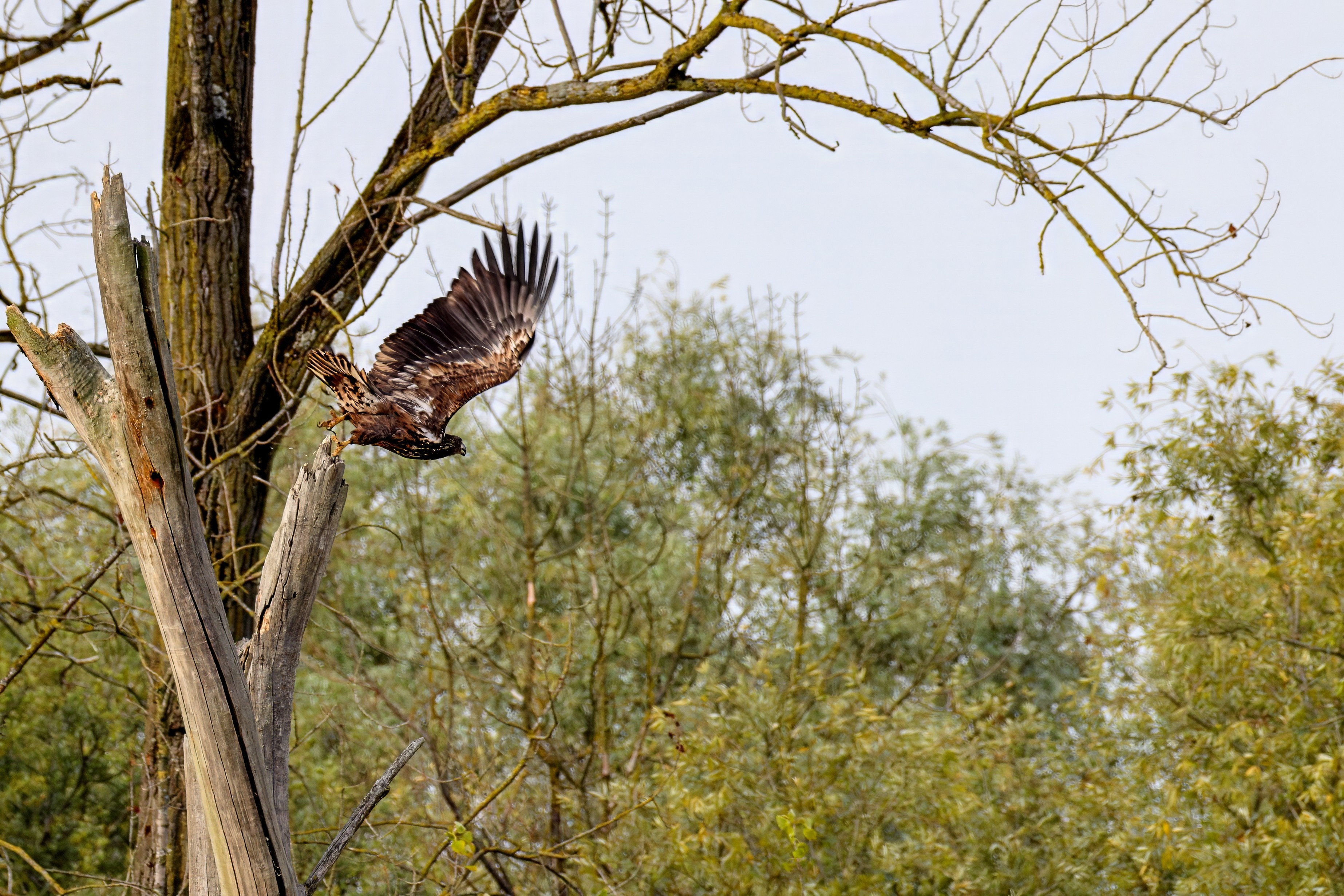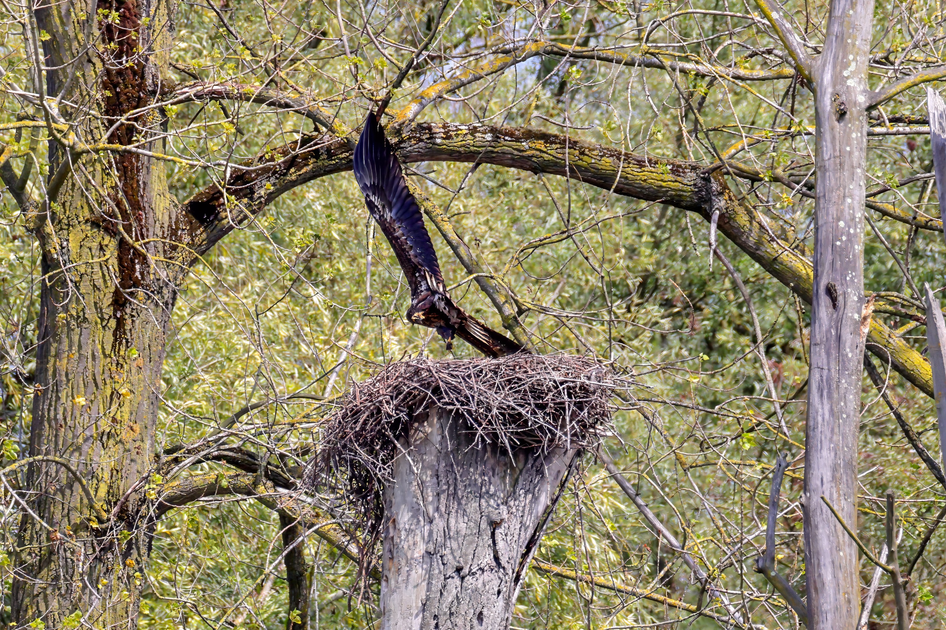 In der warmen Jahreszeit lohnt sich ein genauer Blick auf die Jungseeadler der Bislicher Insel. Sie haben sich prächtig entwickelt und zeigen inzwischen beeindruckende Flugkünste.