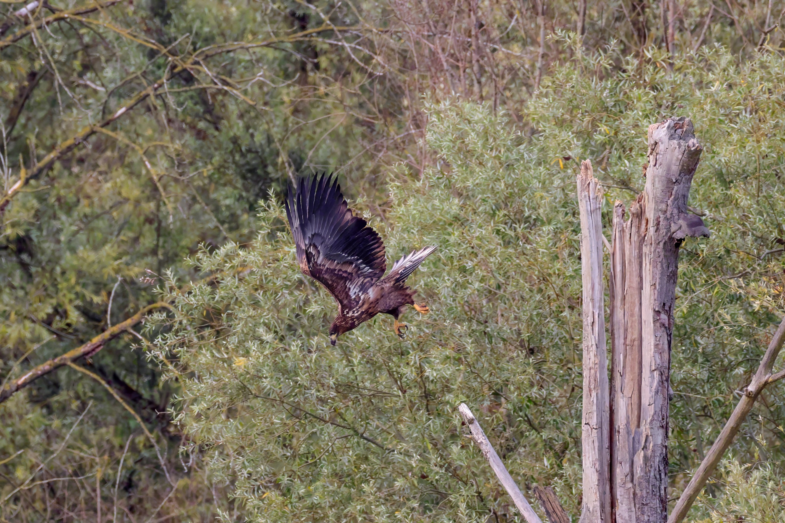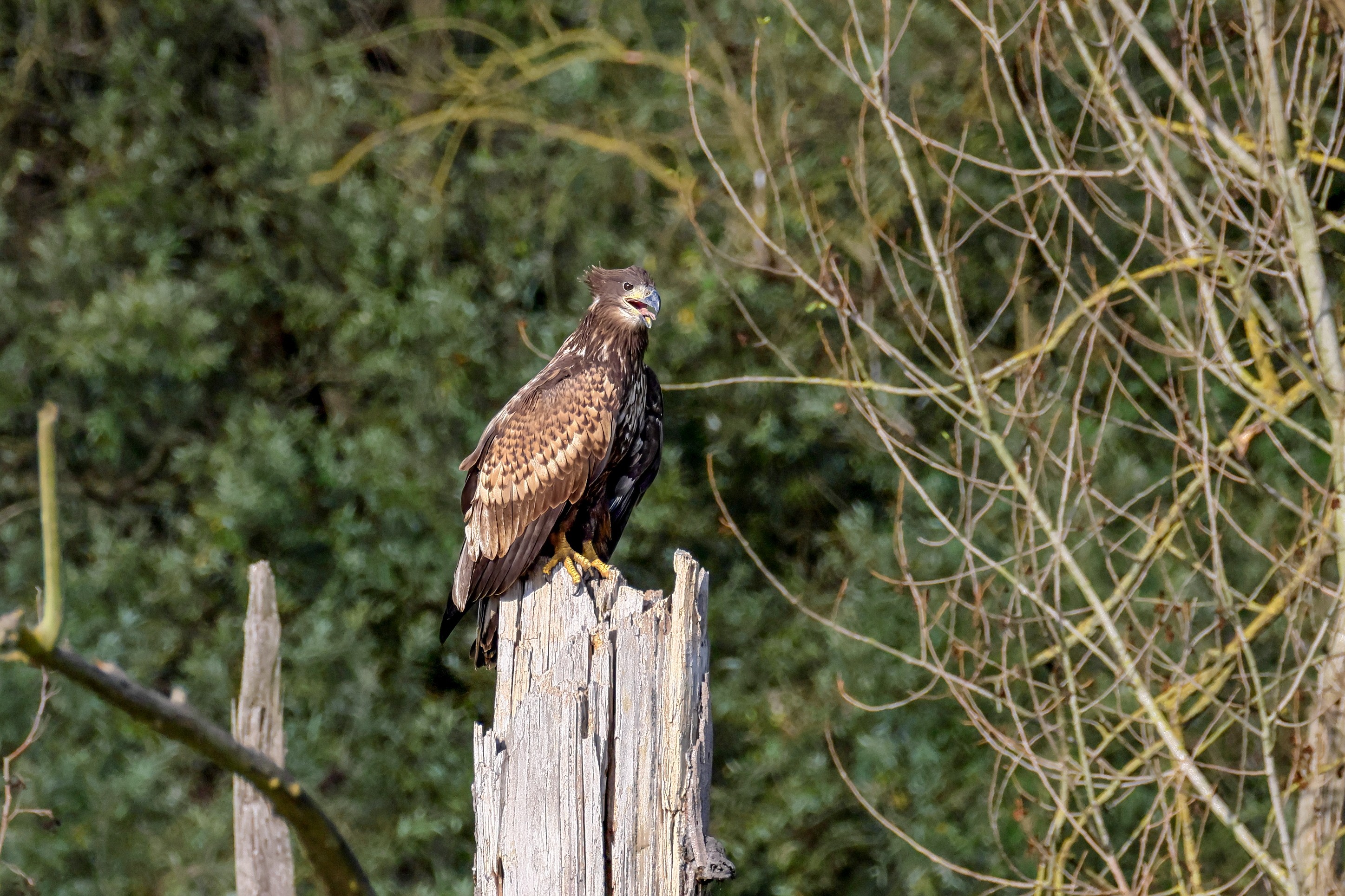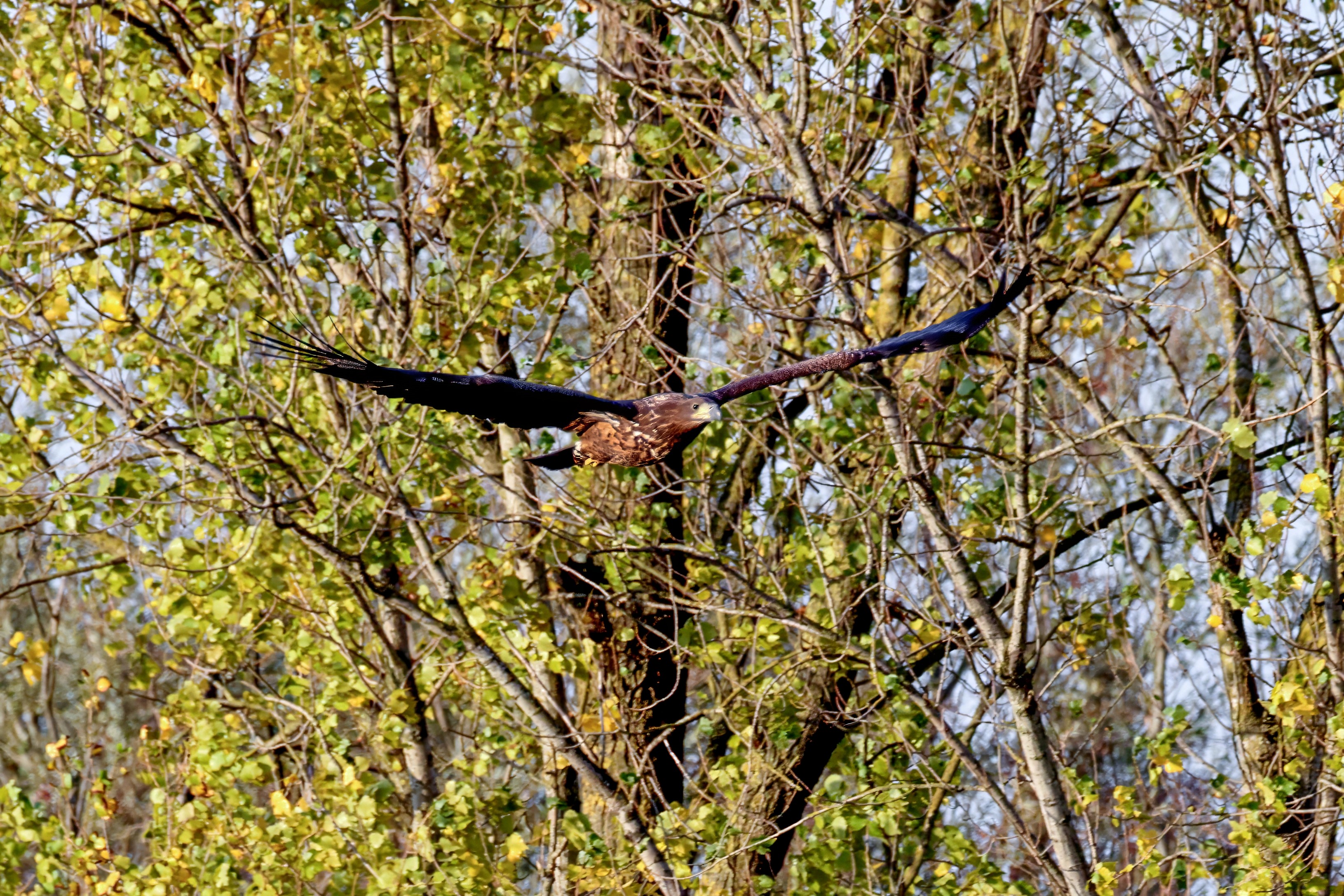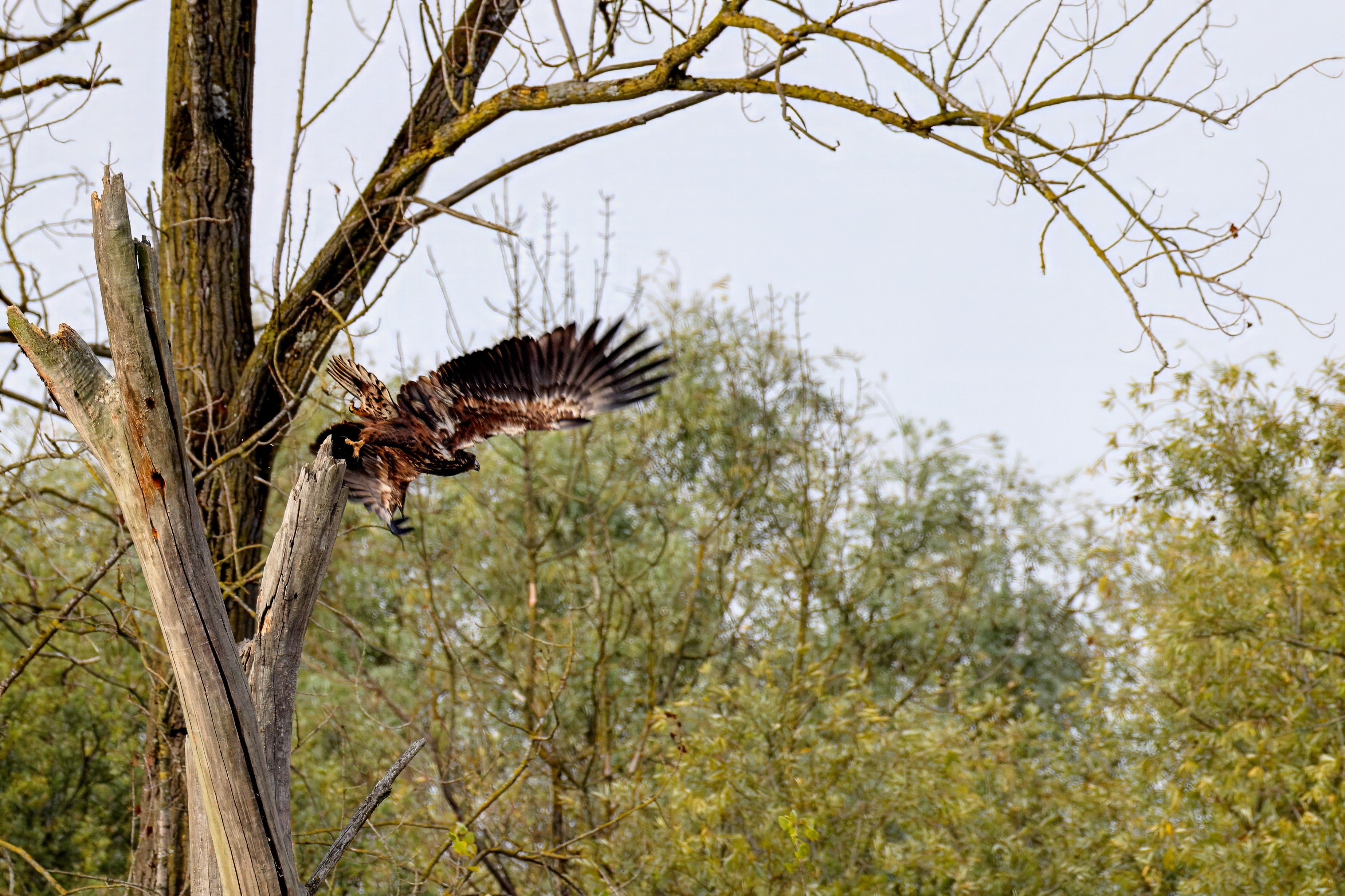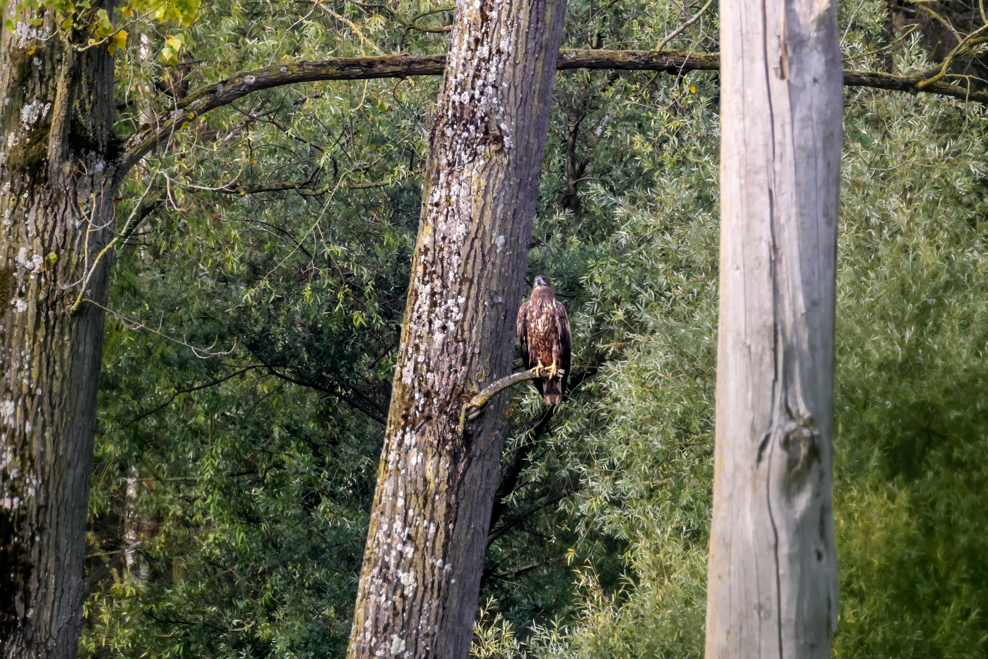 In der warmen Jahreszeit lohnt sich ein genauer Blick auf die Jungseeadler der Bislicher Insel. Sie haben sich prächtig entwickelt und zeigen inzwischen beeindruckende Flugkünste.
