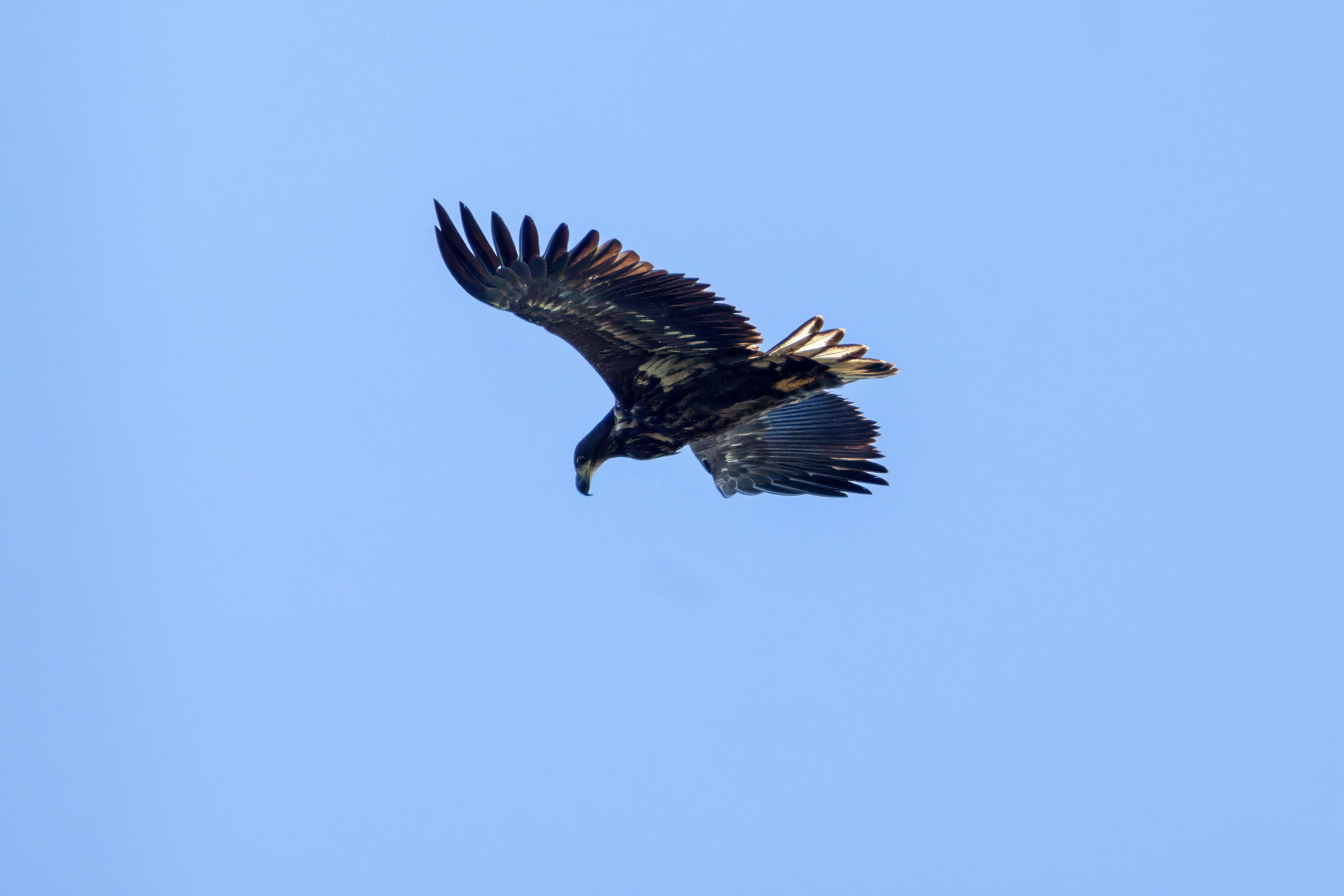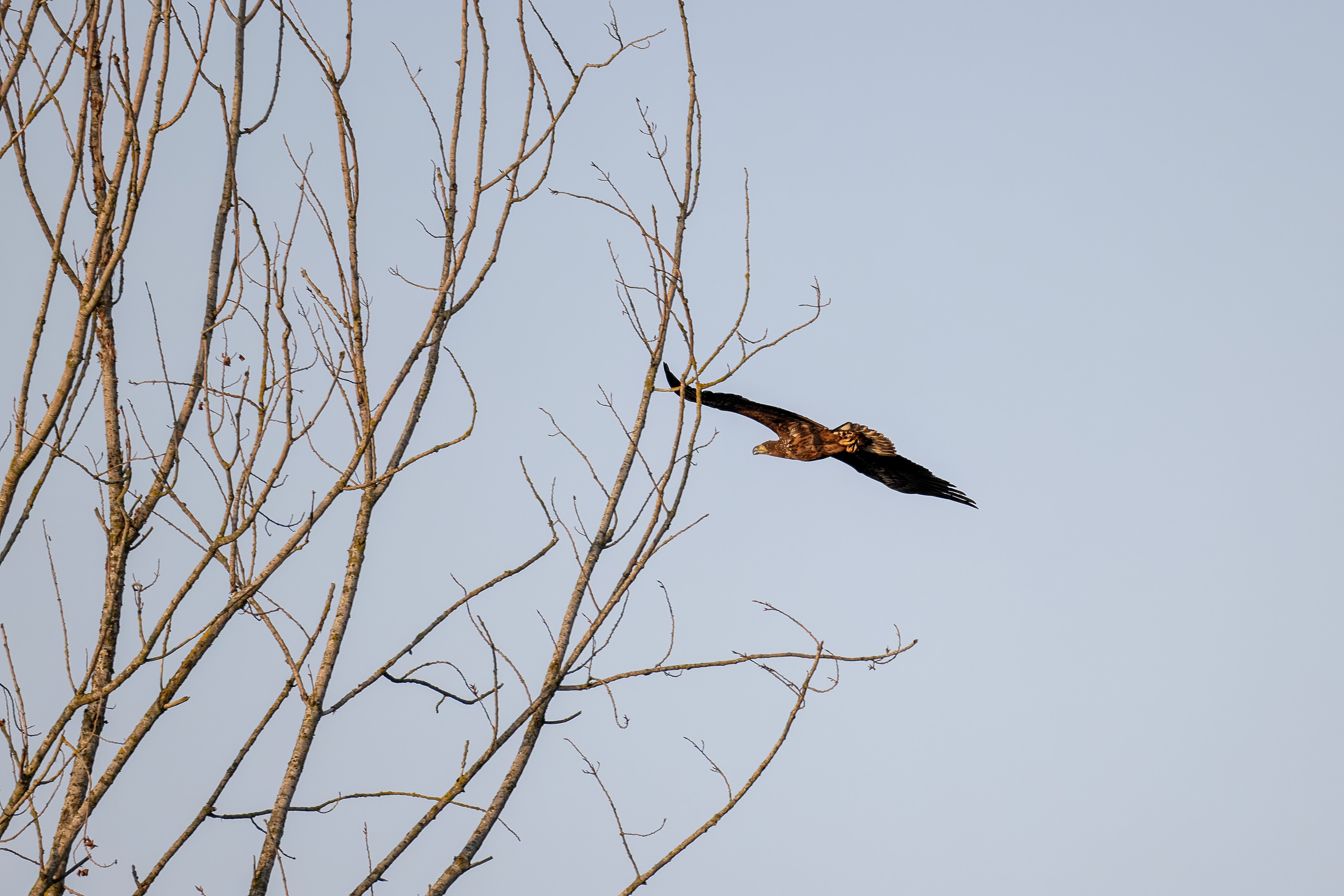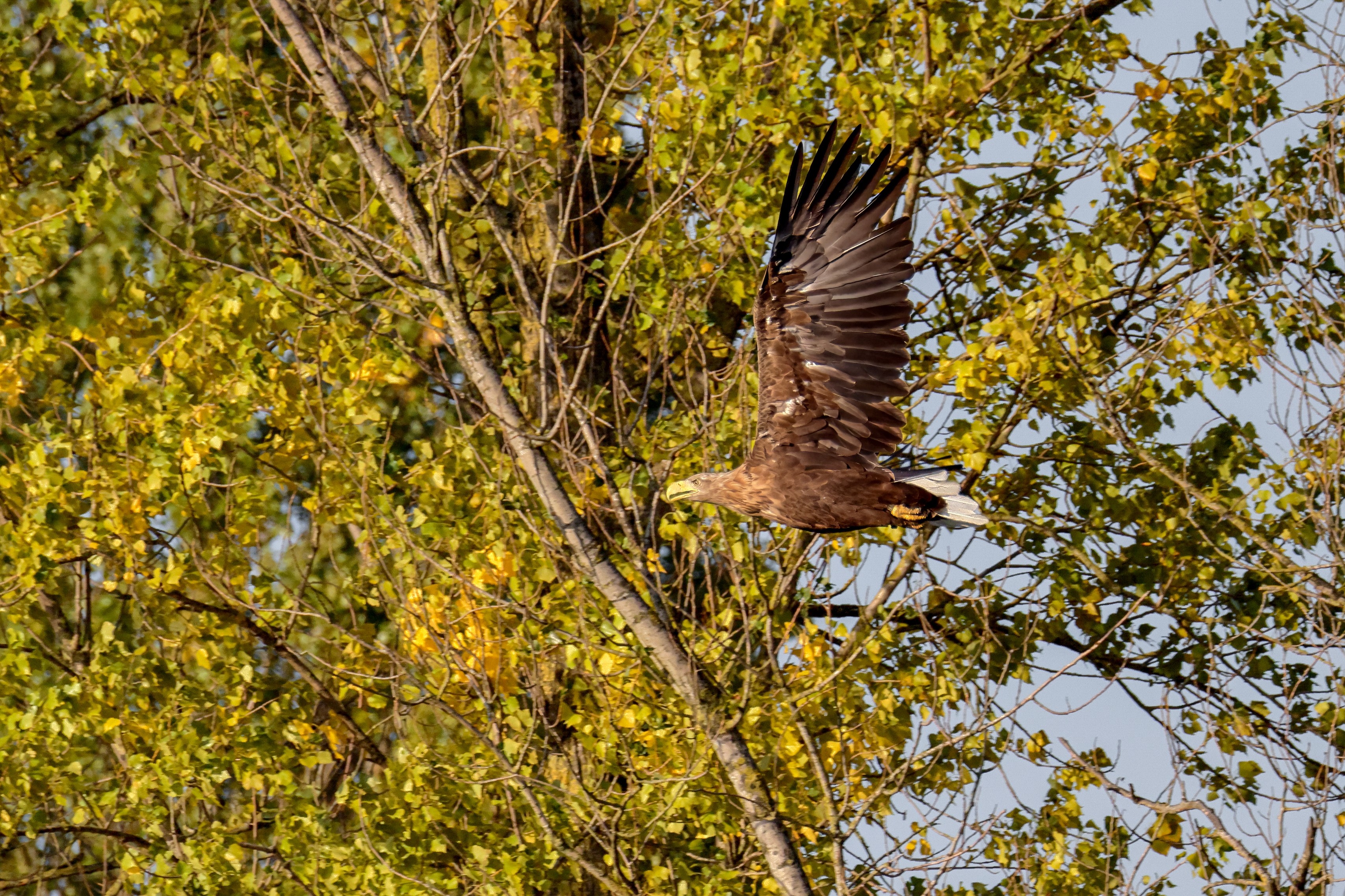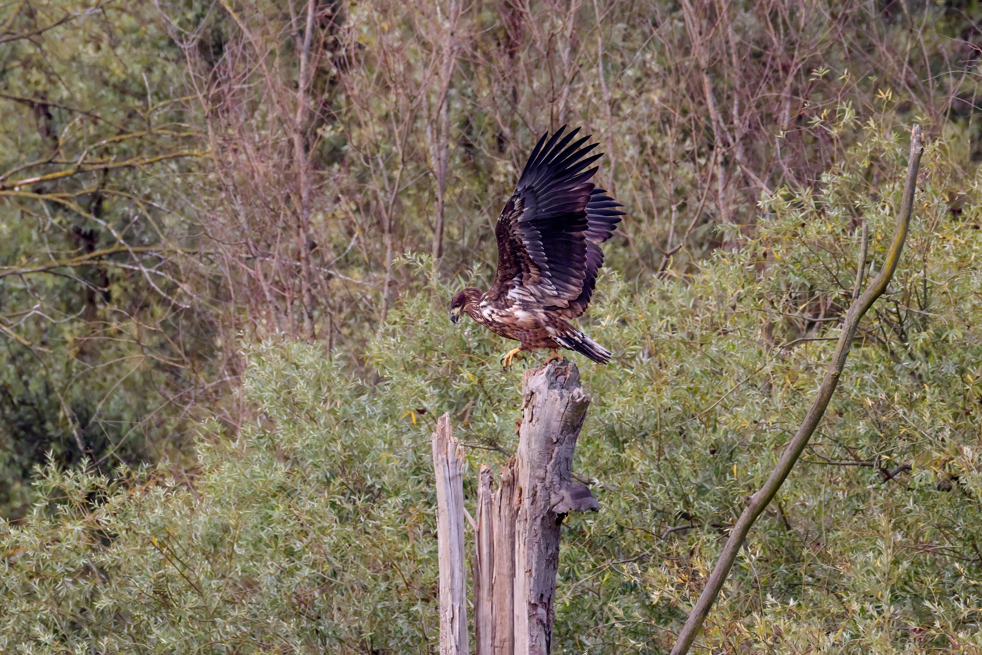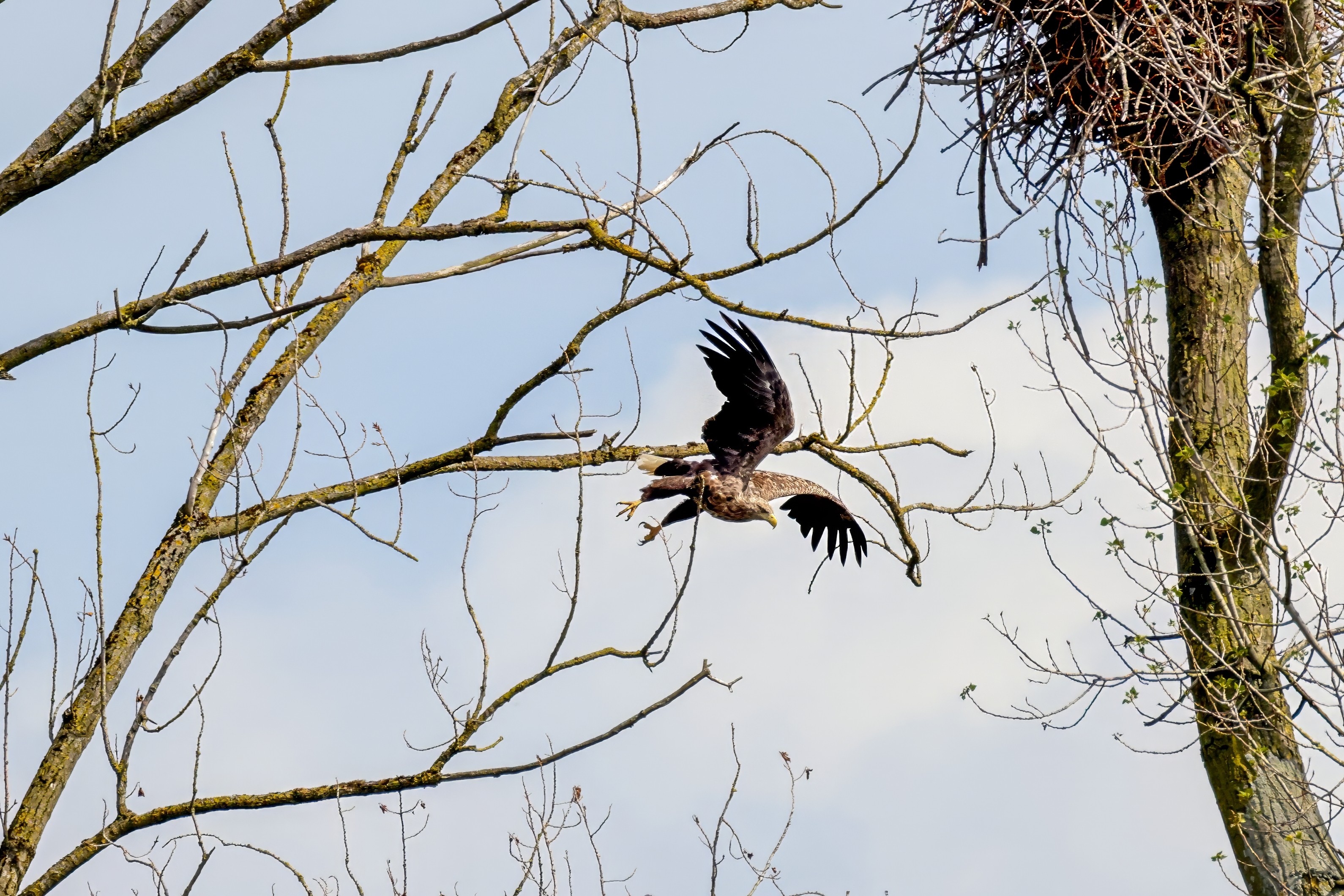 In der warmen Jahreszeit lohnt sich ein genauer Blick auf die Jungseeadler der Bislicher Insel. Sie haben sich prächtig entwickelt und zeigen inzwischen beeindruckende Flugkünste.