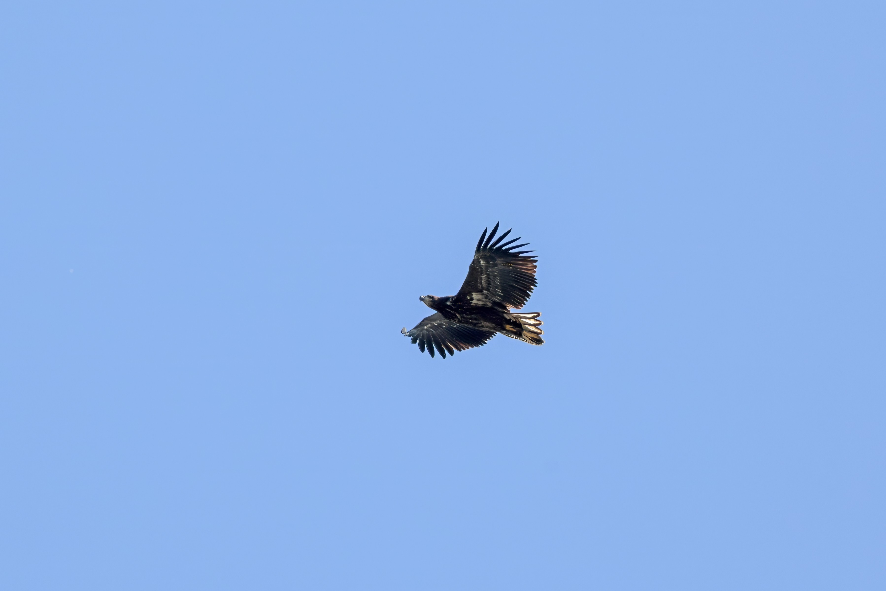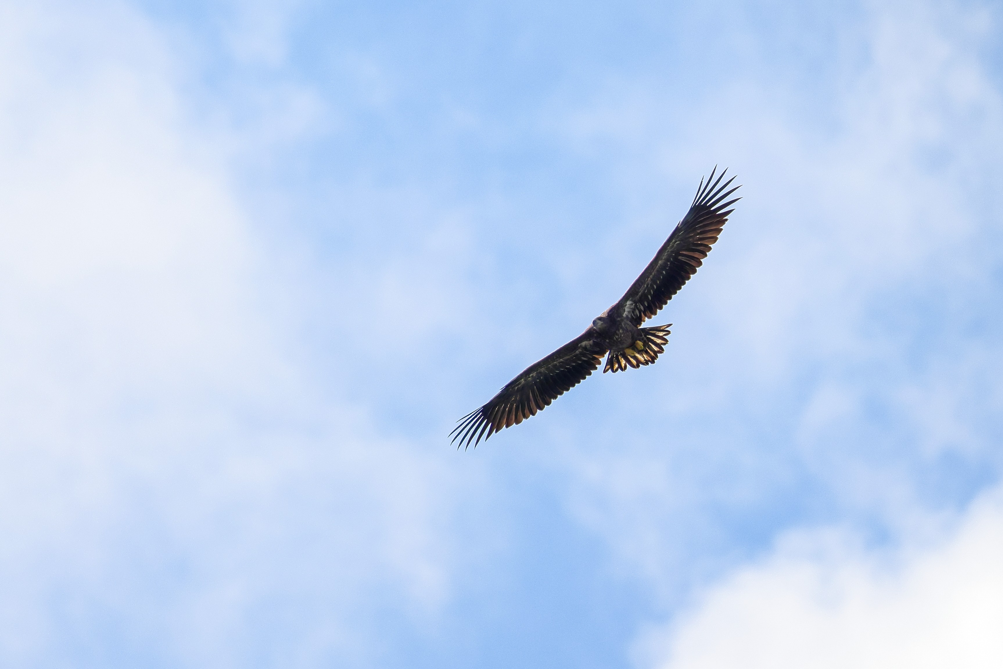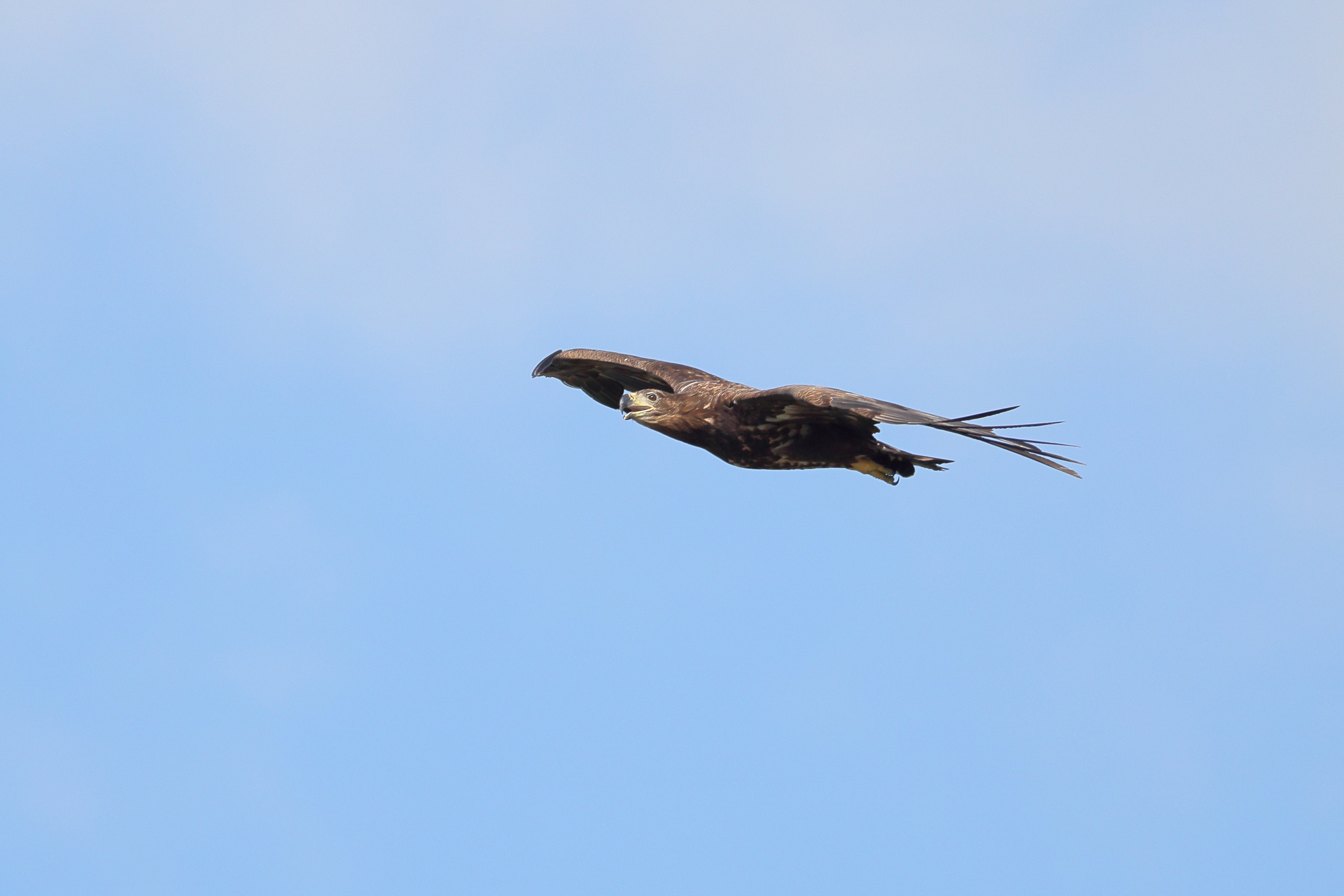 Gelegentlich lassen sie sich sogar in der Nähe ihres Horstes beobachten. Beute wird mittlerweile nicht mehr geteilt – ein Zeichen ihrer zunehmenden Selbstständigkeit.