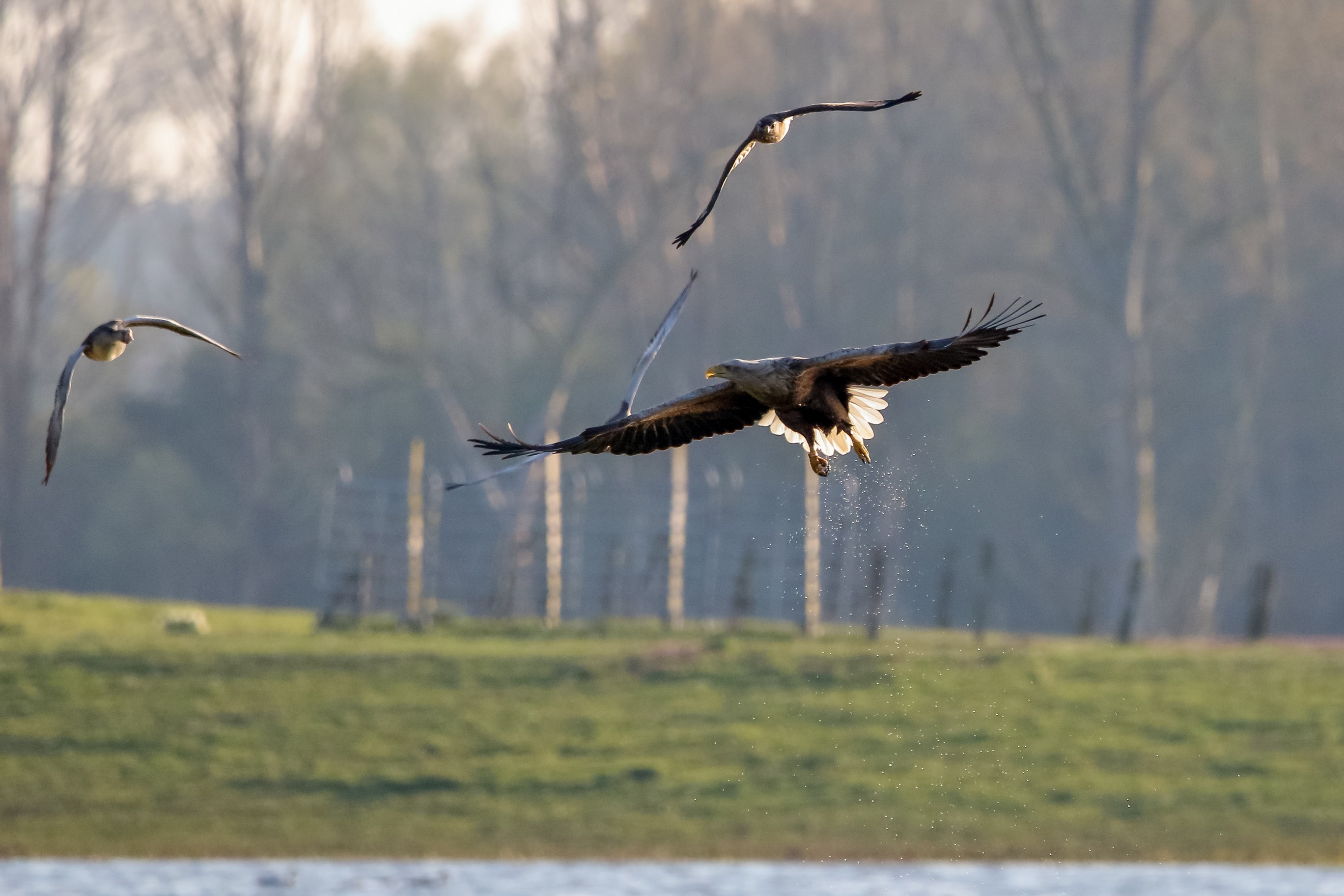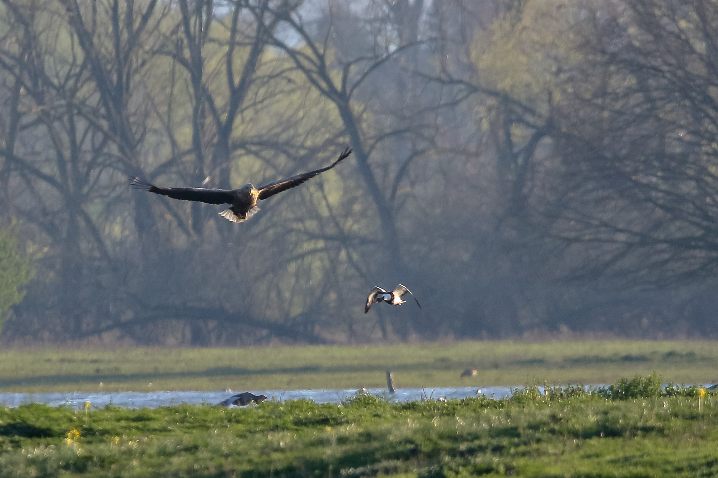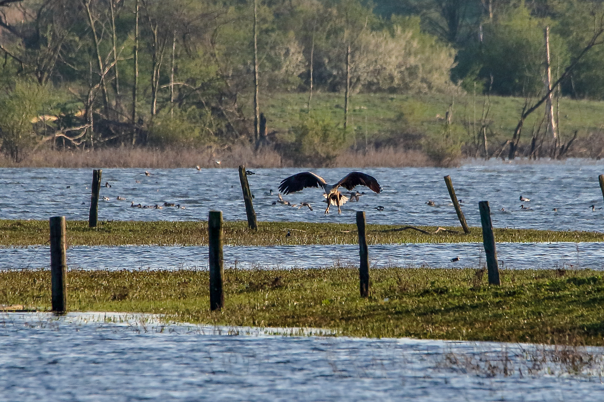 Seeadlermännchen in Aktion an der großen Flutmulde