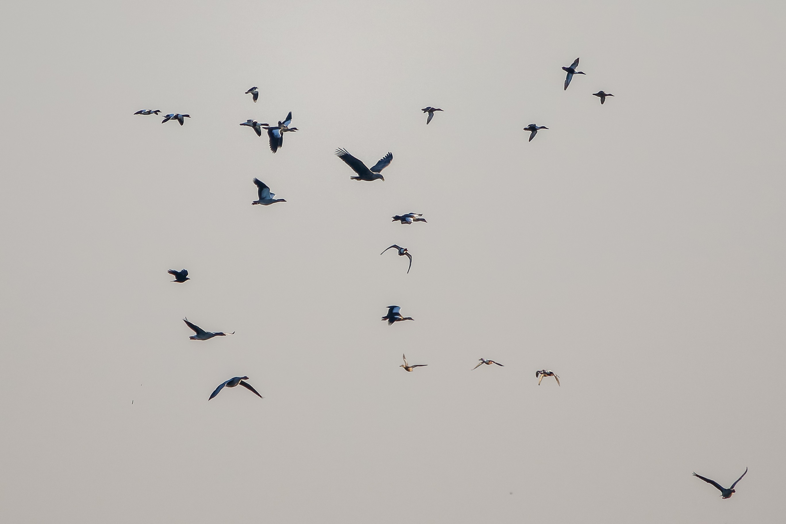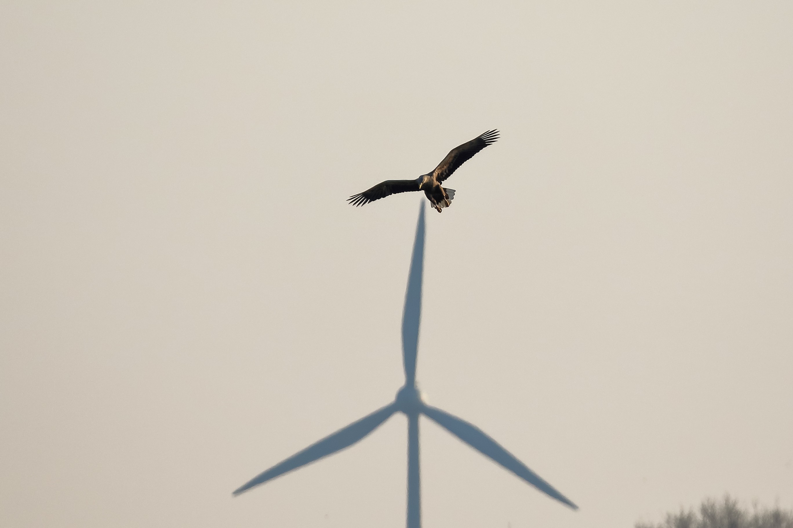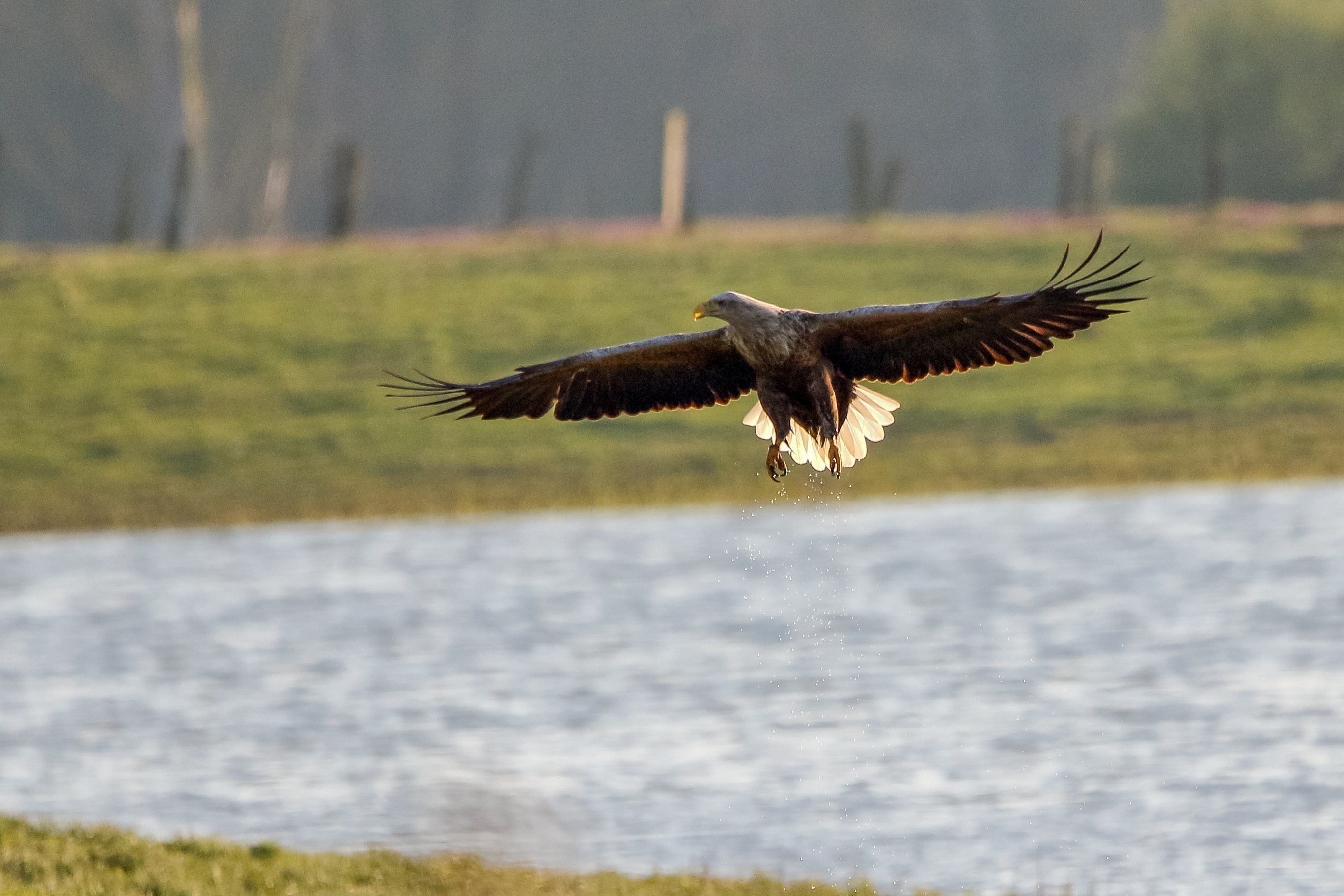 Seeadlermännchen in Aktion an der großen Flutmulde