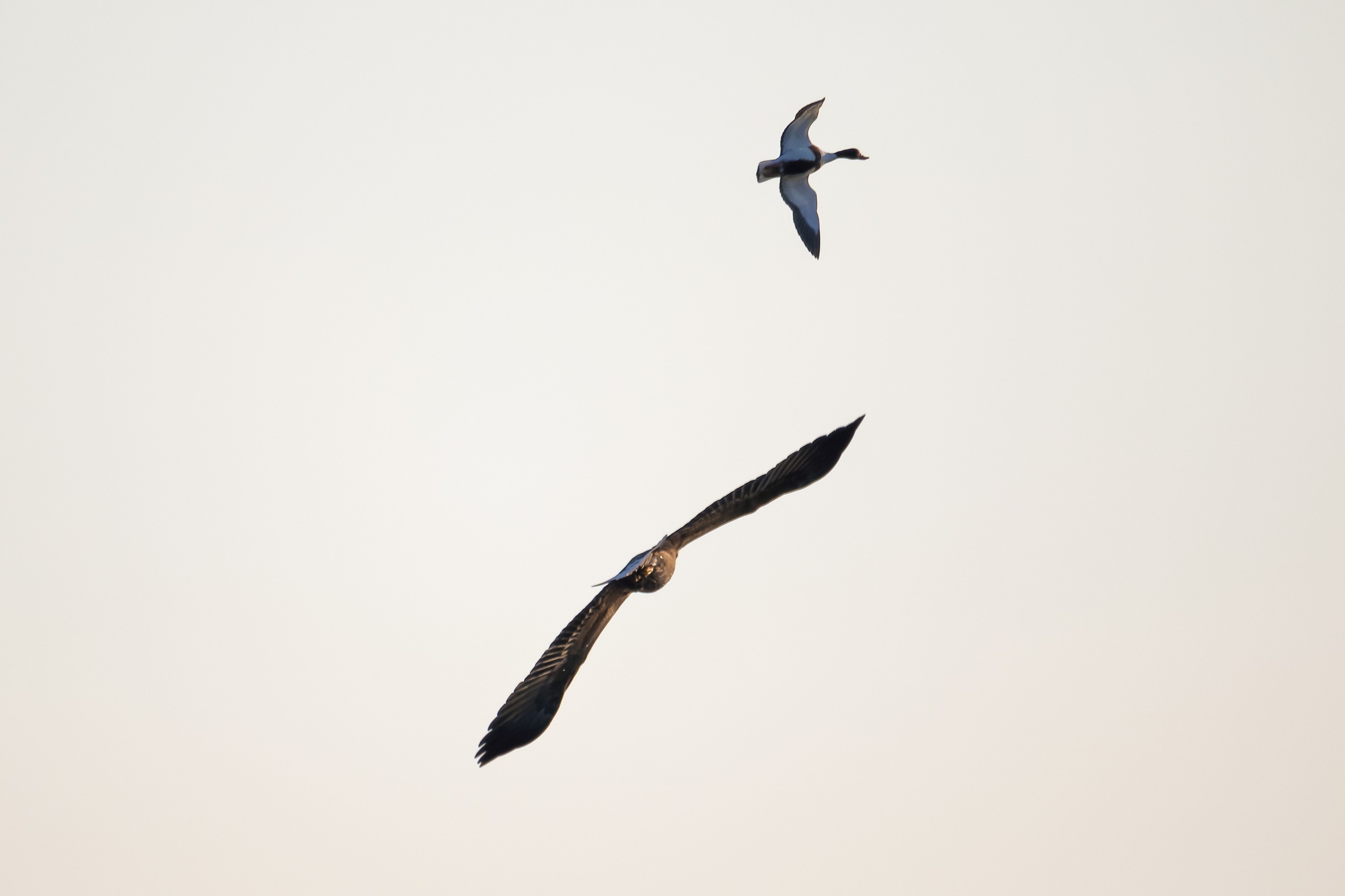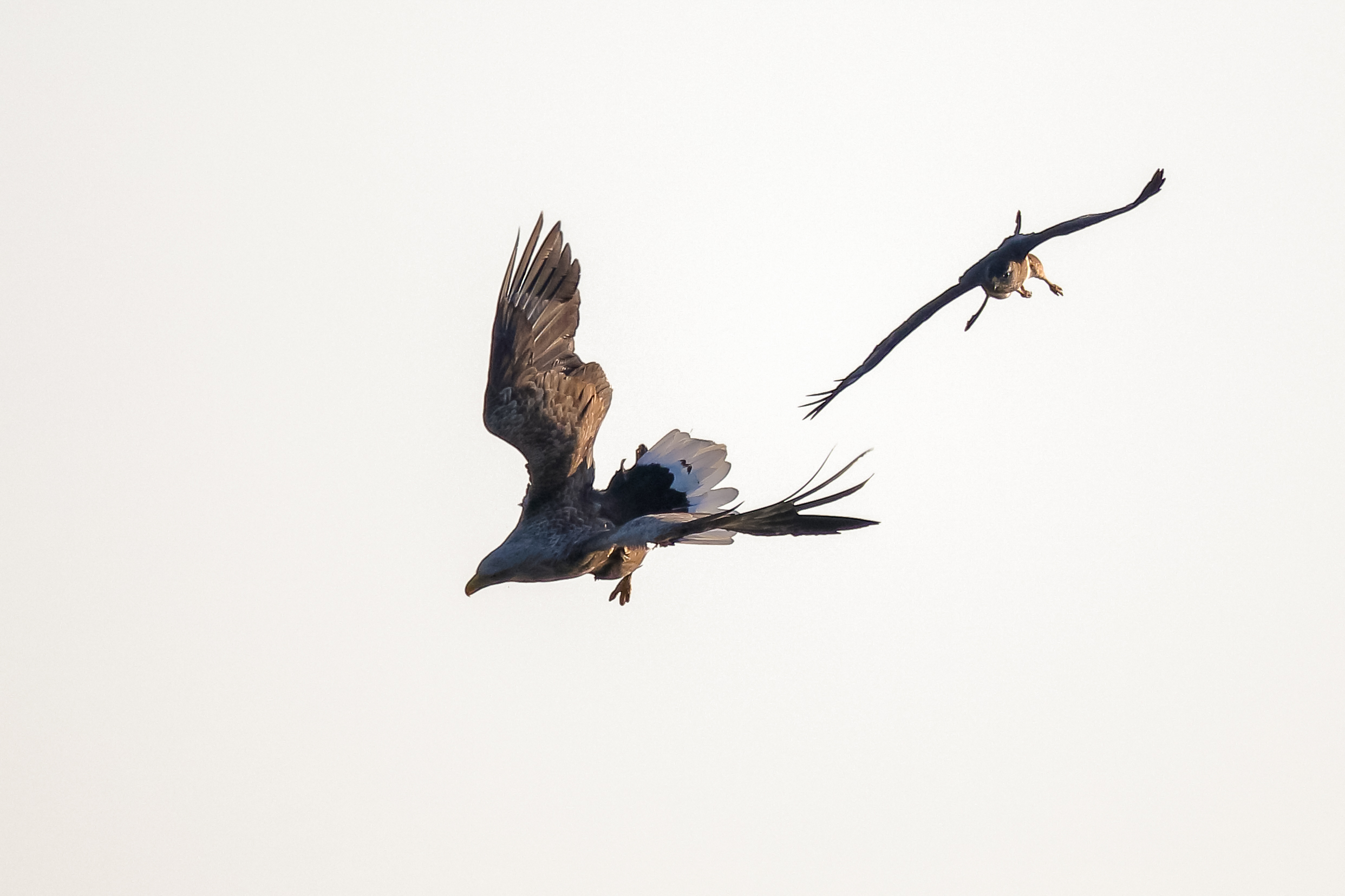 Rohrweihe und junger Rotmilan
