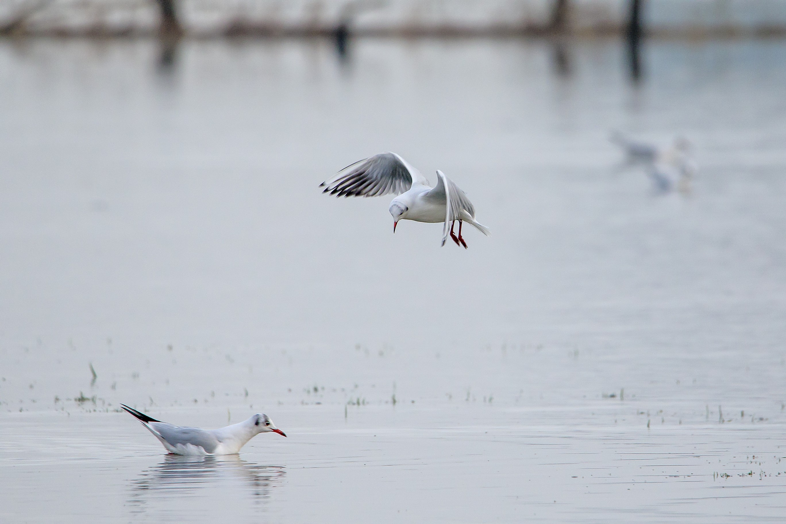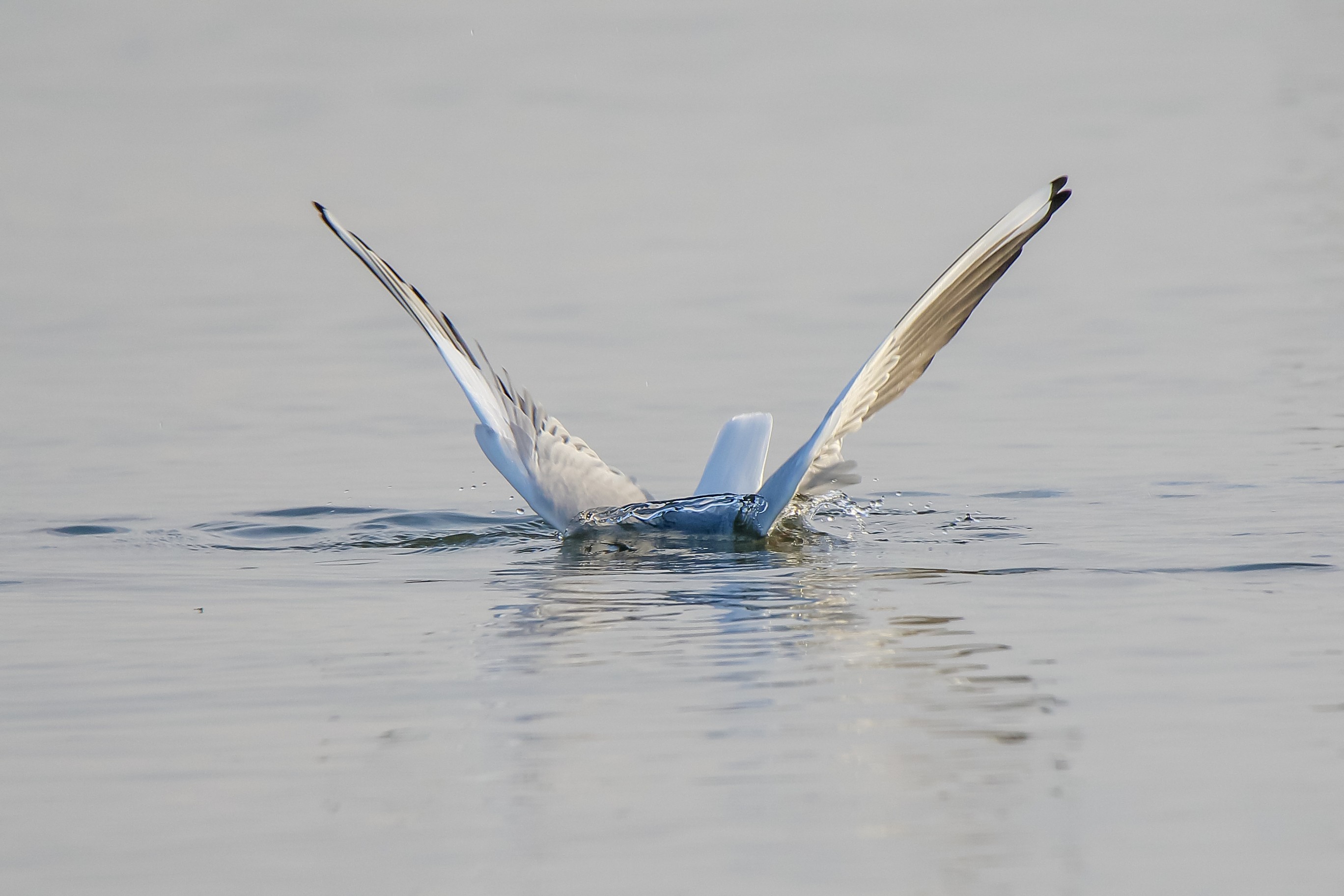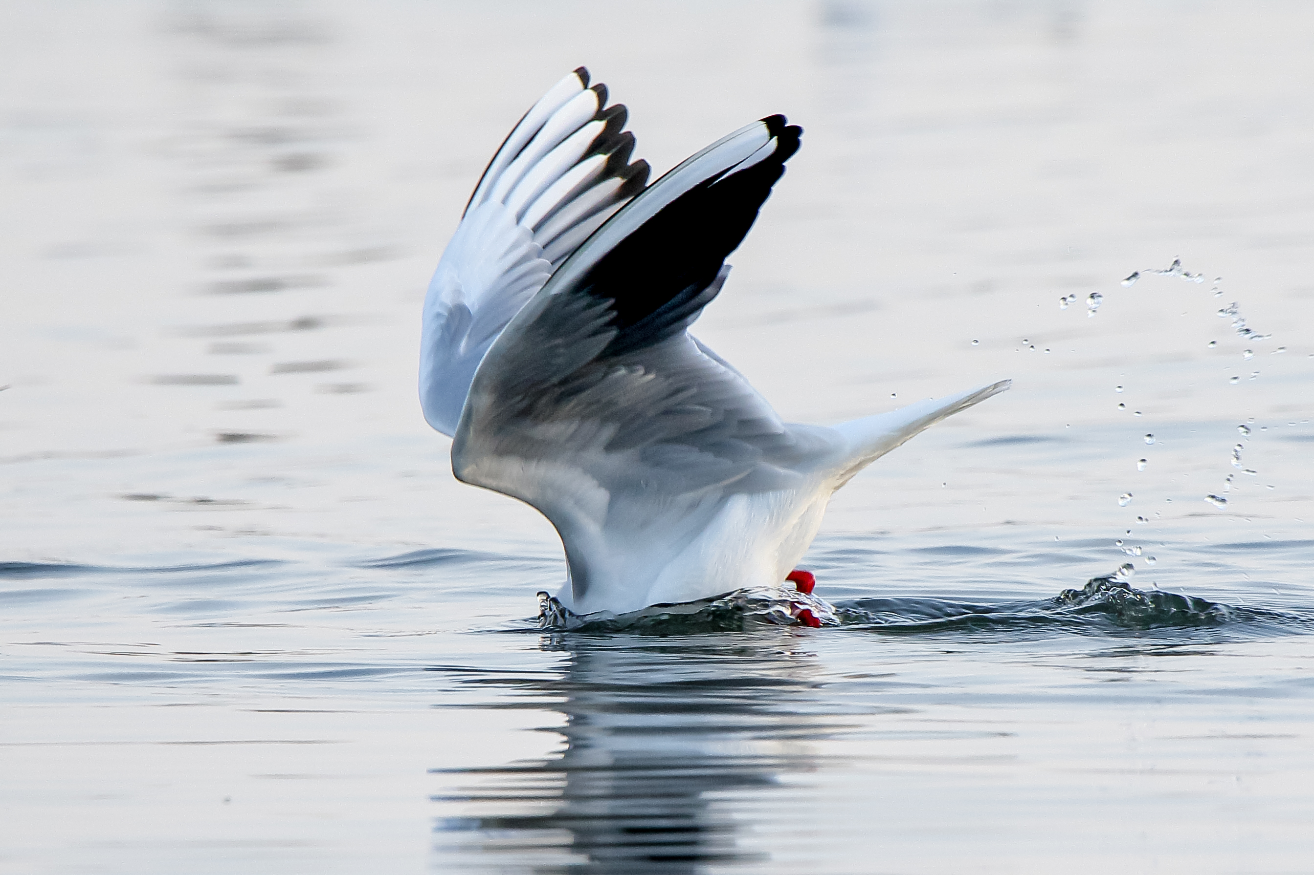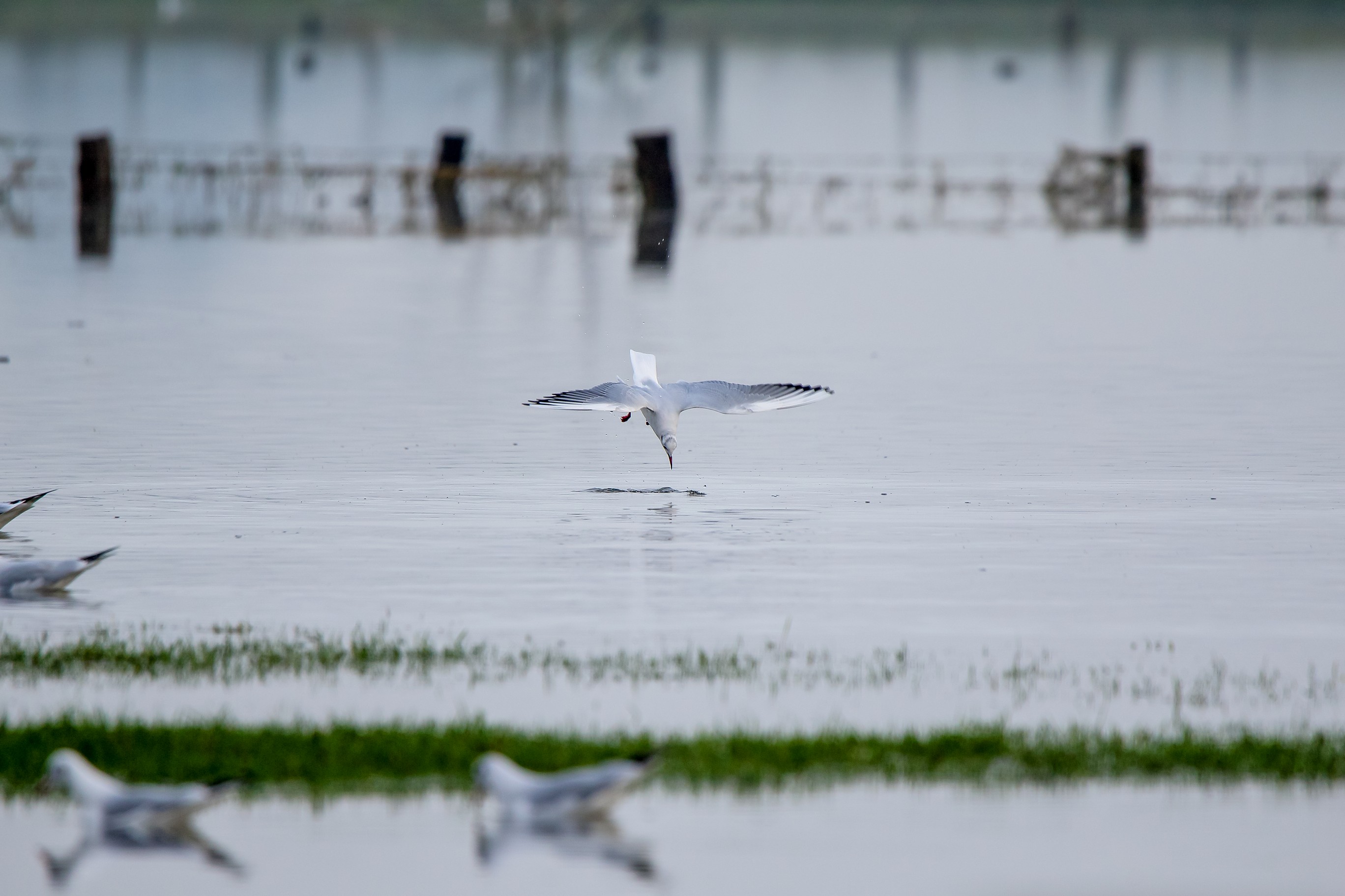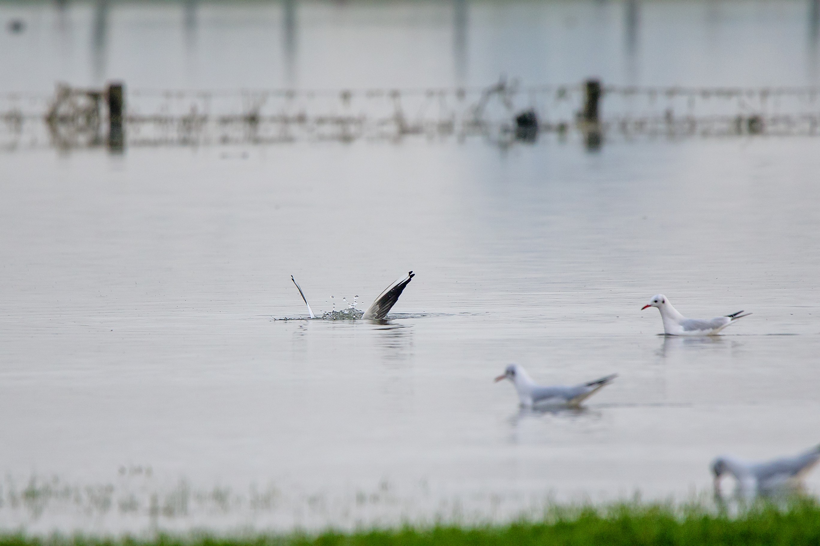 Akrobatische Futtersuche der Möwen bei Hochwasser