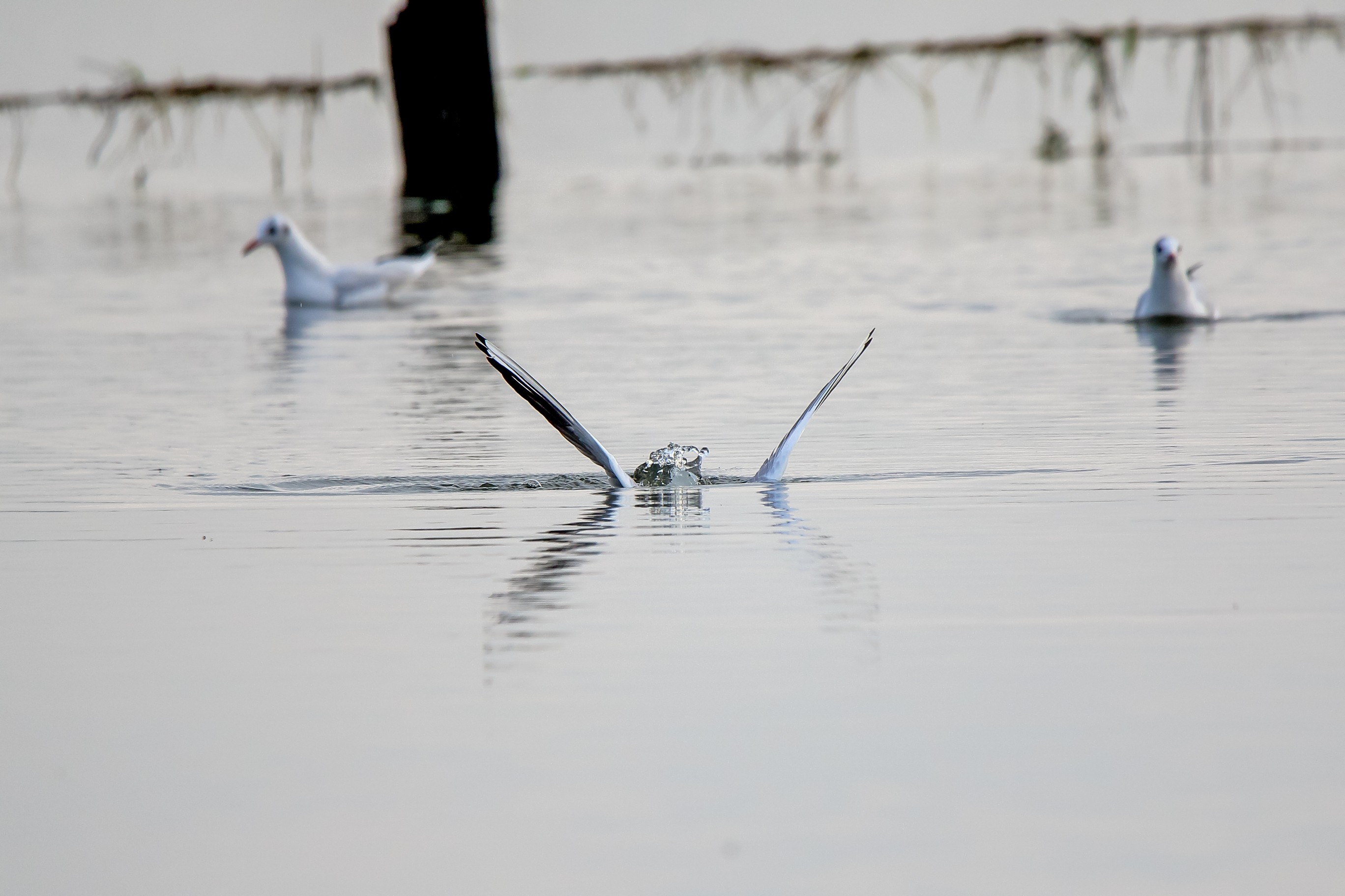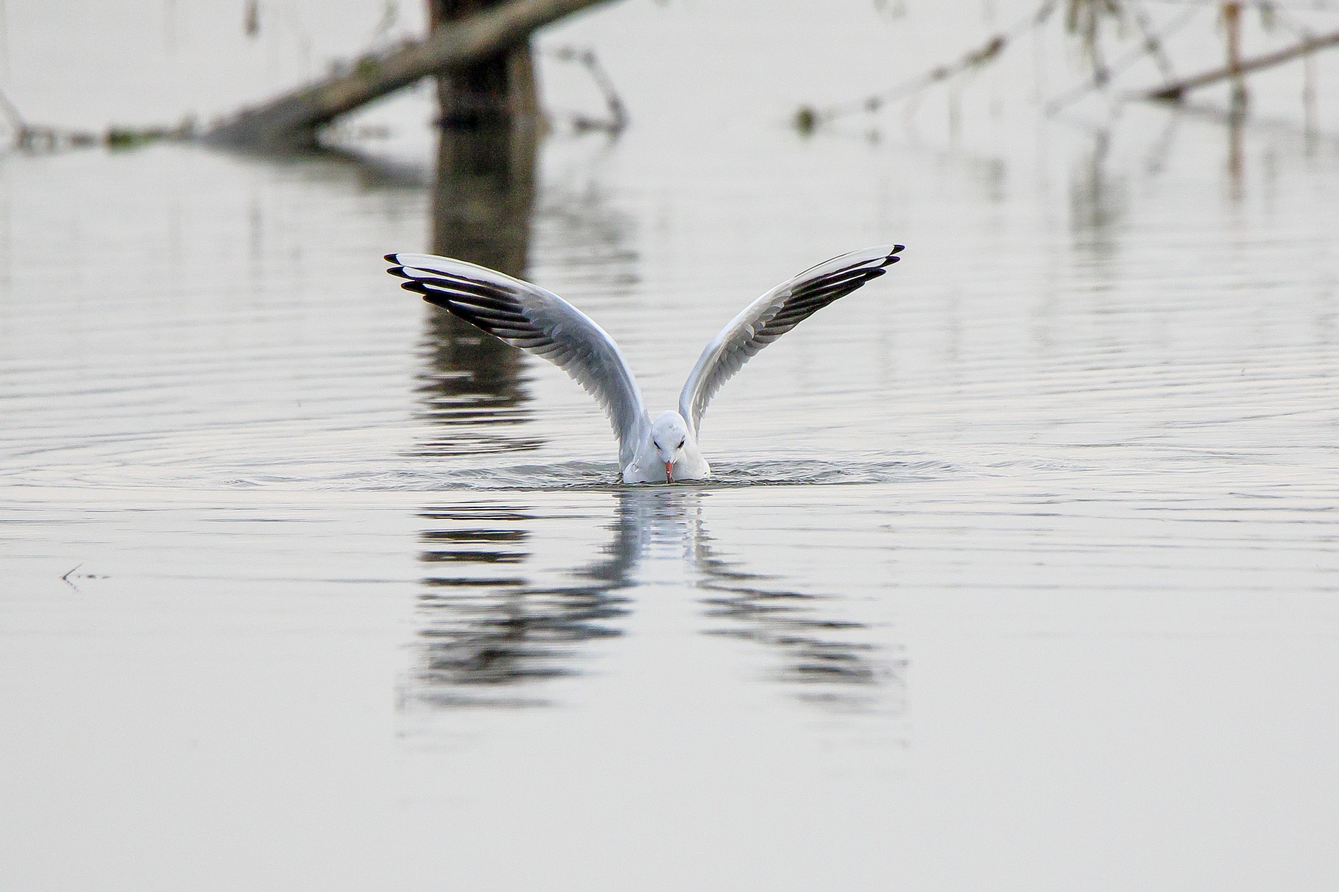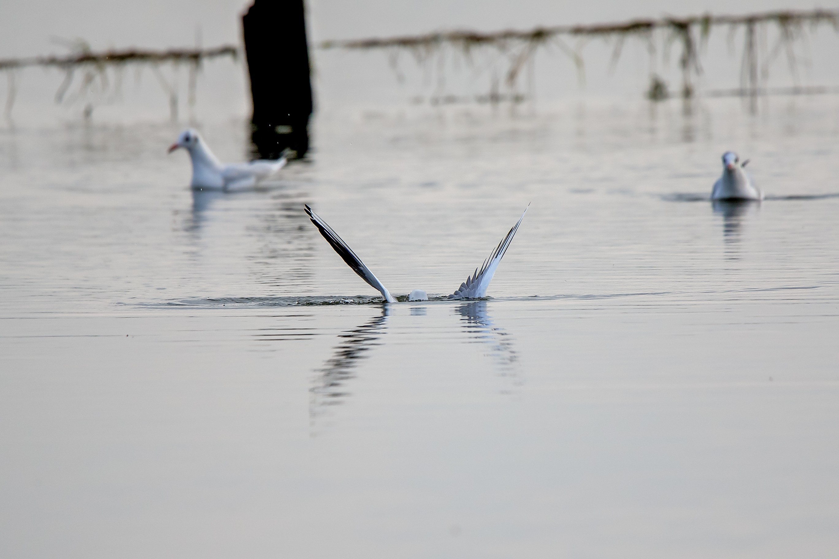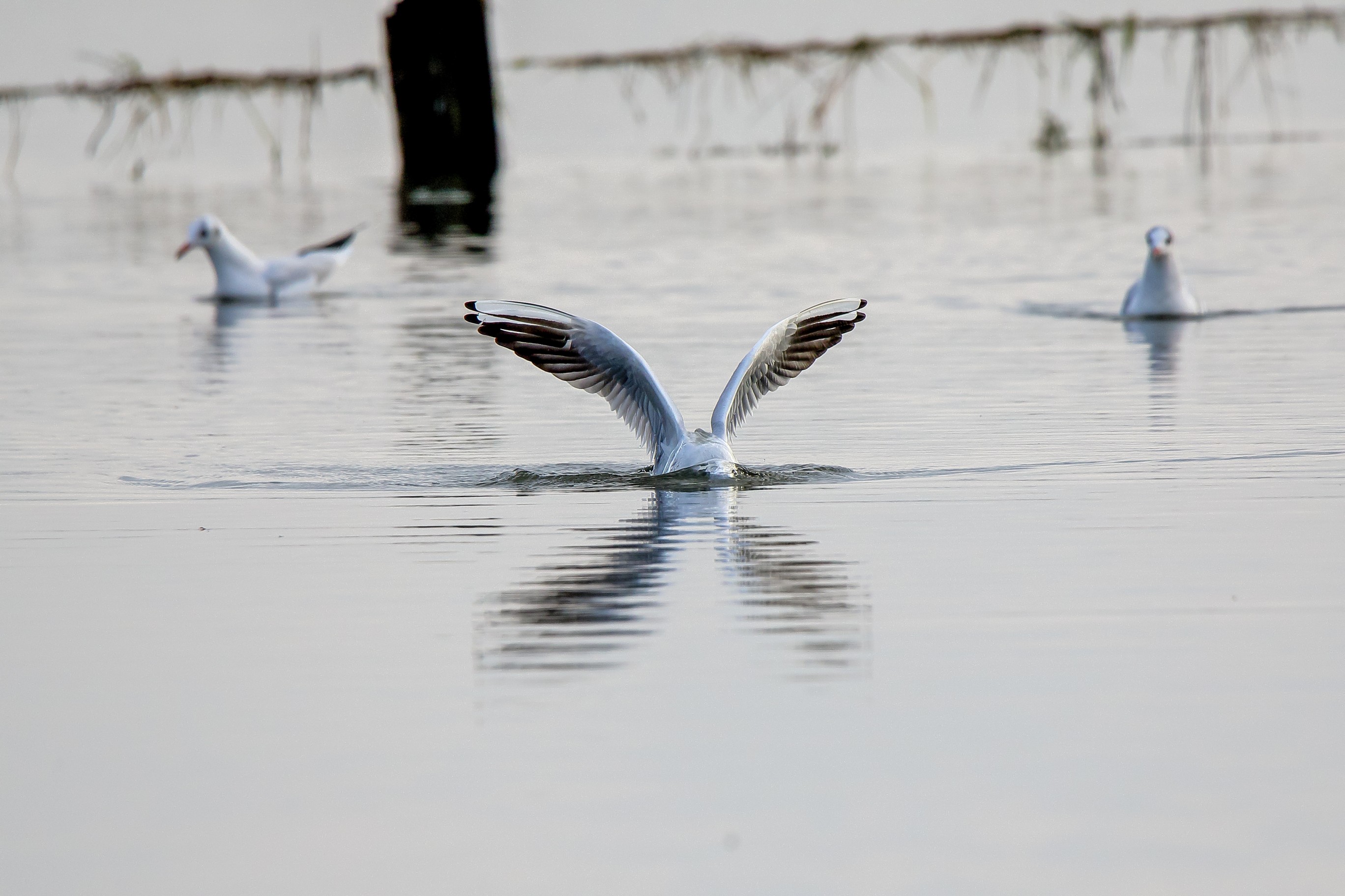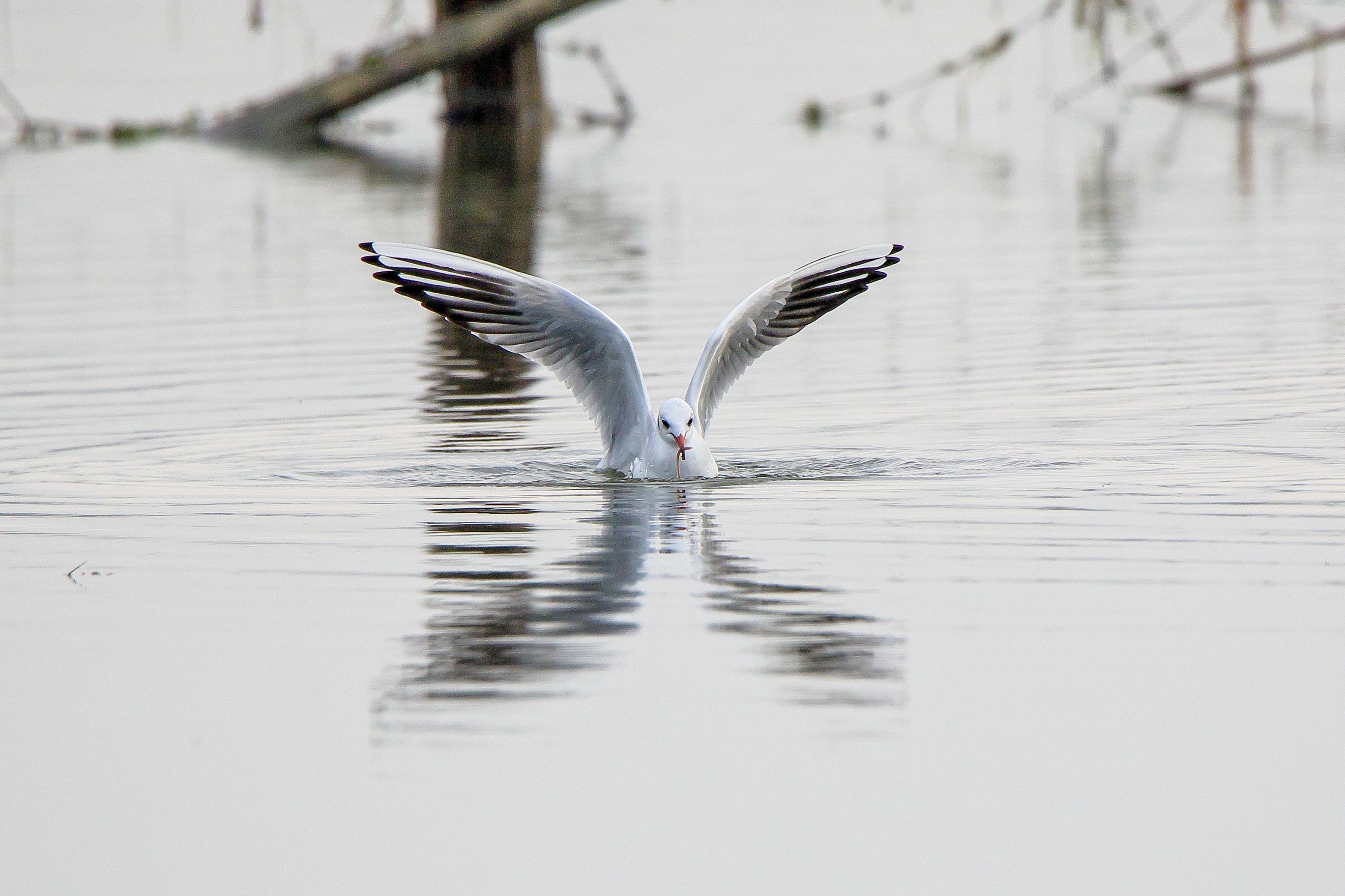 Akrobatische Futtersuche der Möwen bei Hochwasser