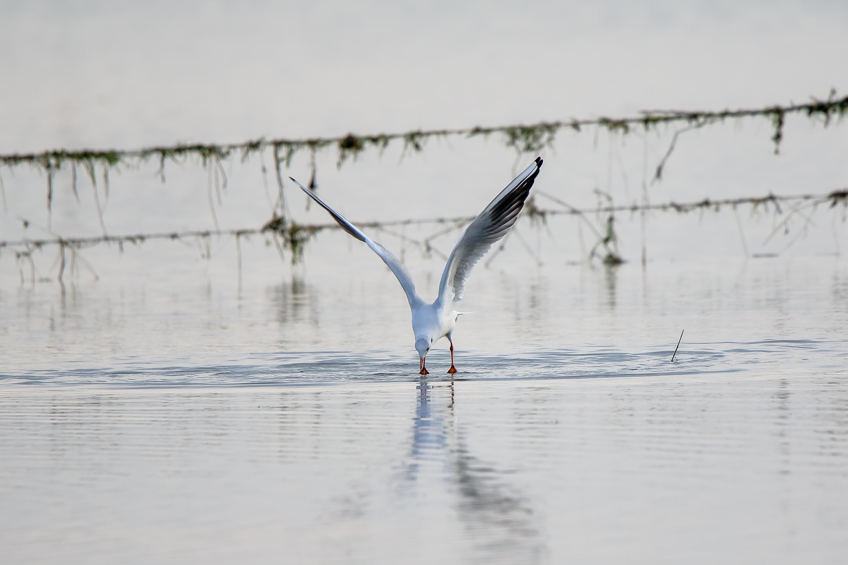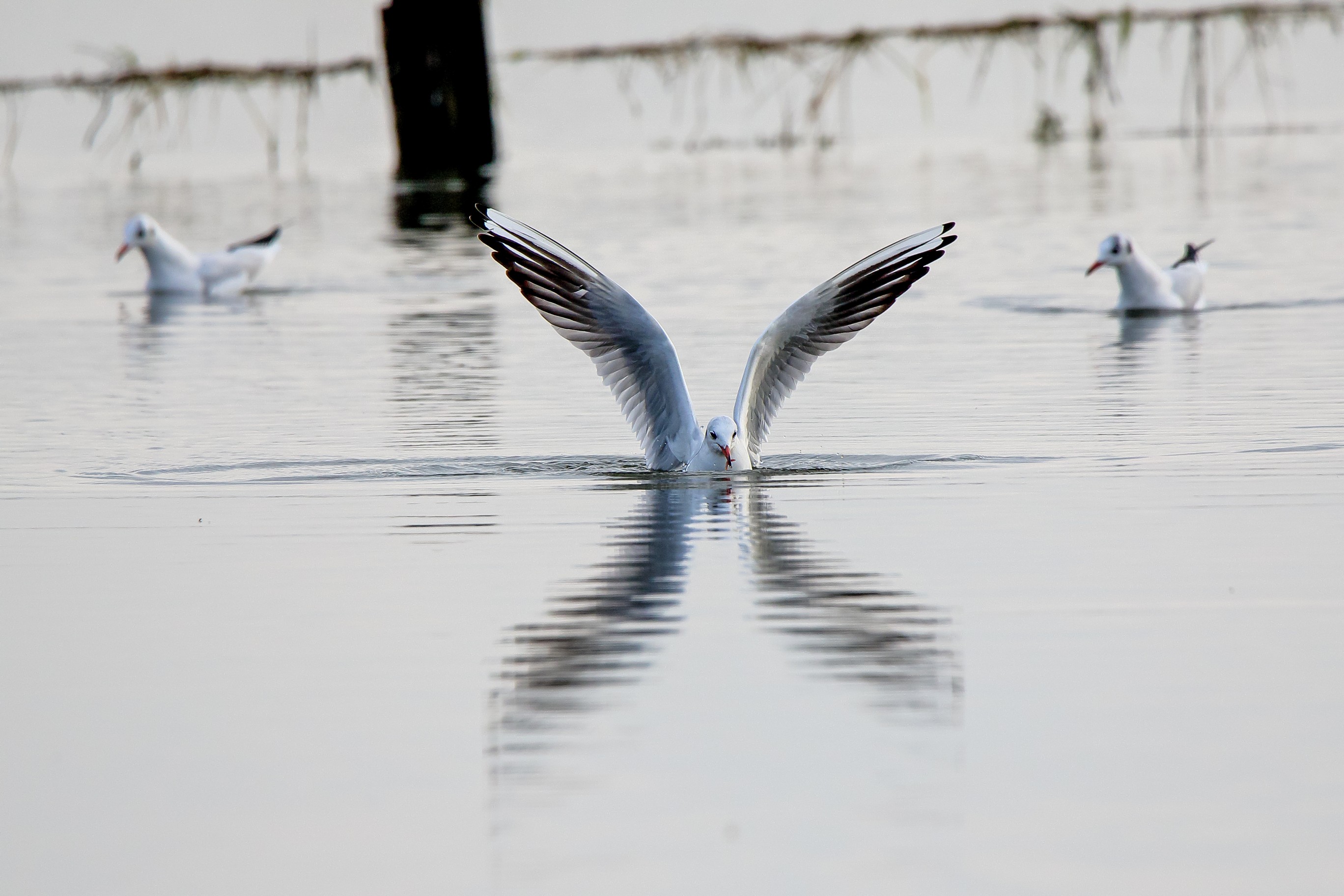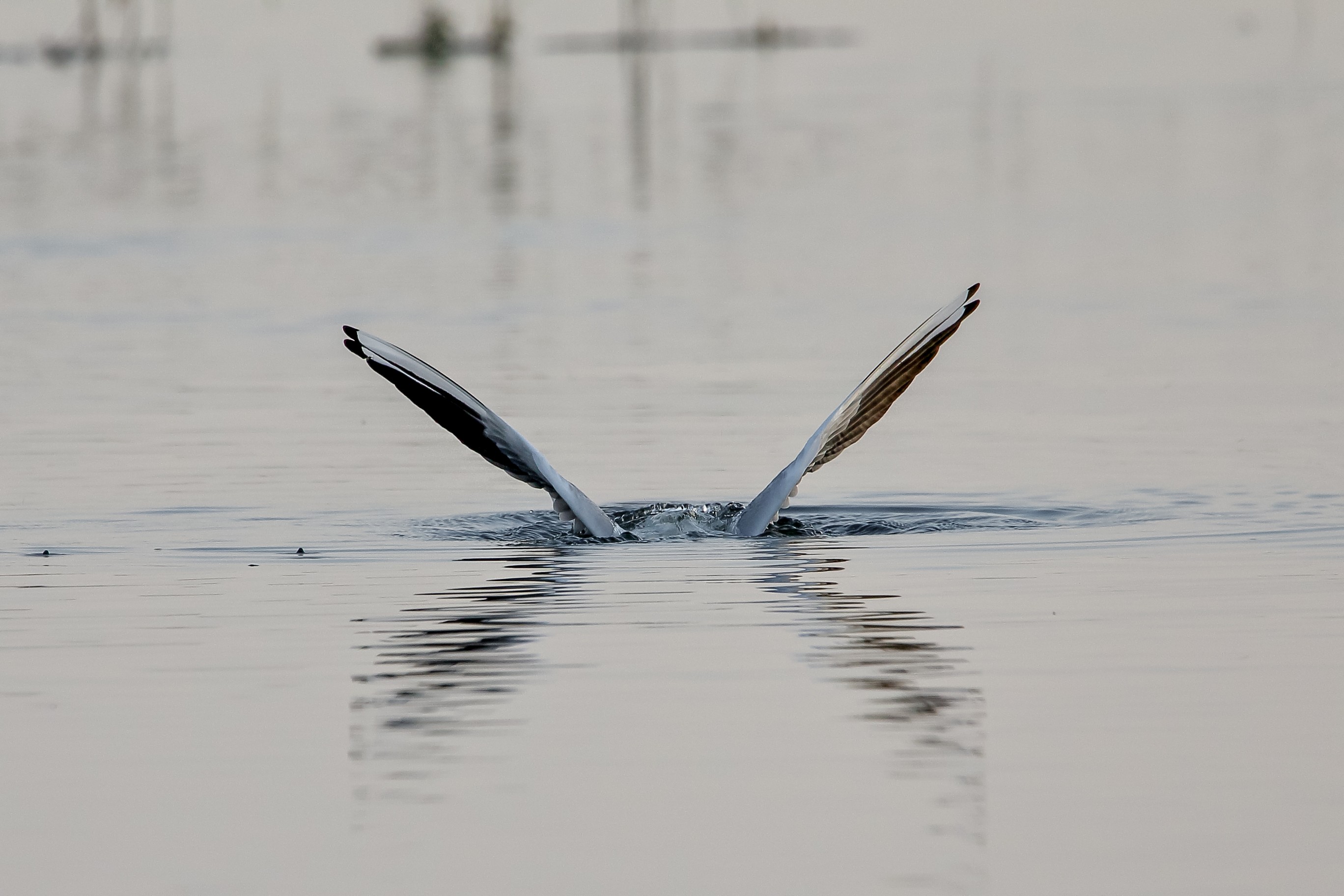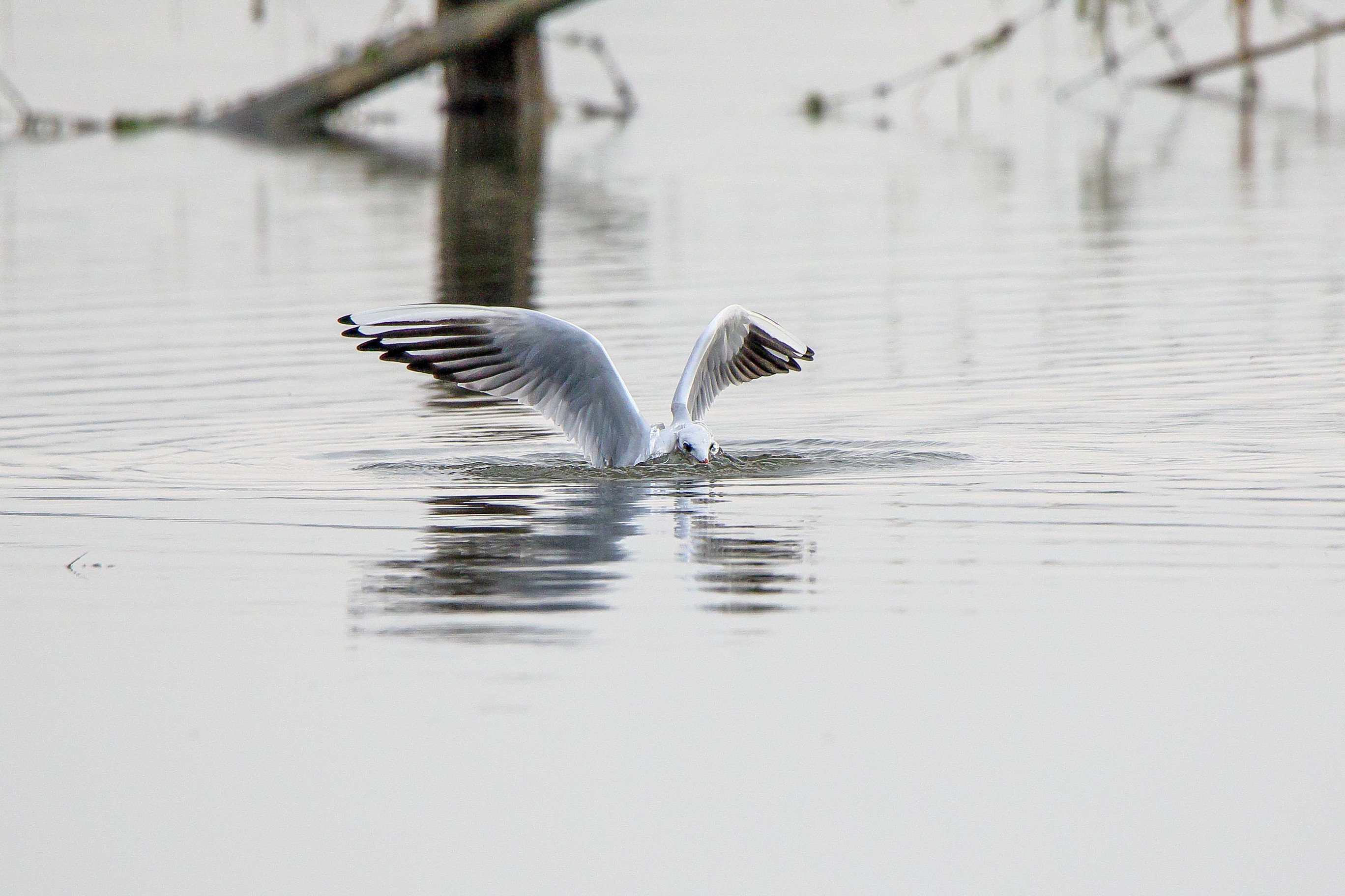 Akrobatische Futtersuche der Möwen bei Hochwasser