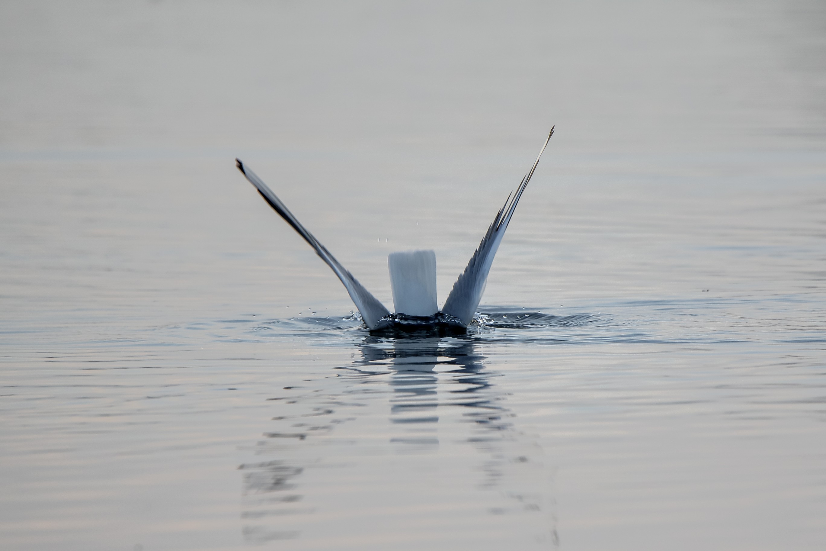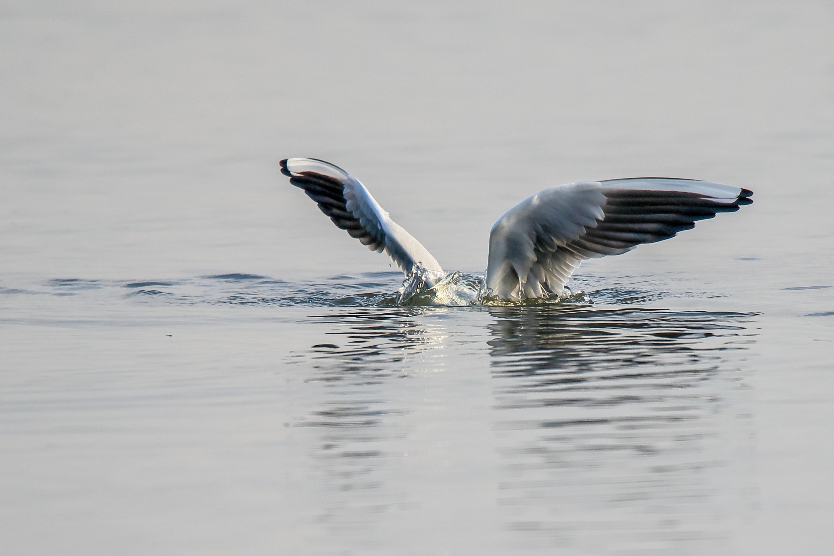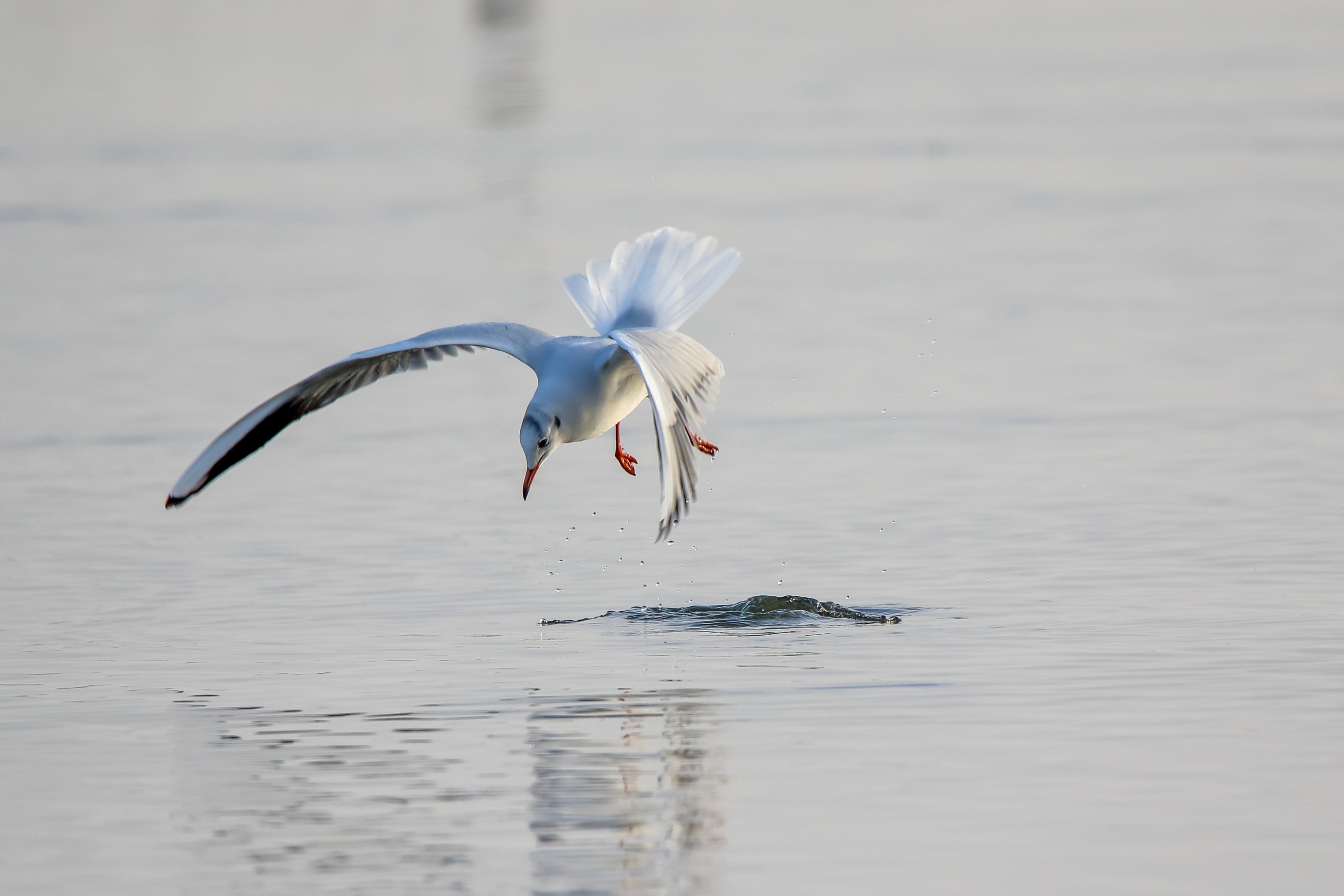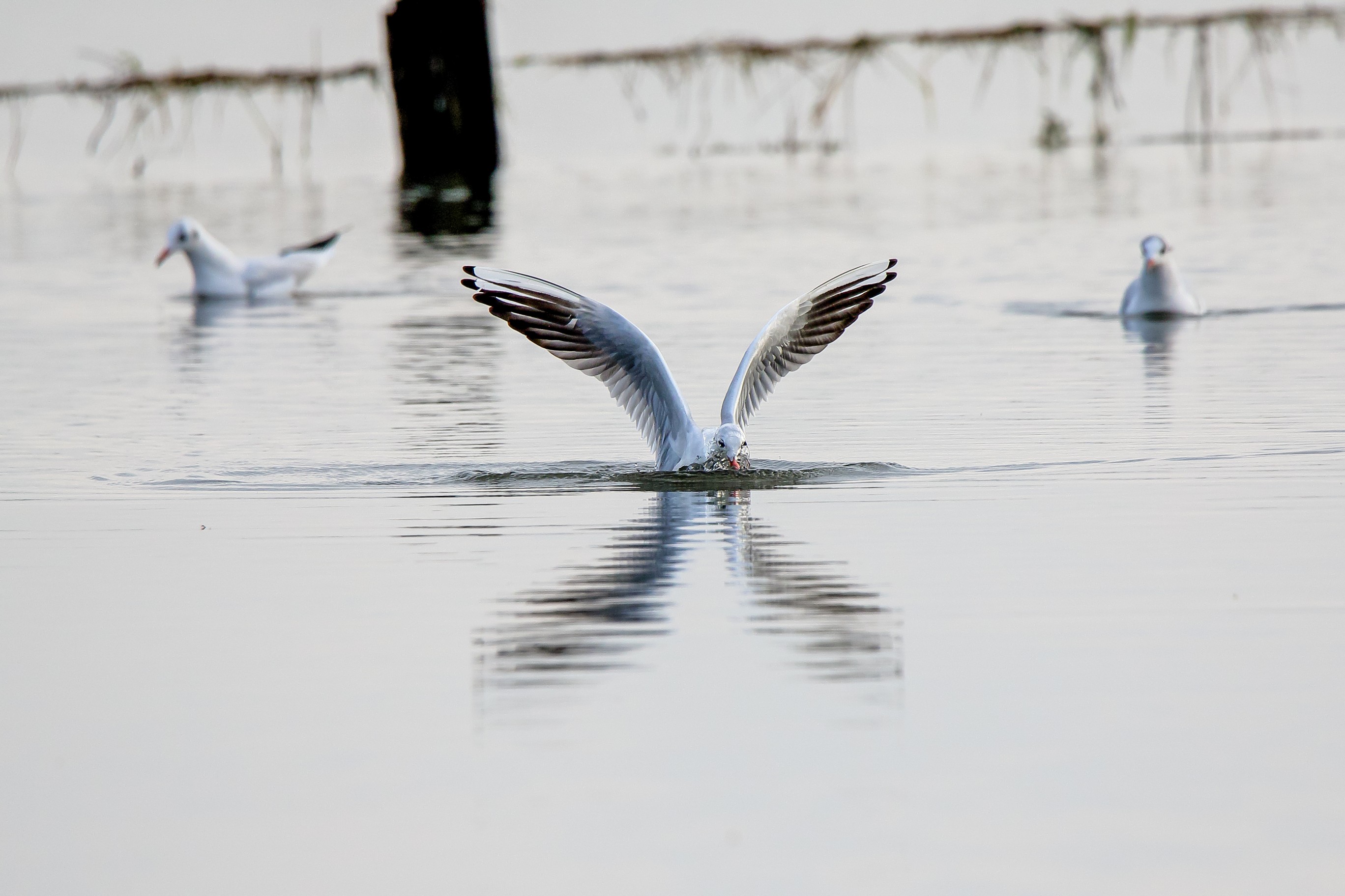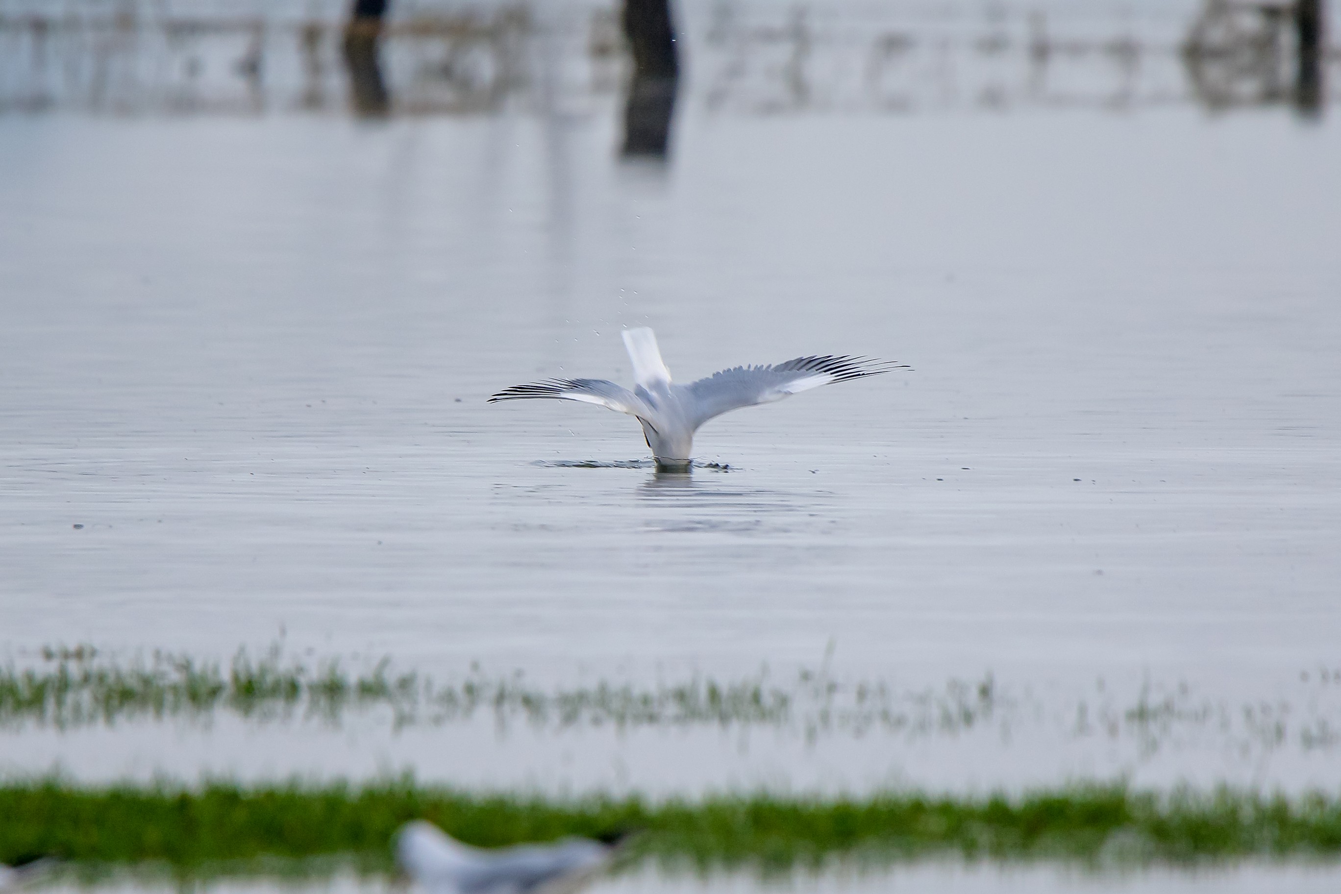 Akrobatische Futtersuche der Möwen bei Hochwasser