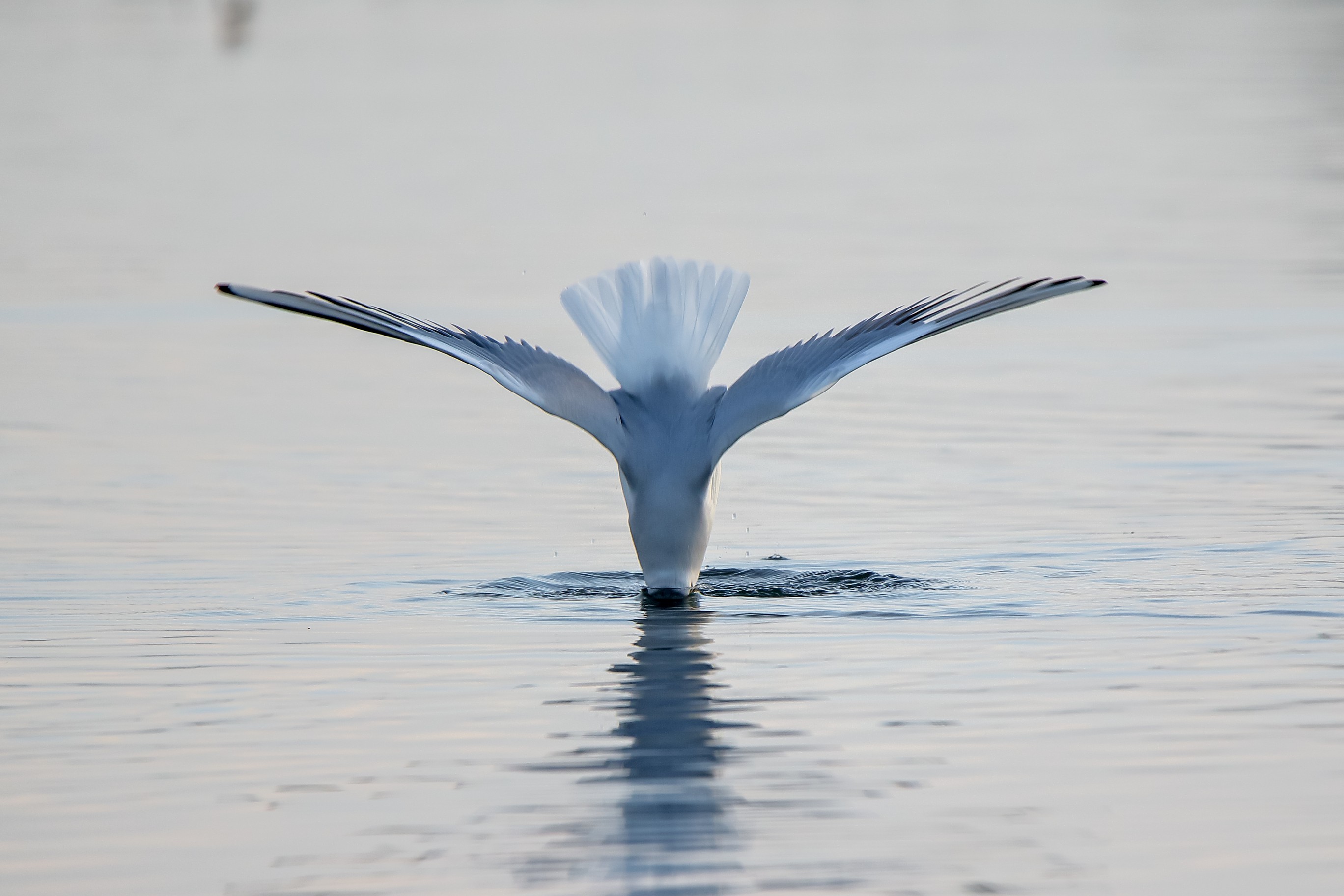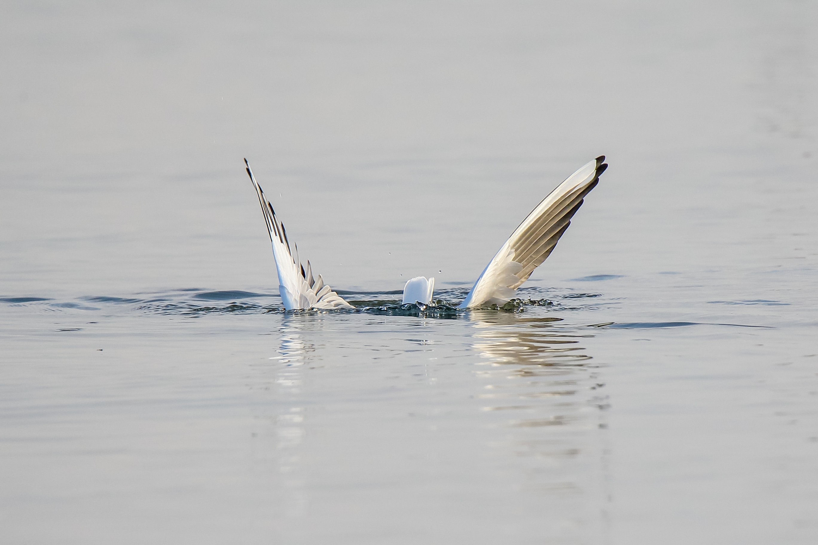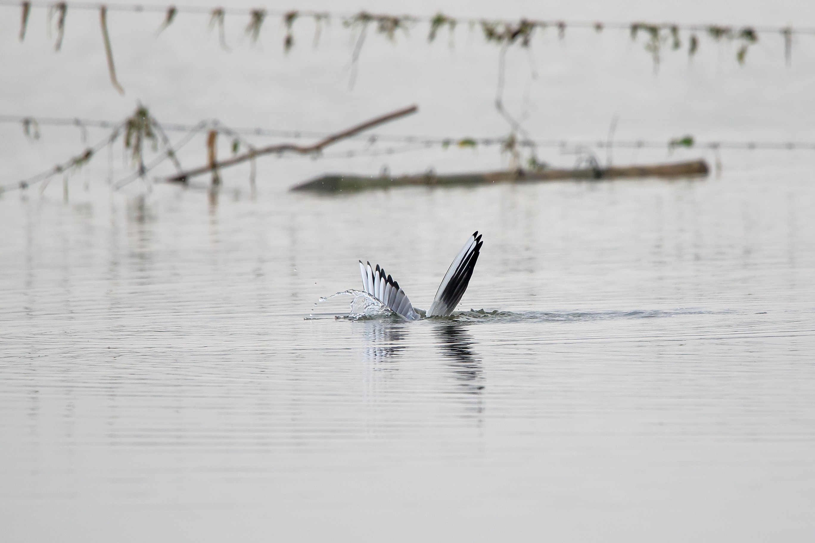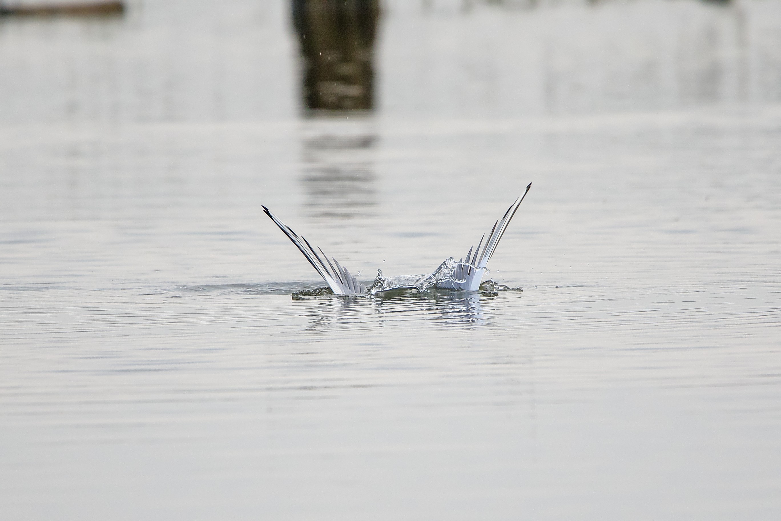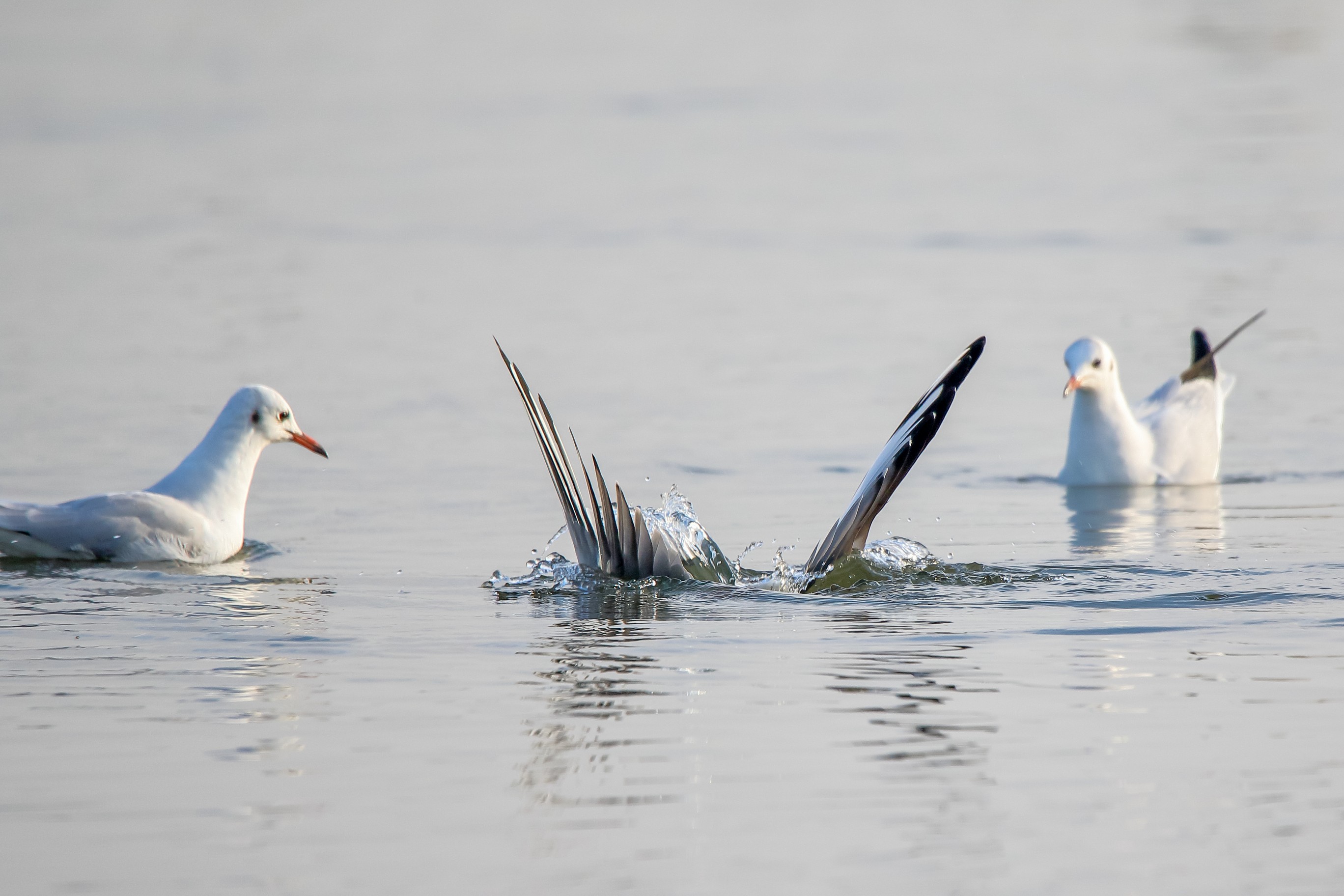Akrobatische Futtersuche der Möwen bei Hochwasser