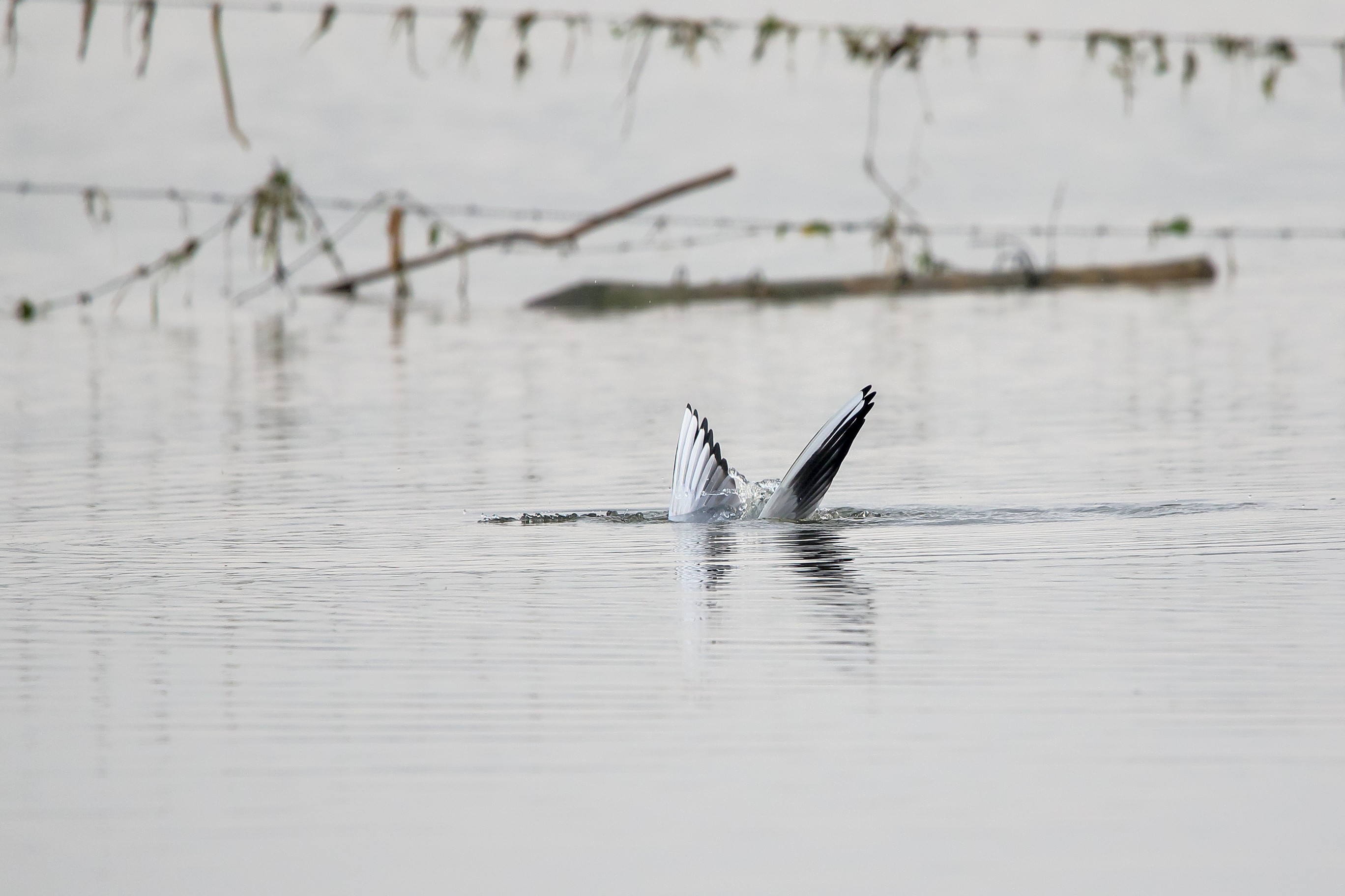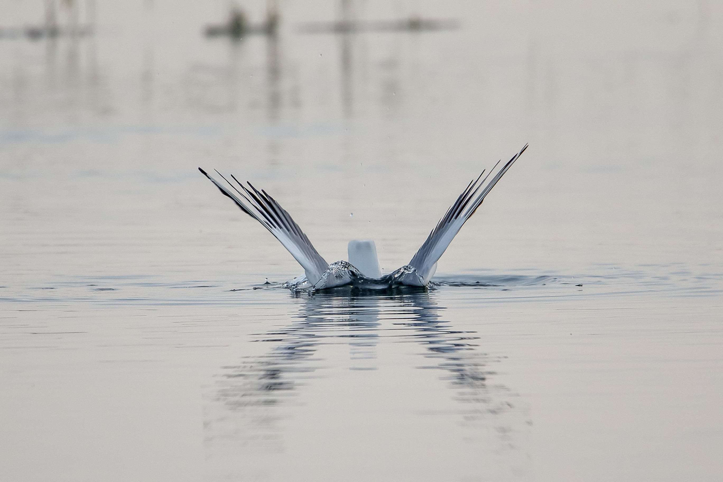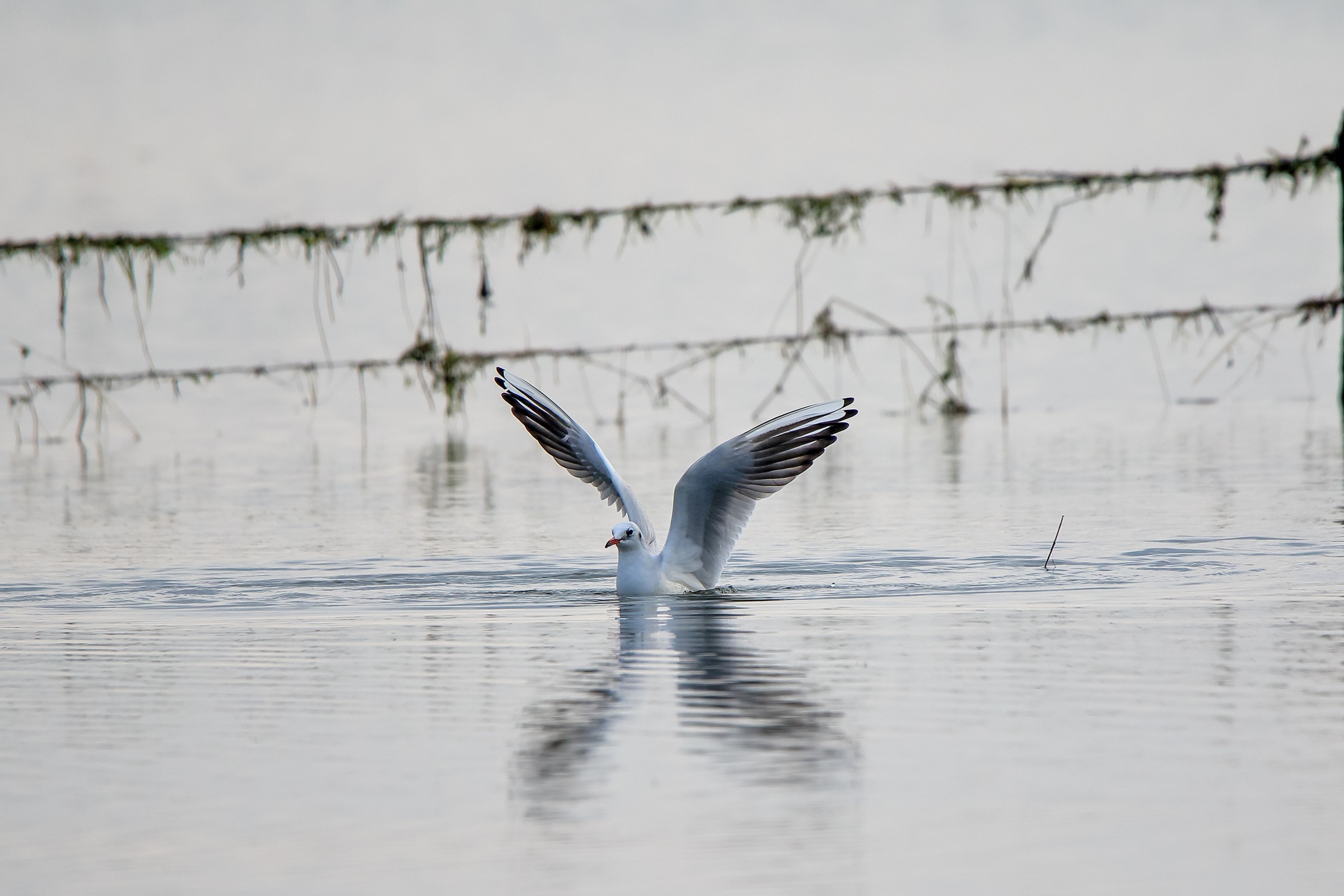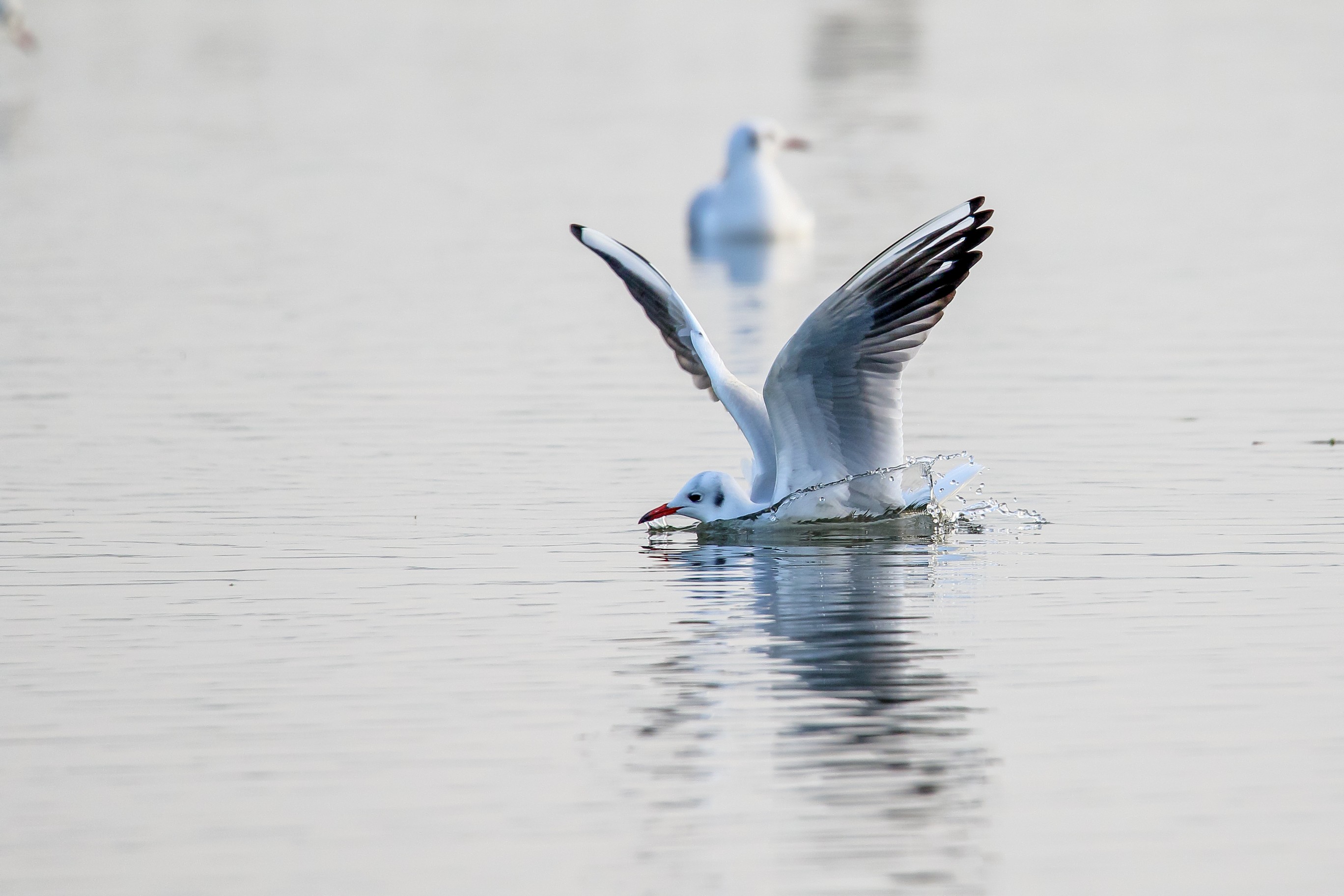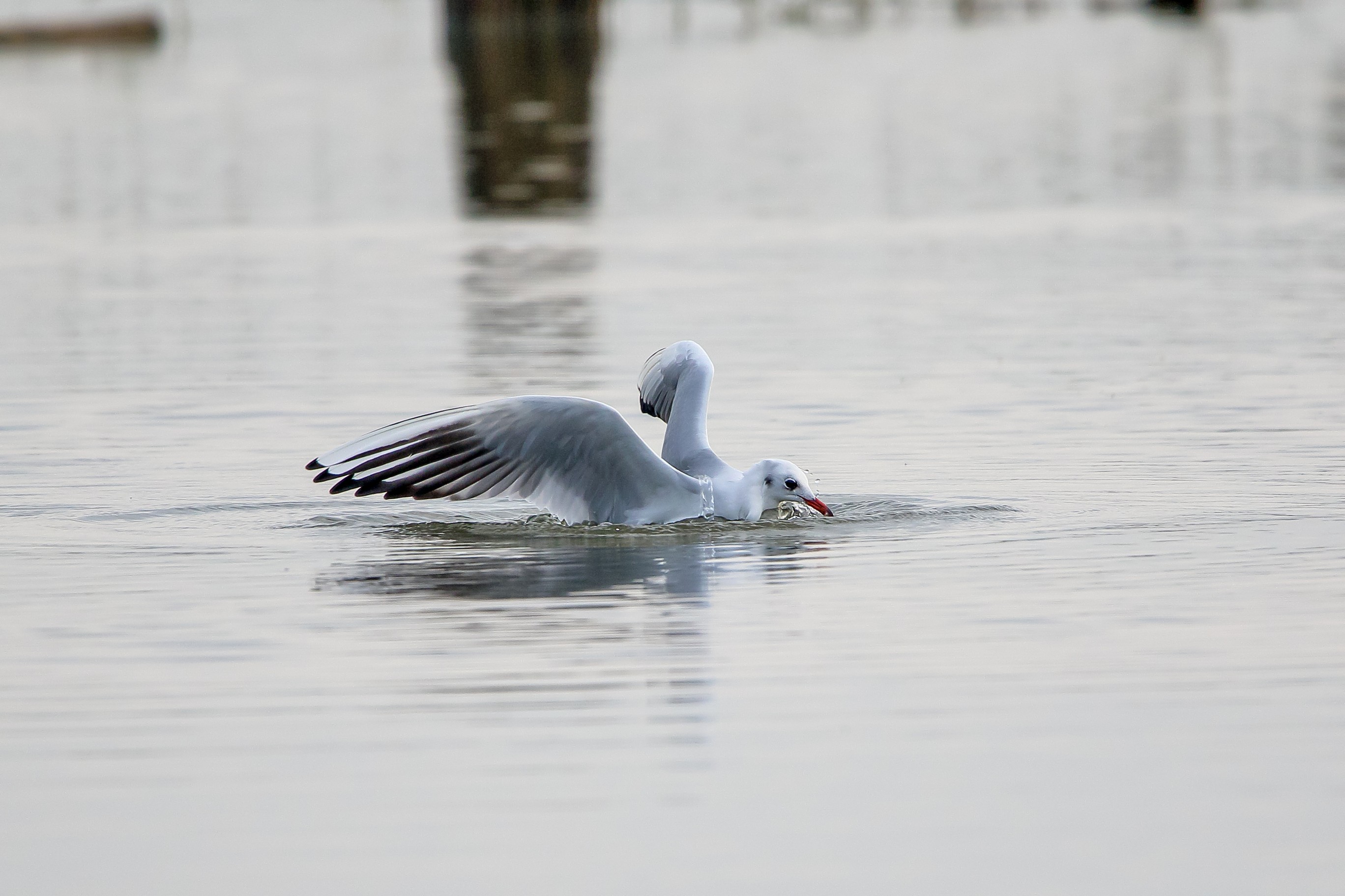 Akrobatische Futtersuche der Möwen bei Hochwasser
