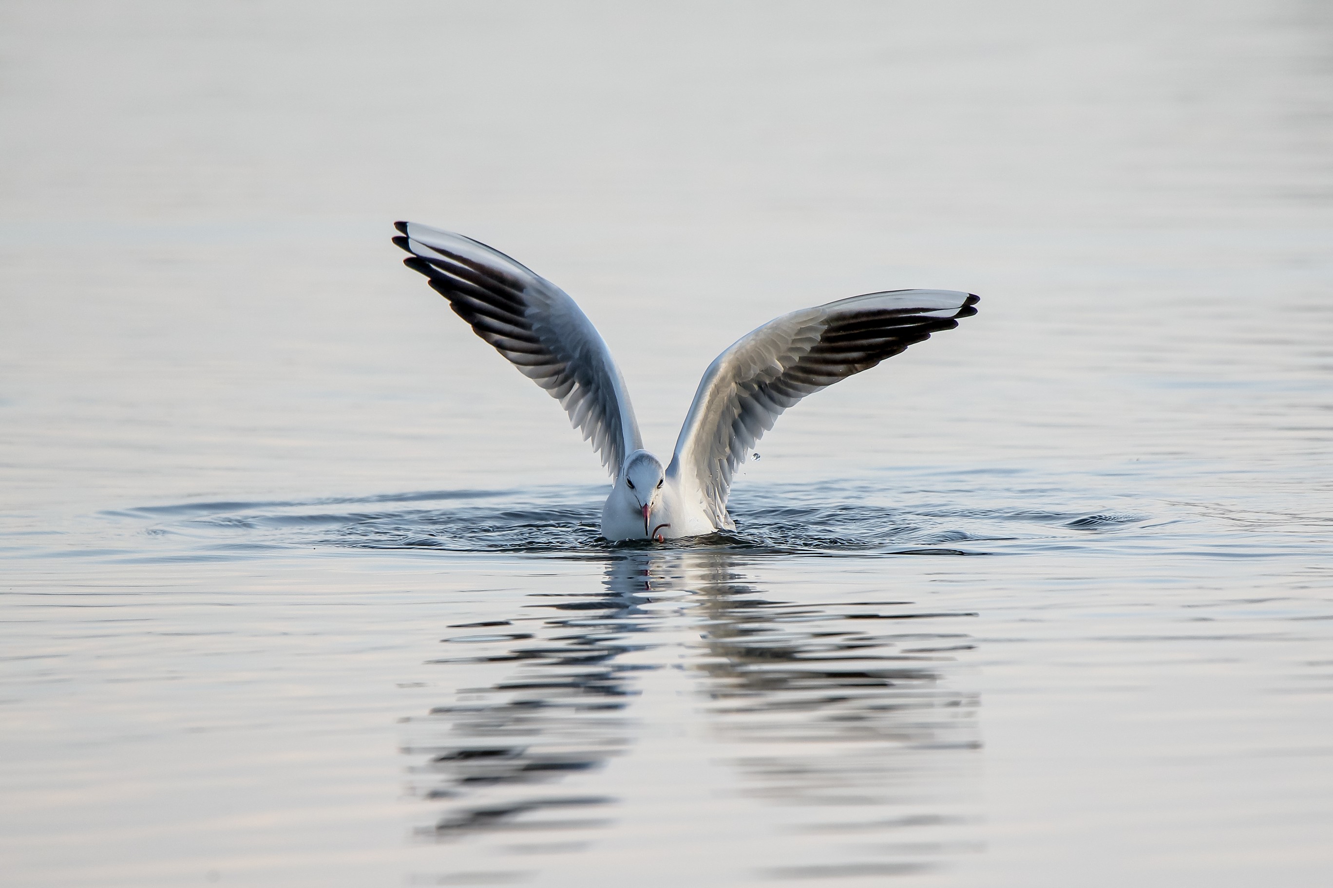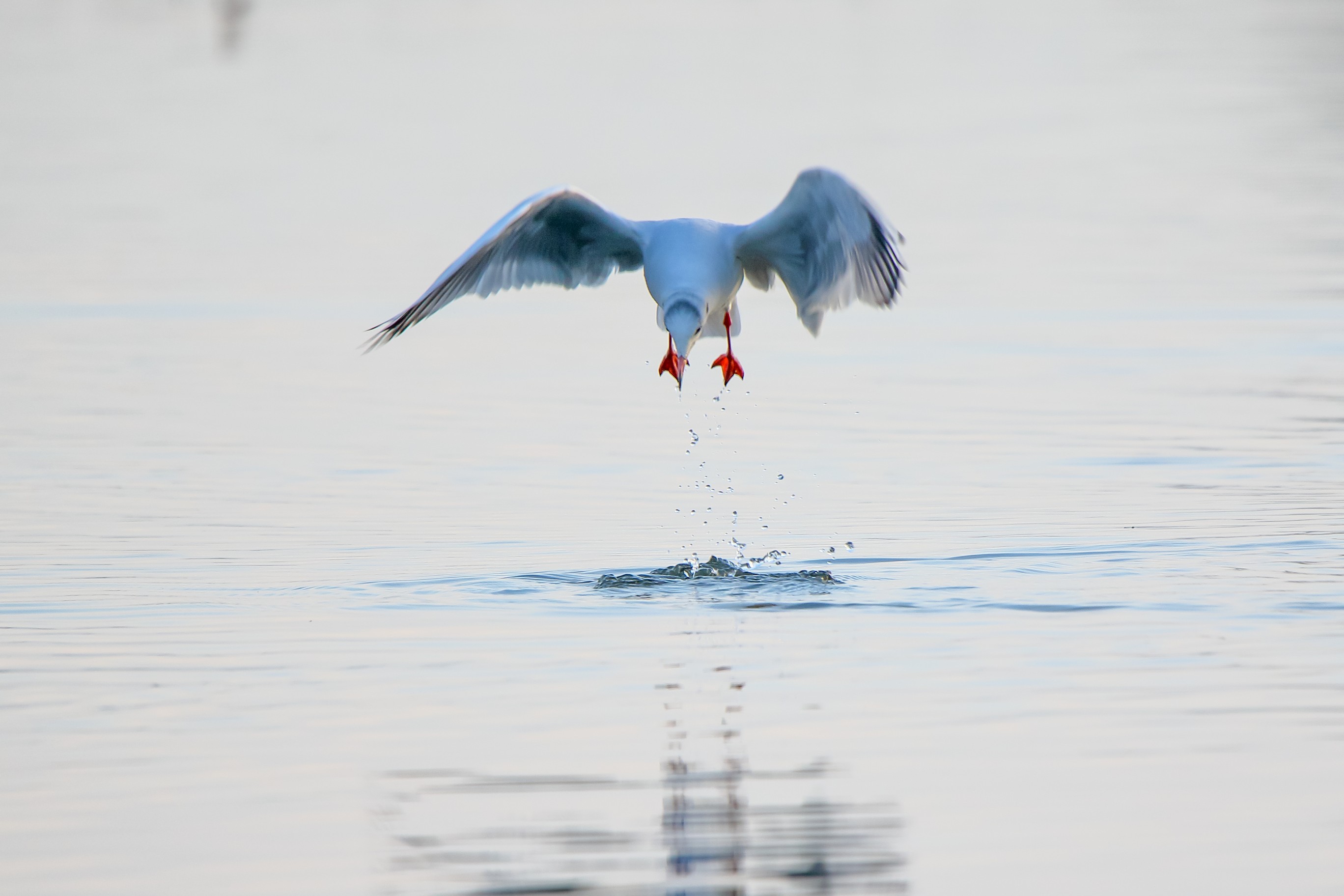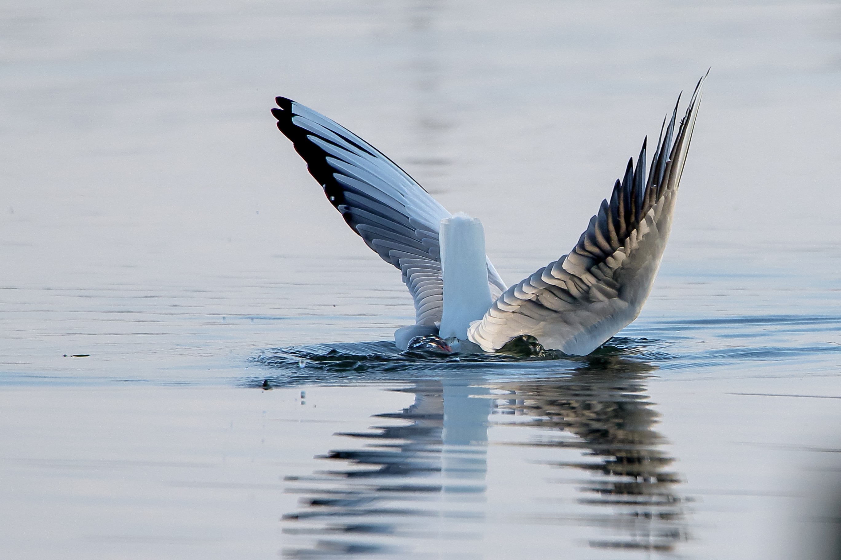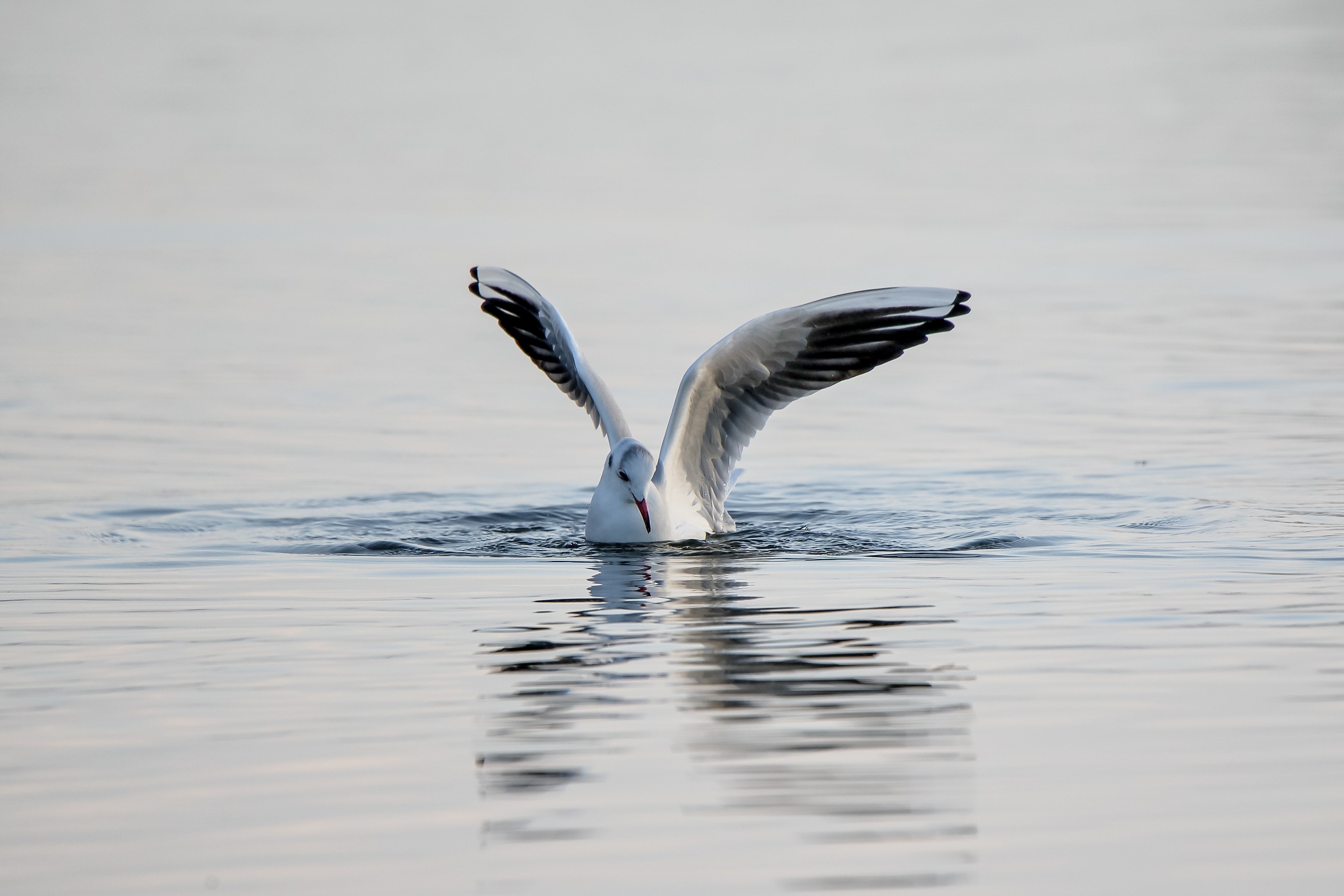 Akrobatische Futtersuche der Möwen bei Hochwasser