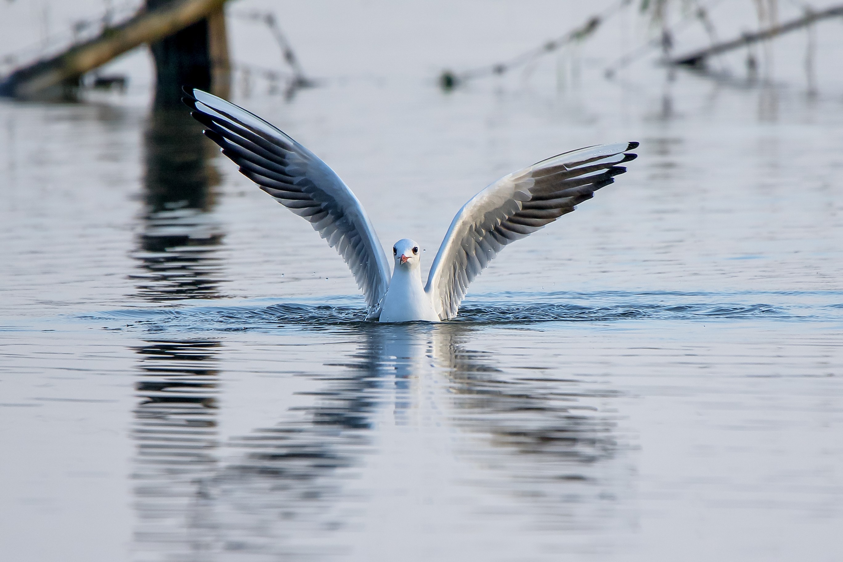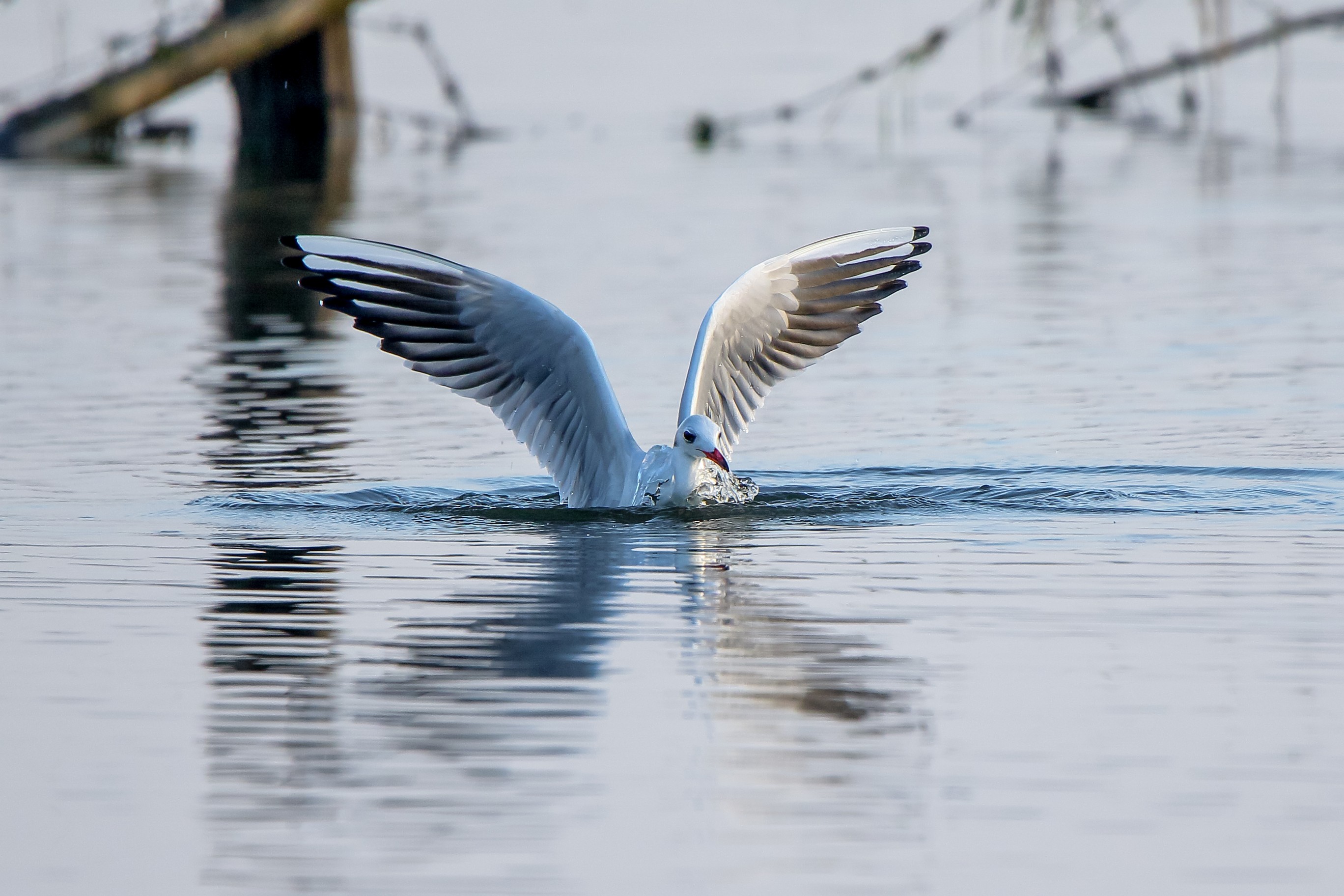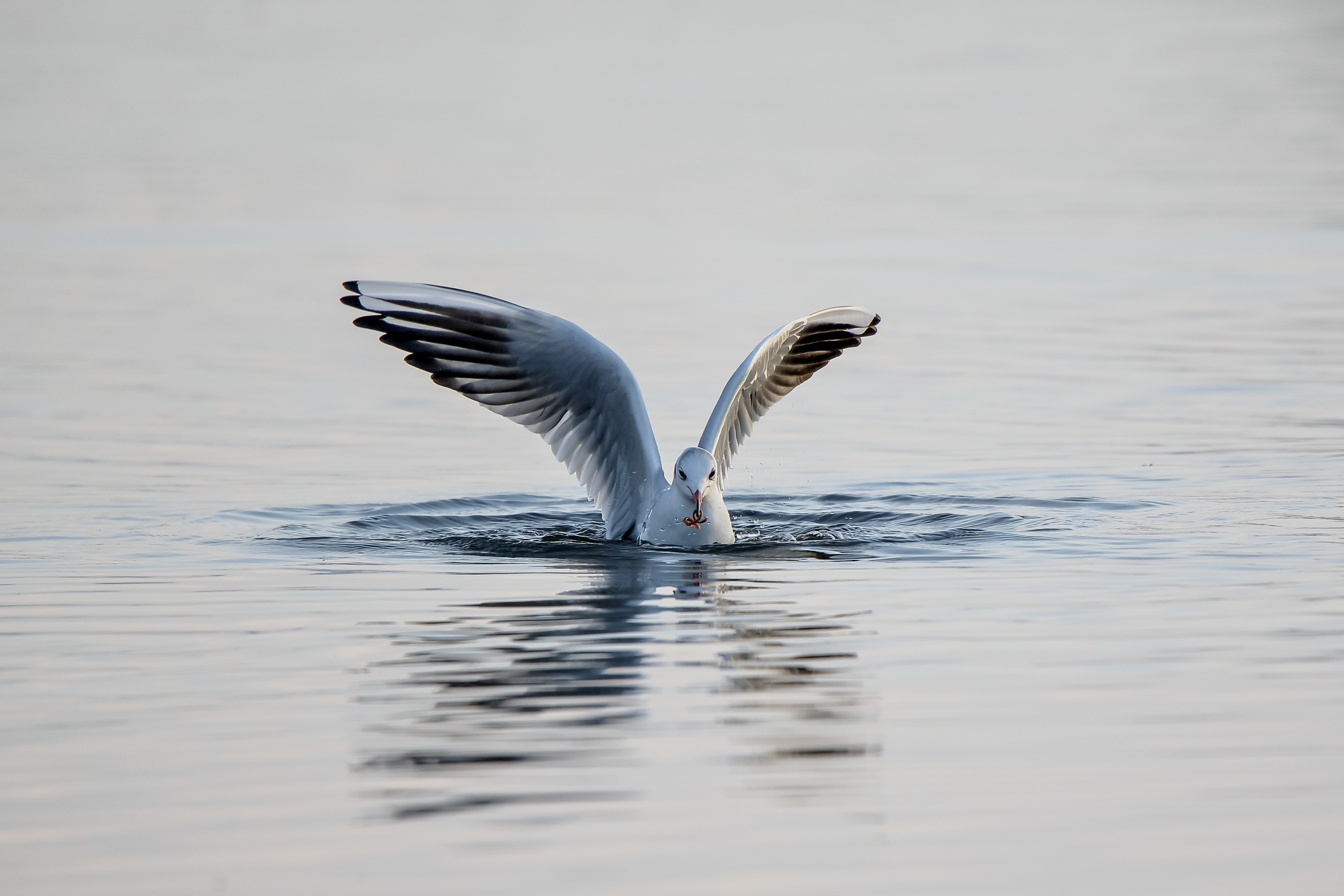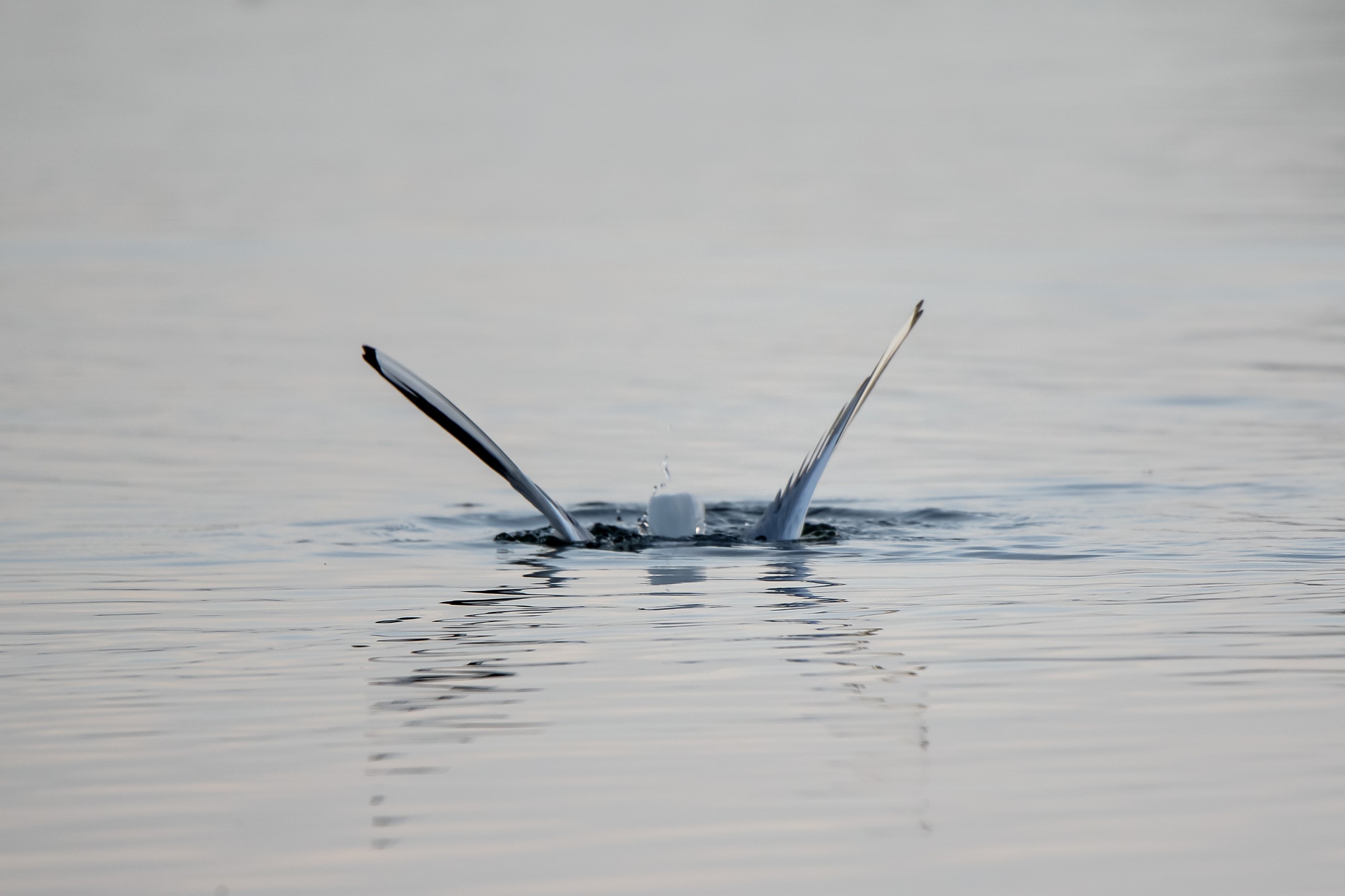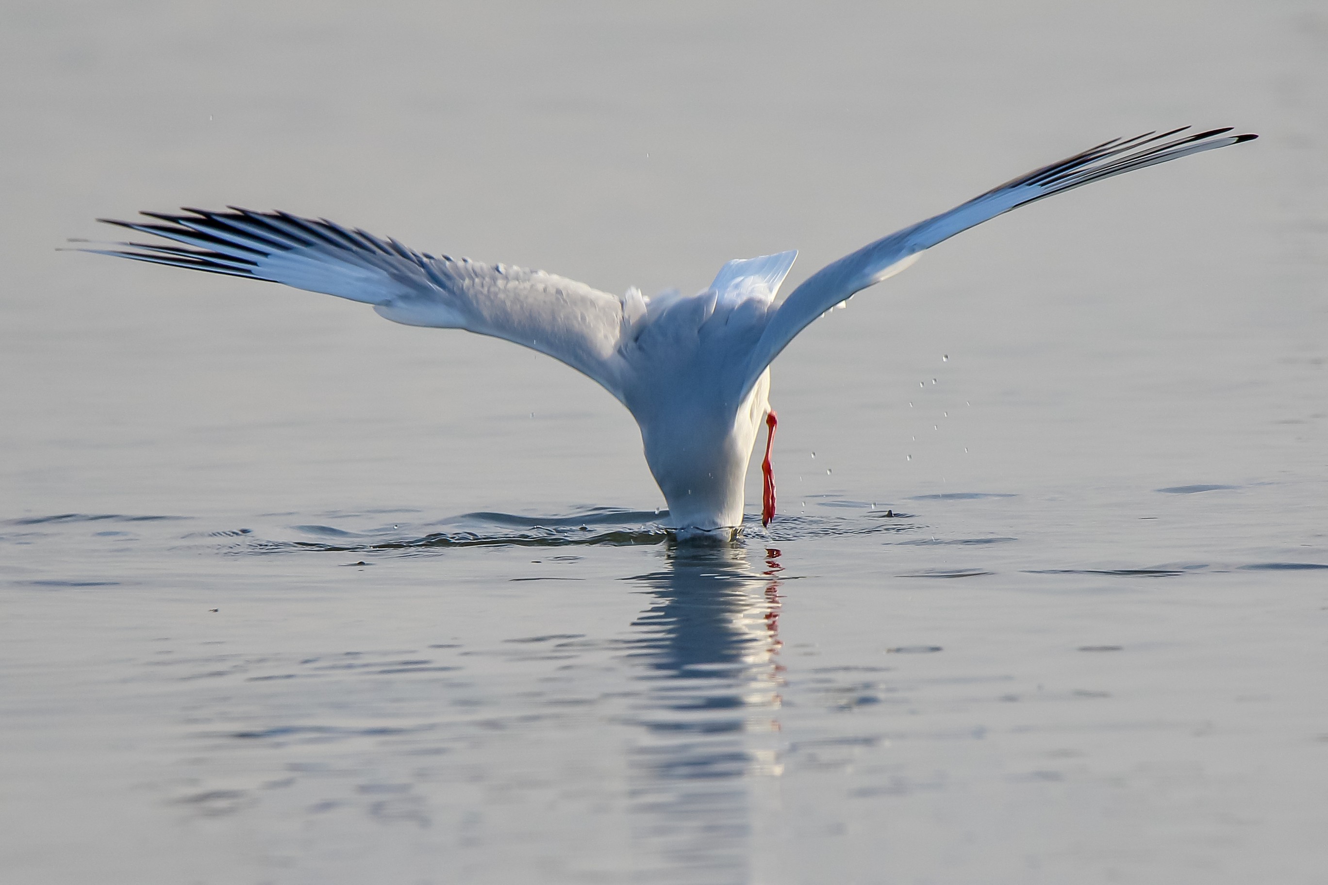 Akrobatische Futtersuche der Möwen bei Hochwasser