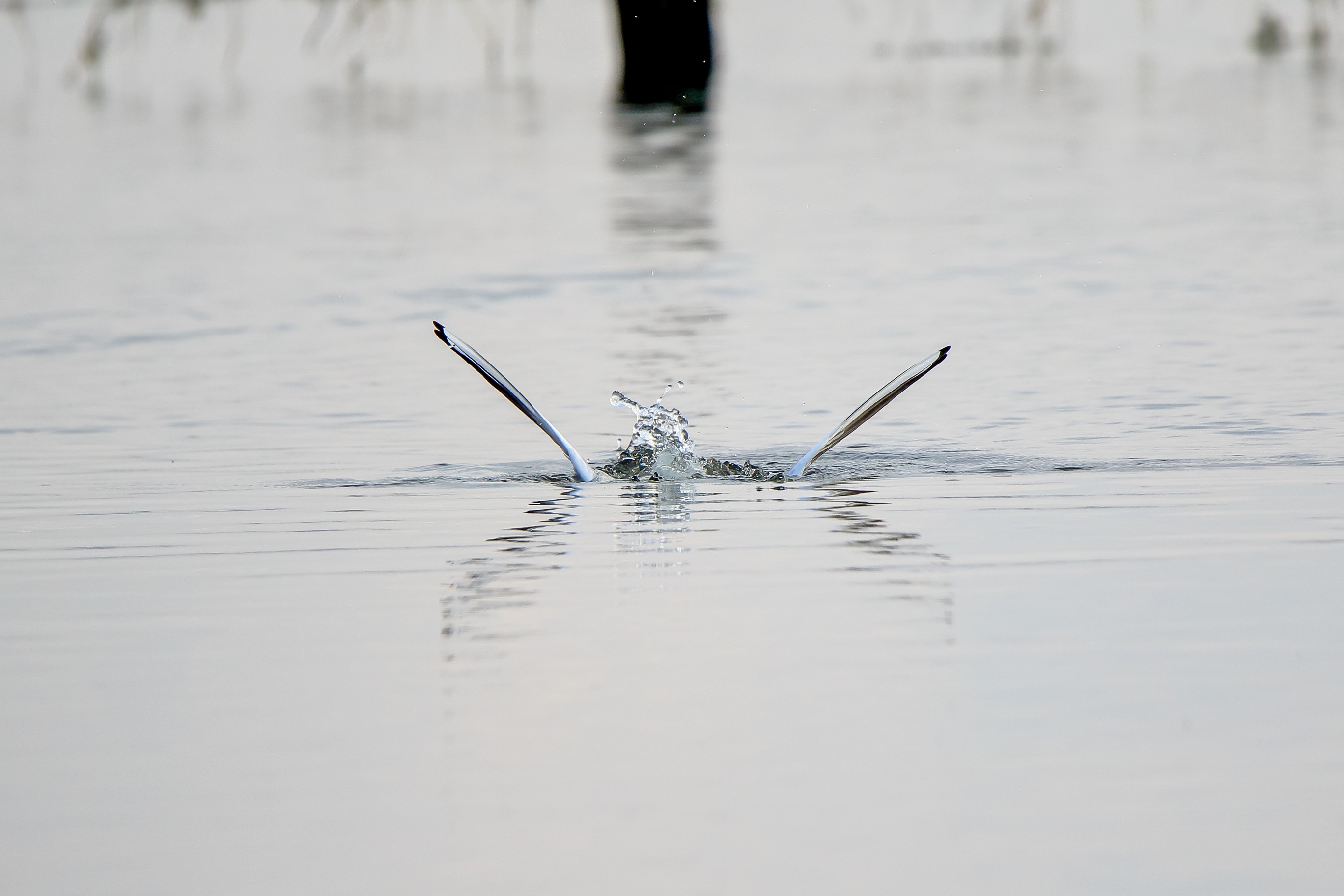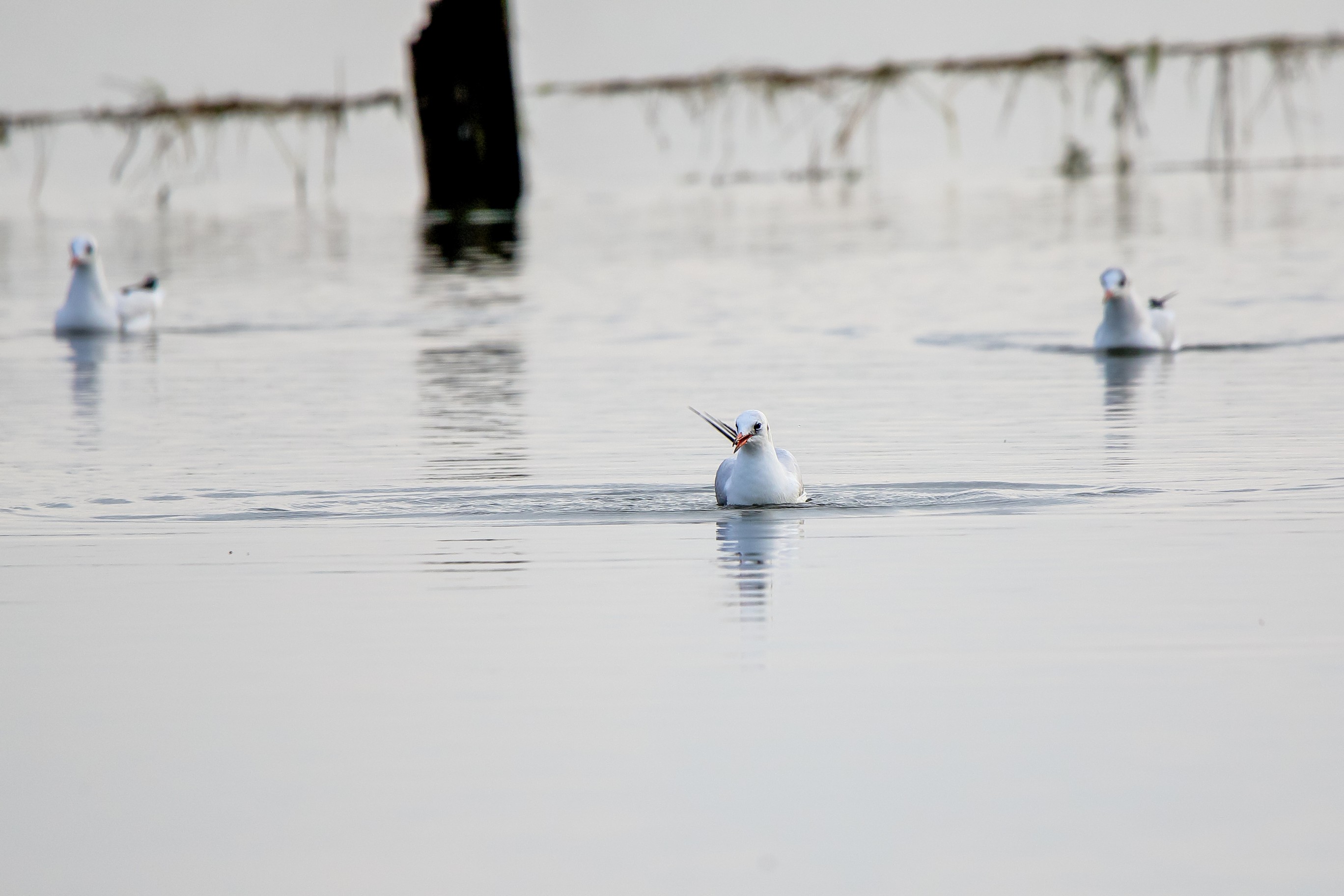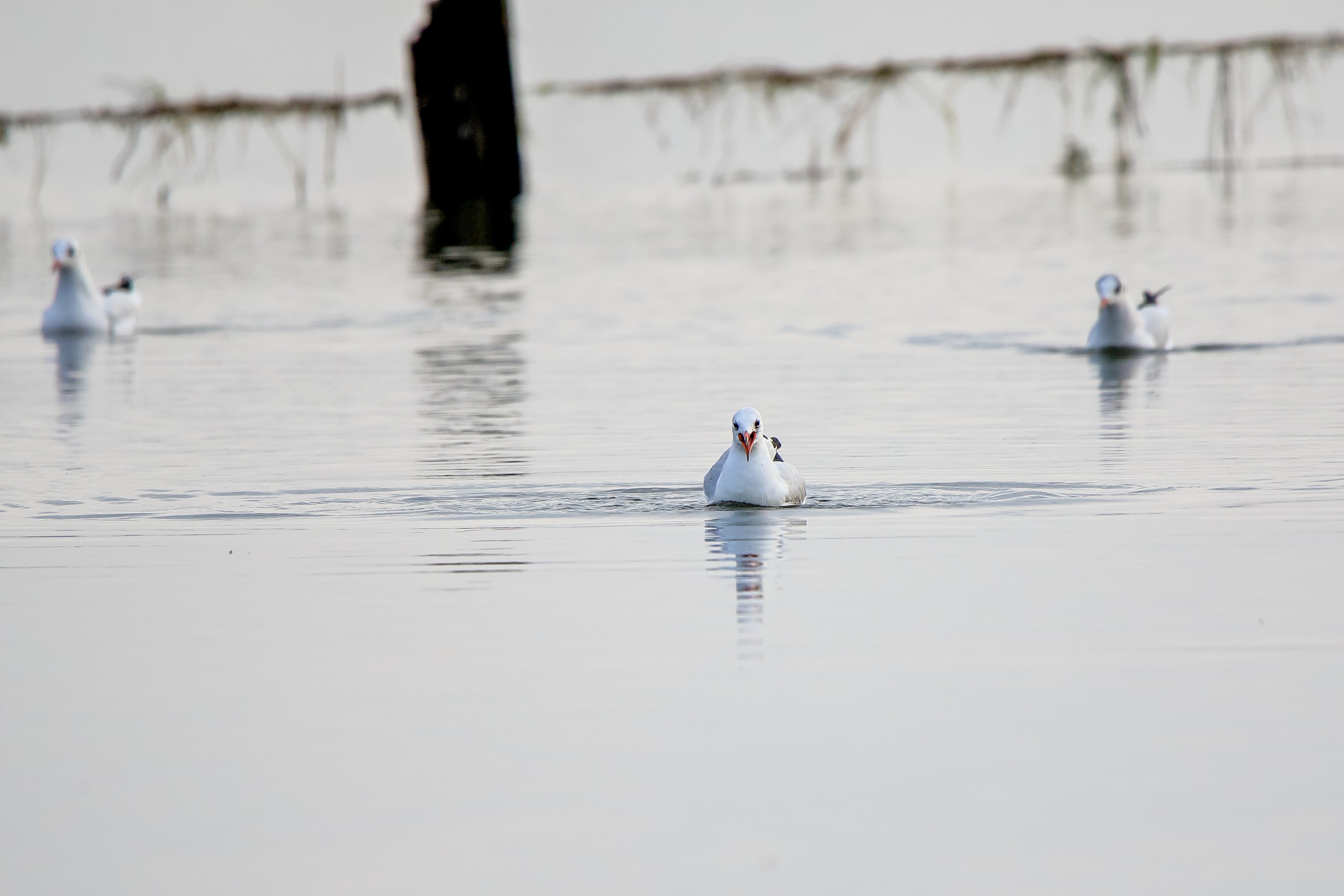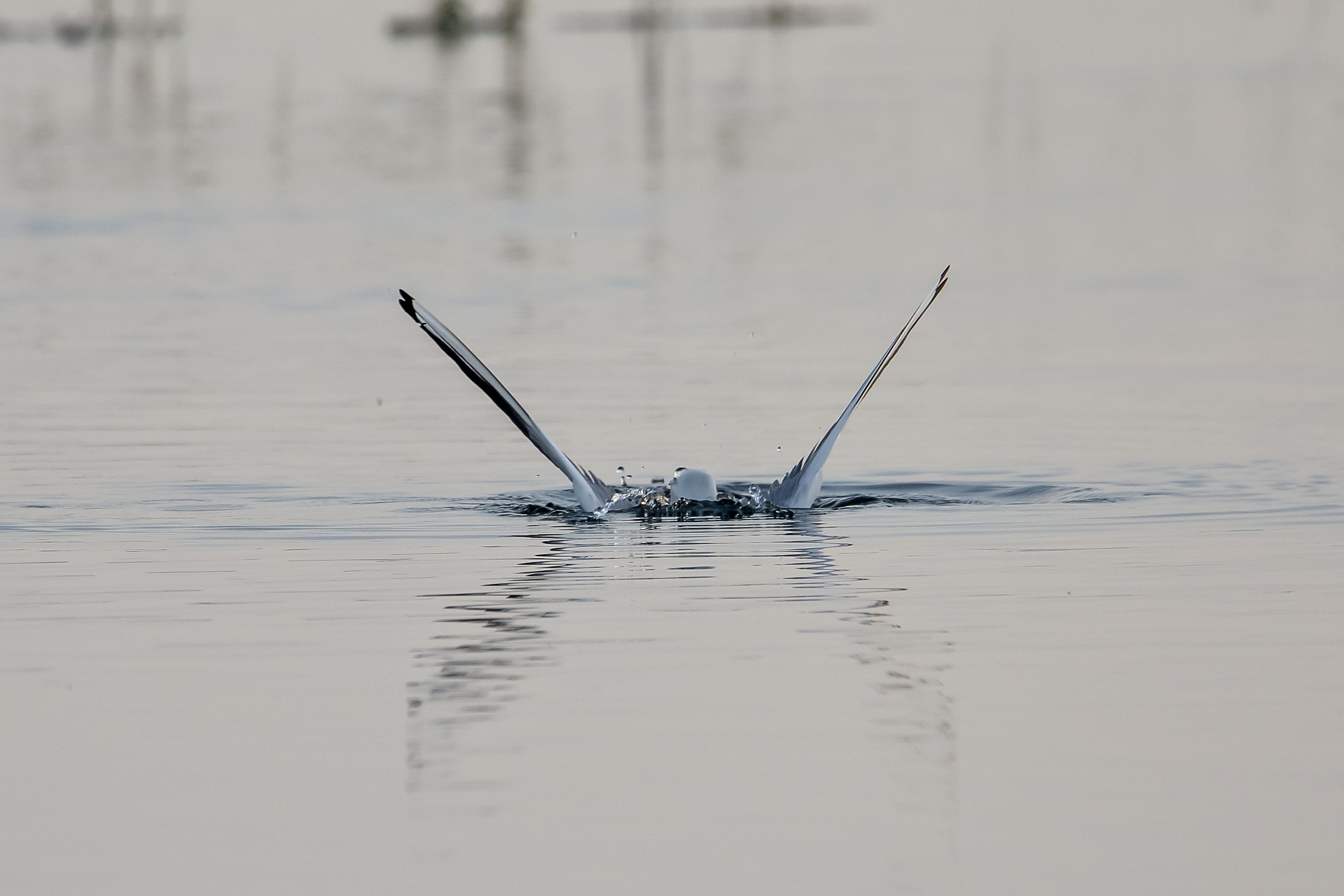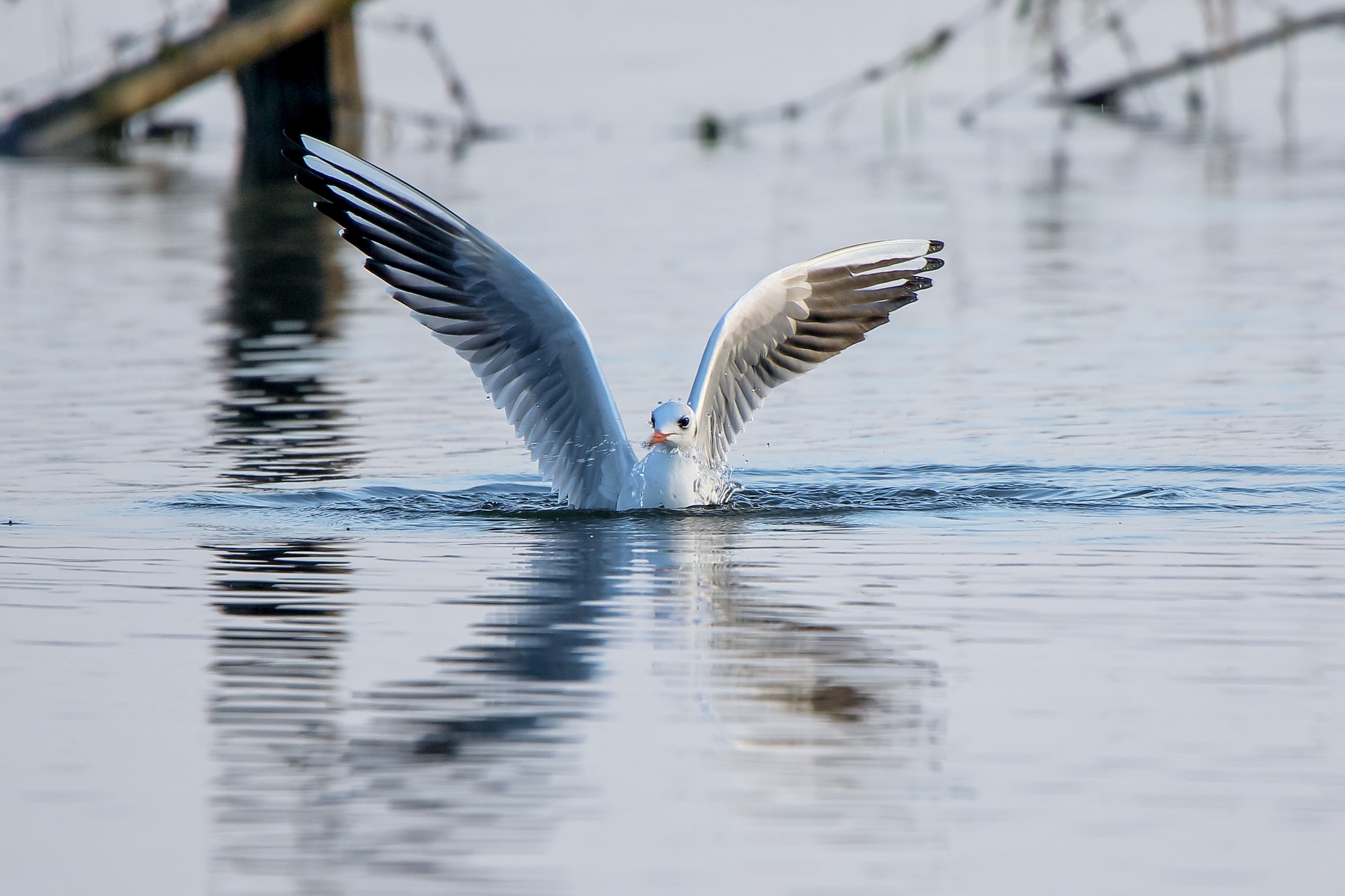 Akrobatische Futtersuche der Möwen bei Hochwasser