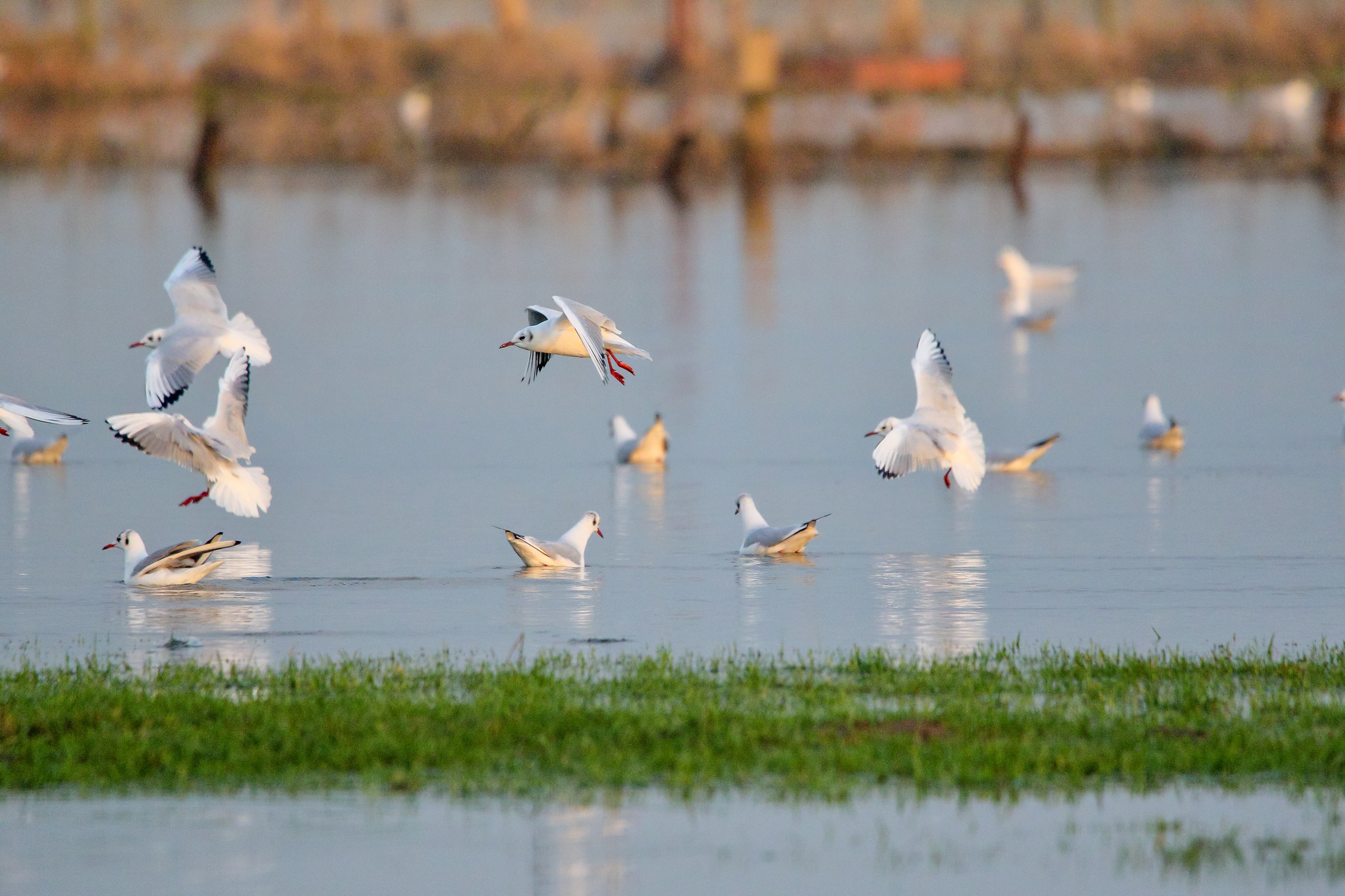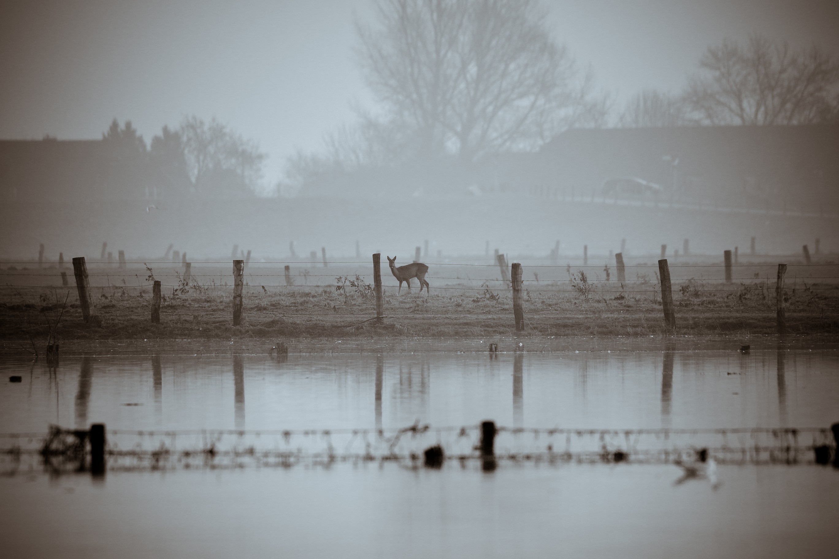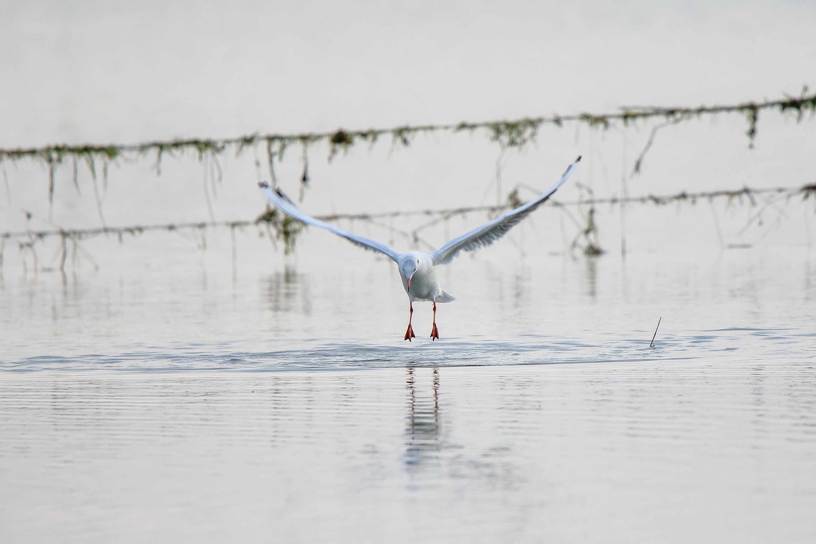 Die jährlich auftretende Hochwassersituation in der Auenlandschaft Bislicher Insel erschwert das Leben vieler Tierarten. Die Möwen erfreuen sich an den überfluteten Wiesen und fischen sich die kleinen Leckerbissen, die im Wasser aufsteigen.