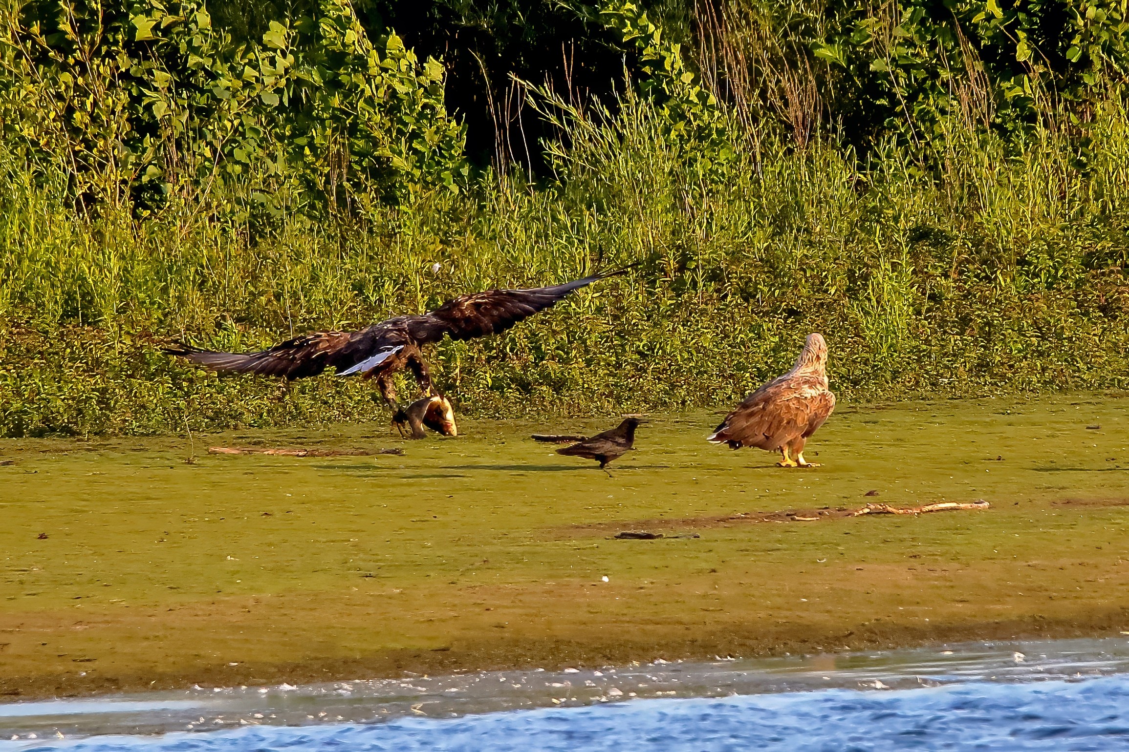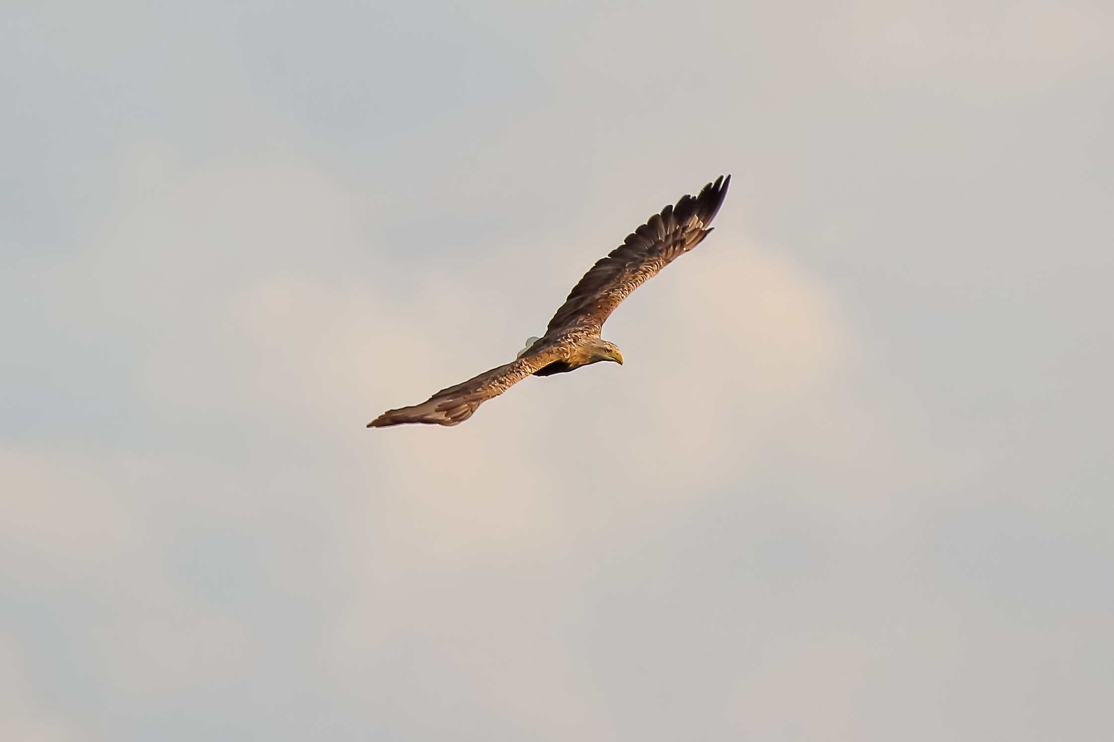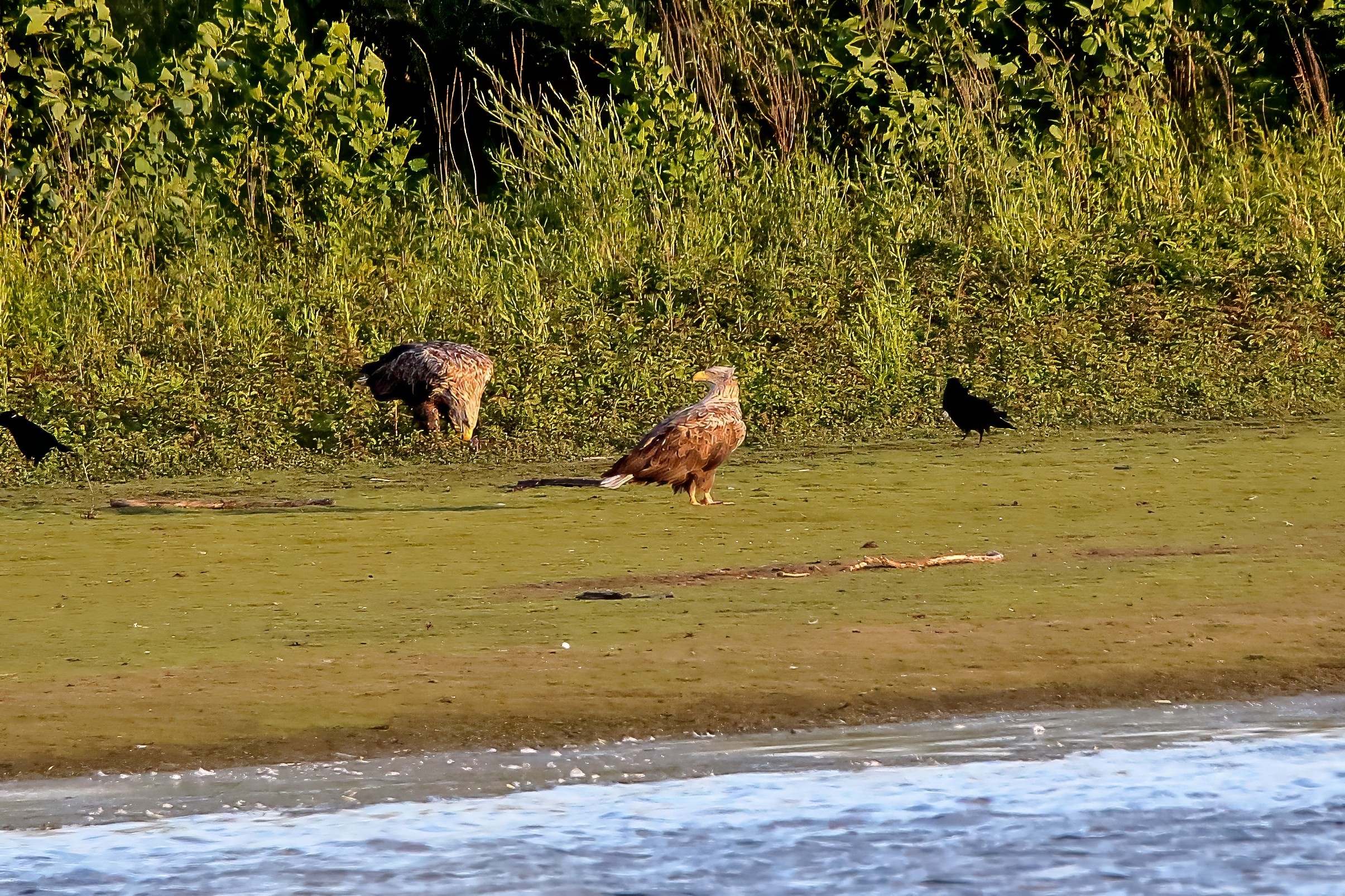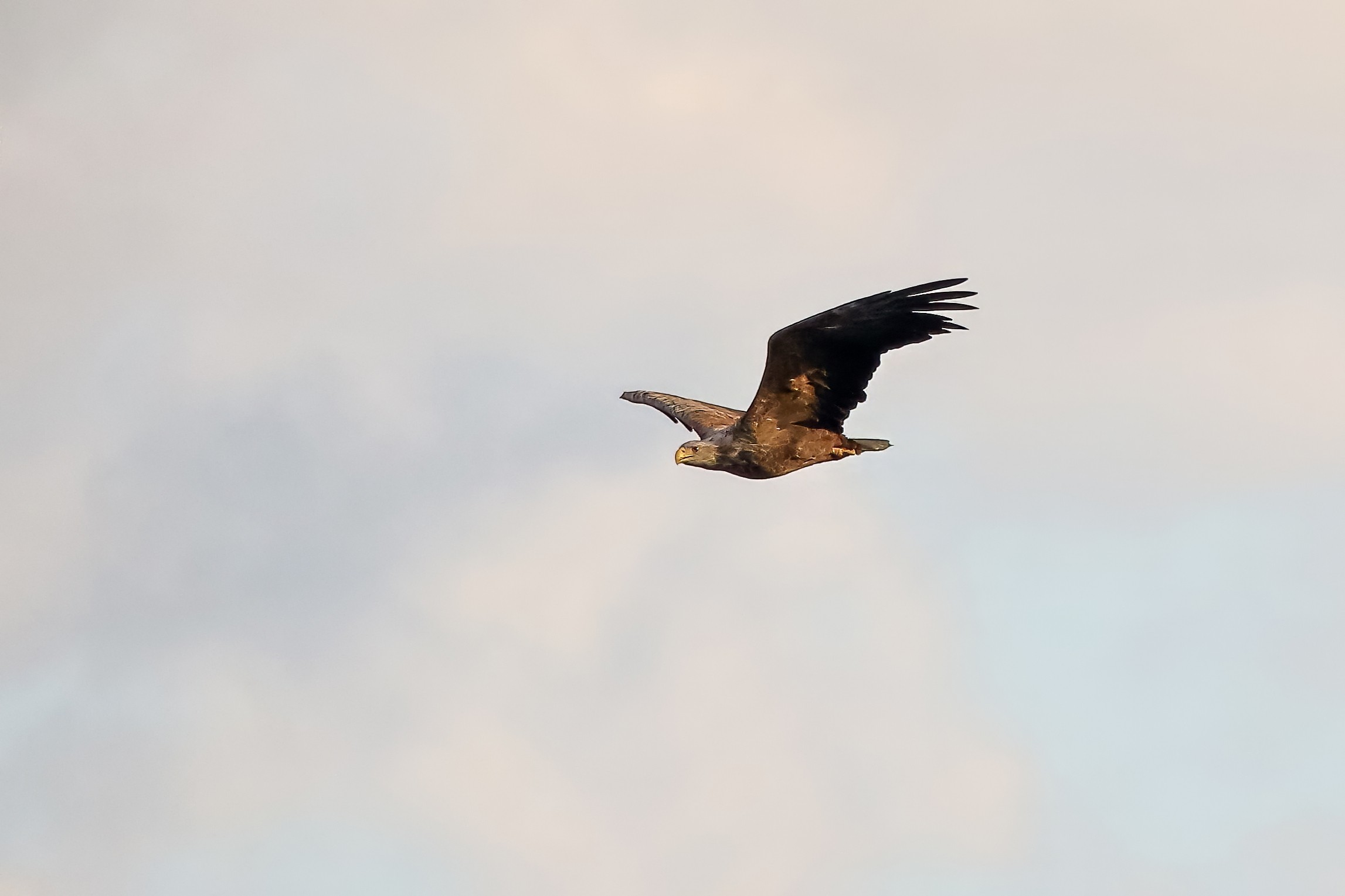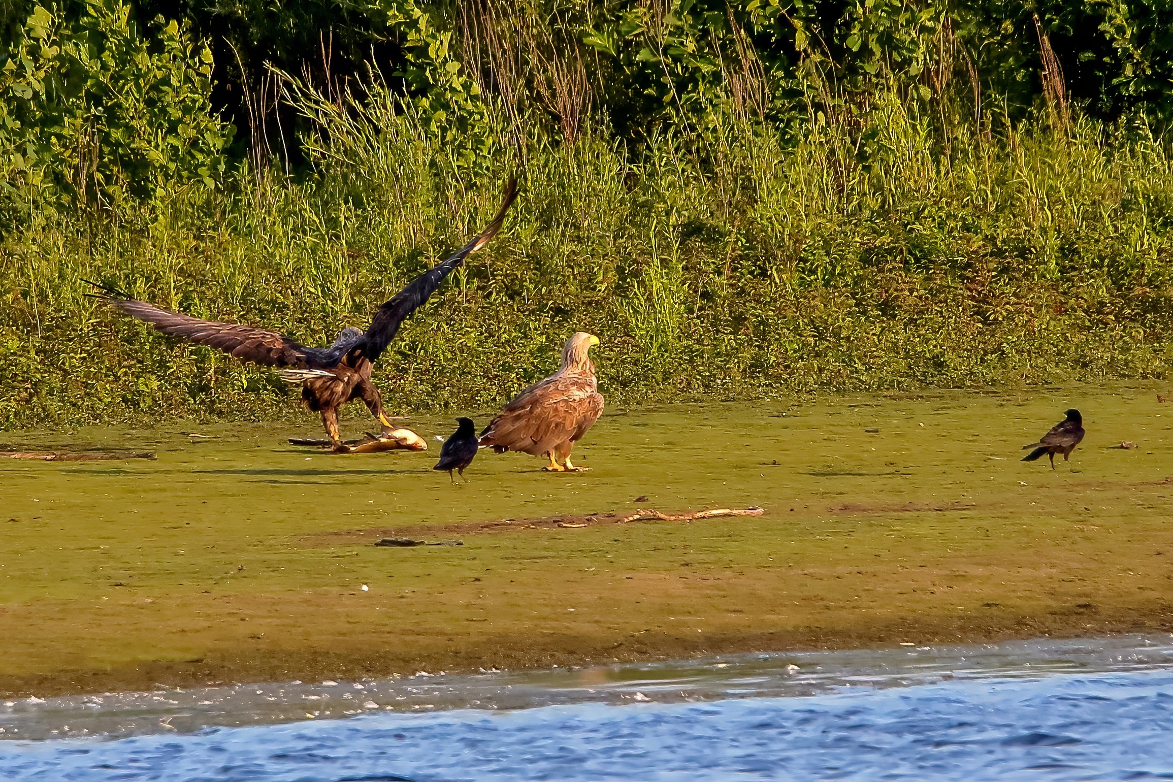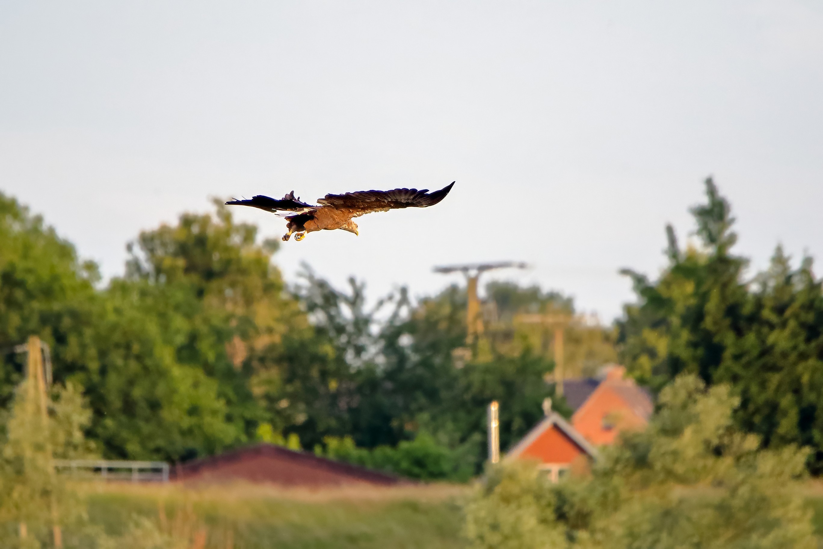 Spät, kurz vor Sonnenuntergang, zeigen sich die Seeadler bei der Fischjagd