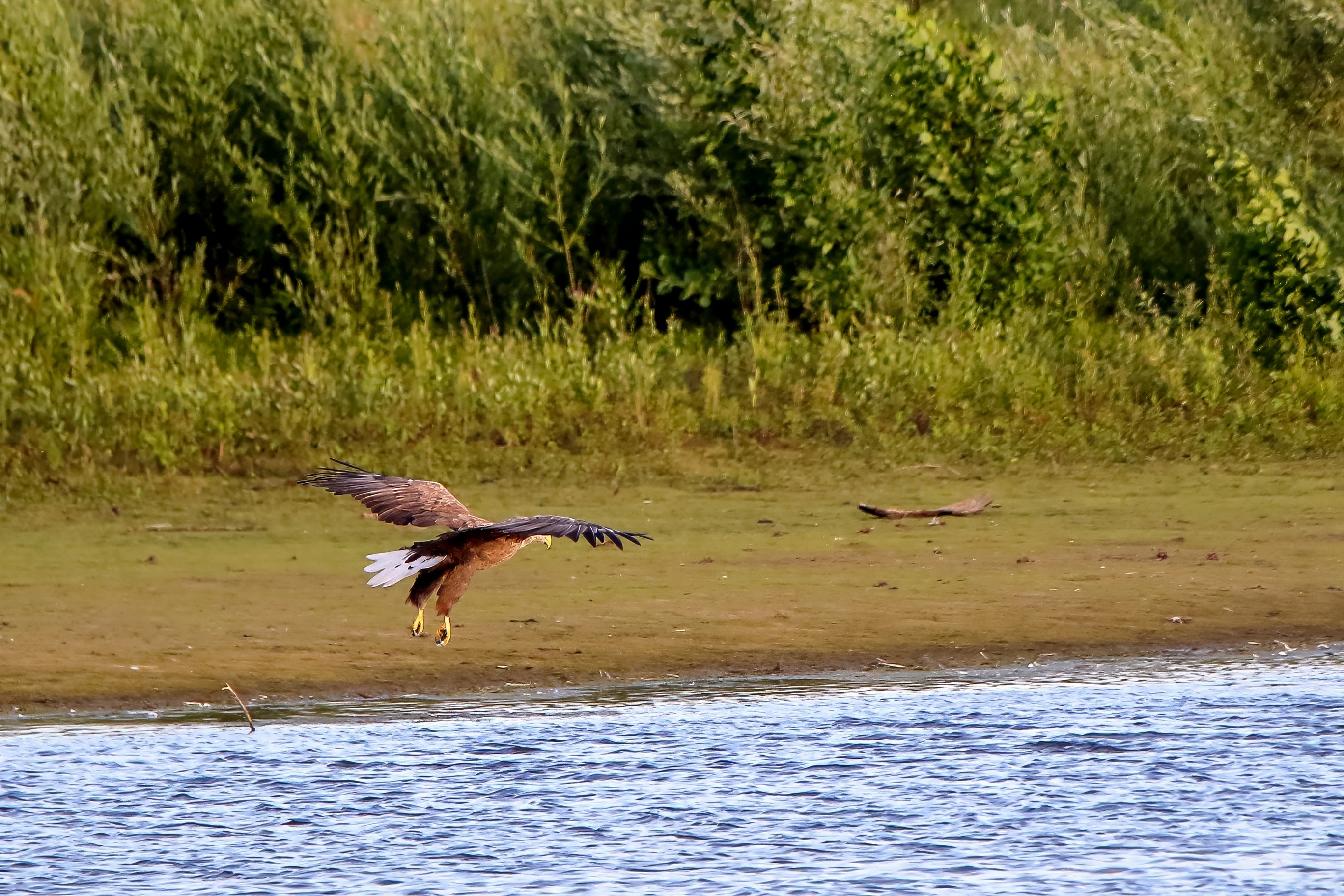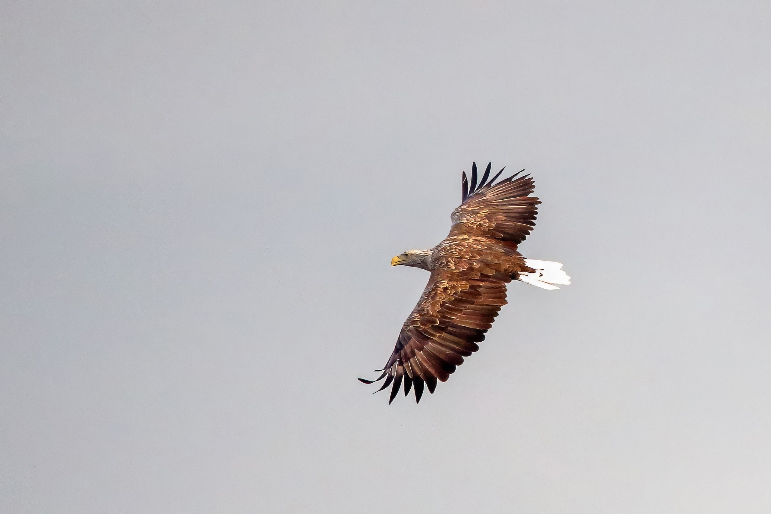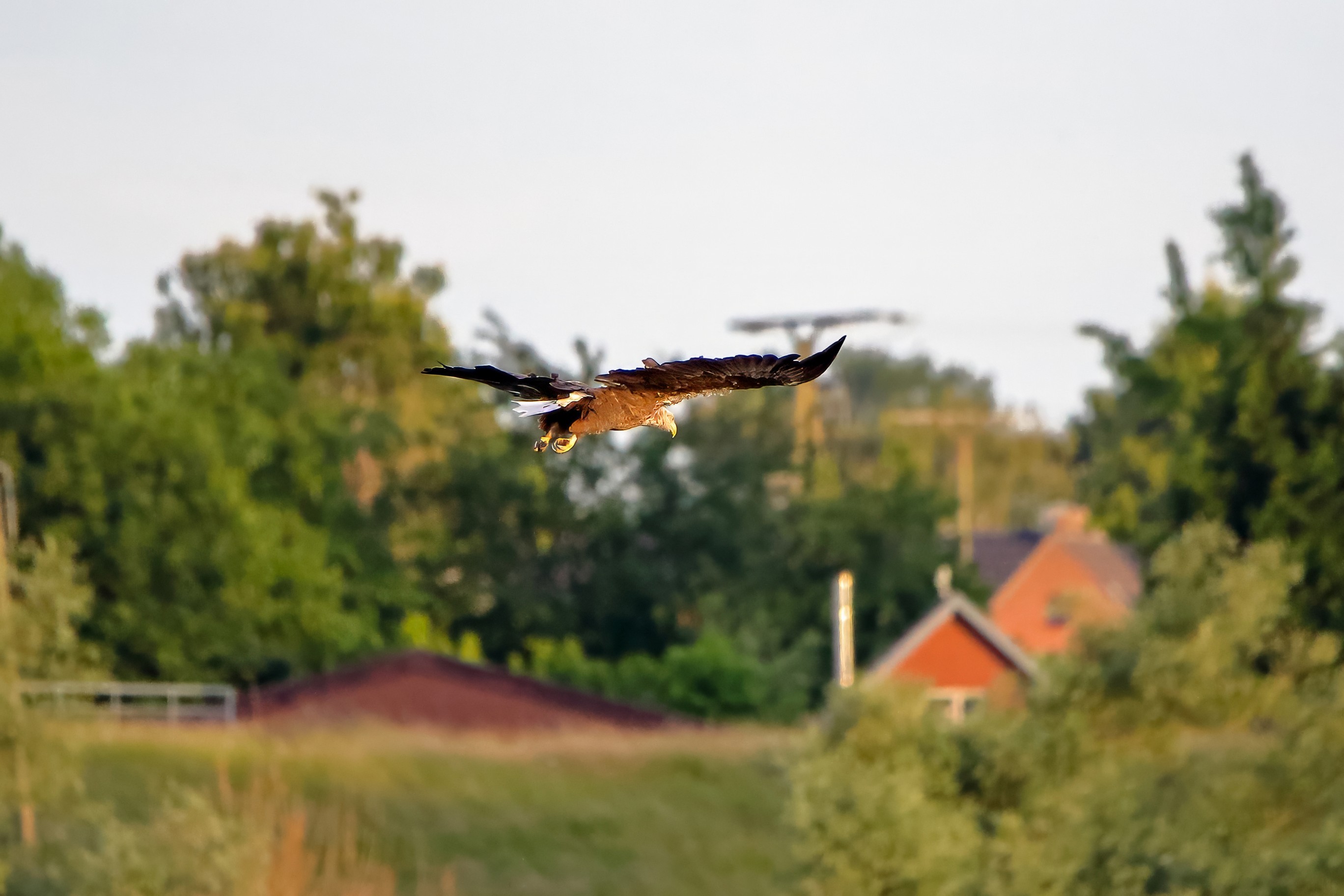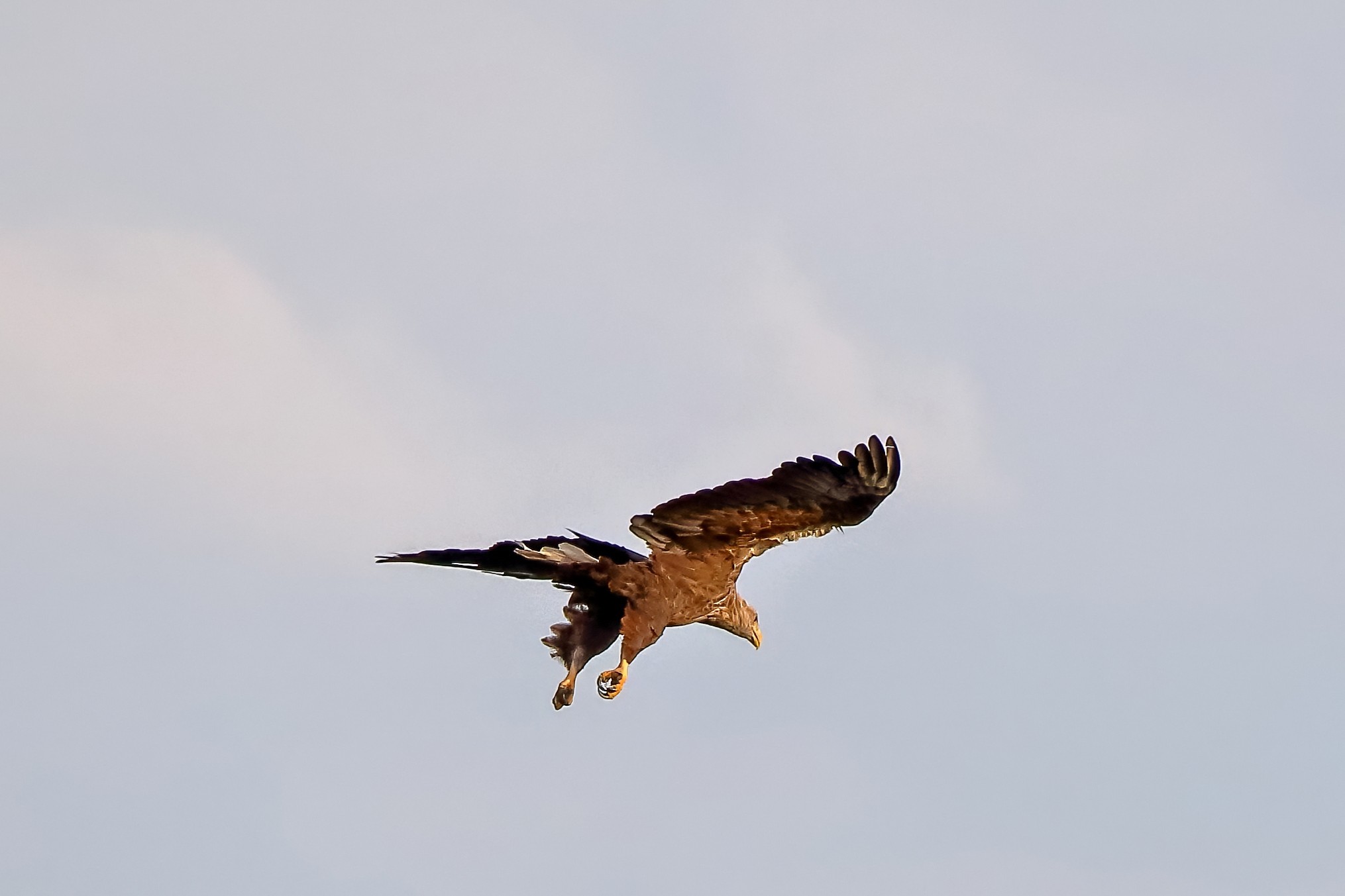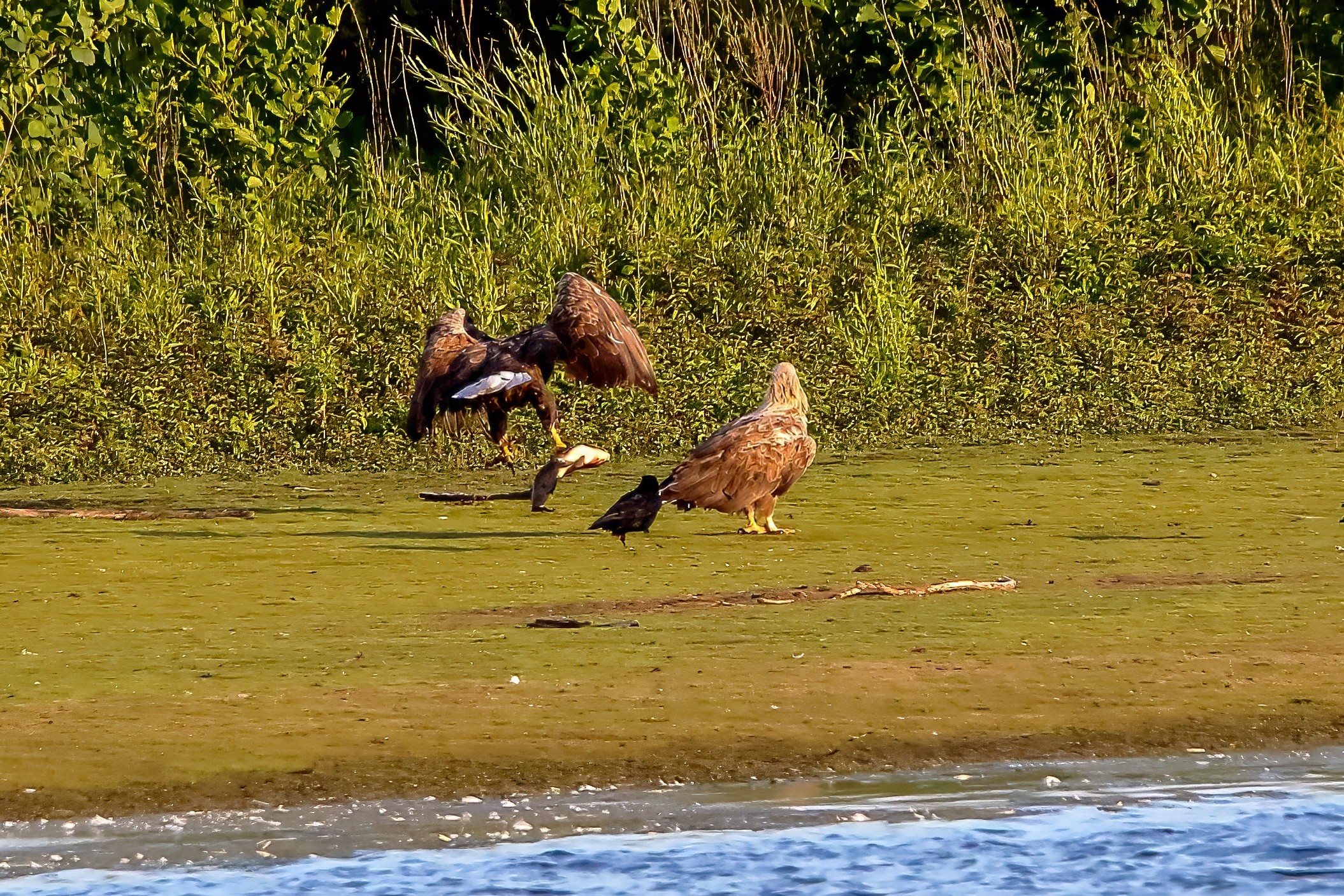 Spät, kurz vor Sonnenuntergang, zeigen sich die Seeadler bei der Fischjagd