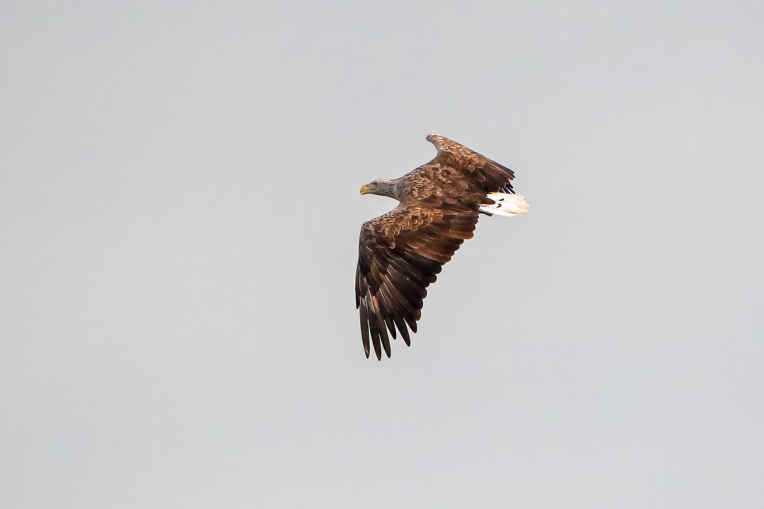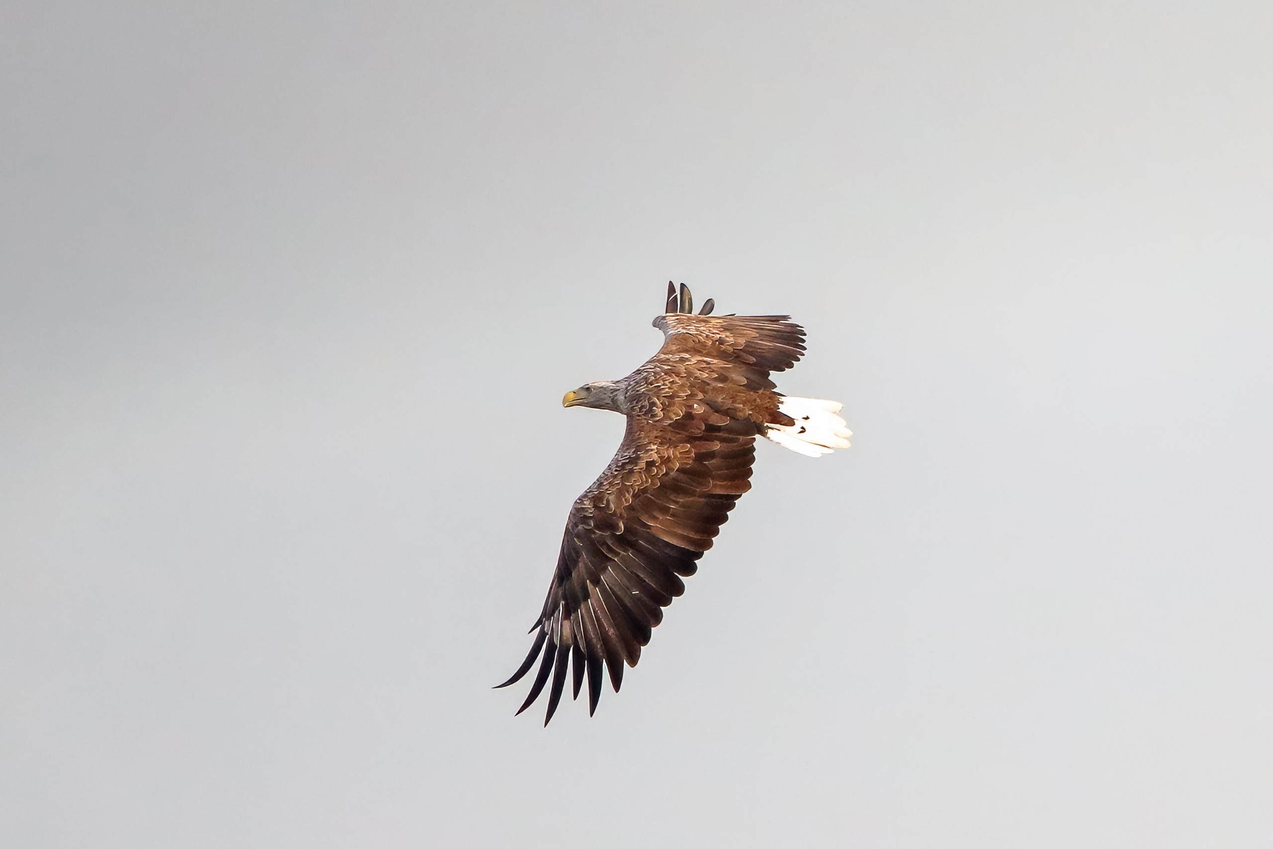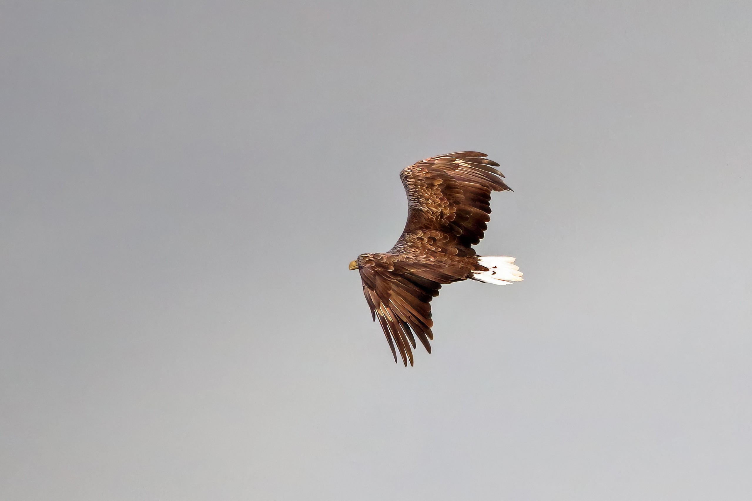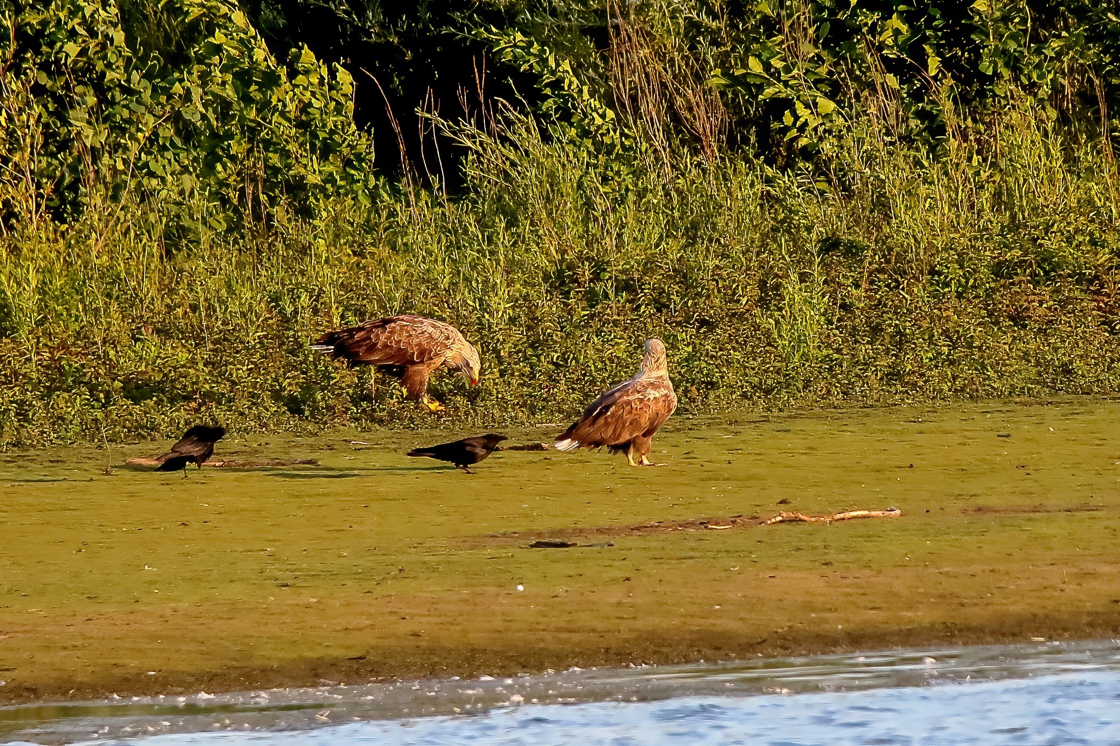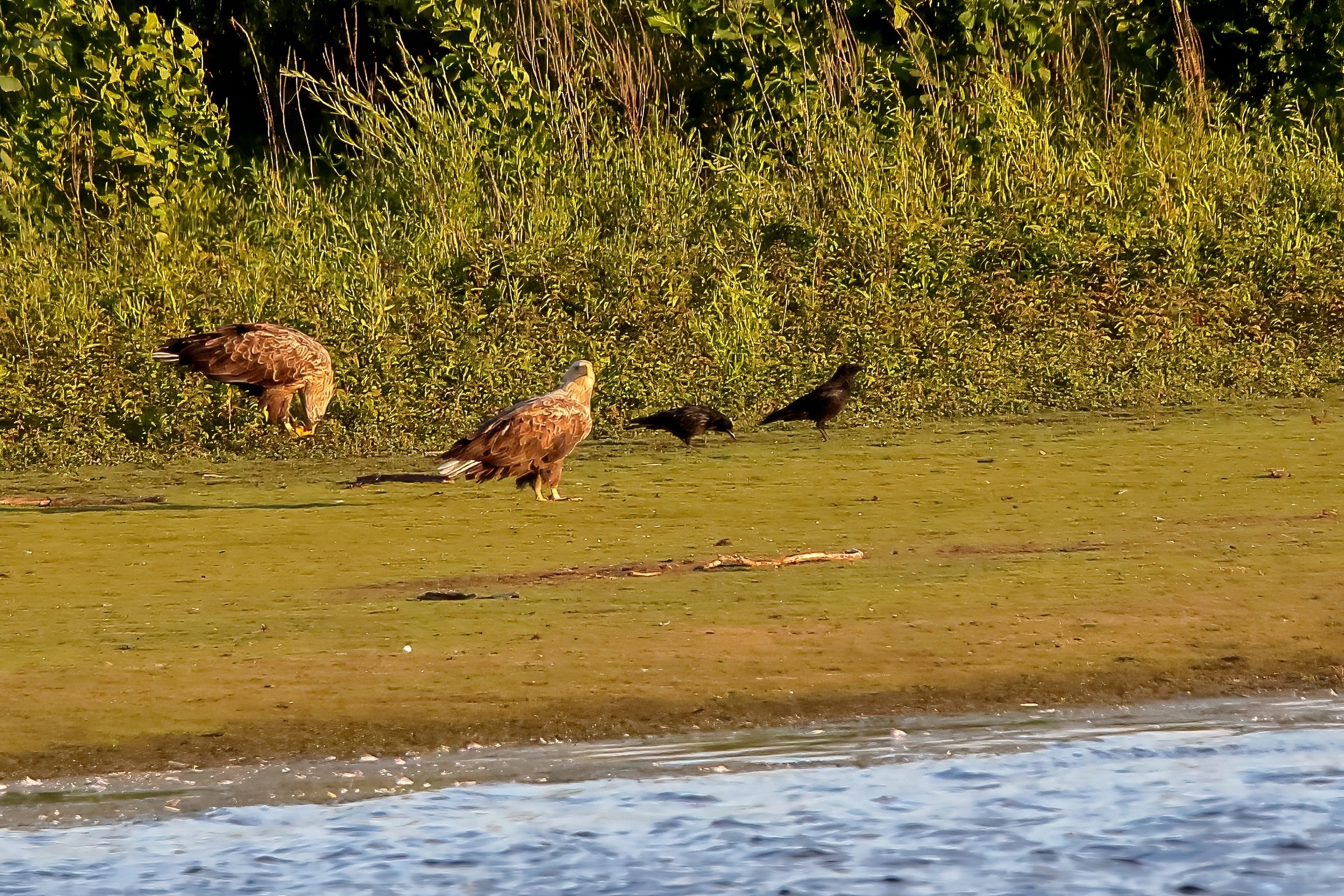 Spät, kurz vor Sonnenuntergang, zeigen sich die Seeadler bei der Fischjagd