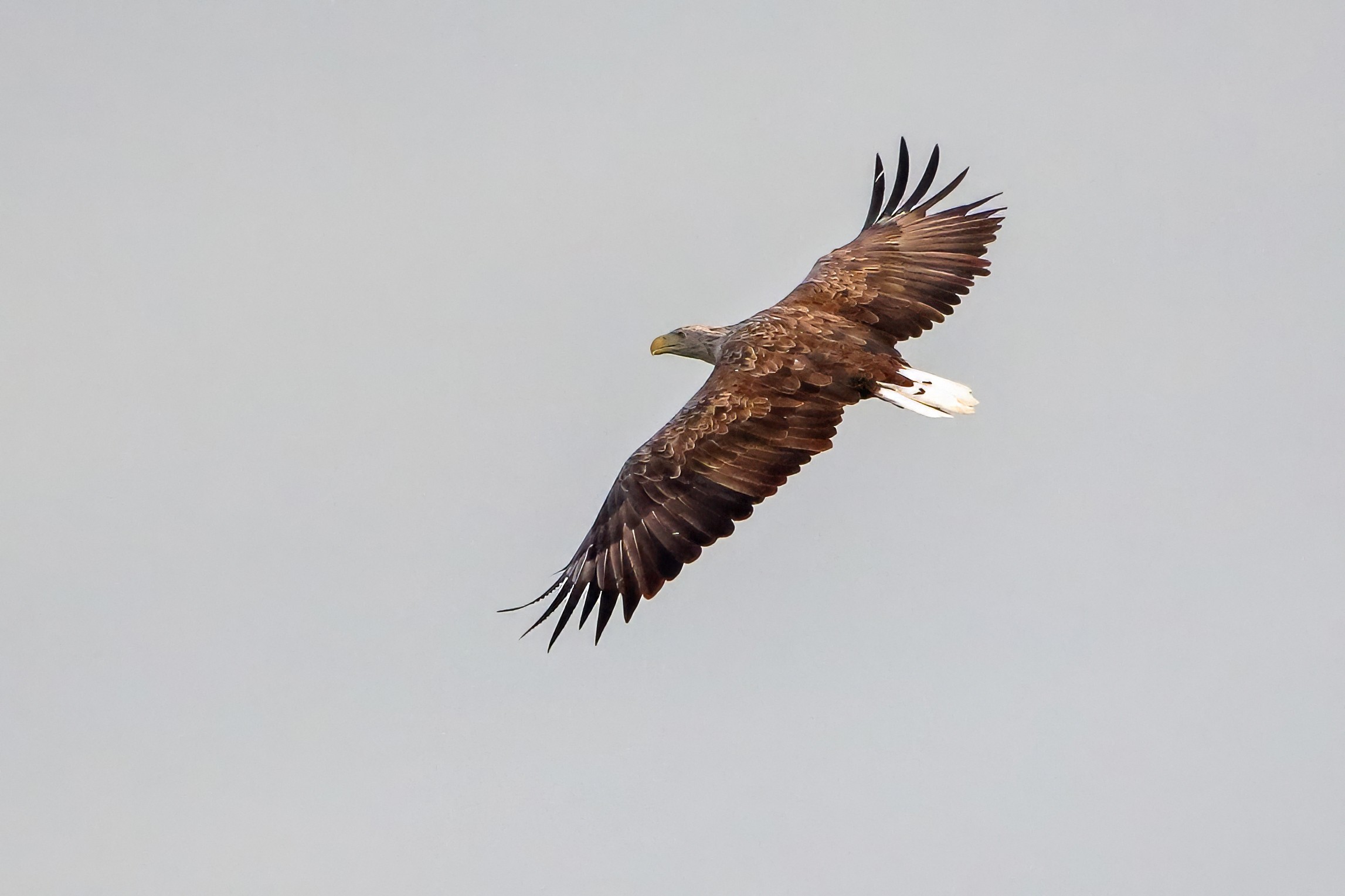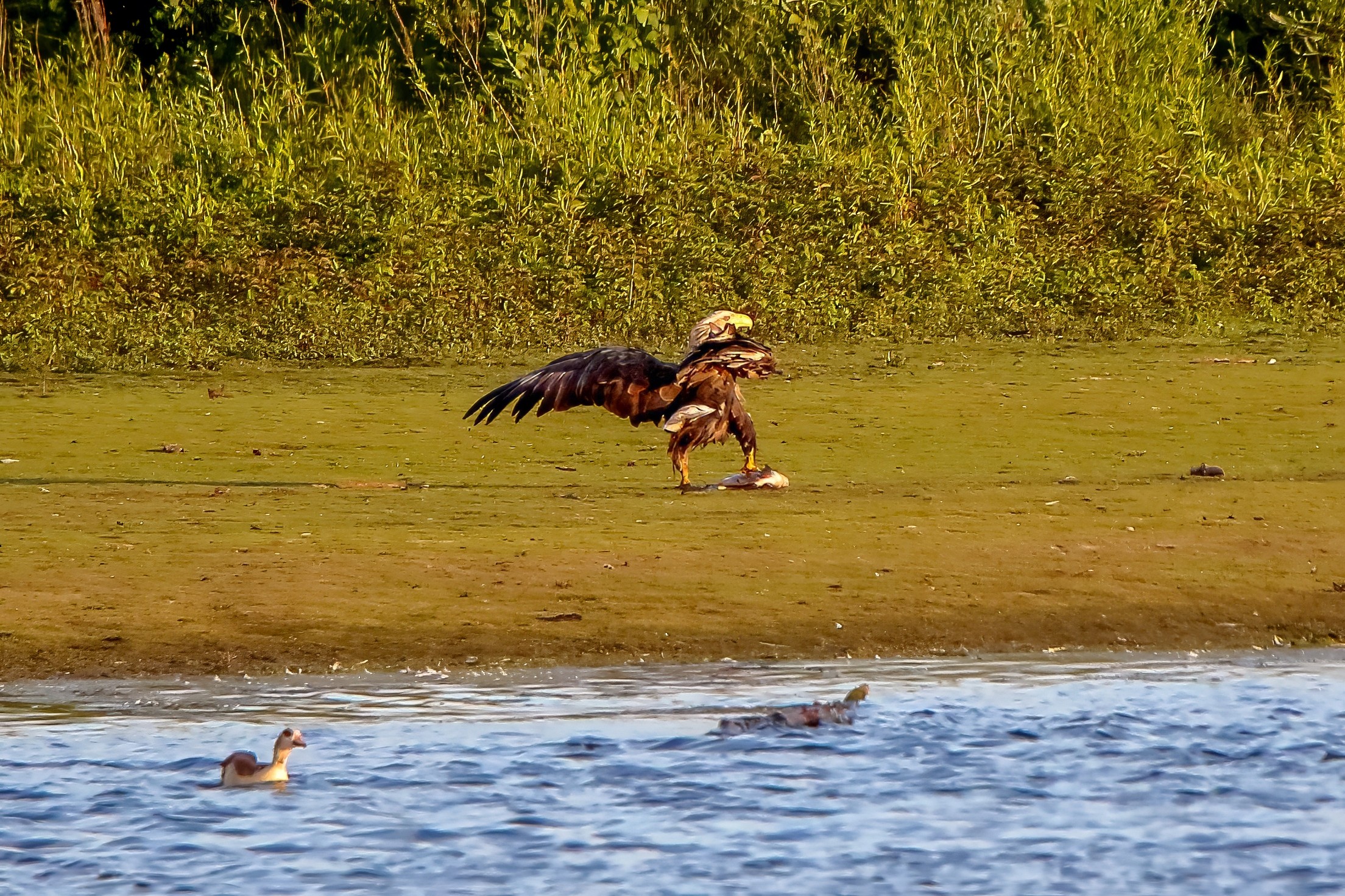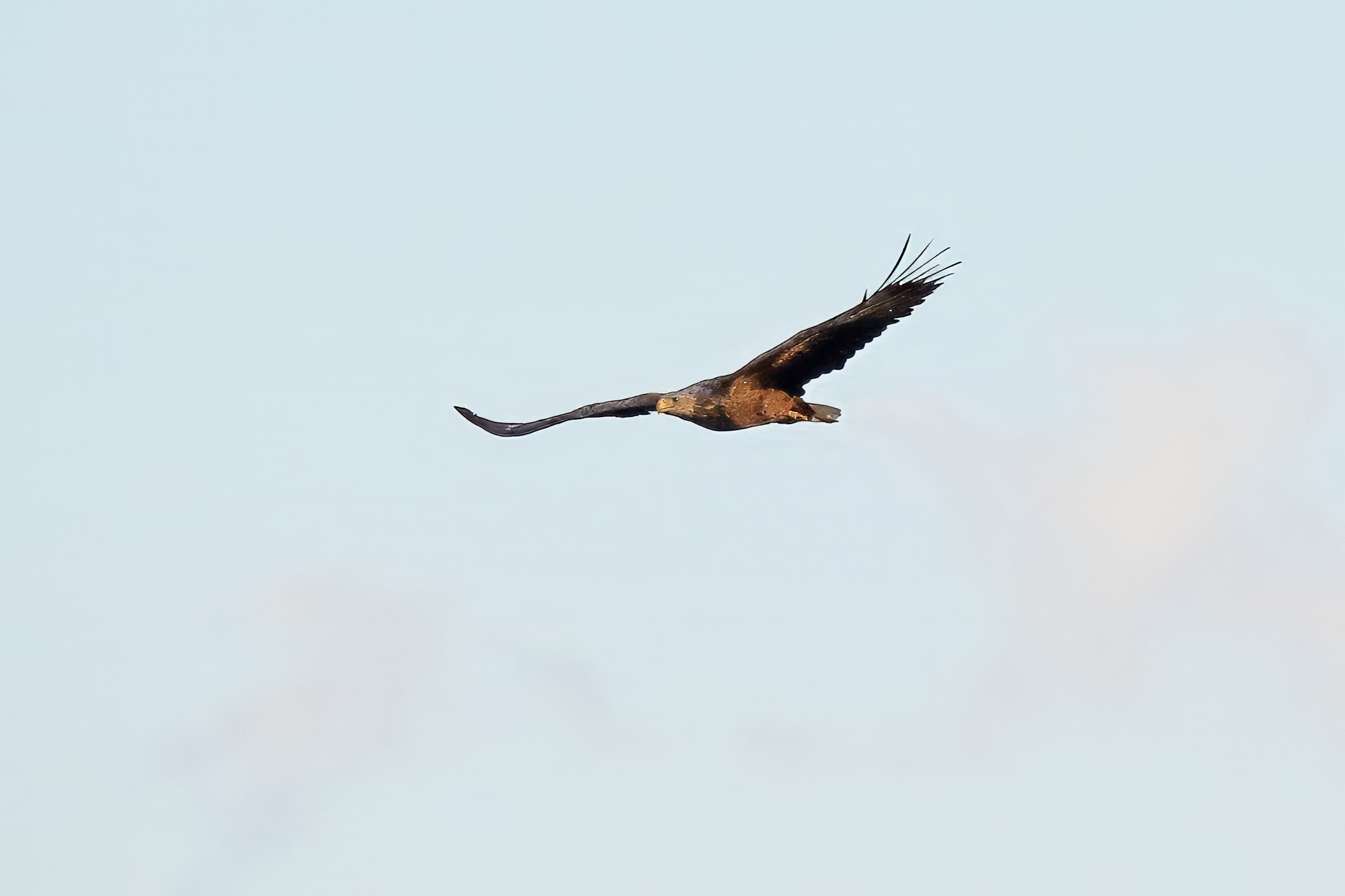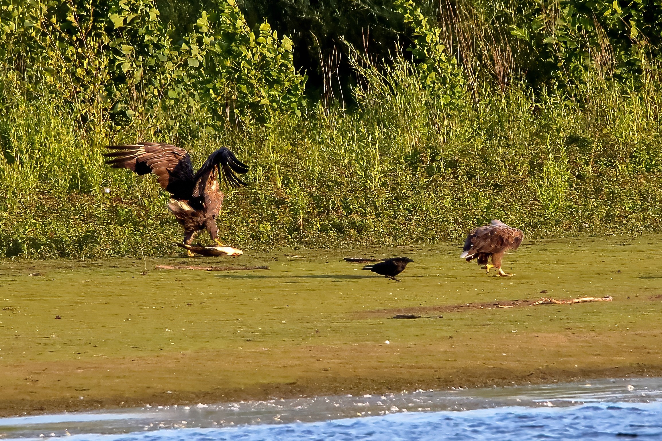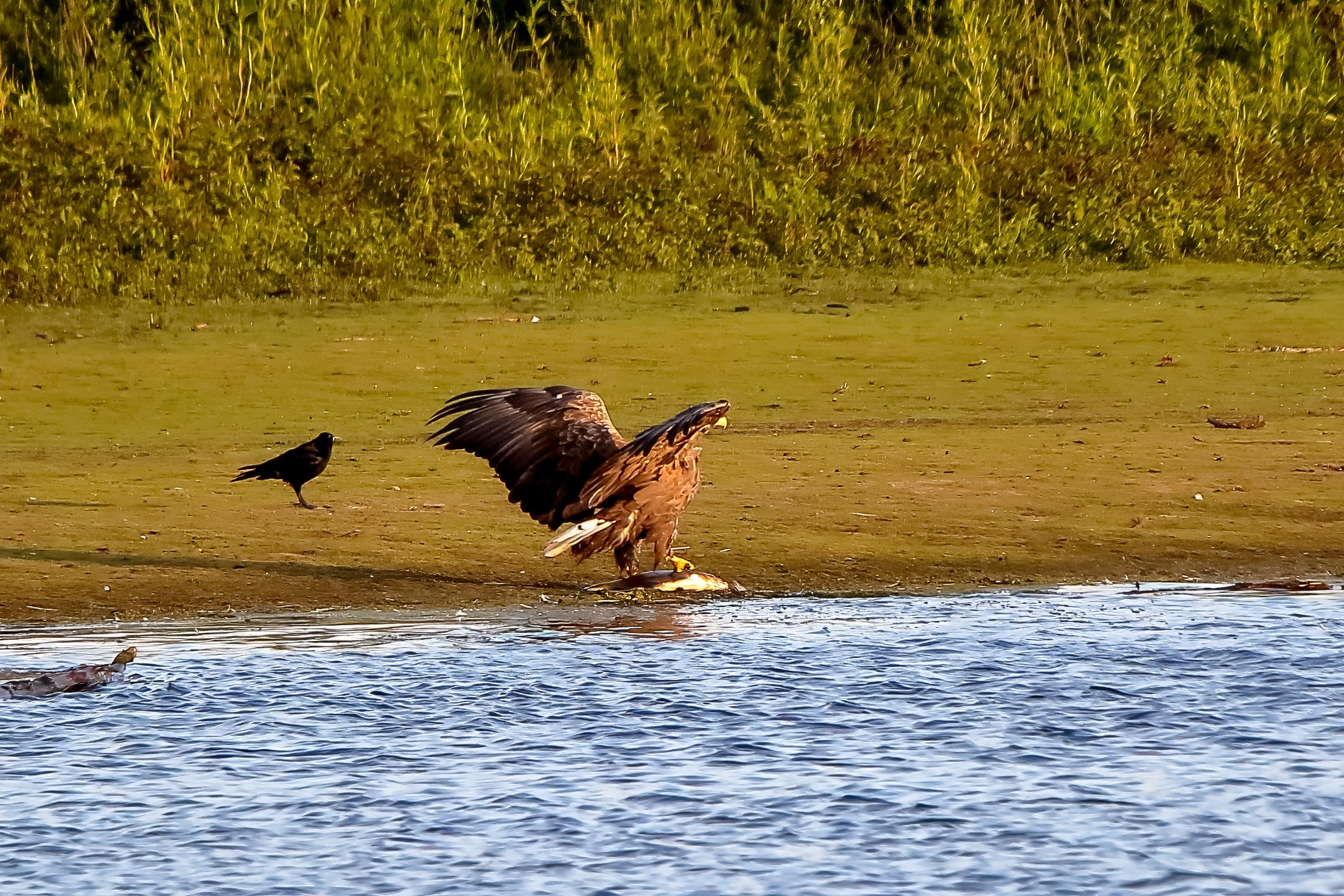 Spät, kurz vor Sonnenuntergang, zeigen sich die Seeadler bei der Fischjagd