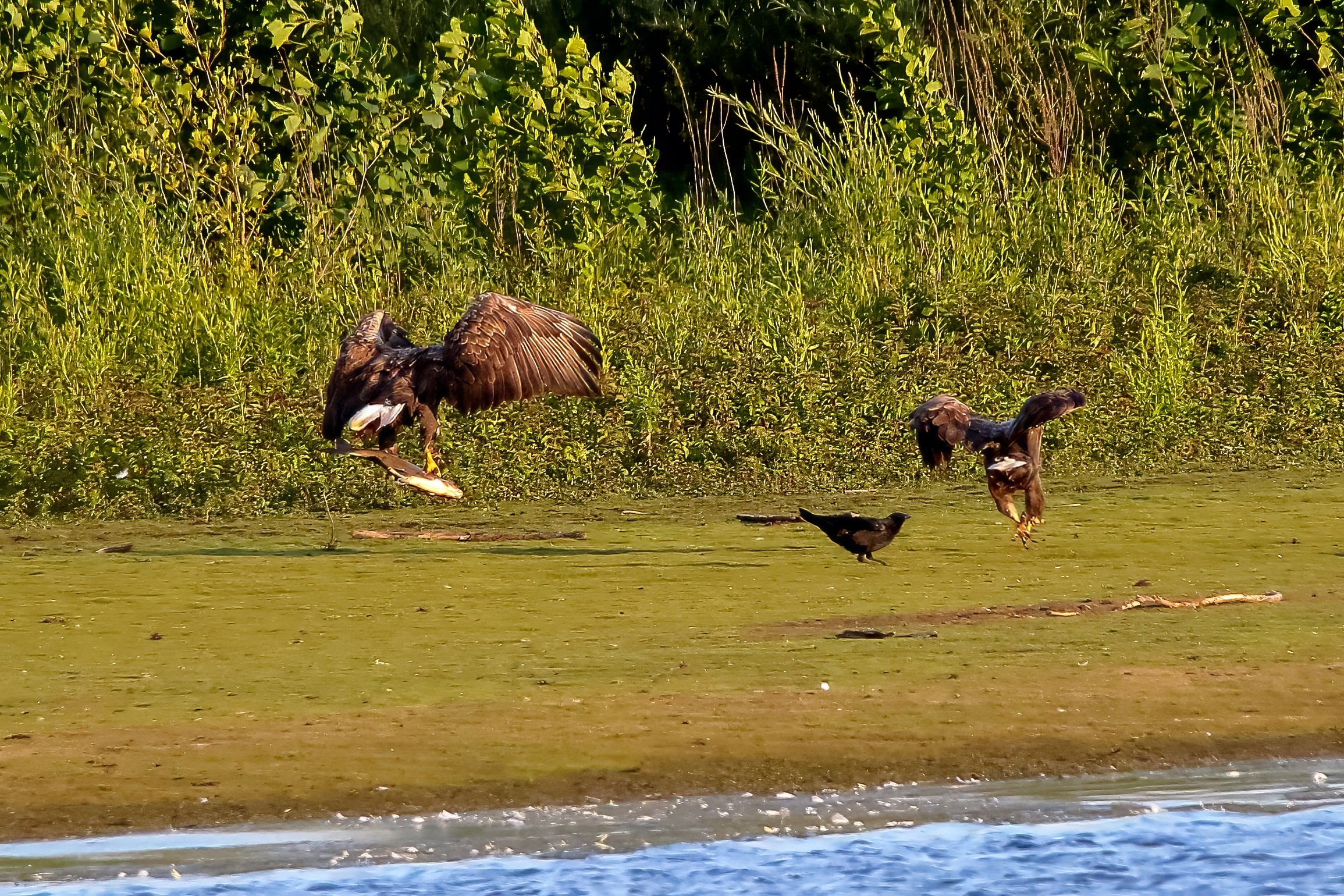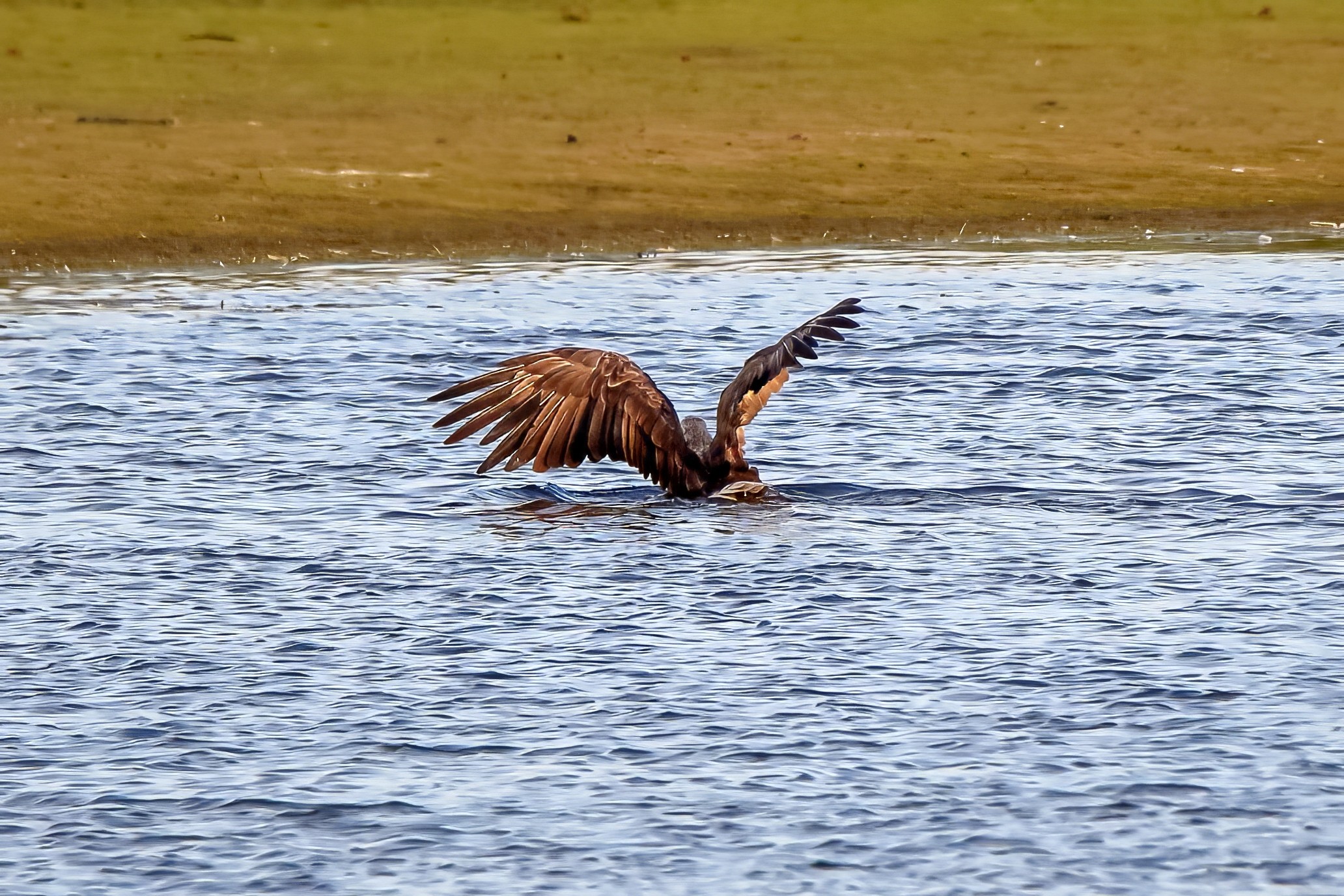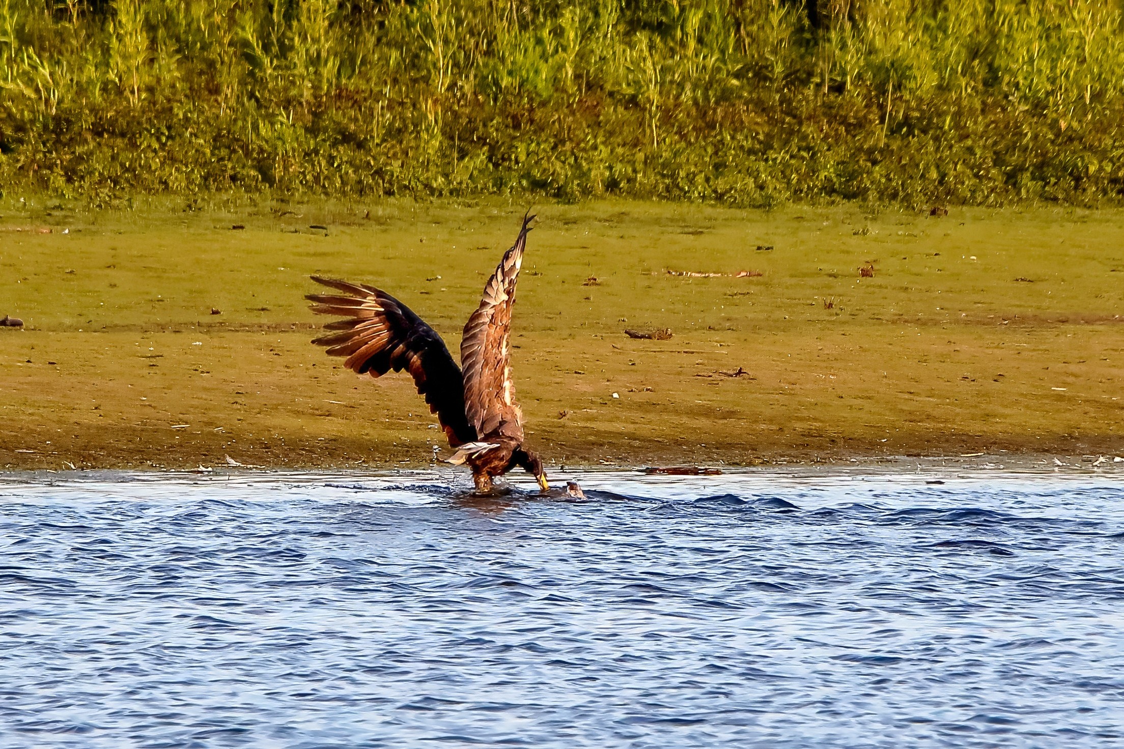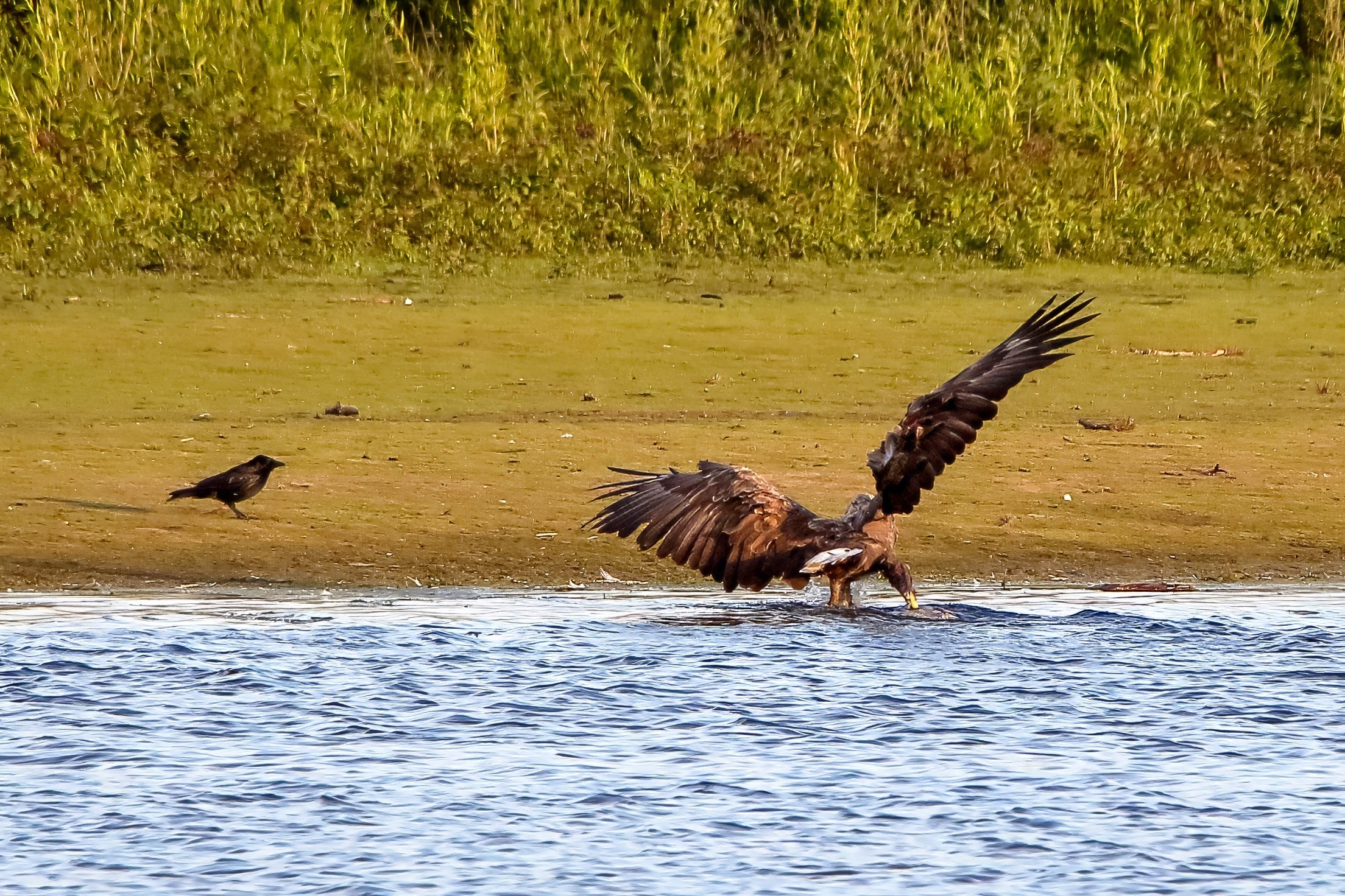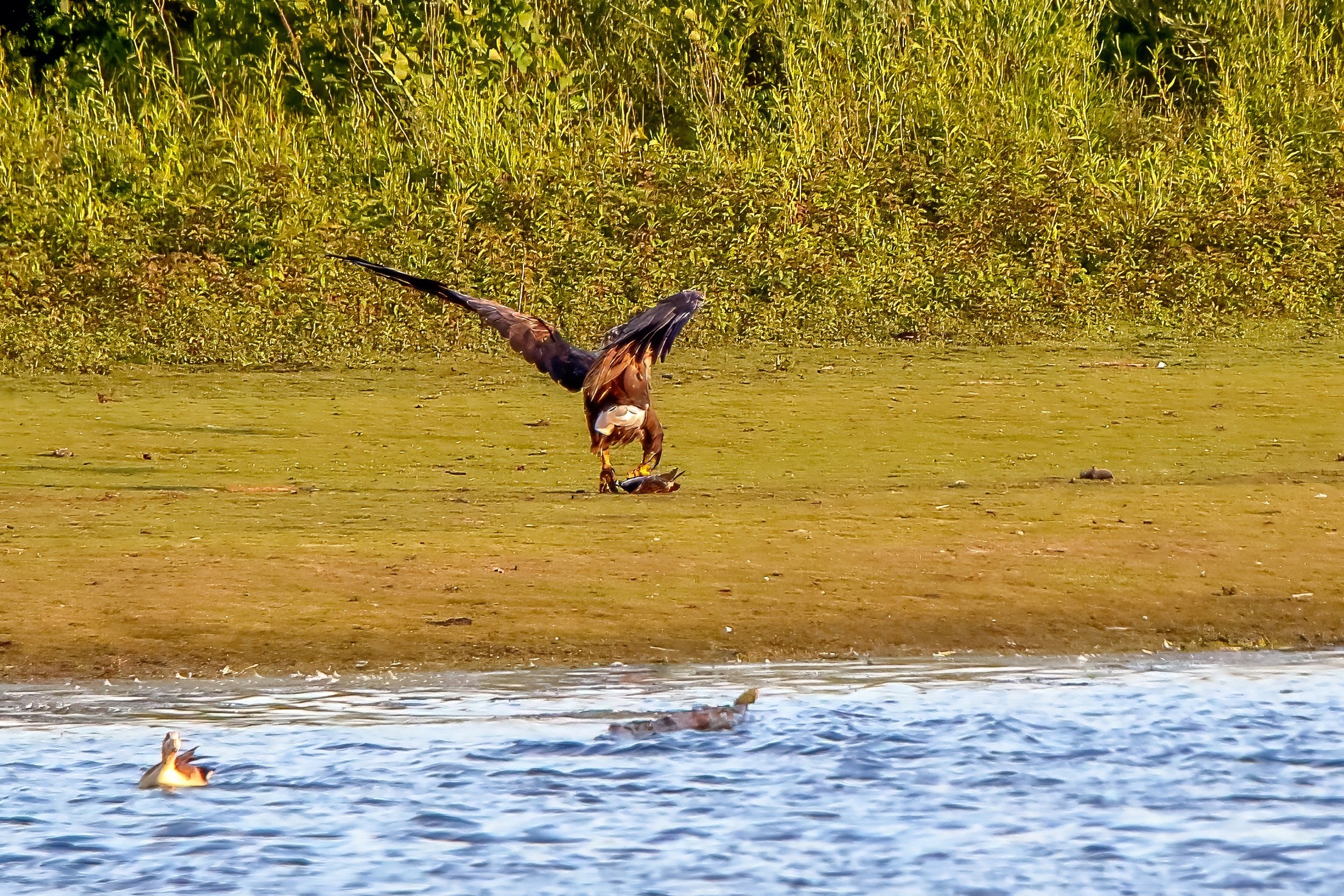 Spät, kurz vor Sonnenuntergang, zeigen sich die Seeadler bei der Fischjagd