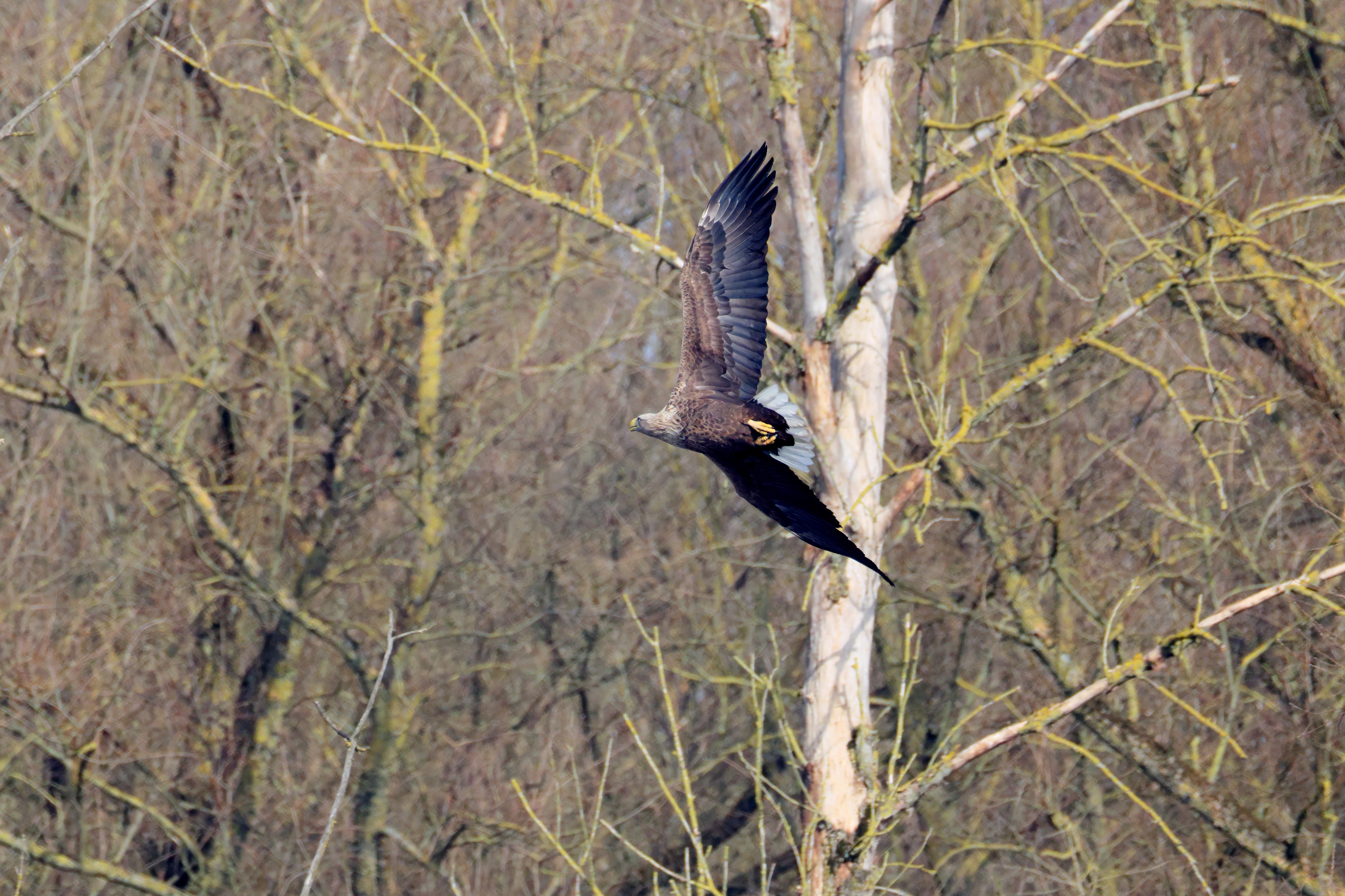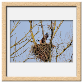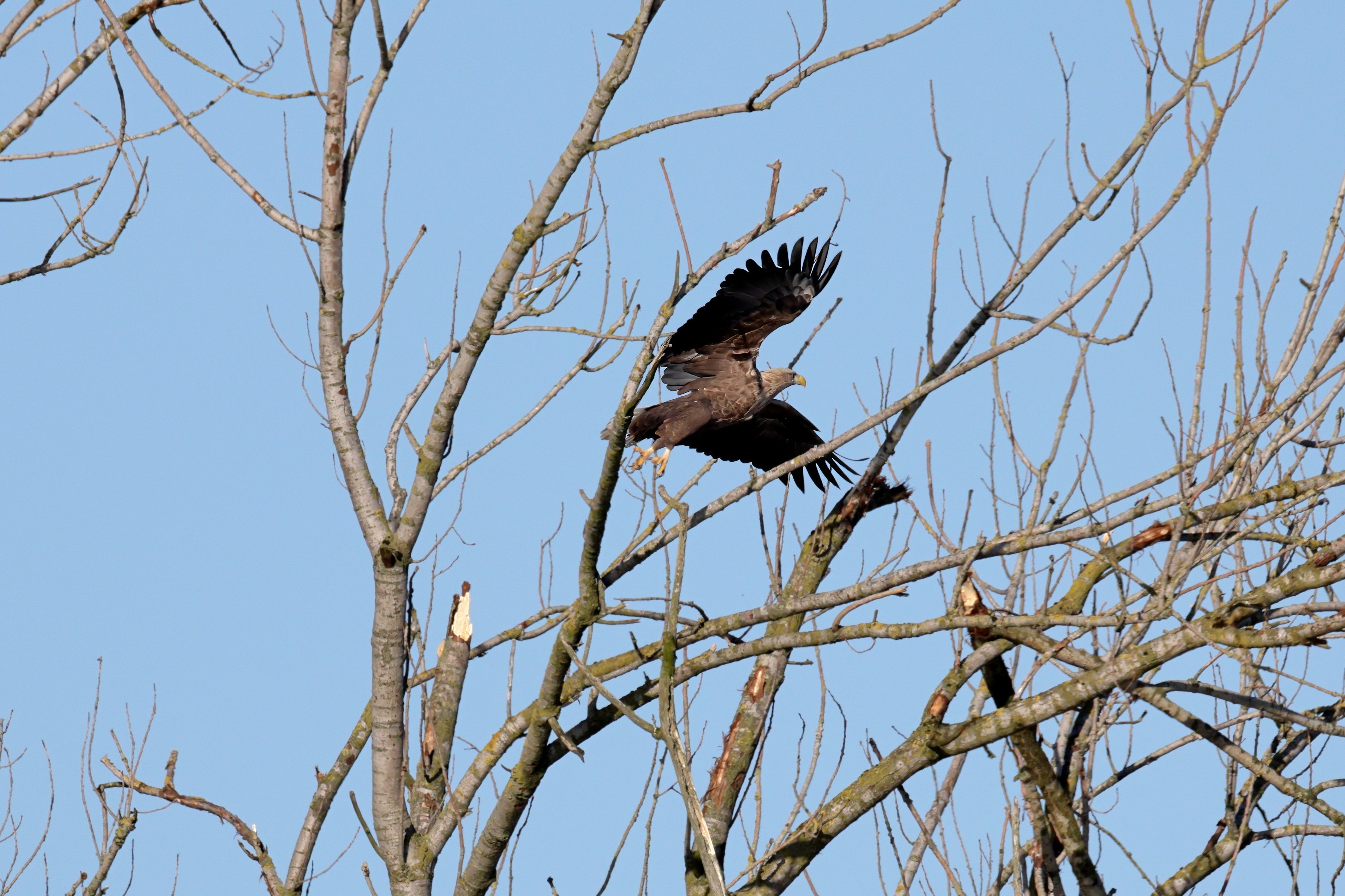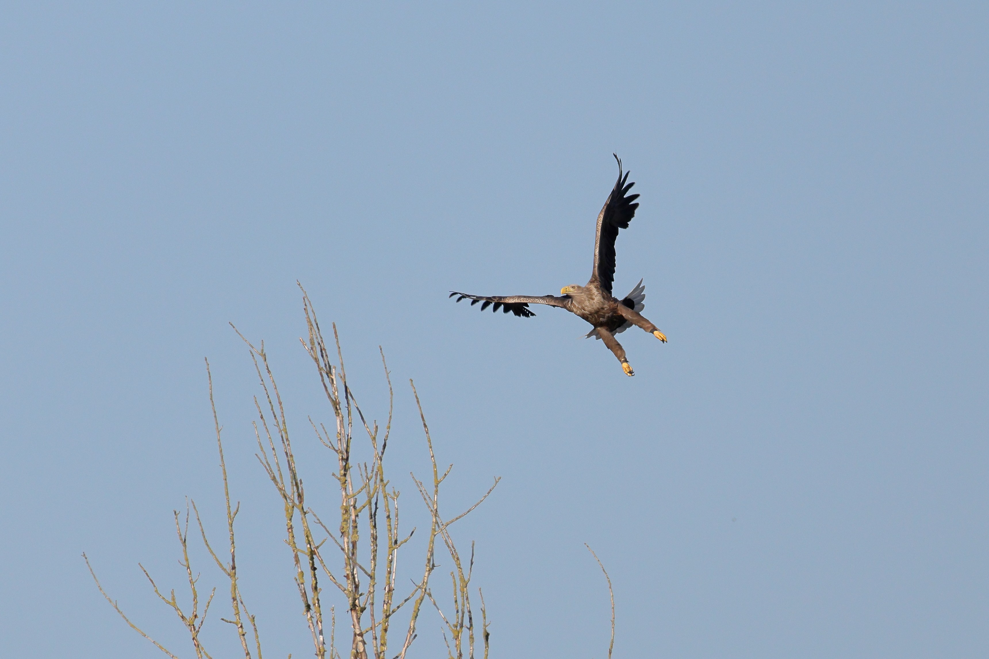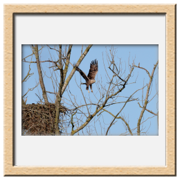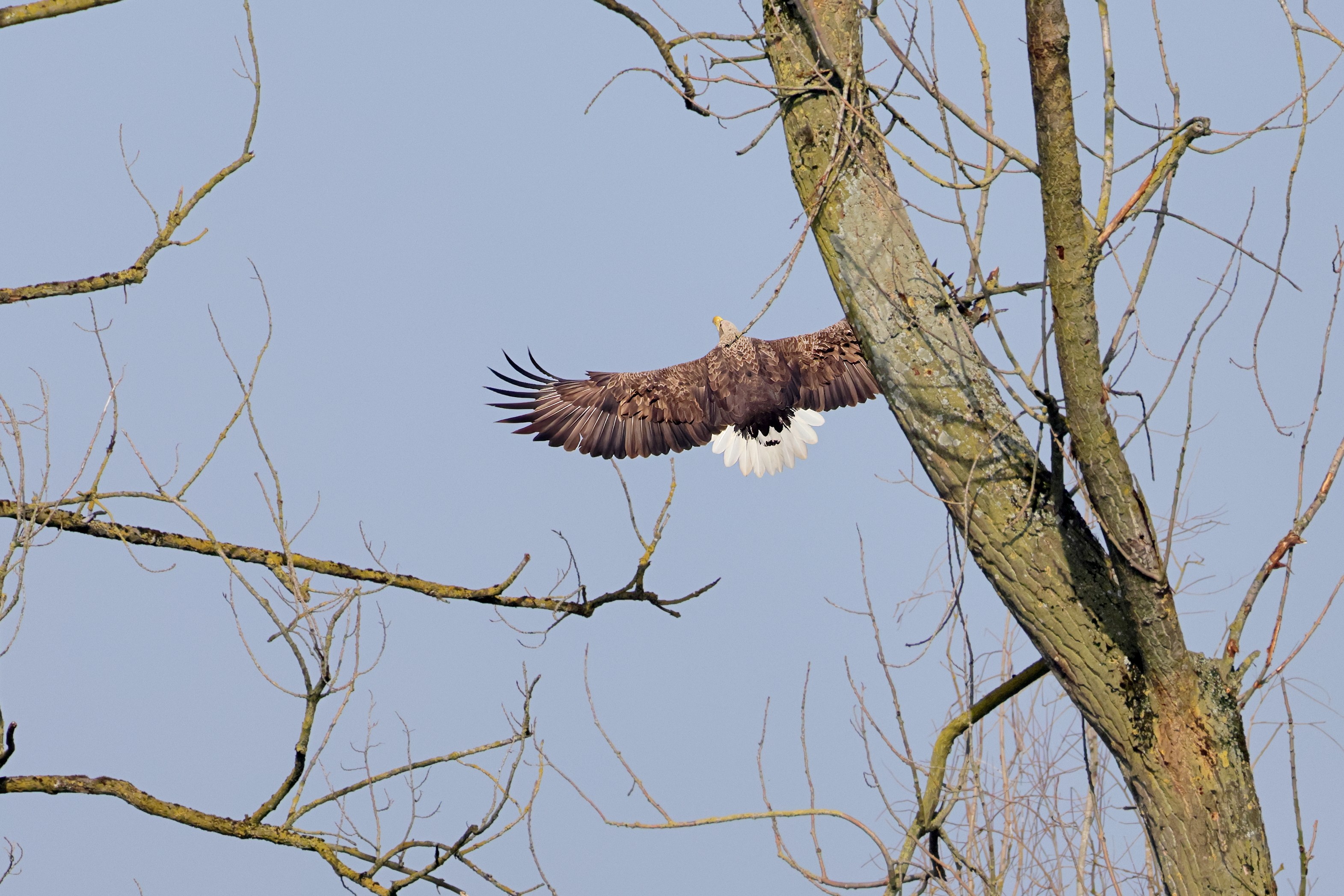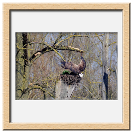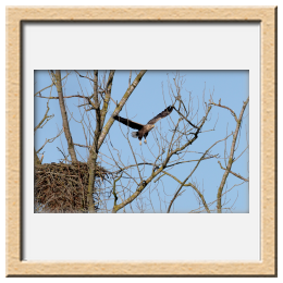 Während der etwa 38 bis 42 Tage dauernden Brutzeit der Seeadler kommt es meist nur zu kurzen Ablösungen zwischen den Partnern. Doch wenn gutes Wetter, die Tageszeit und der natürliche Bewegungsdrang nach den langen Brutsitzungen zusammentreffen, lassen sich vom abgelösten Partner manchmal ganz besondere Aufnahmen gestalten.