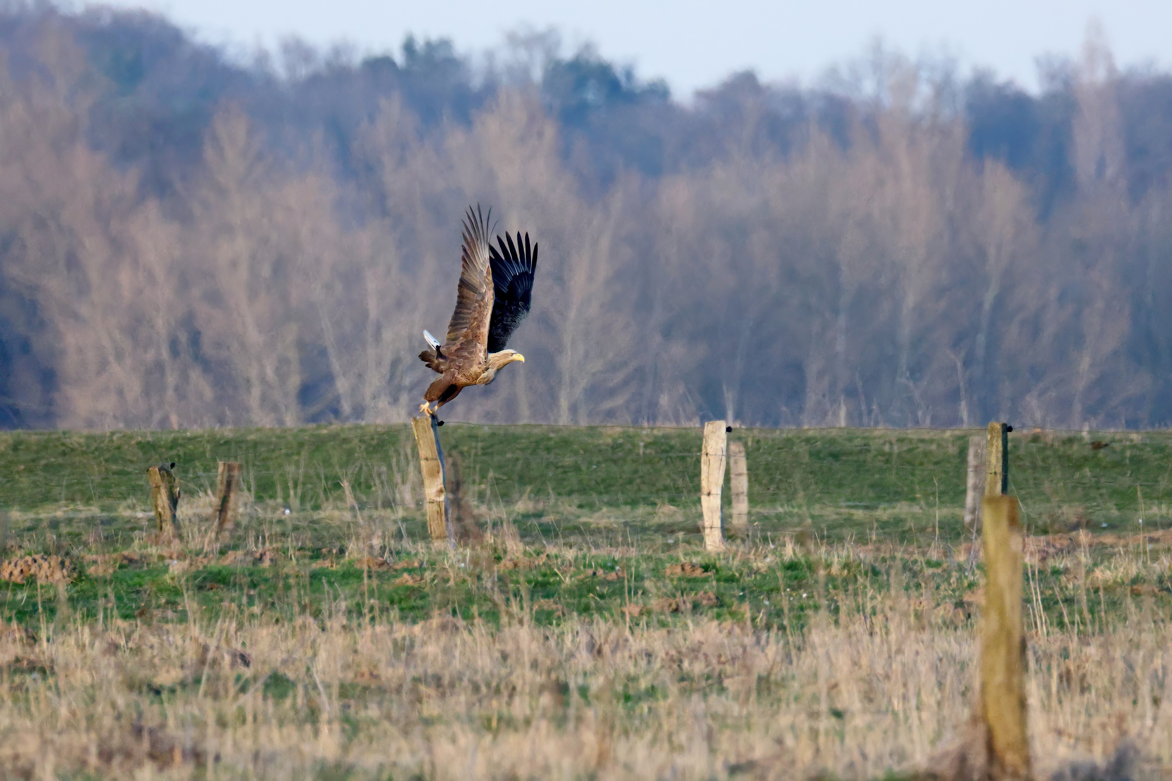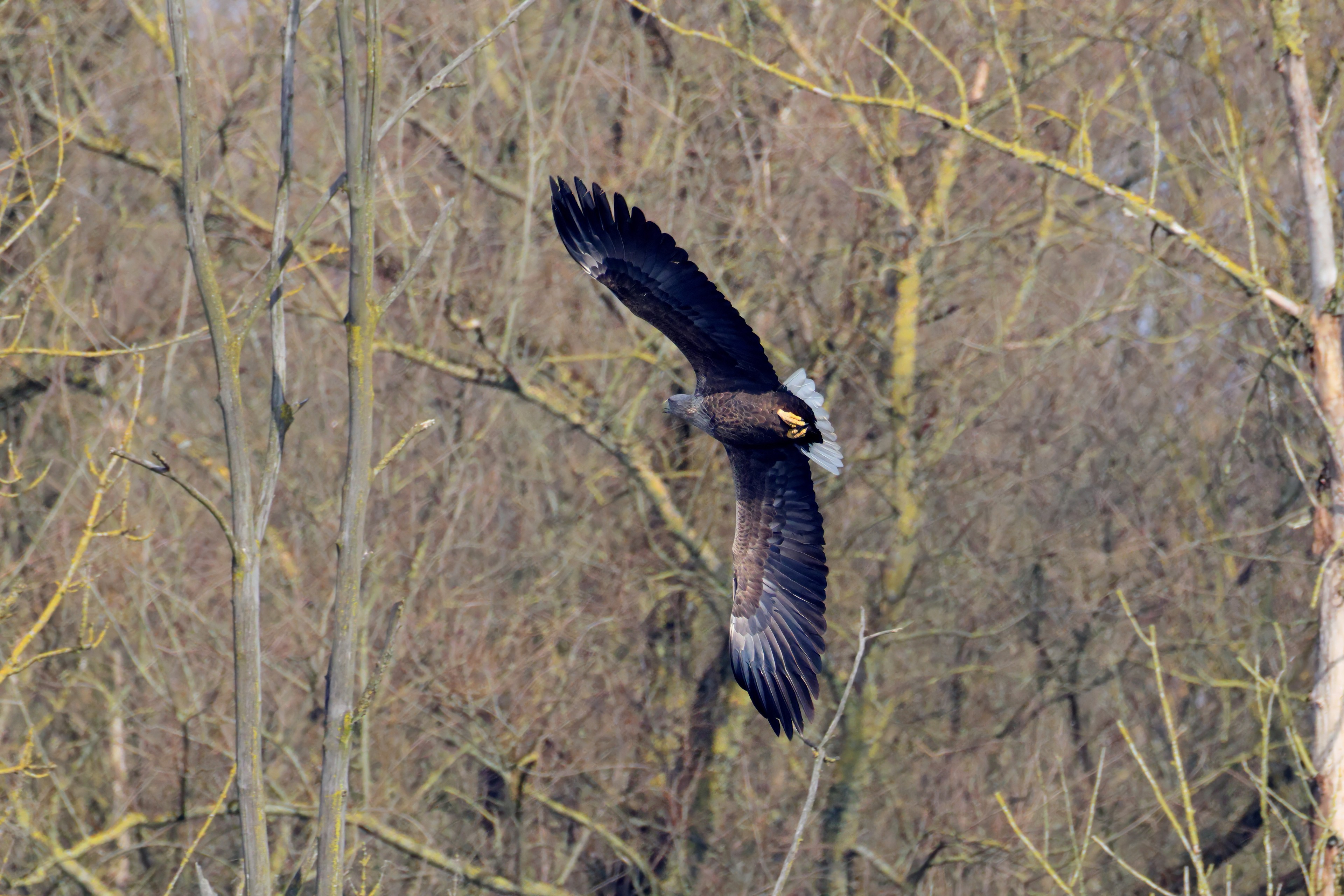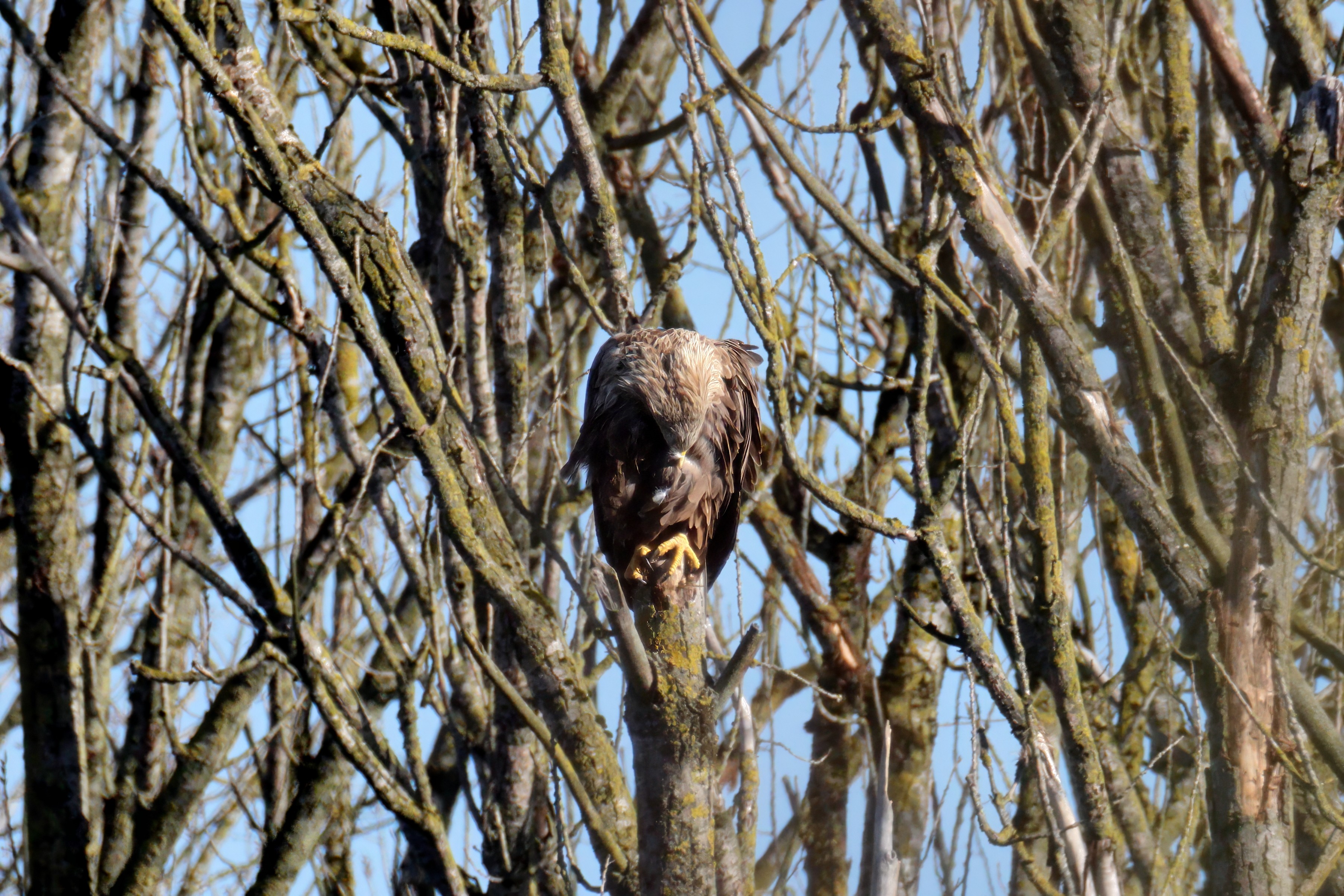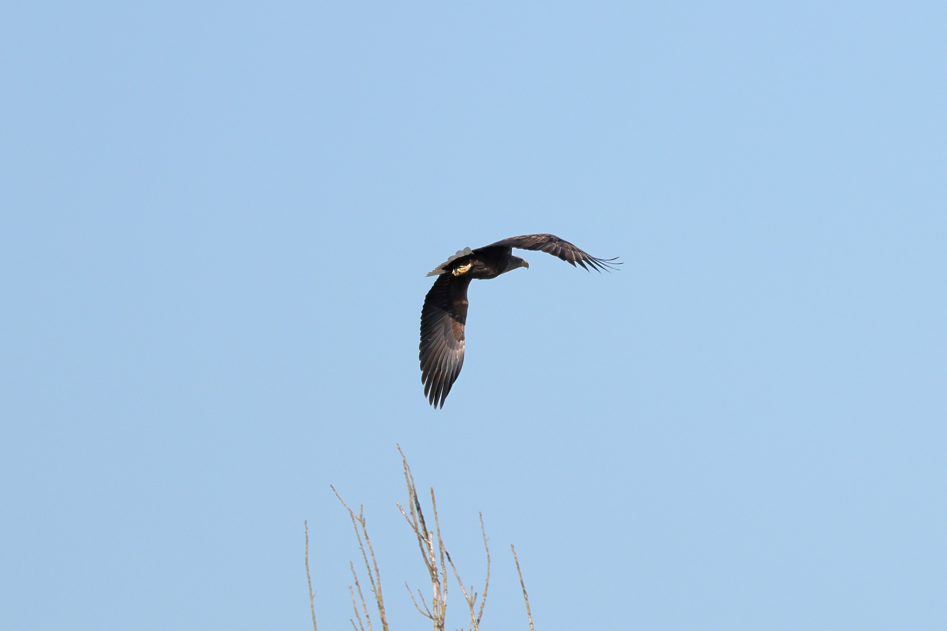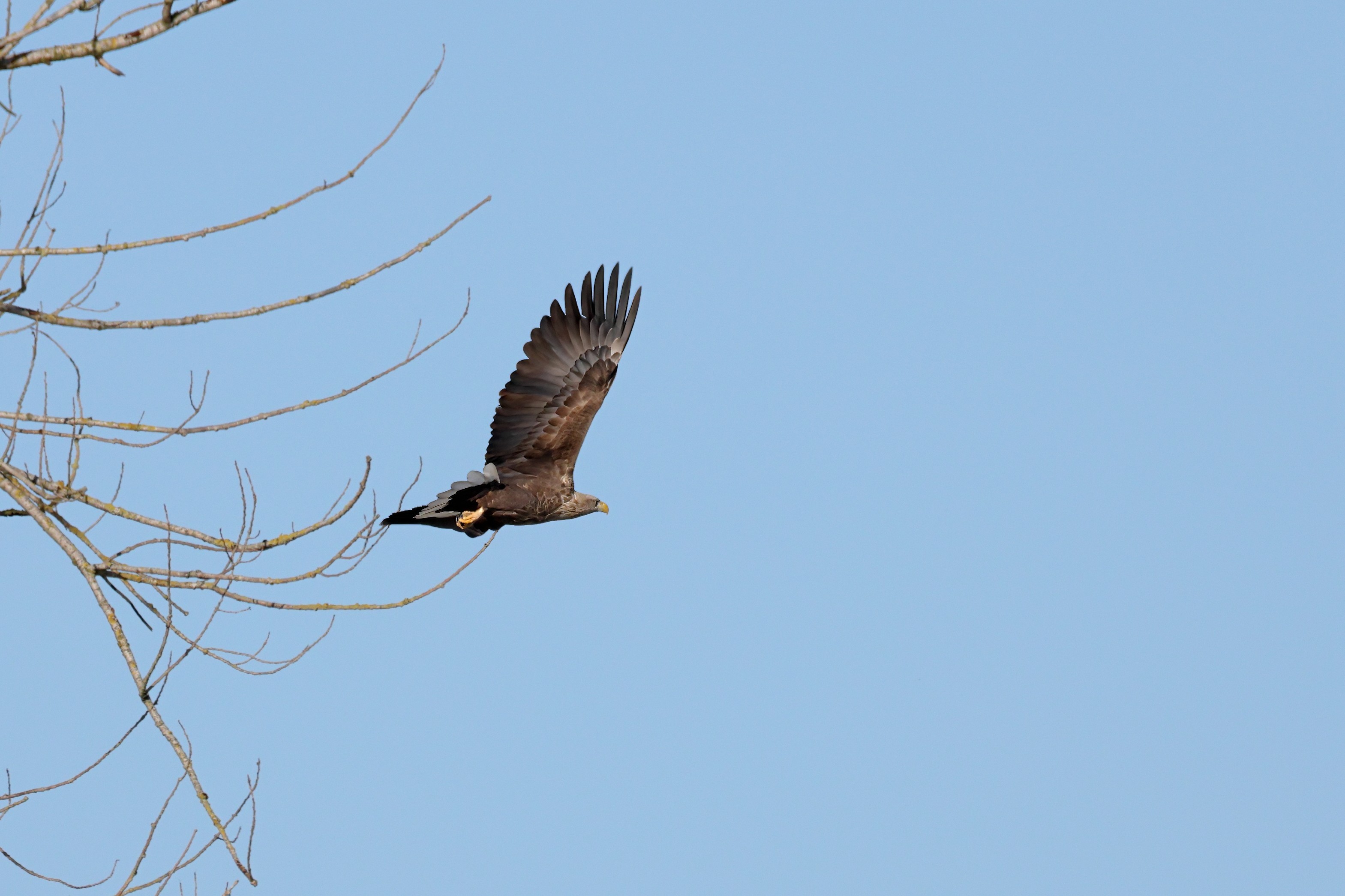 Während der etwa 38 bis 42 Tage dauernden Brutzeit der Seeadler kommt es meist nur zu kurzen Ablösungen zwischen den Partnern. Doch wenn gutes Wetter, die Tageszeit und der natürliche Bewegungsdrang nach den langen Brutsitzungen zusammentreffen, lassen sich vom abgelösten Partner manchmal ganz besondere Aufnahmen gestalten.