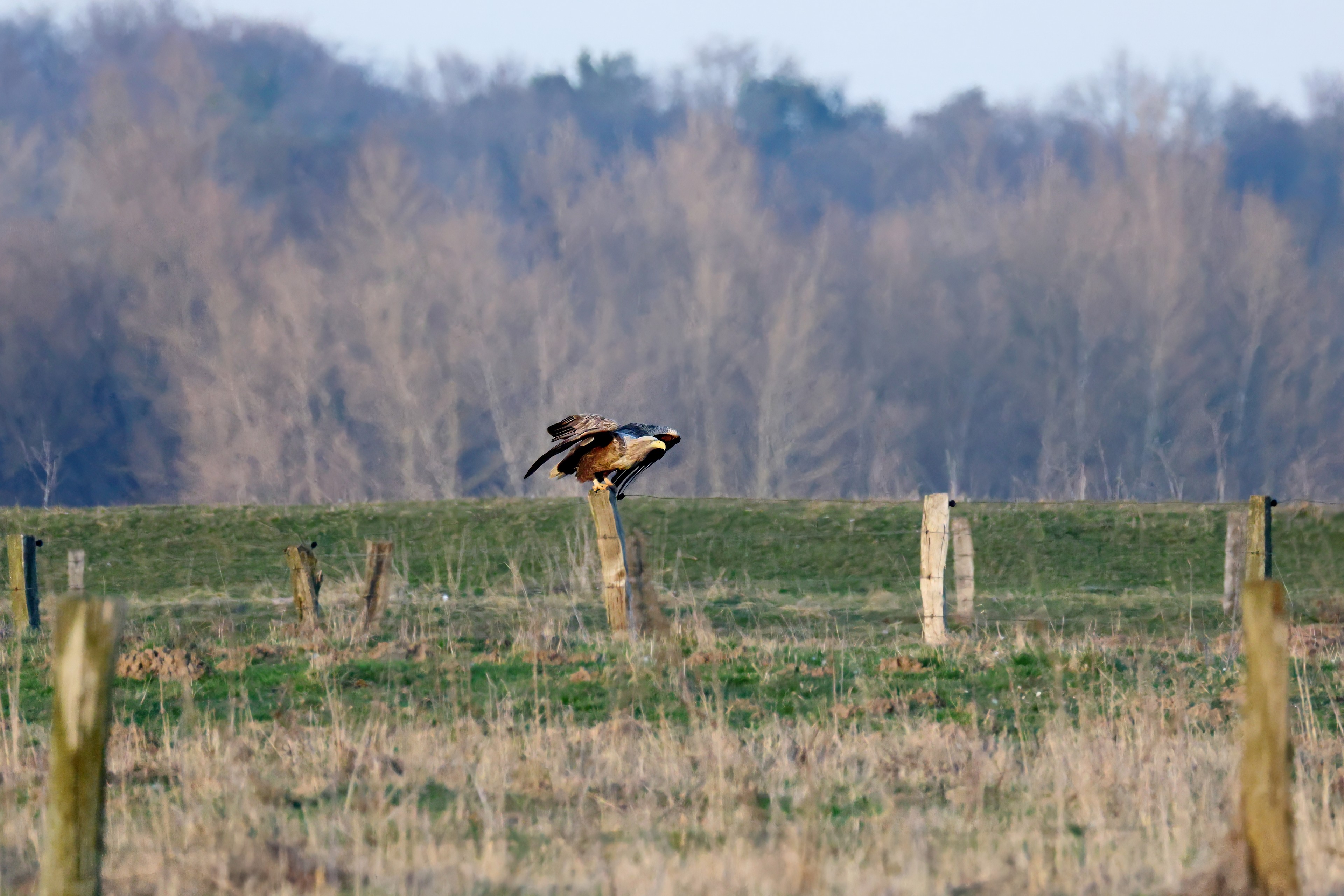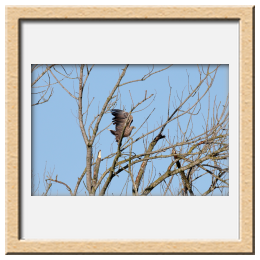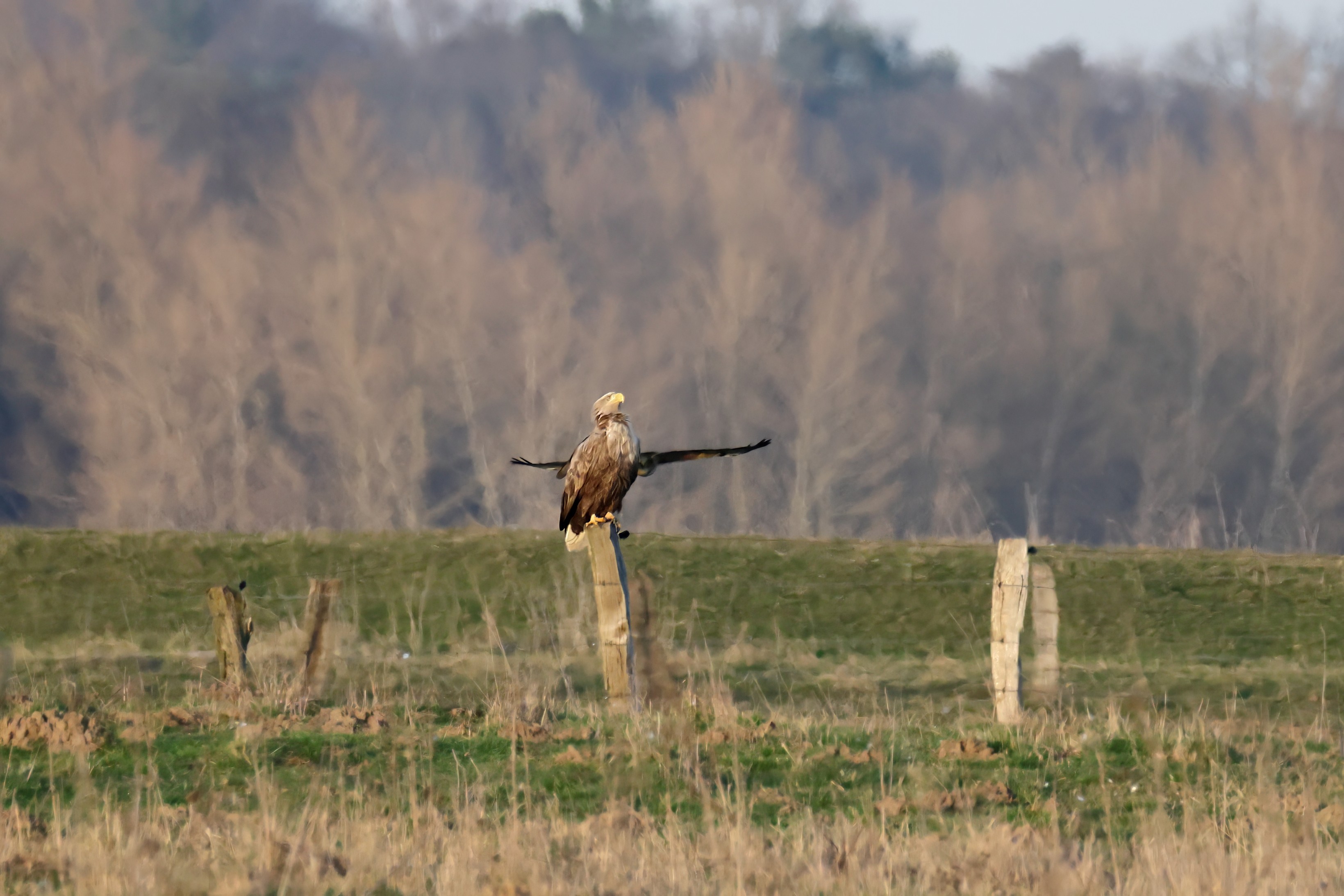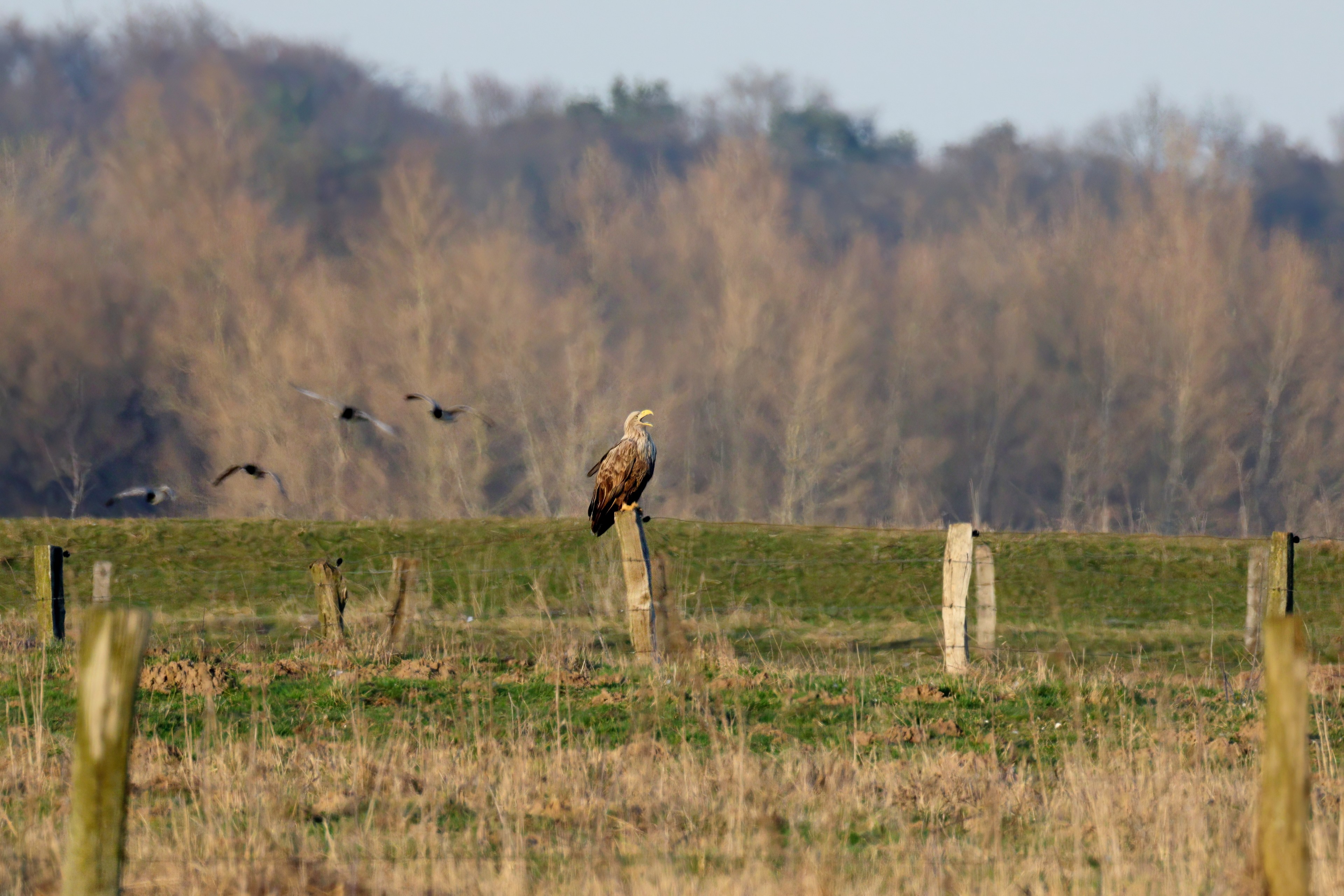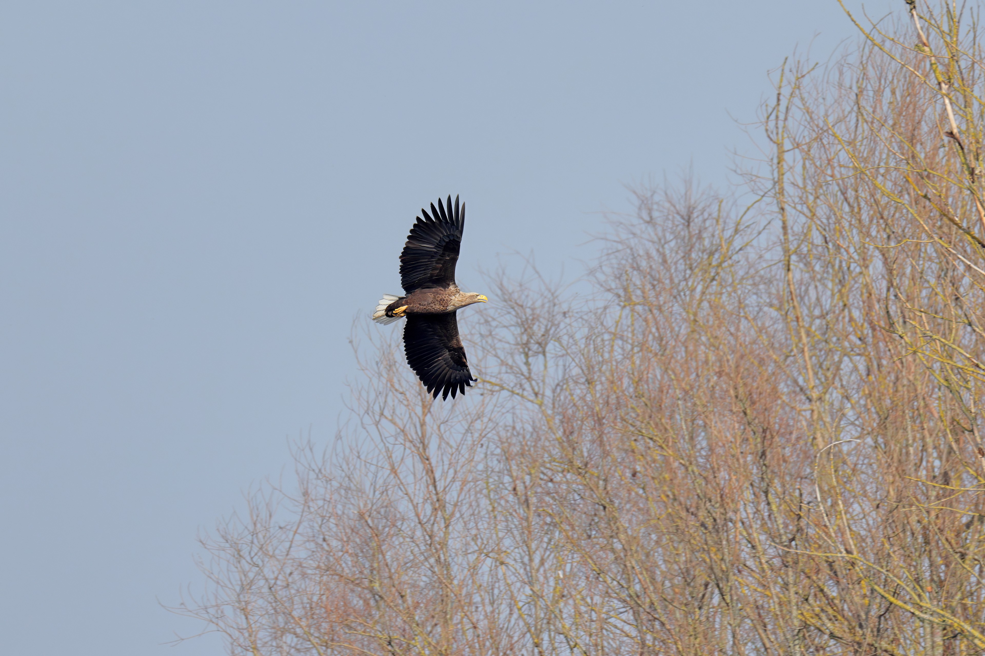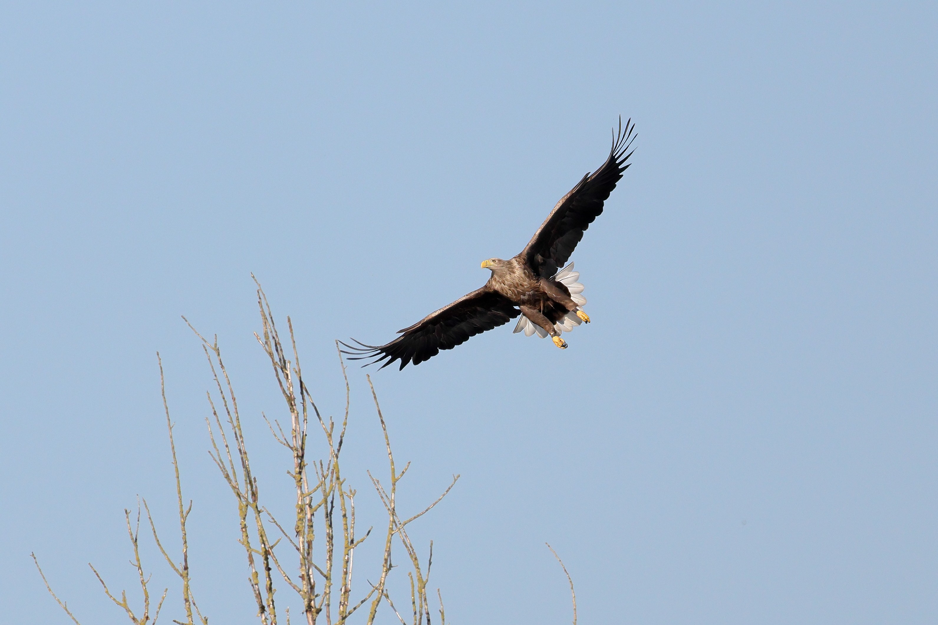 Während der etwa 38 bis 42 Tage dauernden Brutzeit der Seeadler kommt es meist nur zu kurzen Ablösungen zwischen den Partnern. Doch wenn gutes Wetter, die Tageszeit und der natürliche Bewegungsdrang nach den langen Brutsitzungen zusammentreffen, lassen sich vom abgelösten Partner manchmal ganz besondere Aufnahmen gestalten.