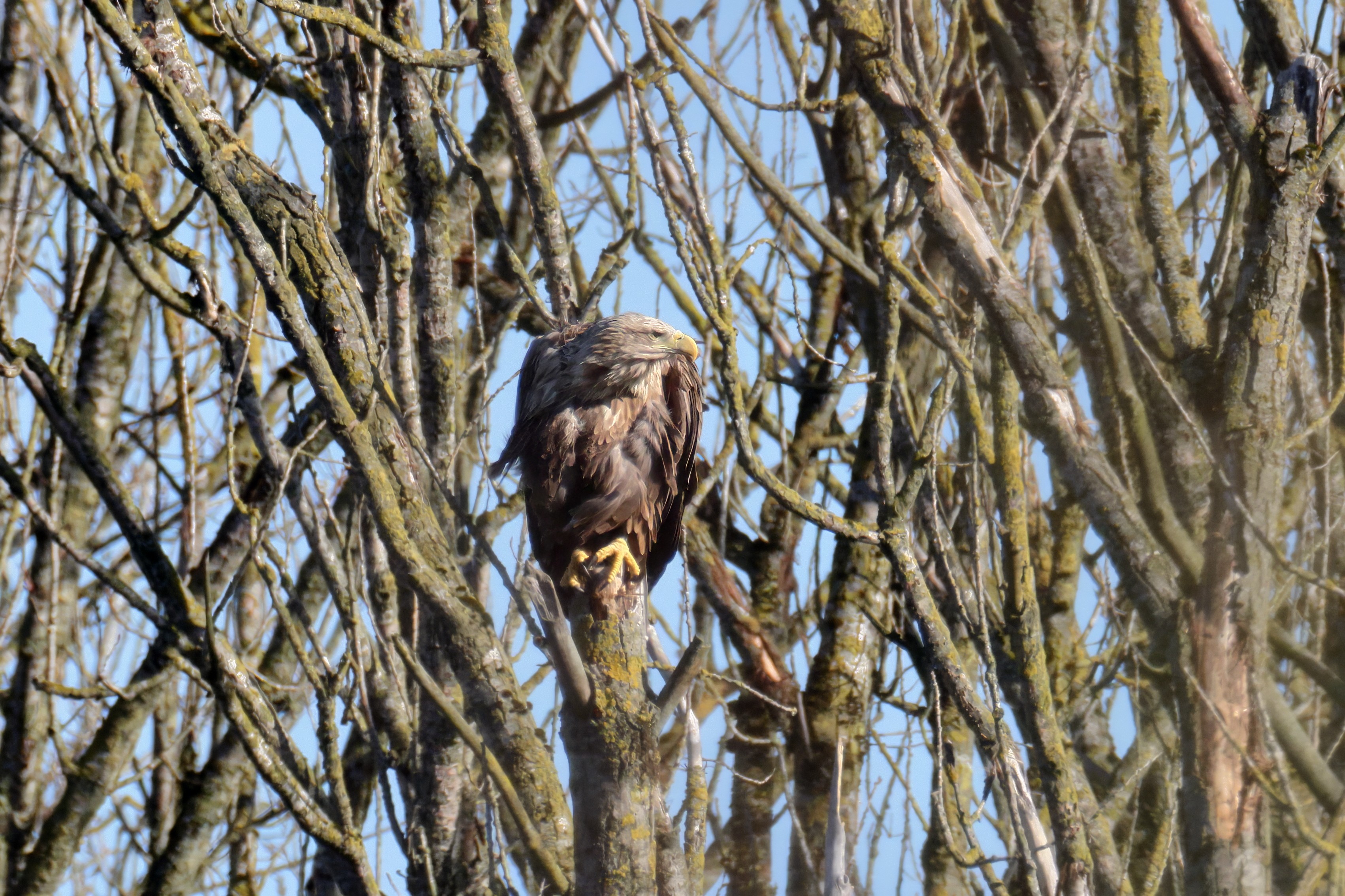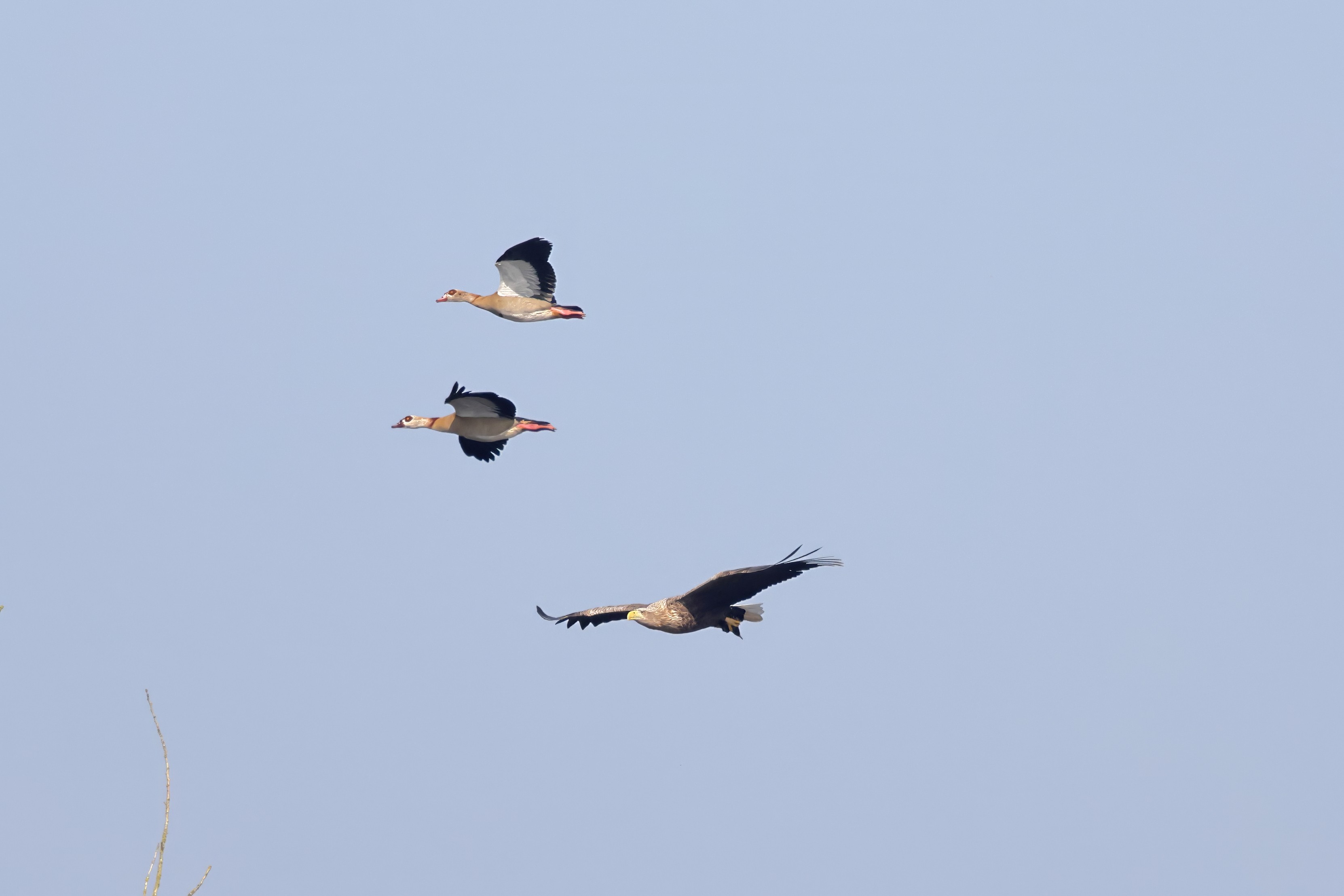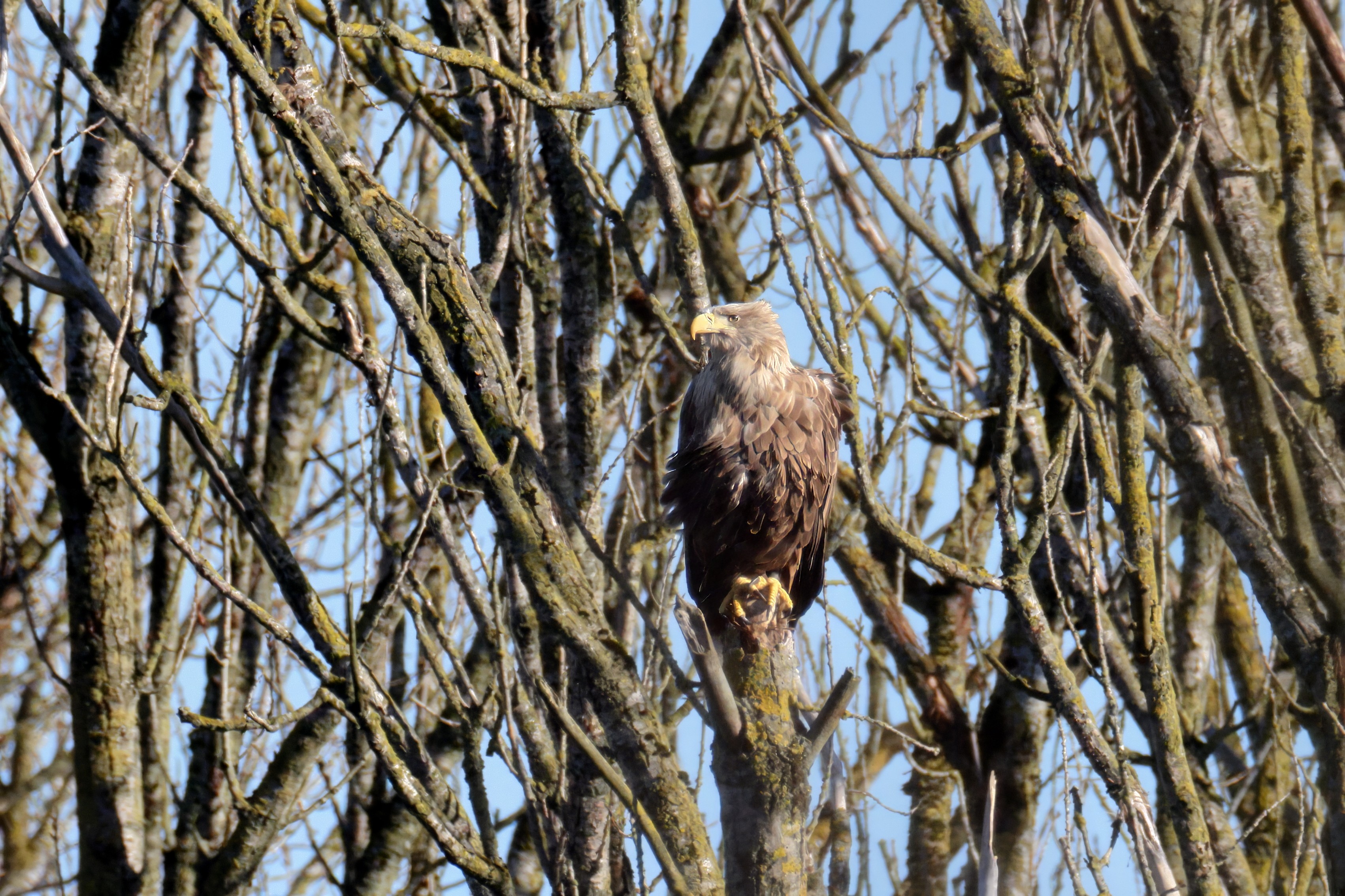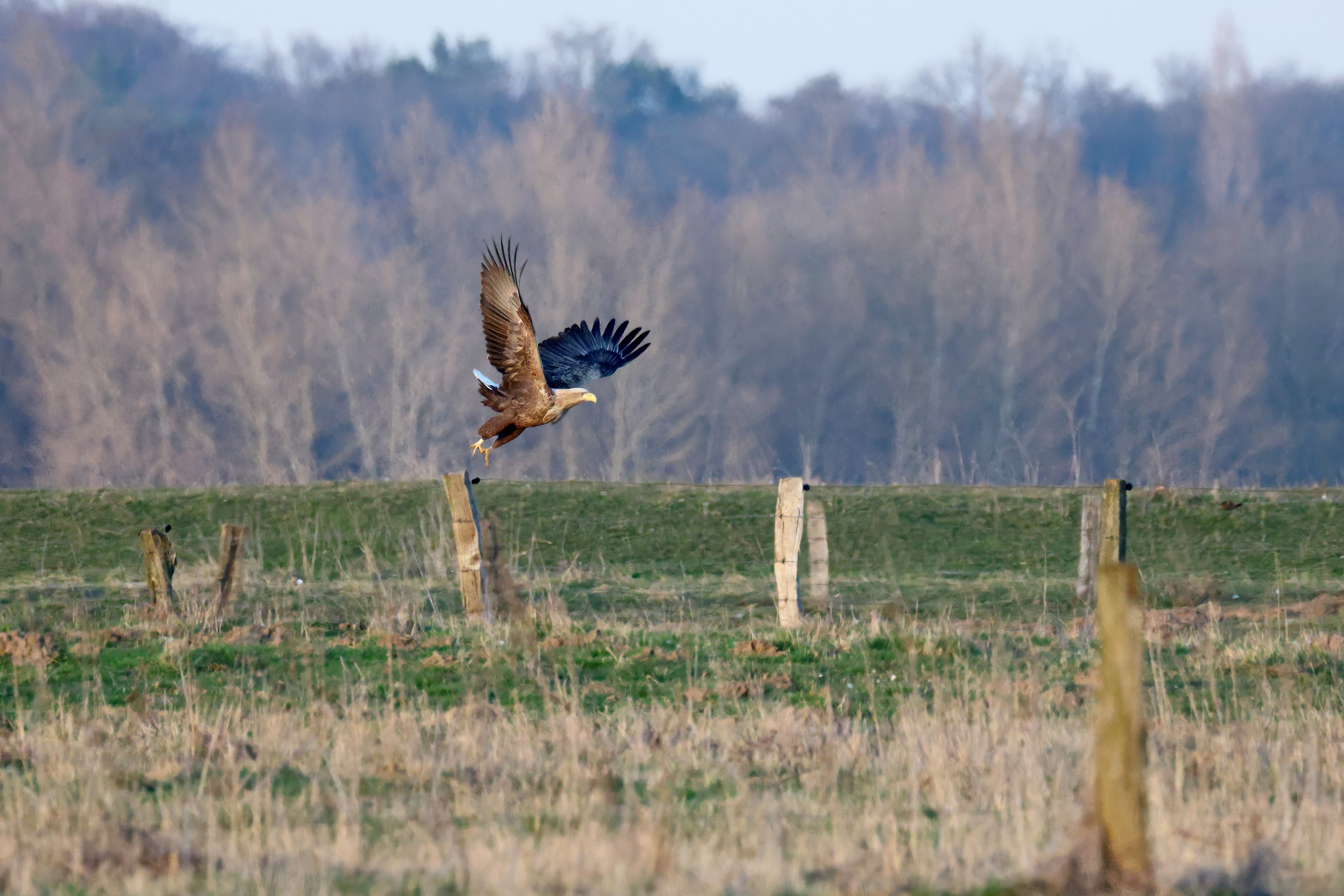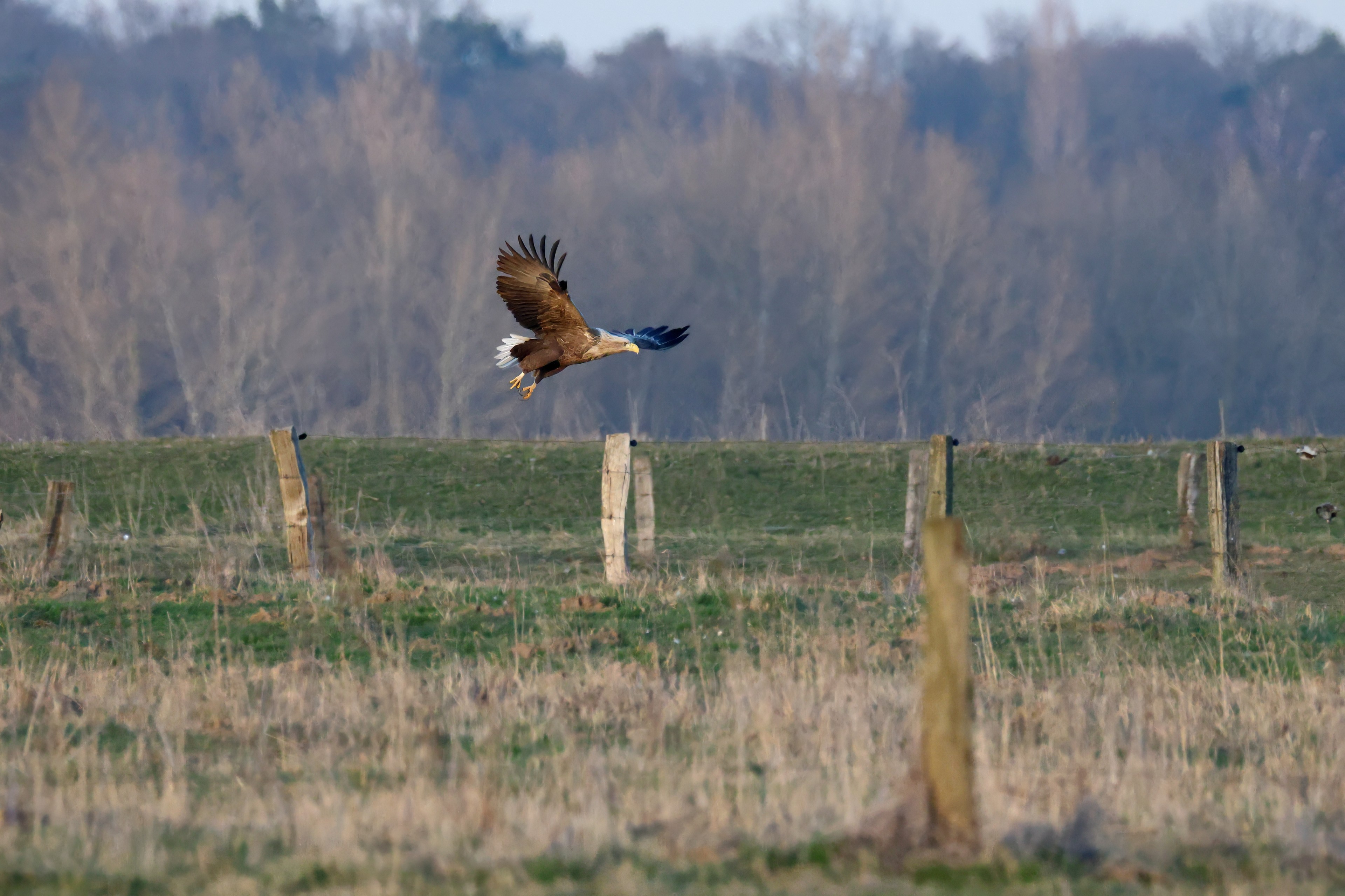 Während der etwa 38 bis 42 Tage dauernden Brutzeit der Seeadler kommt es meist nur zu kurzen Ablösungen zwischen den Partnern. Doch wenn gutes Wetter, die Tageszeit und der natürliche Bewegungsdrang nach den langen Brutsitzungen zusammentreffen, lassen sich vom abgelösten Partner manchmal ganz besondere Aufnahmen gestalten.