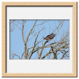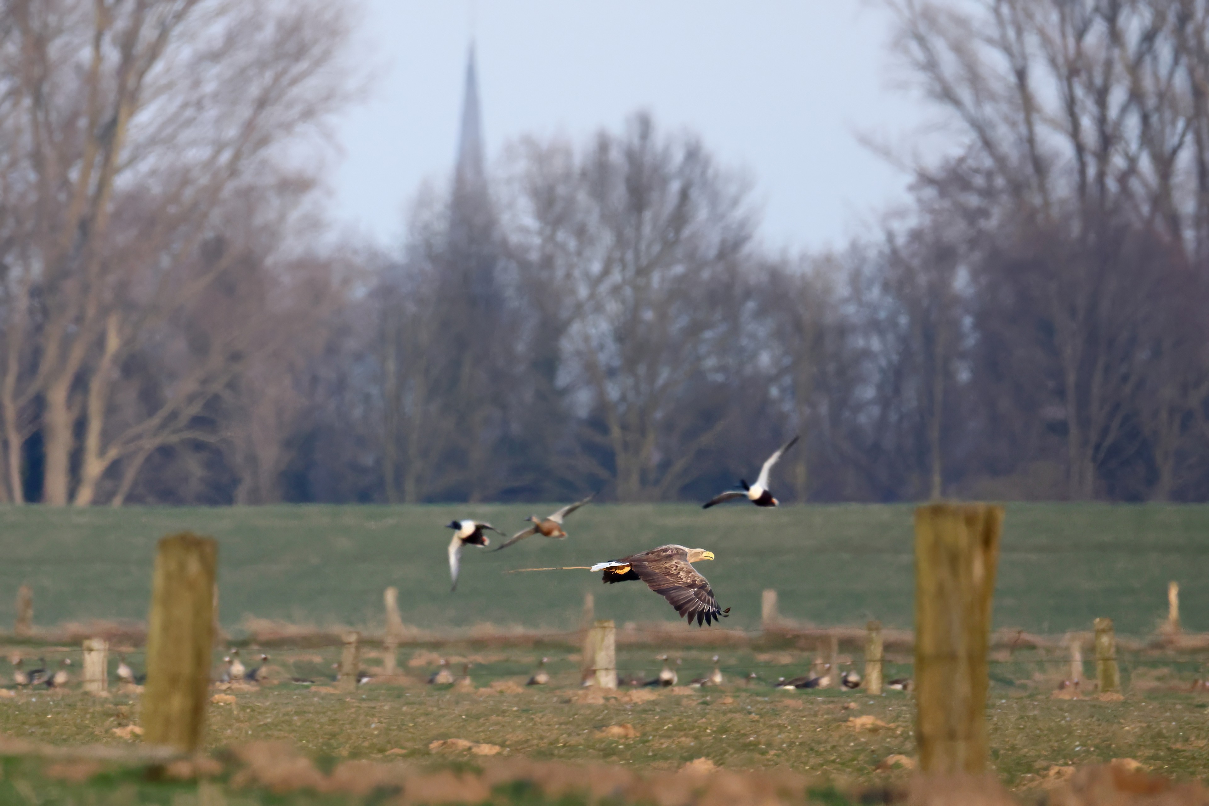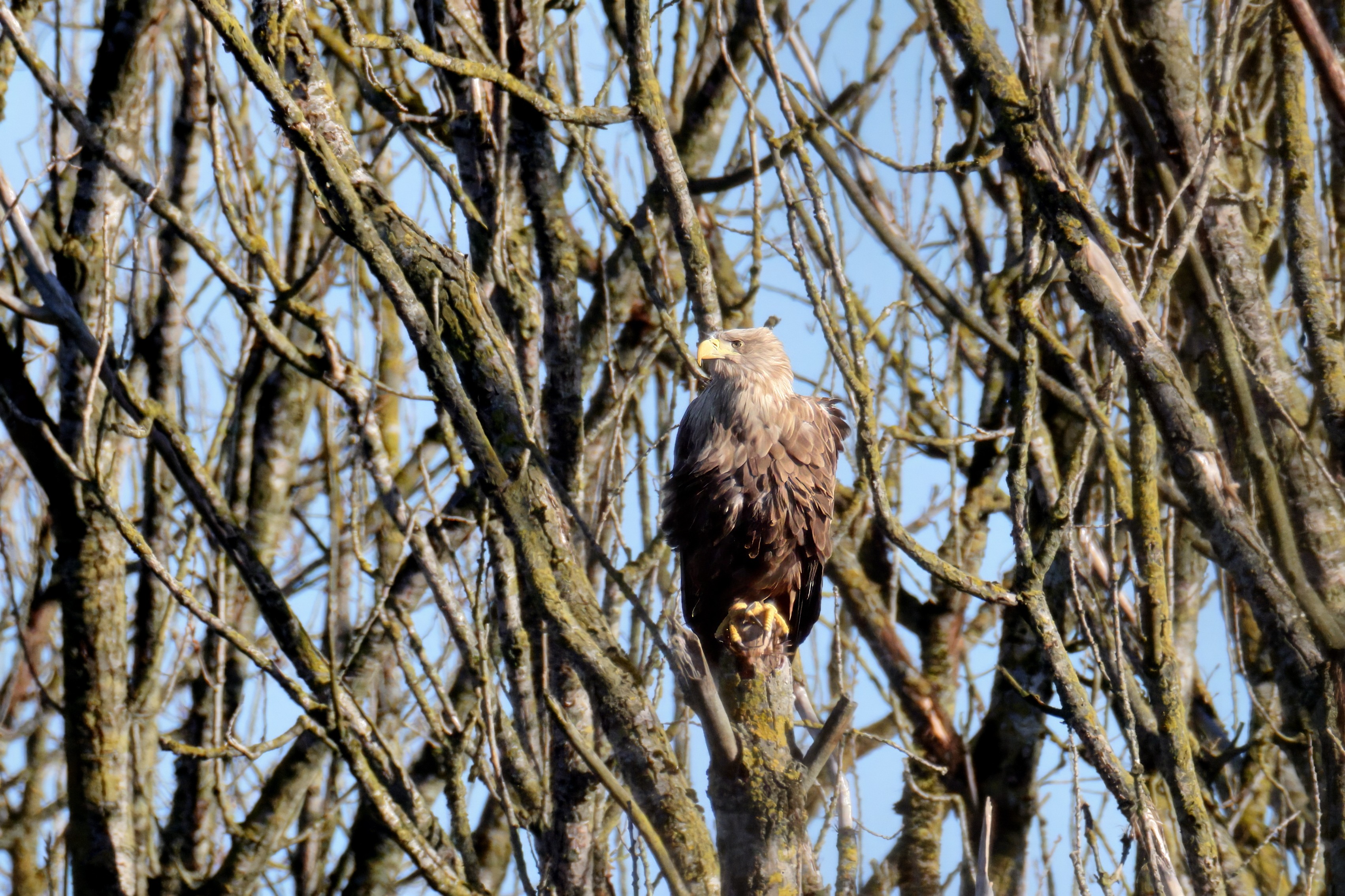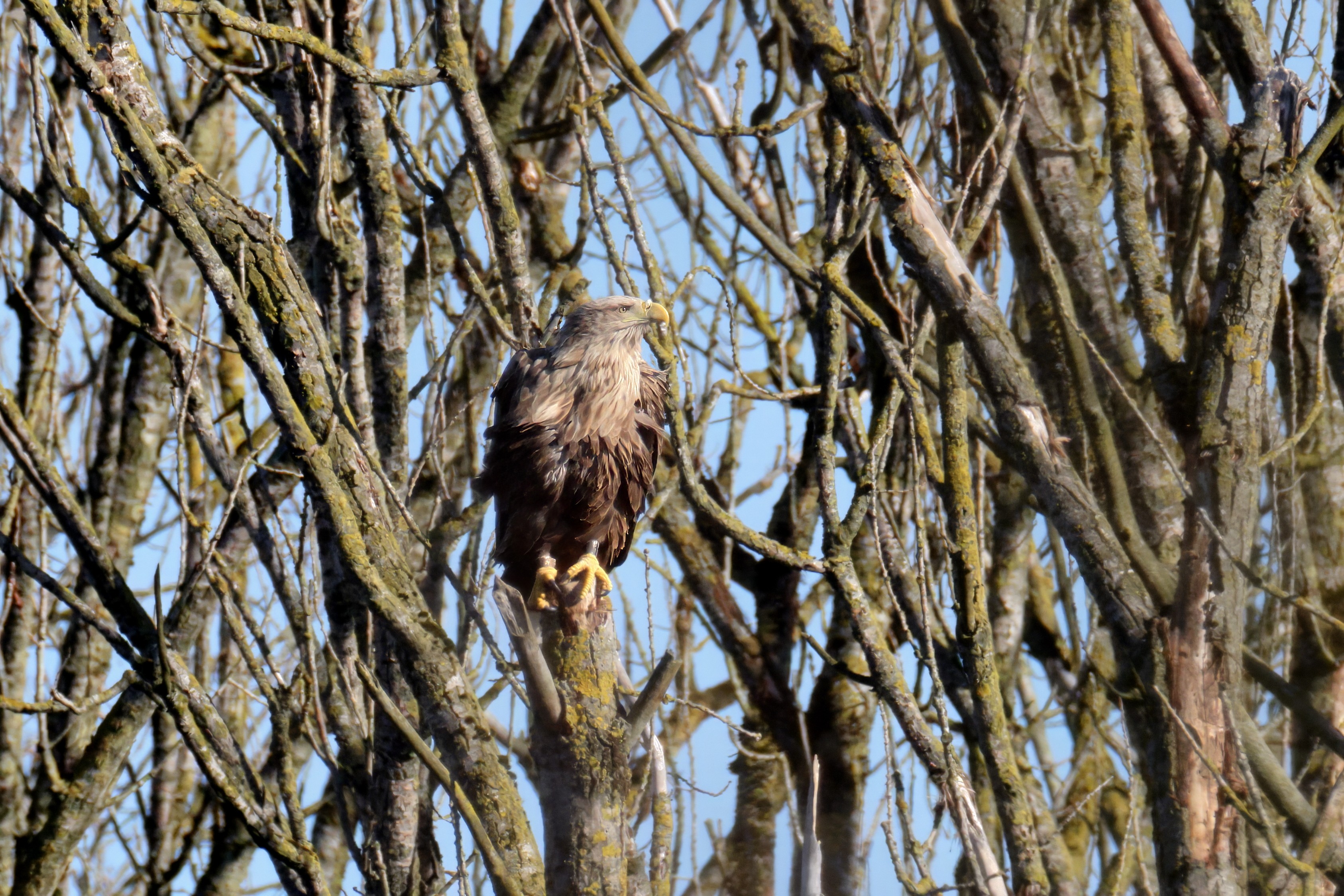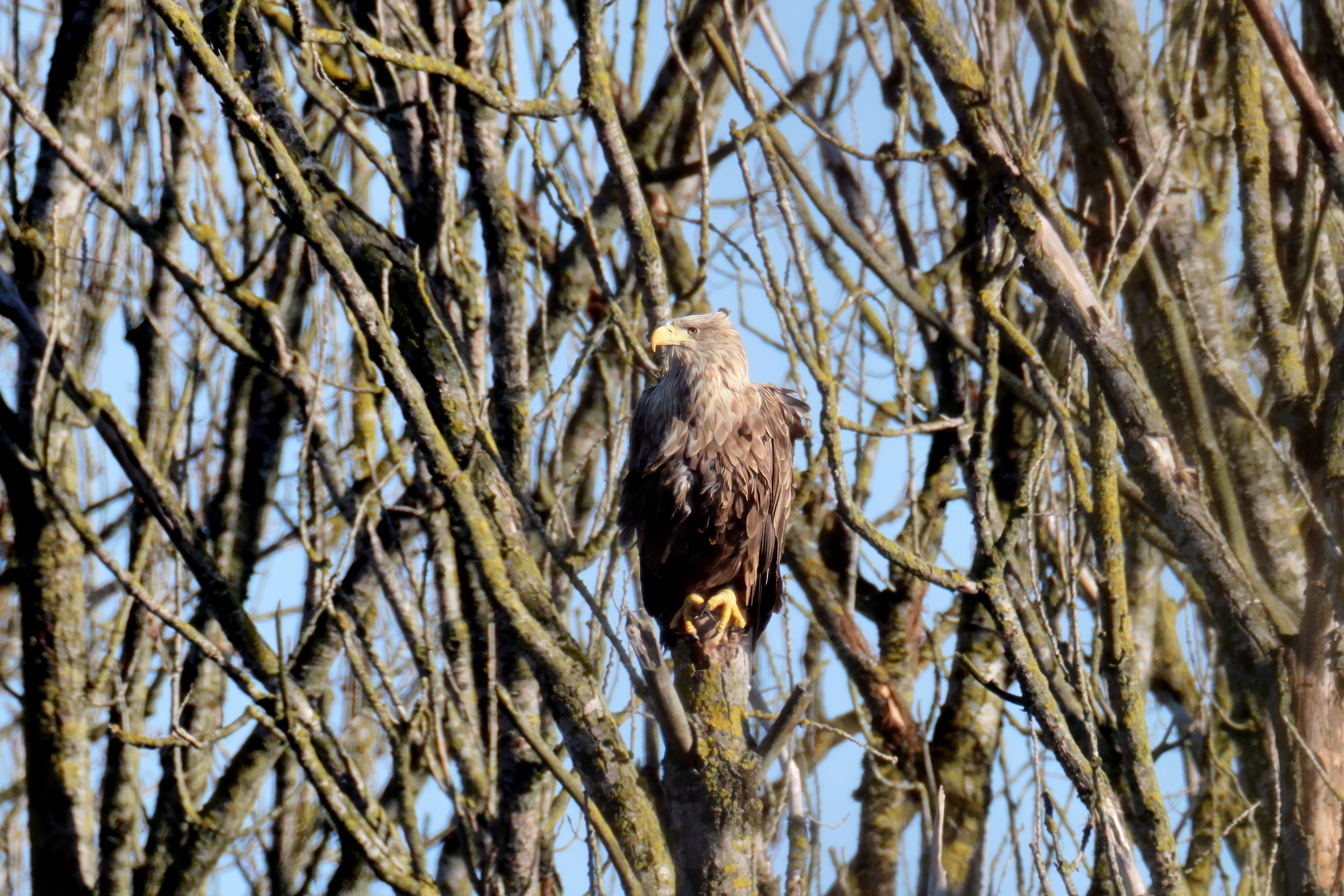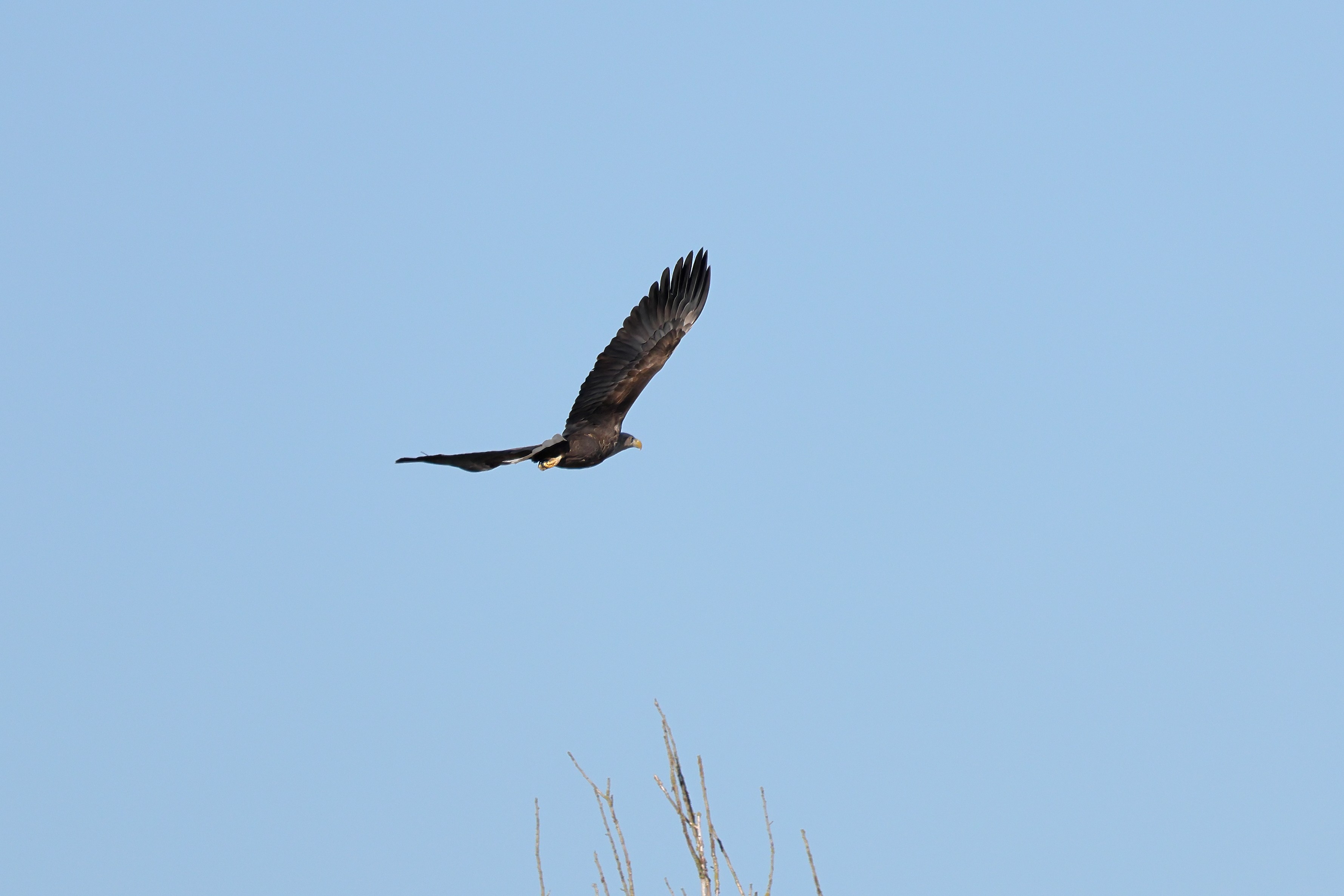 Während der etwa 38 bis 42 Tage dauernden Brutzeit der Seeadler kommt es meist nur zu kurzen Ablösungen zwischen den Partnern. Doch wenn gutes Wetter, die Tageszeit und der natürliche Bewegungsdrang nach den langen Brutsitzungen zusammentreffen, lassen sich vom abgelösten Partner manchmal ganz besondere Aufnahmen gestalten.
