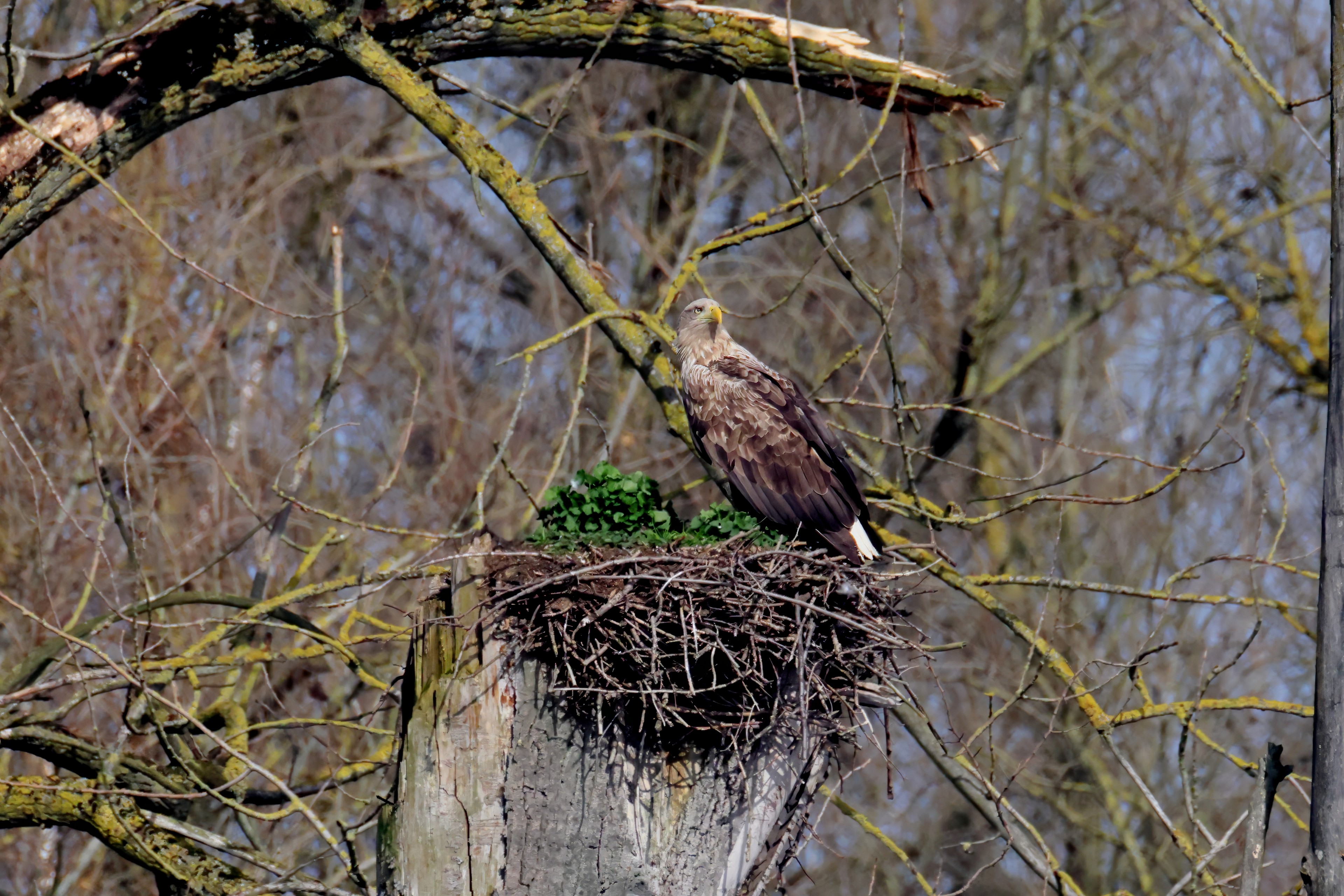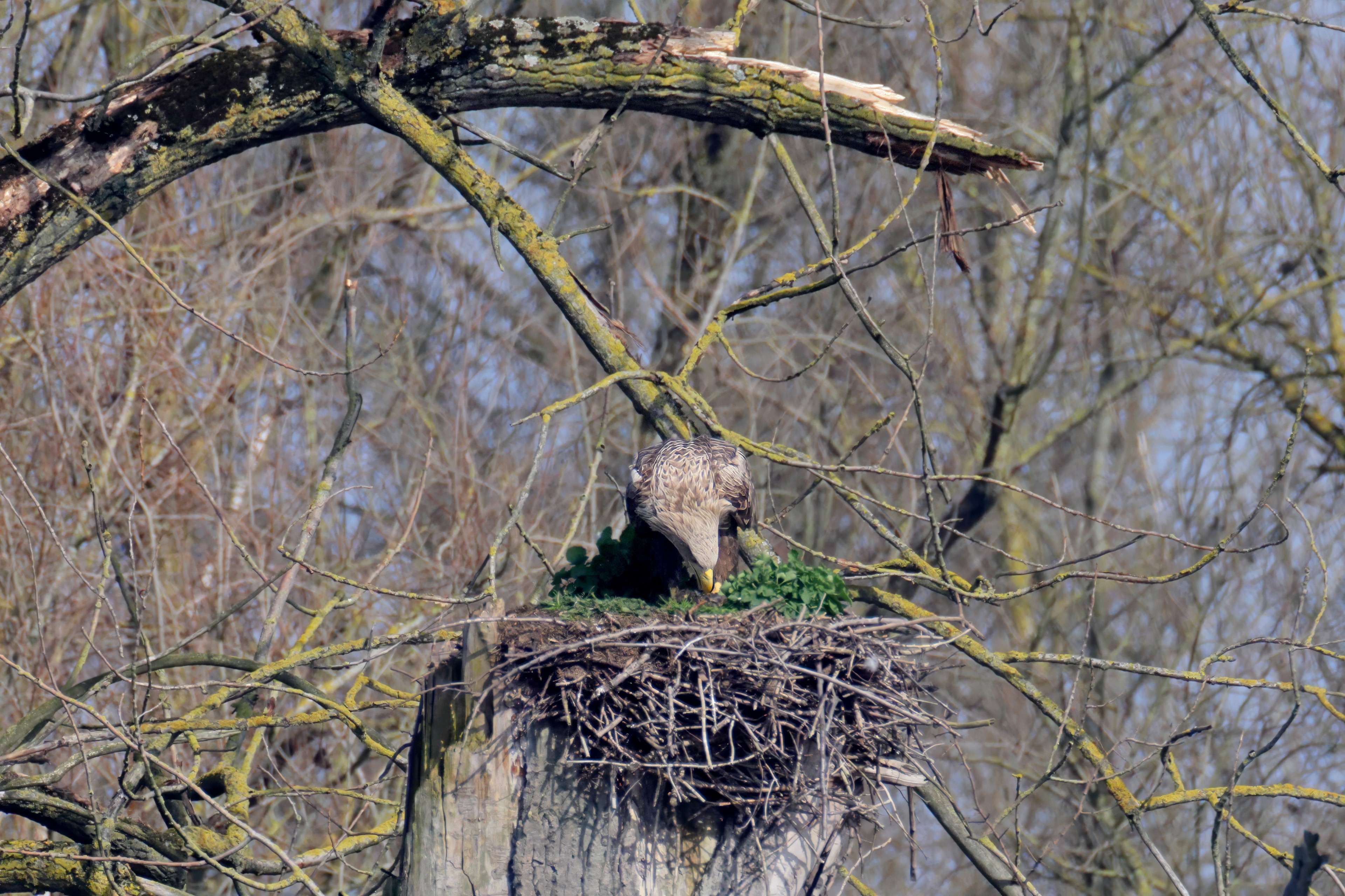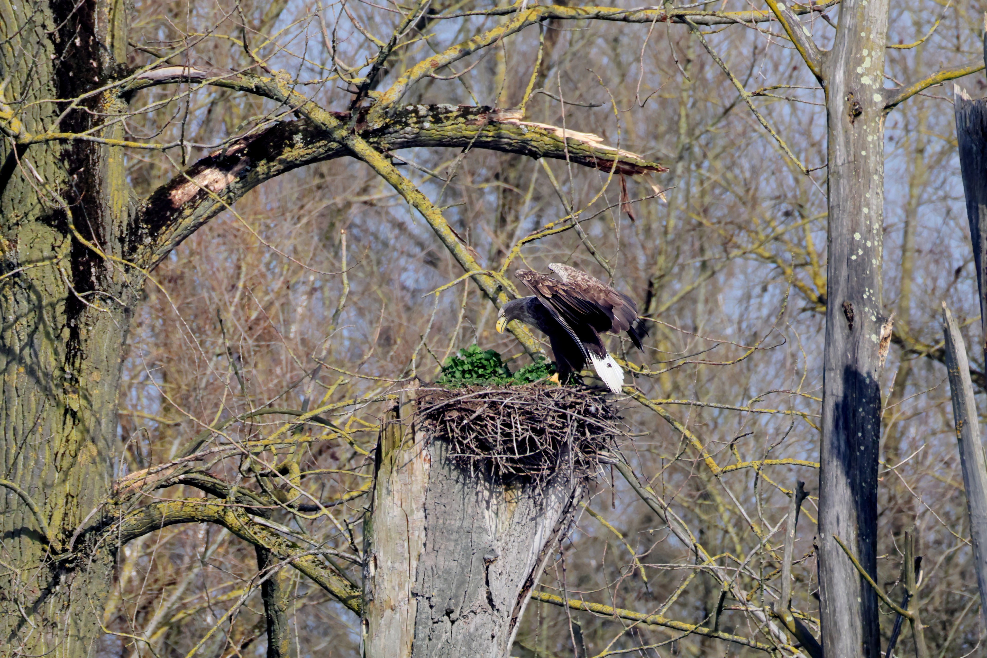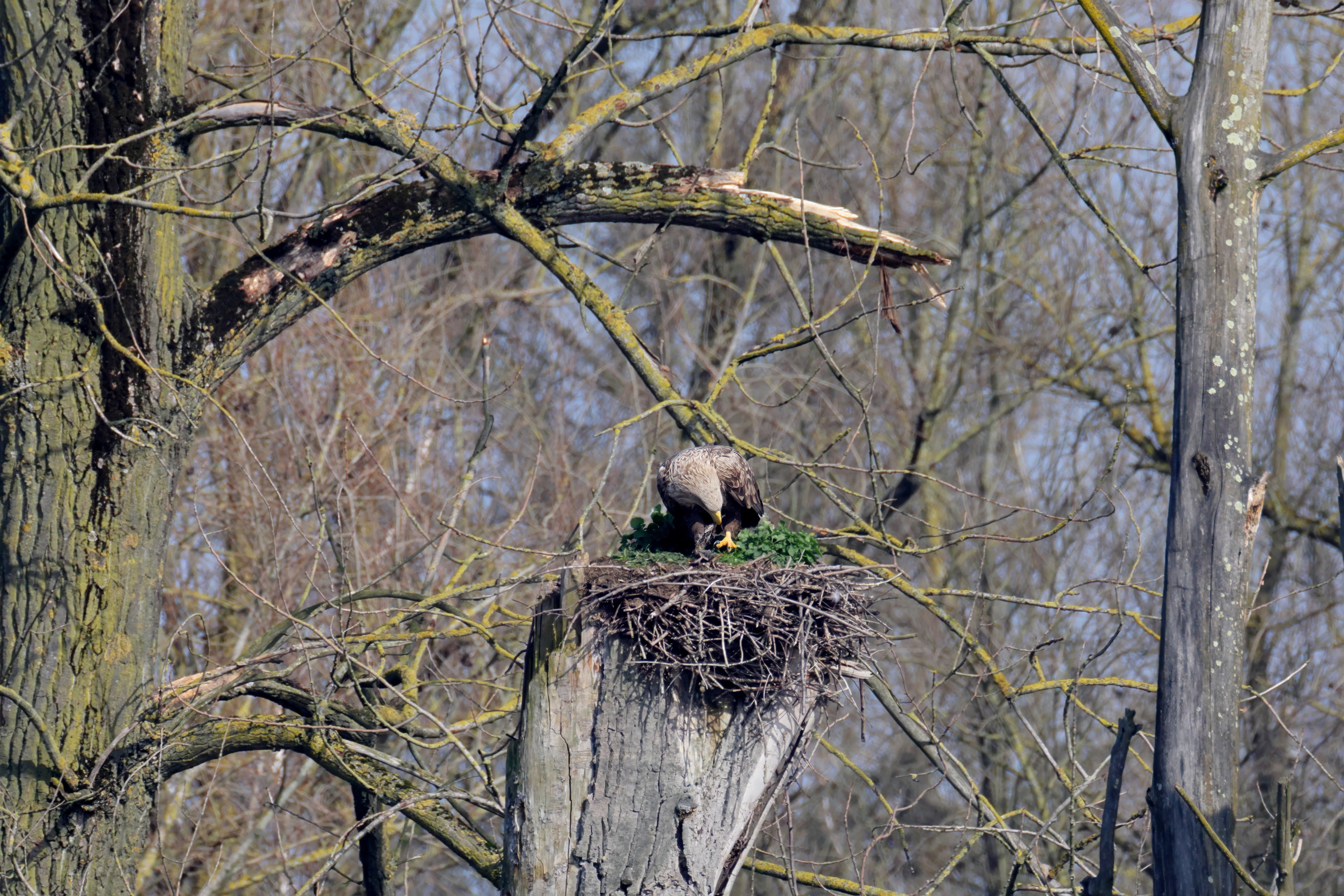 Routiniert meistert das Seeadlerpaar die Brutzeit