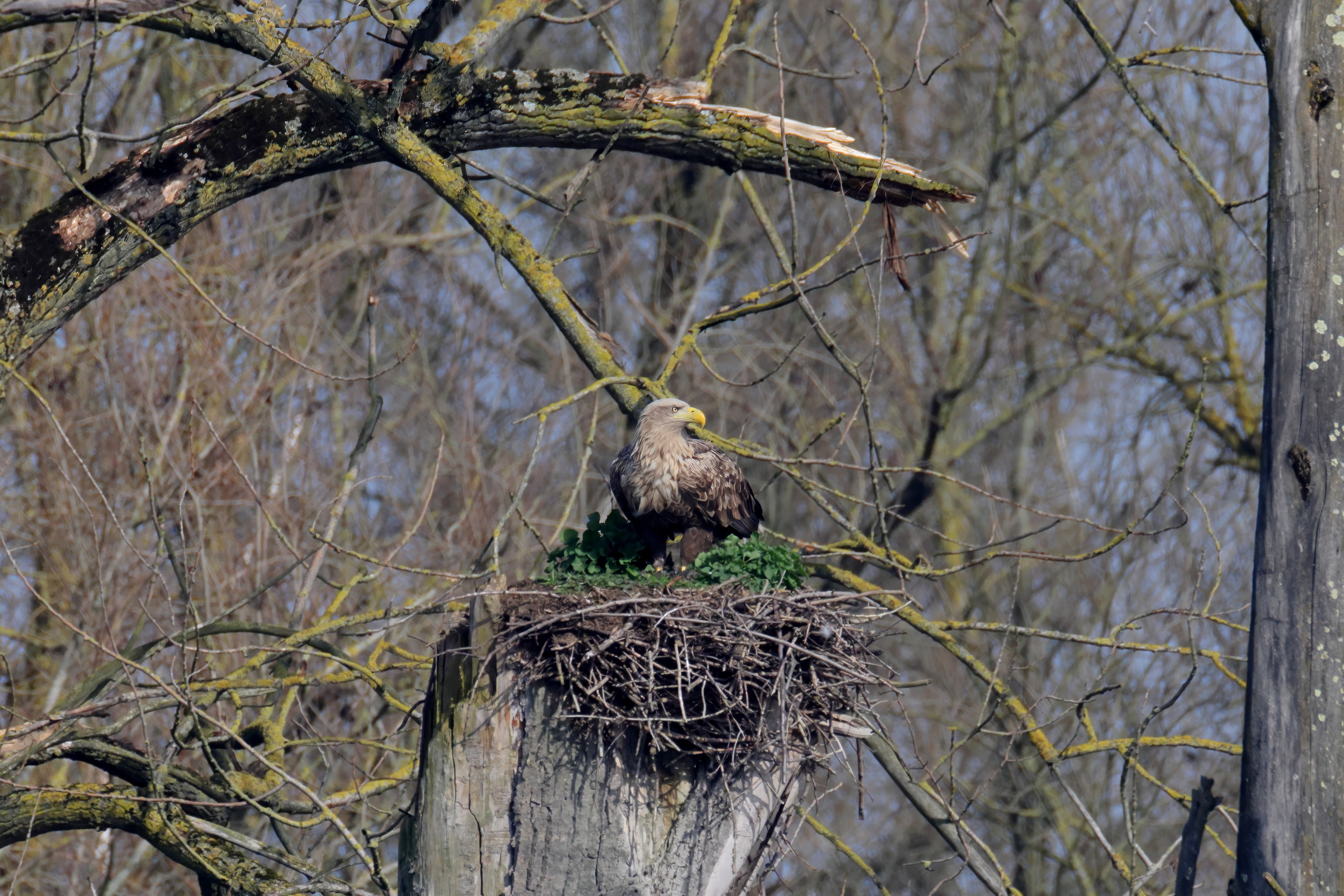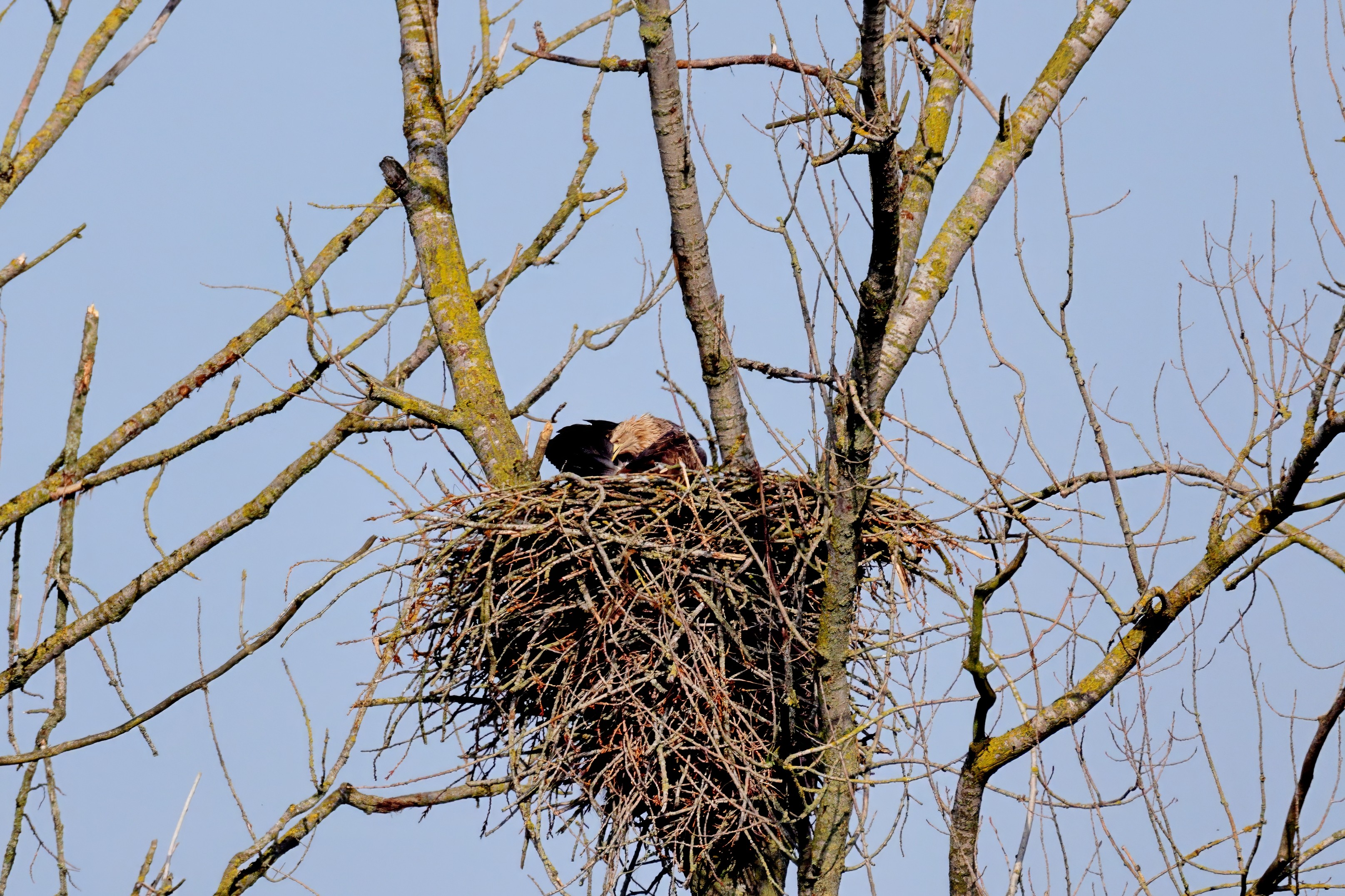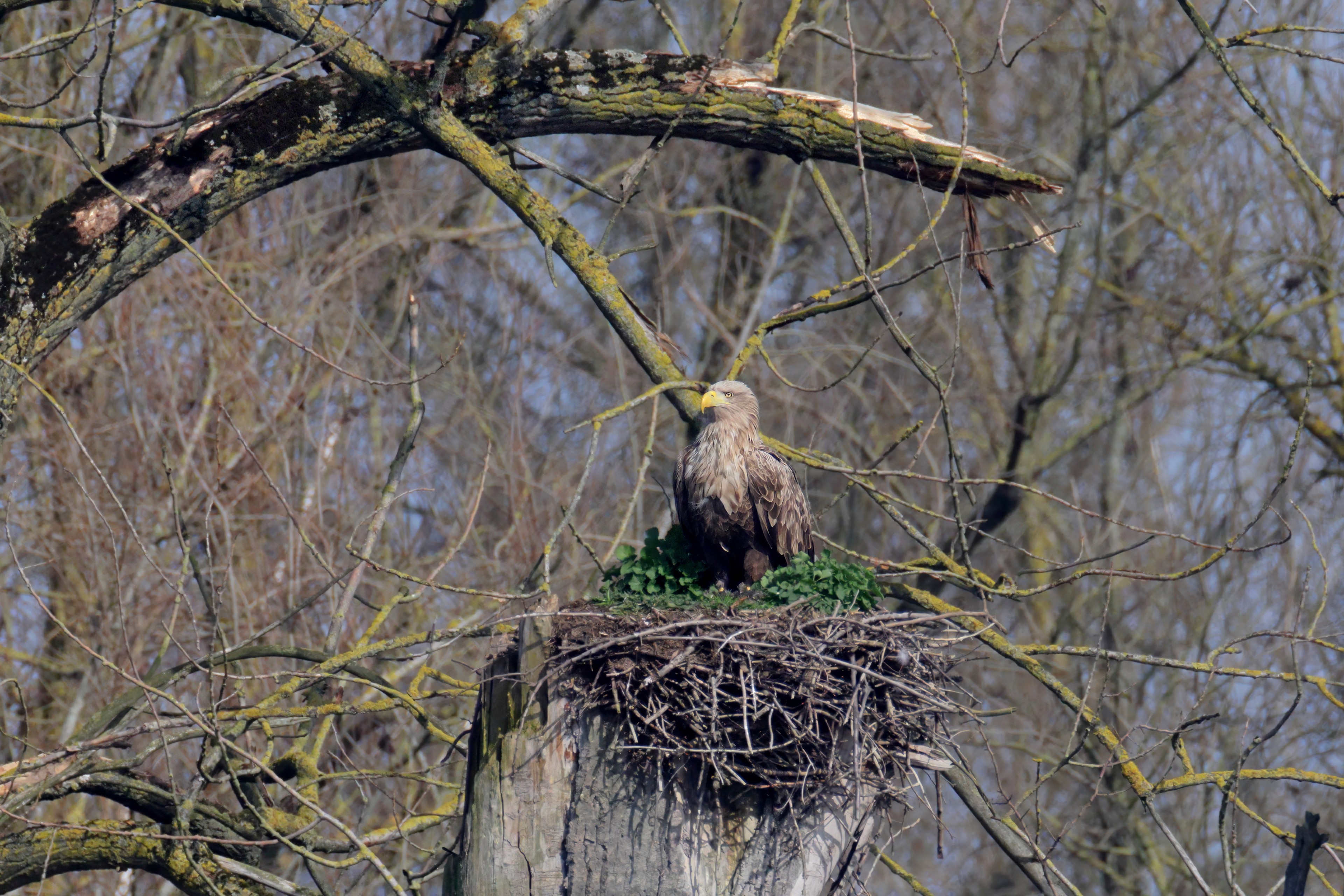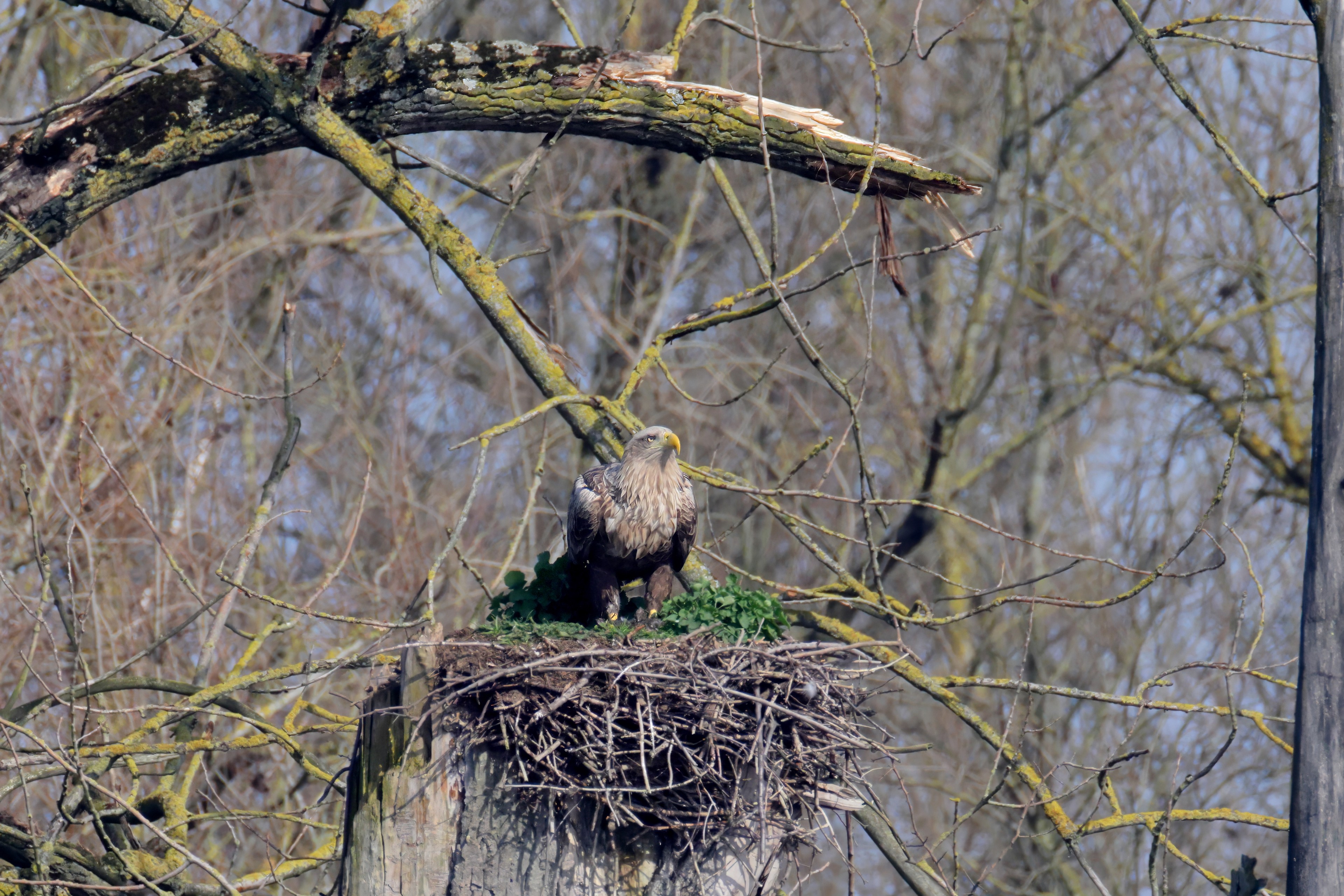 Routiniert meistert das Seeadlerpaar die Brutzeit
