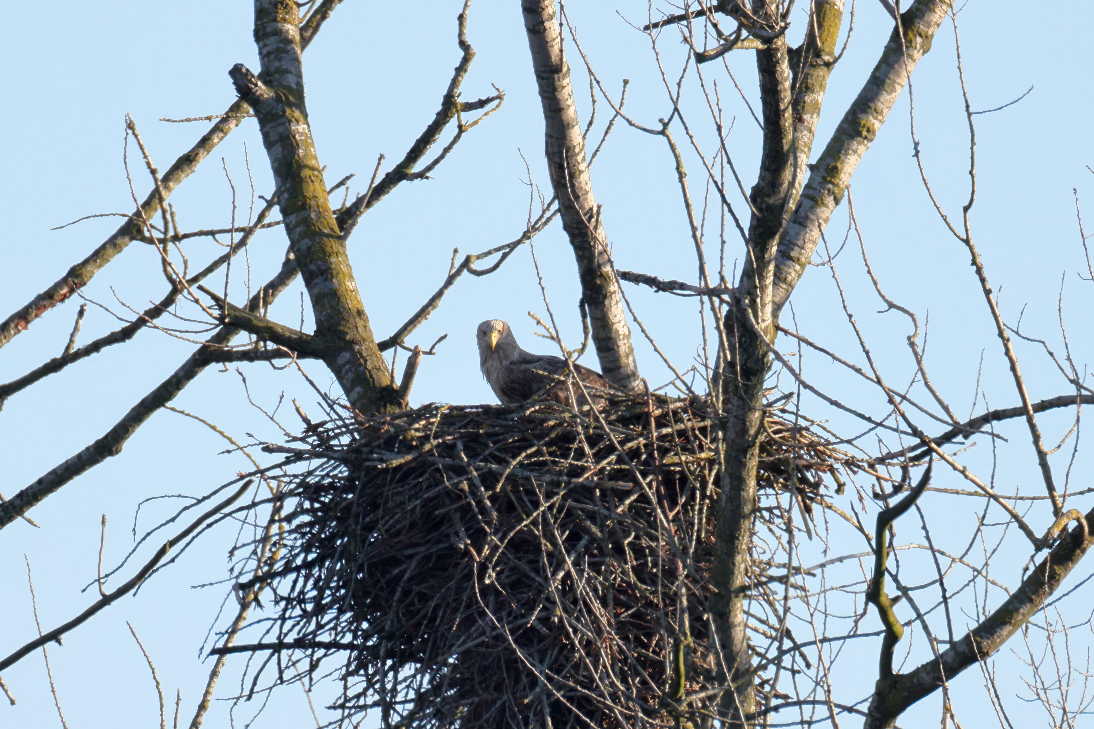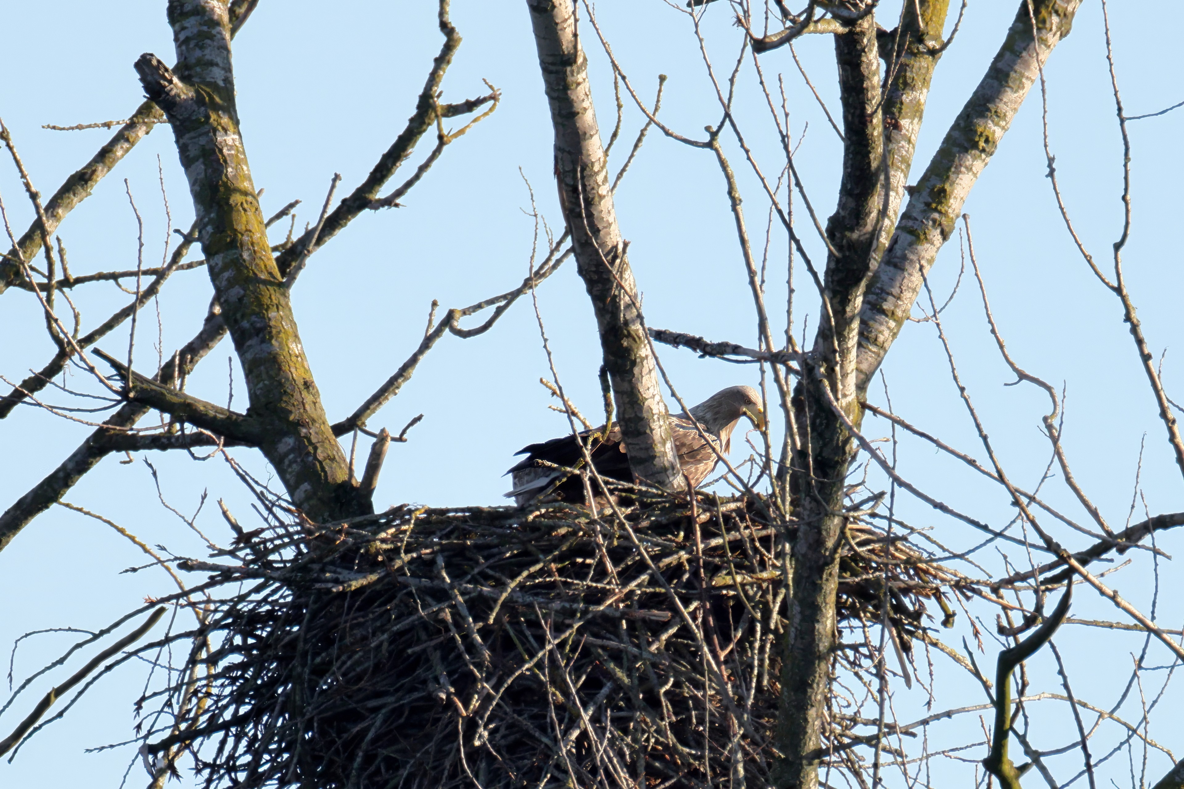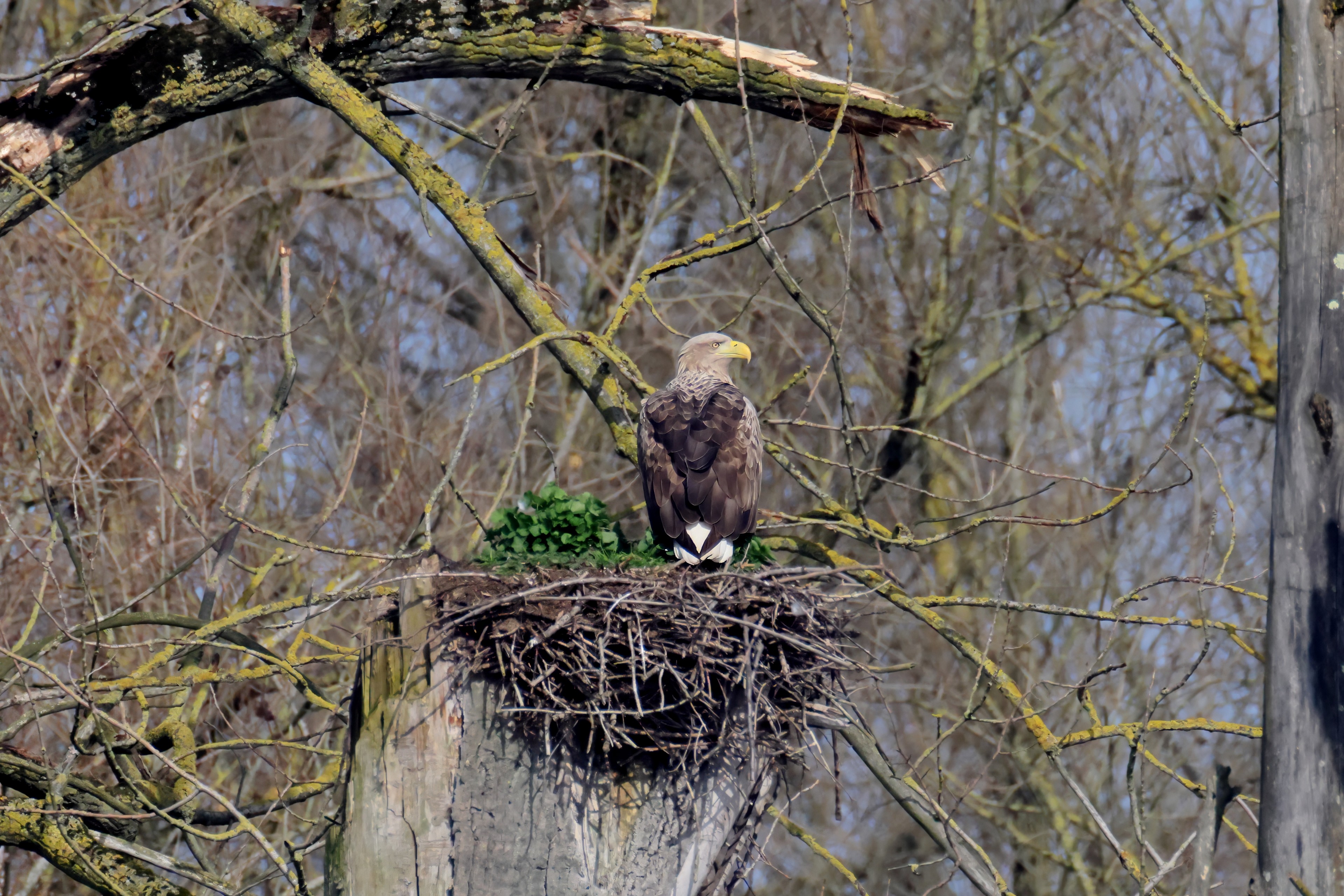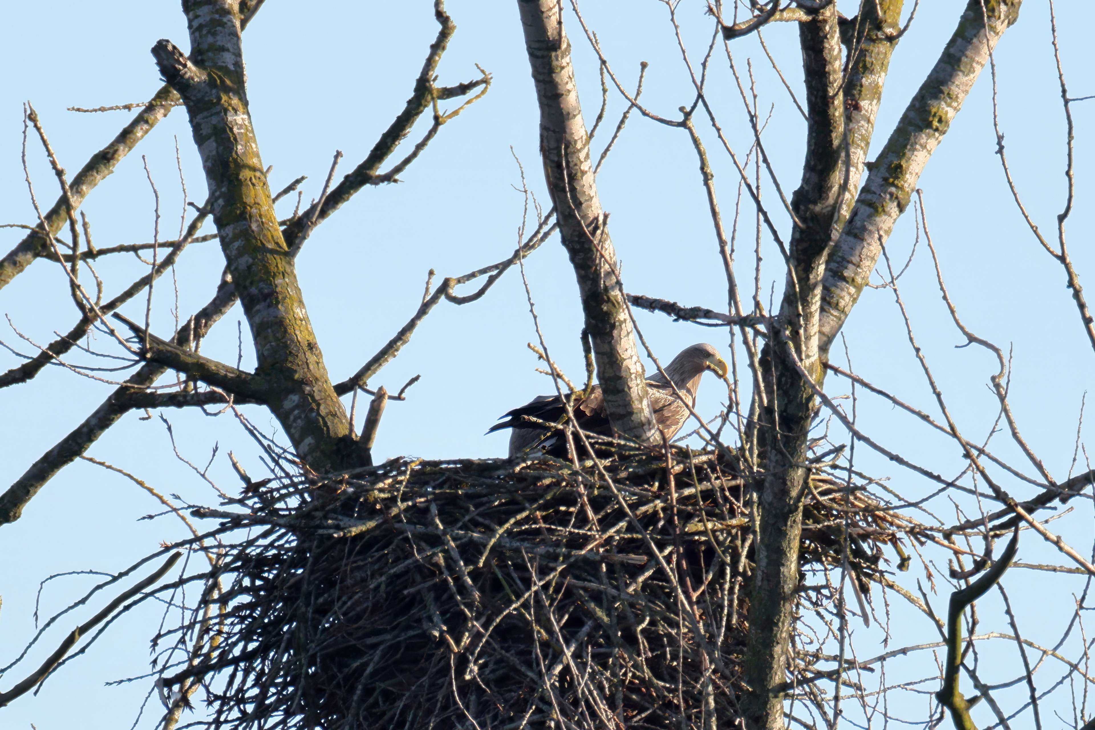 Routiniert meistert das Seeadlerpaar die Brutzeit