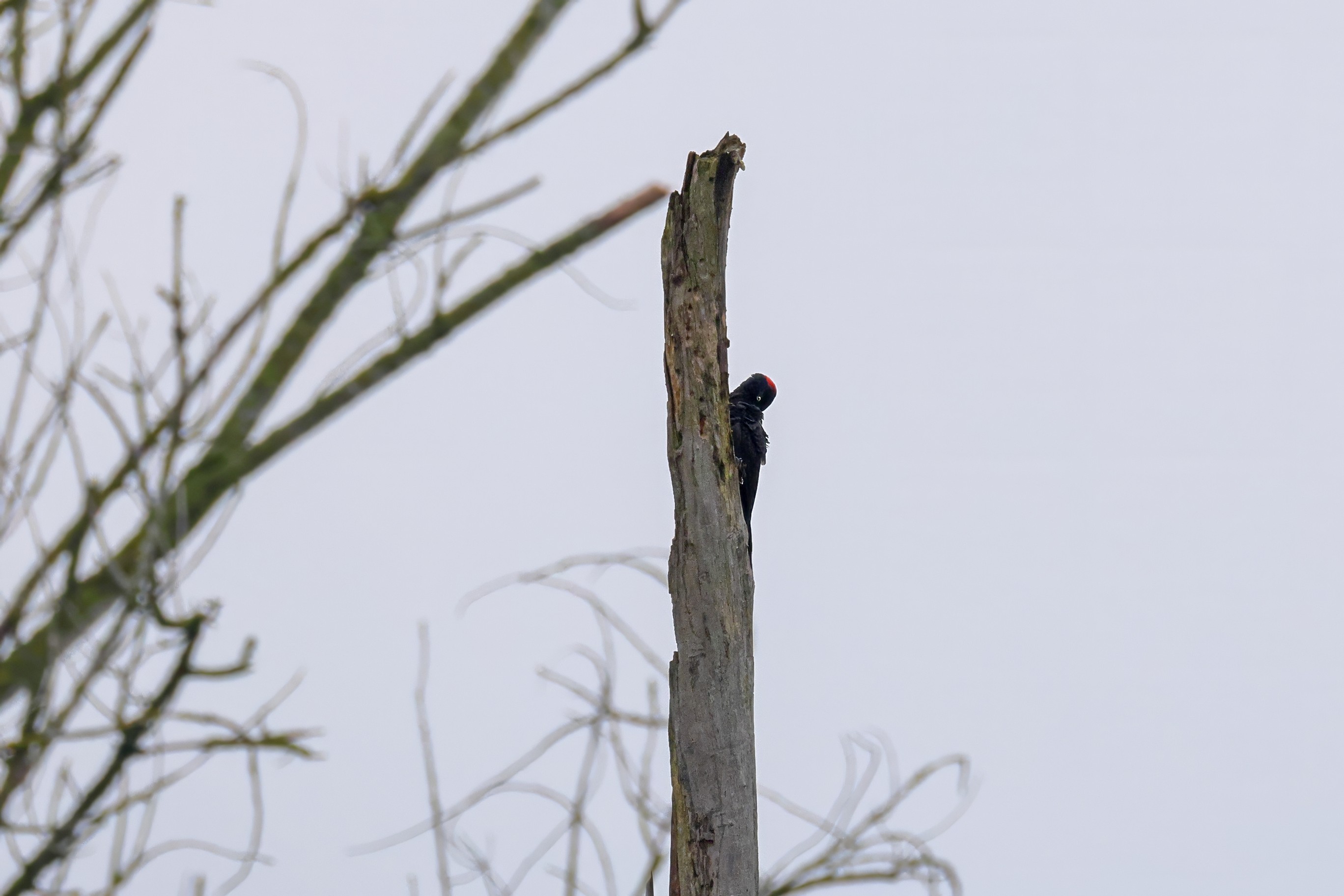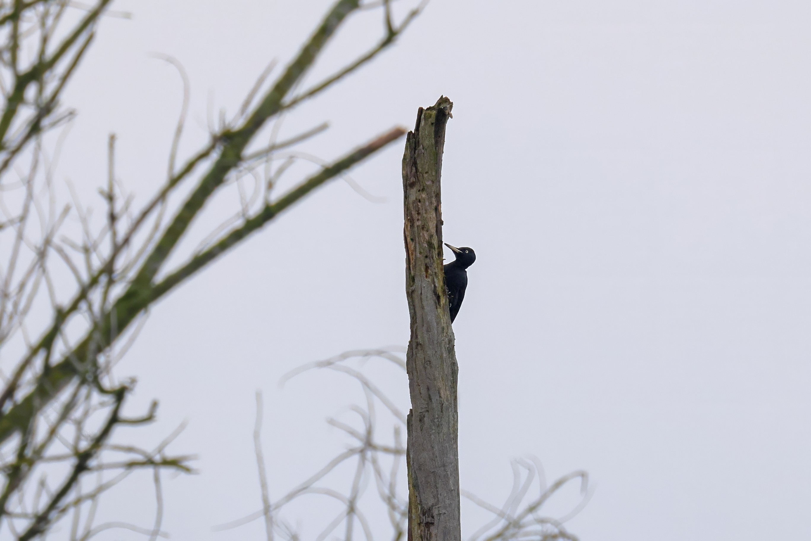 Ein kurzer Ruf des Schwarzspechts verriet seine Anwesenheit.