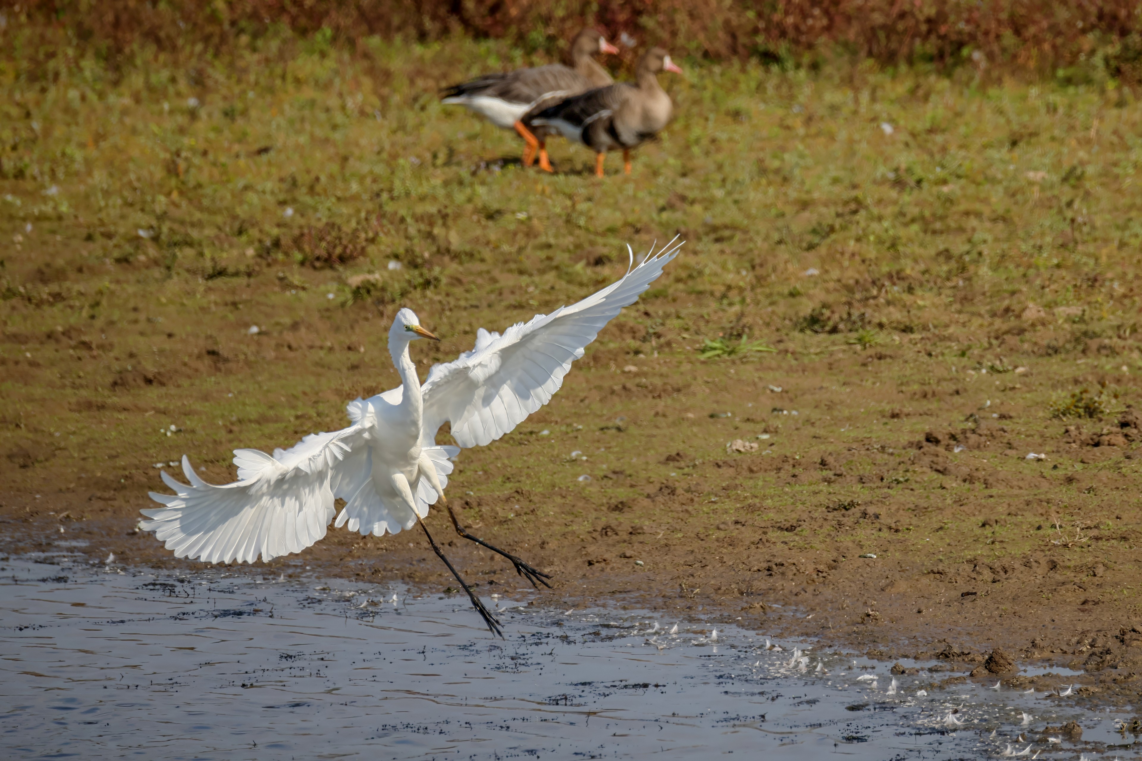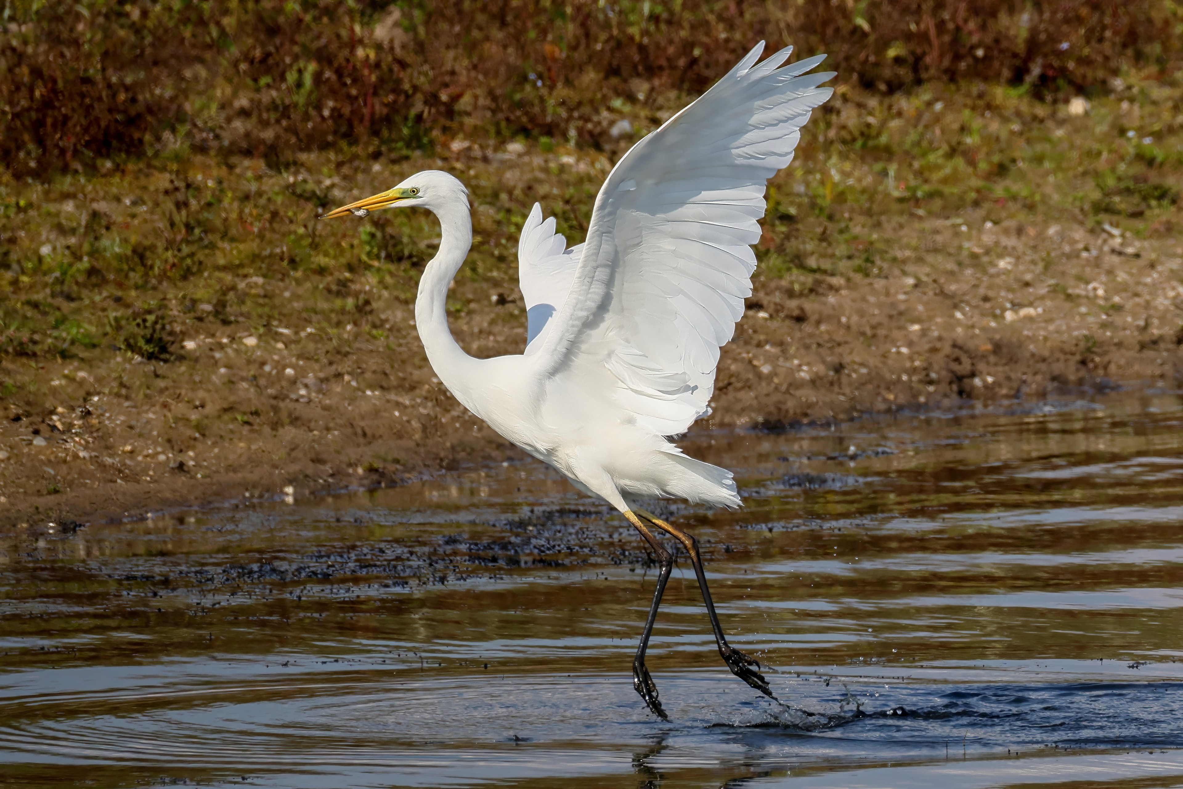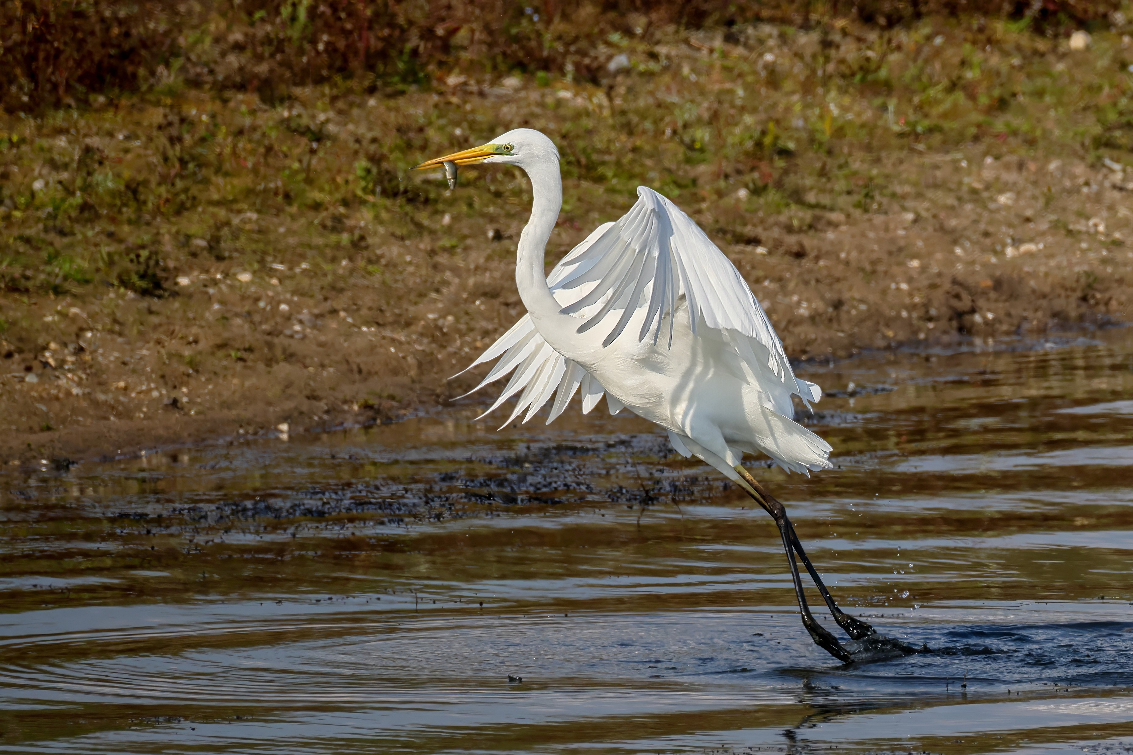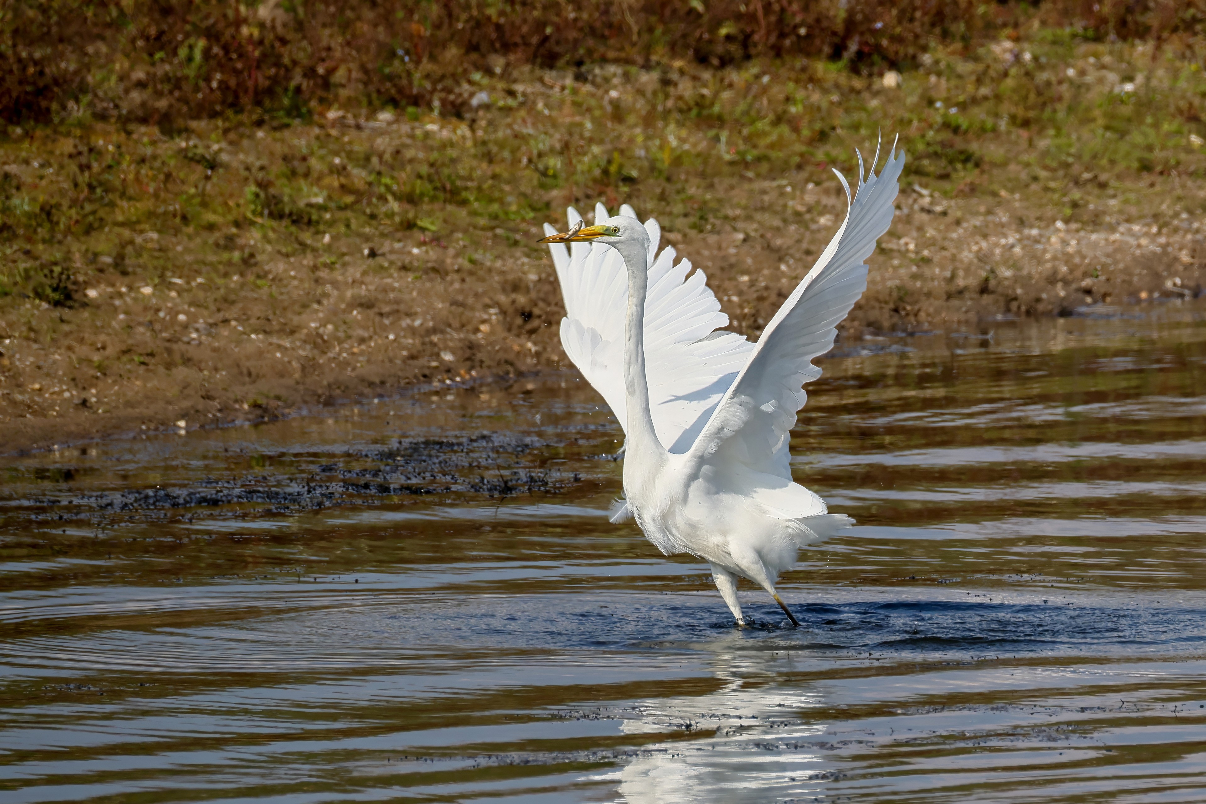 Silberreiher tritt in Aktion