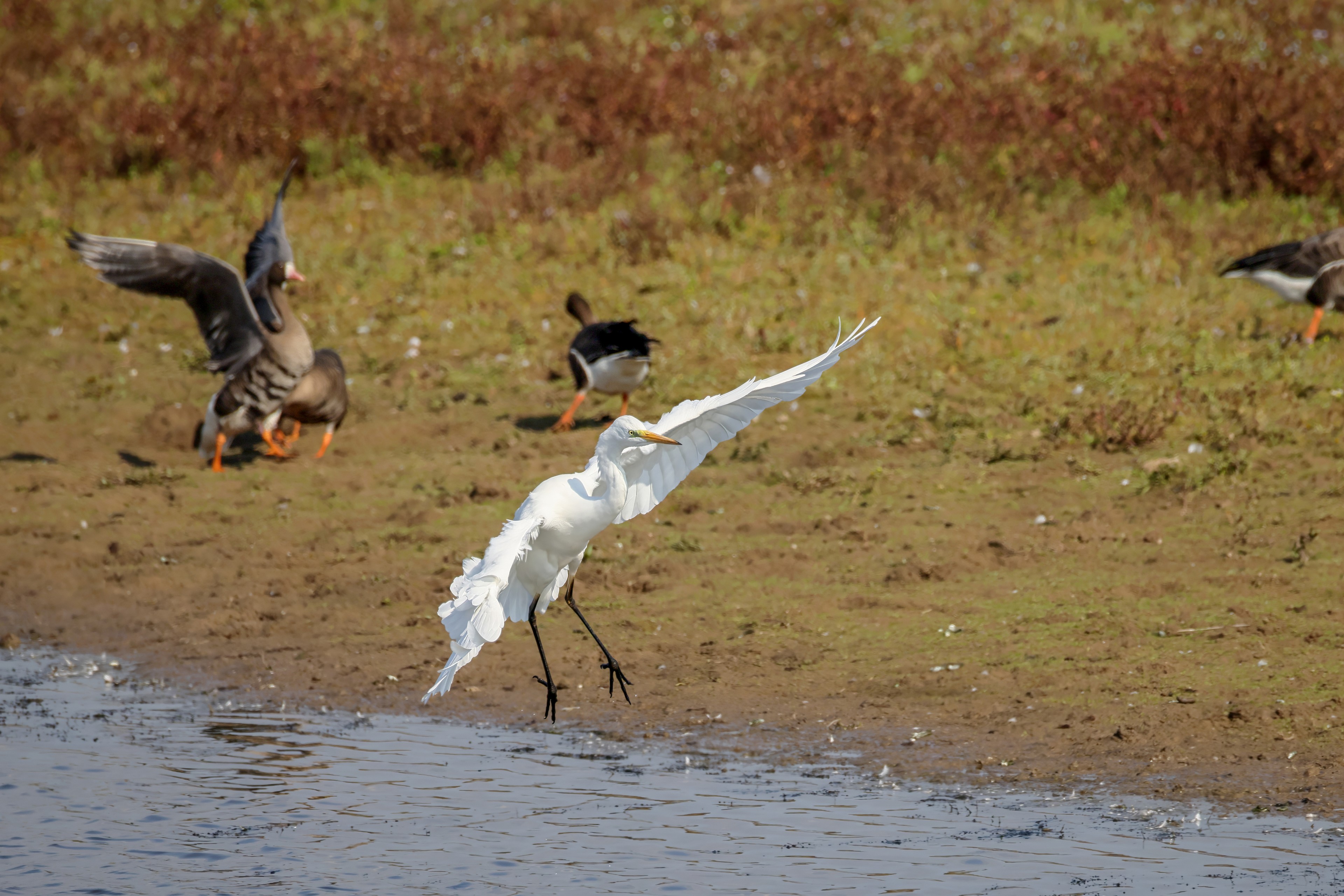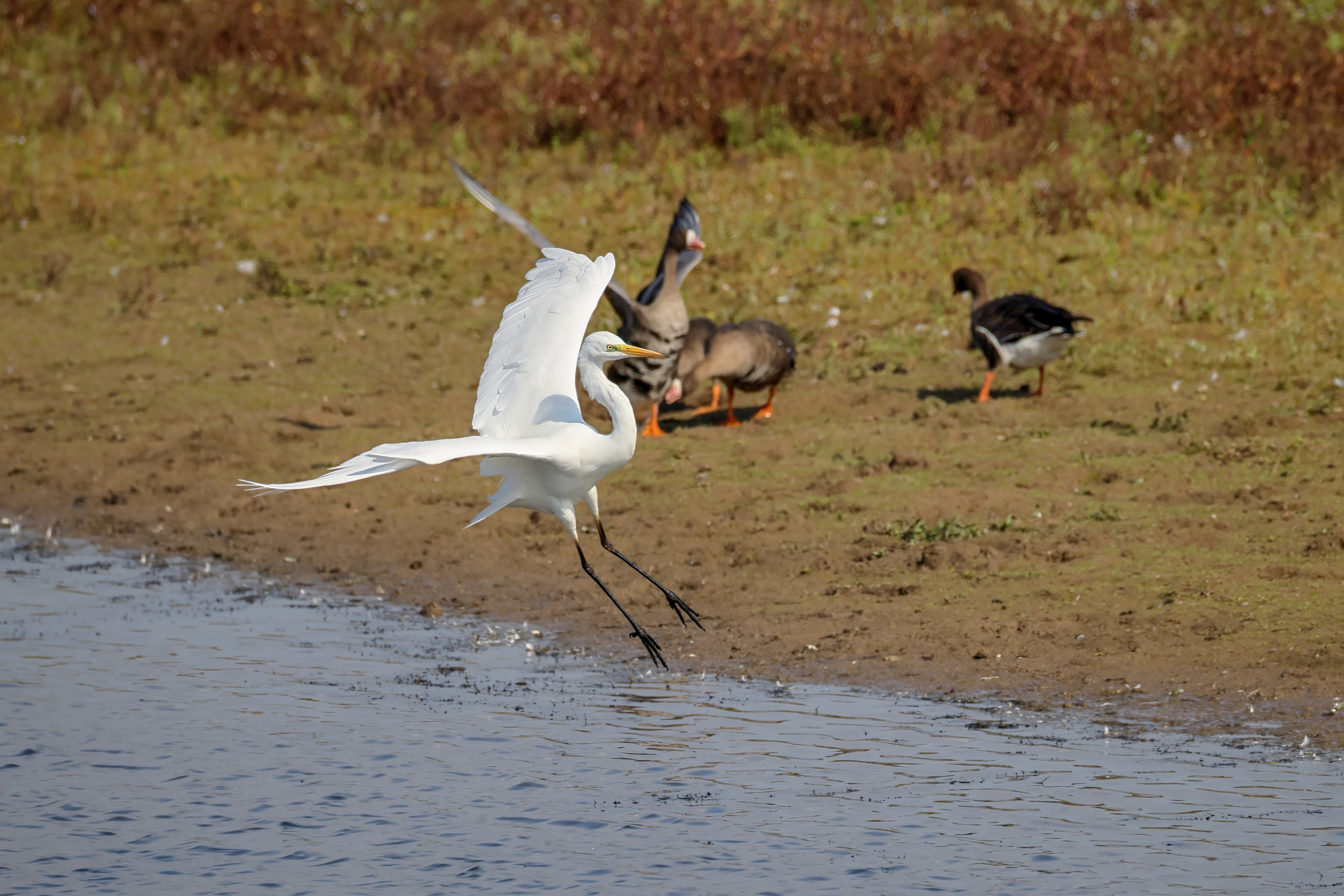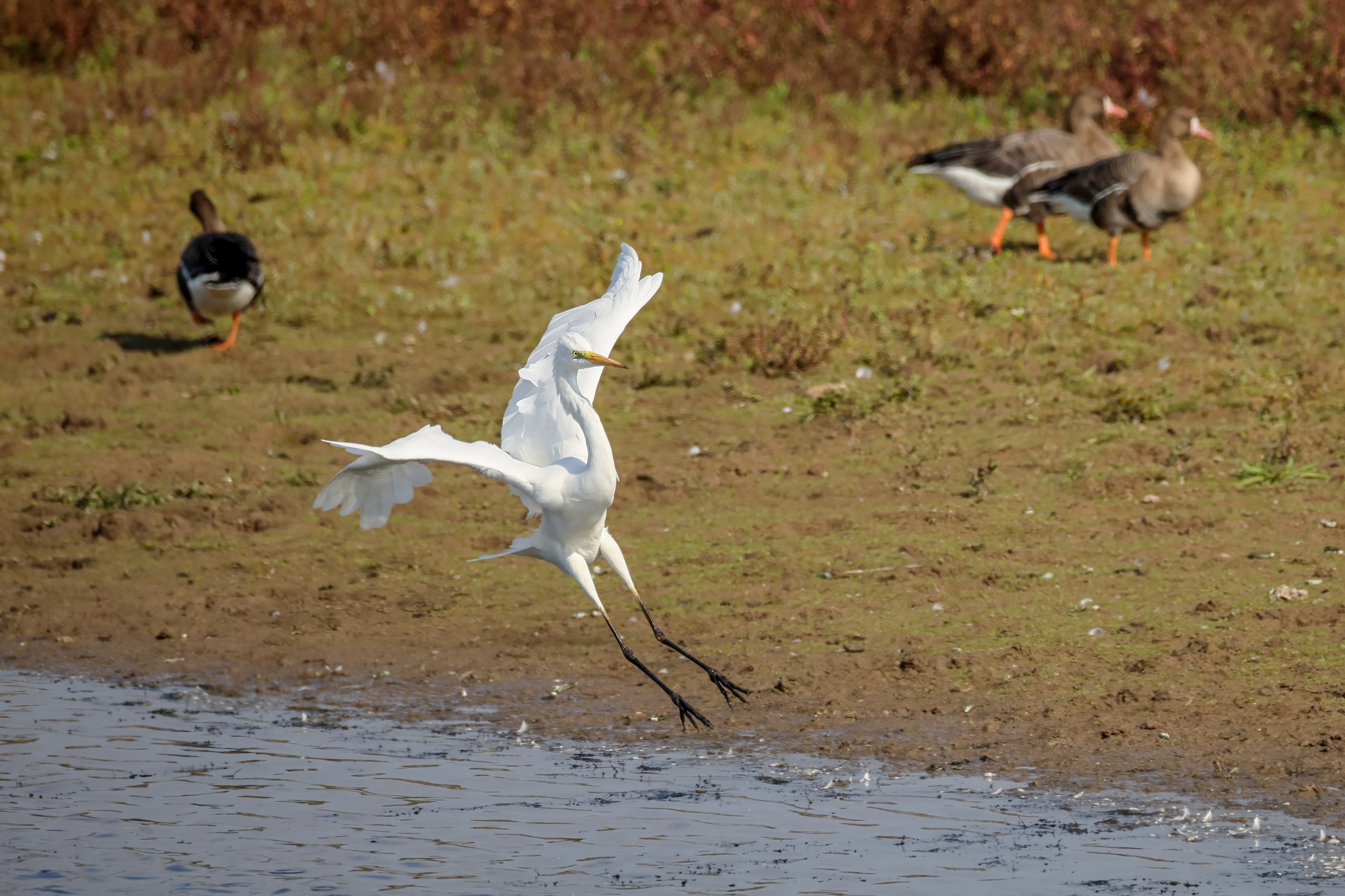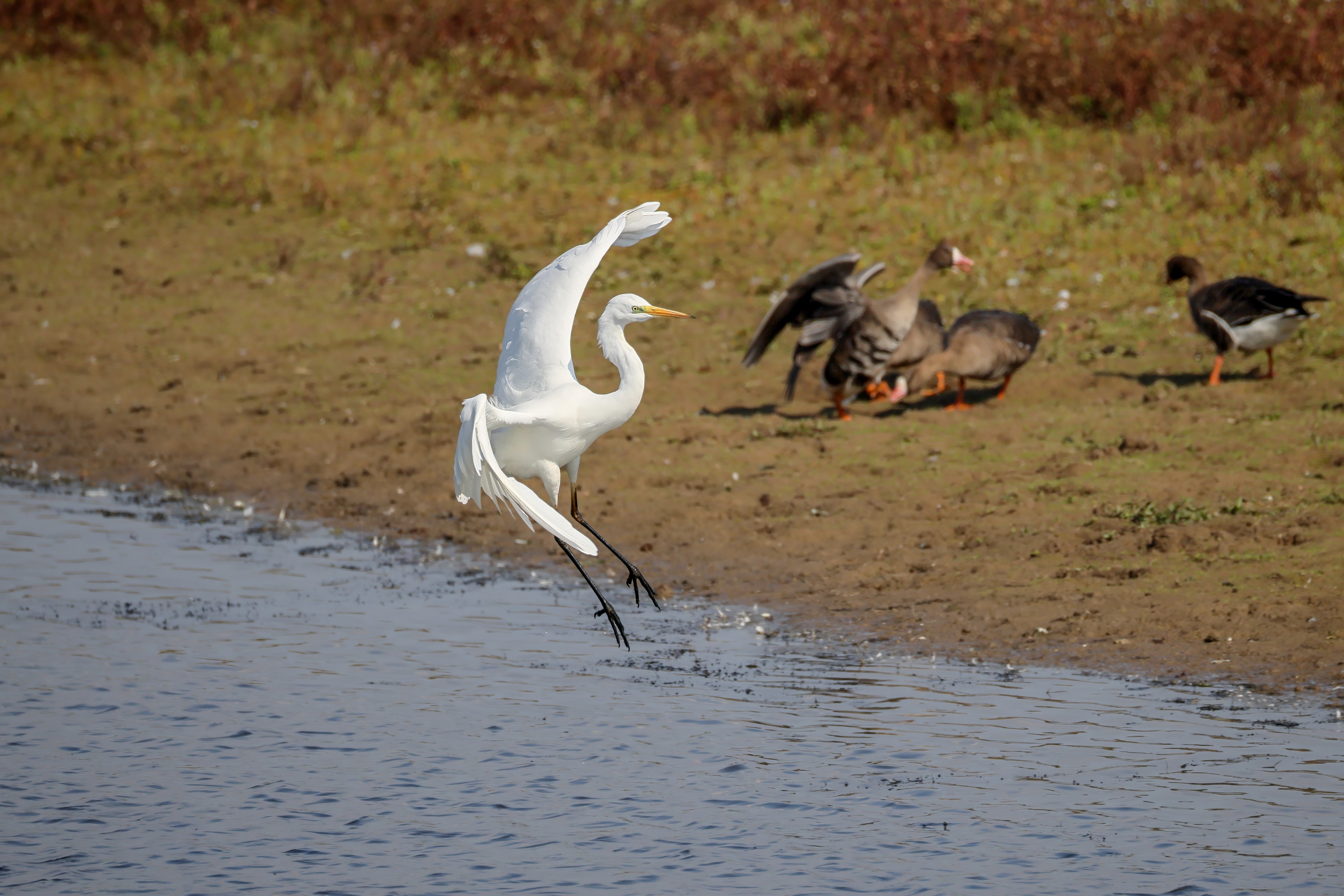 Silberreiher tritt in Aktion