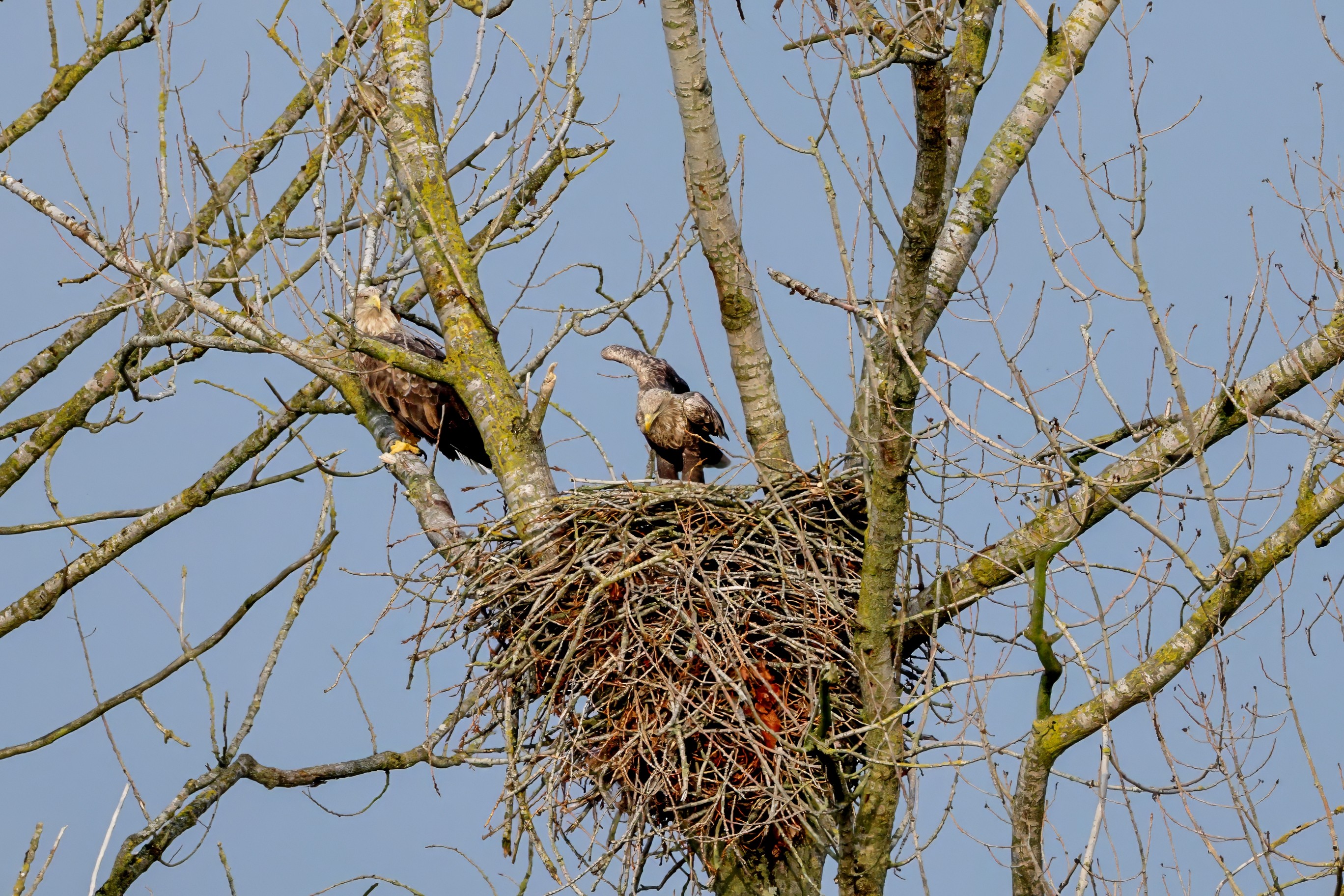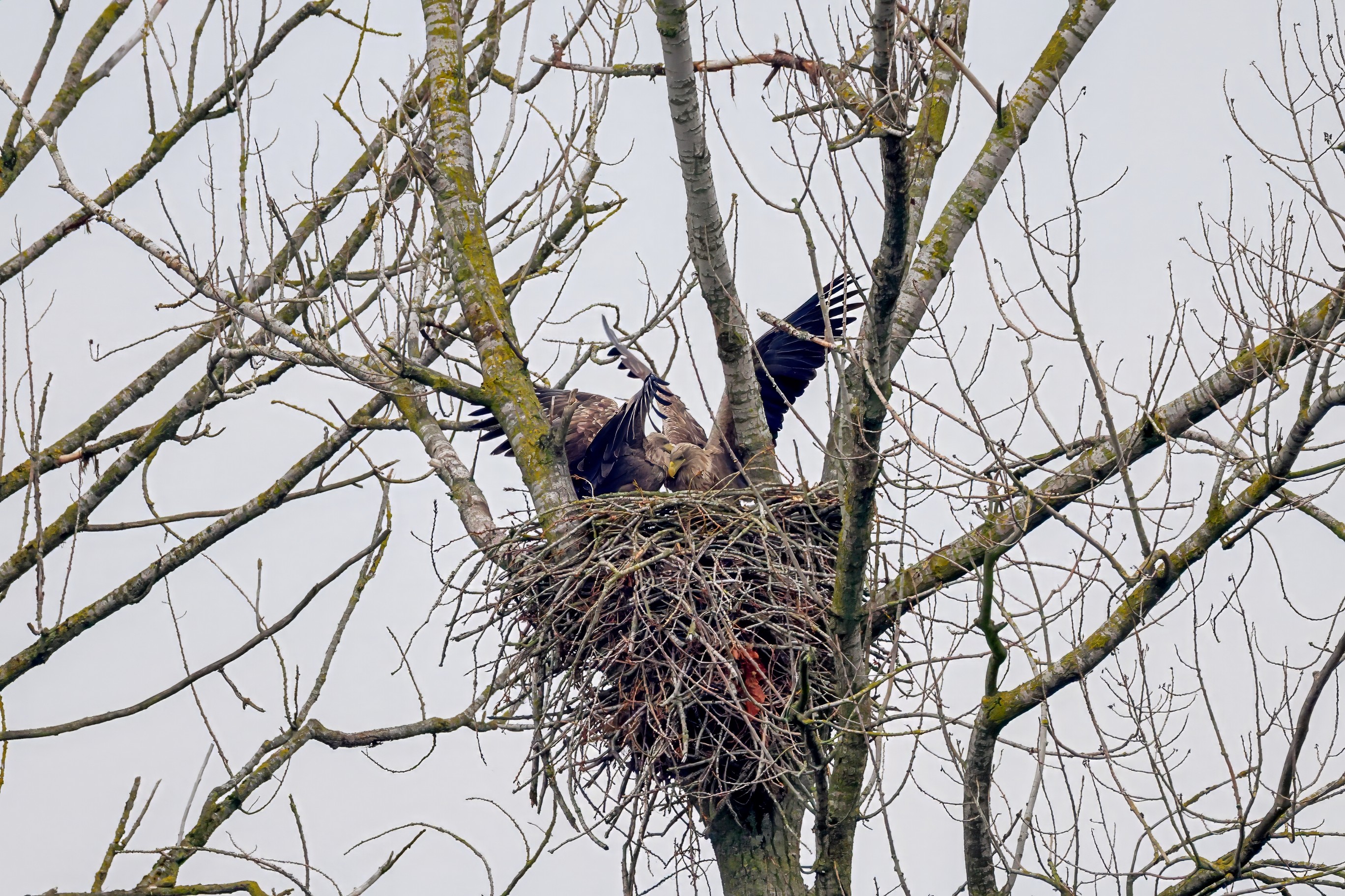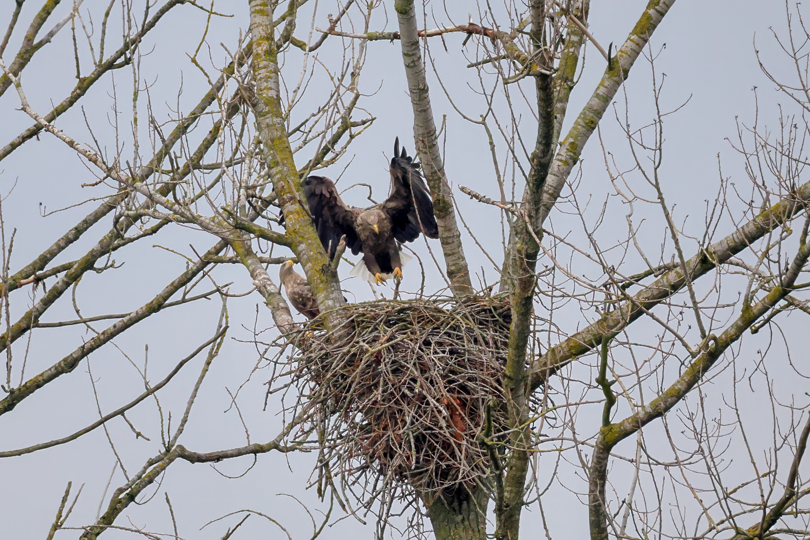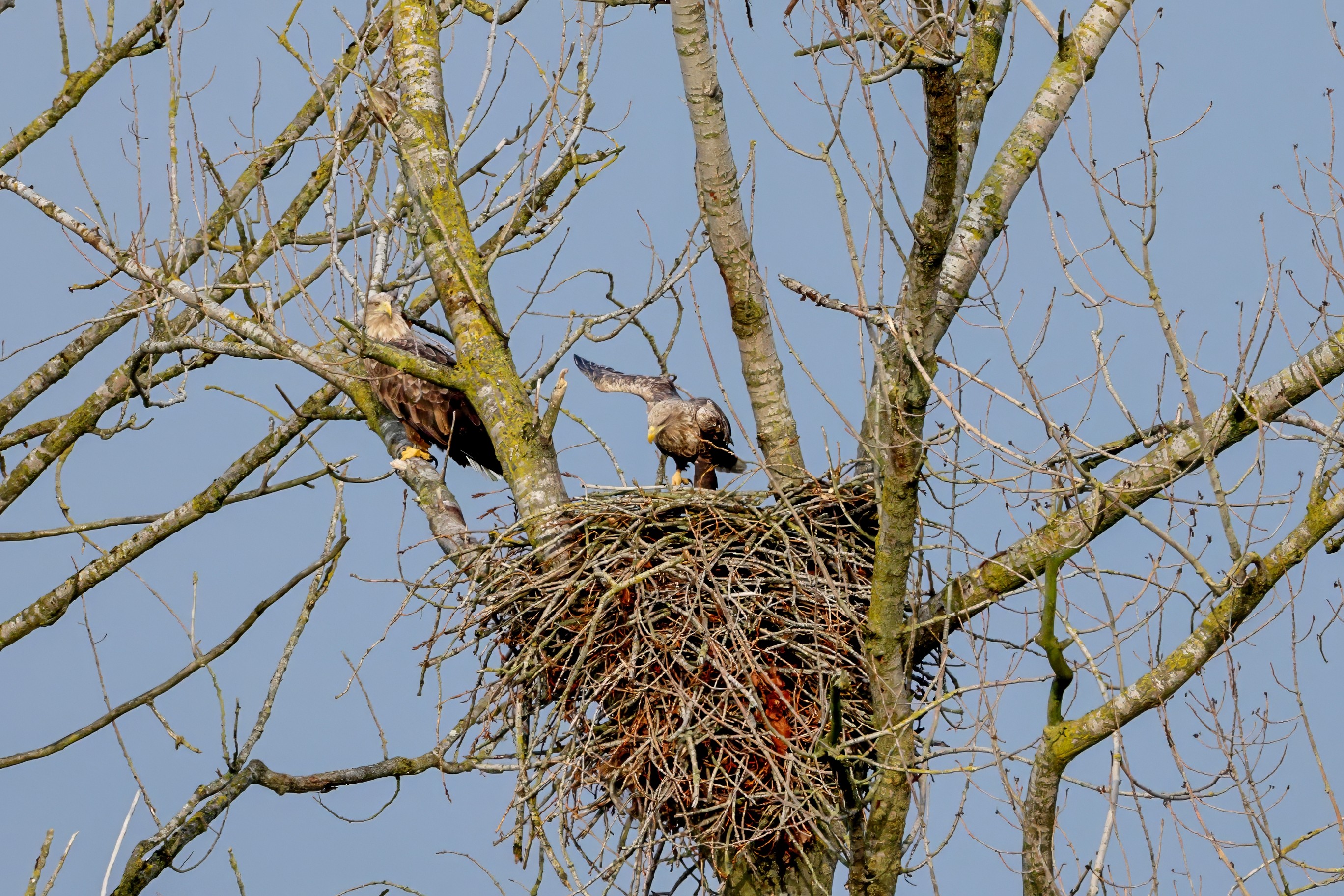 Währenddessen zeigen die adulten Seeadler im November eindrucksvoll ihre feste Partnerschaft. Gemeinsam arbeiten sie bereits an der Ausbesserung ihres Horstes – eine sorgfältige Vorbereitung auf das kommende Jahr.
