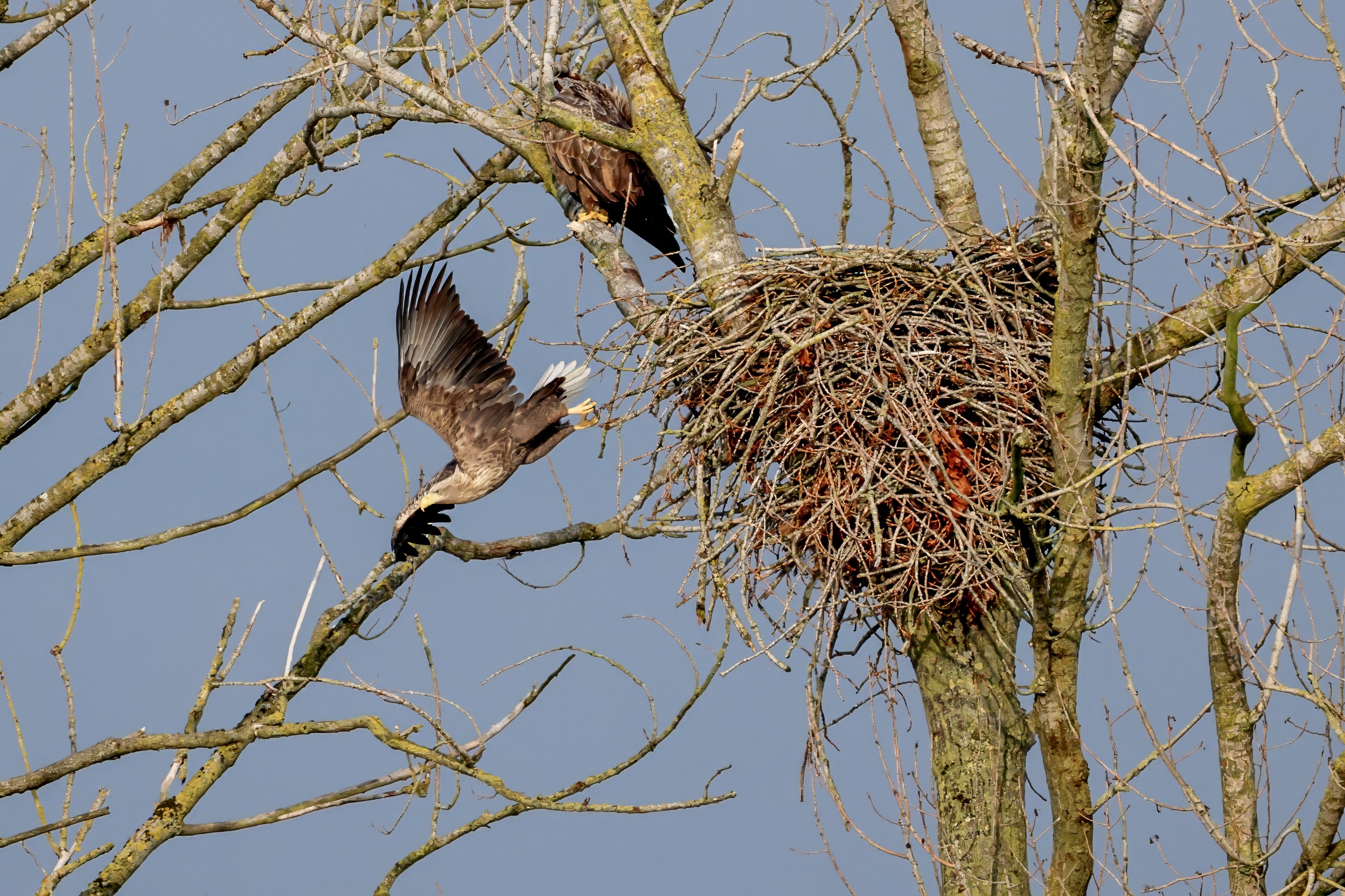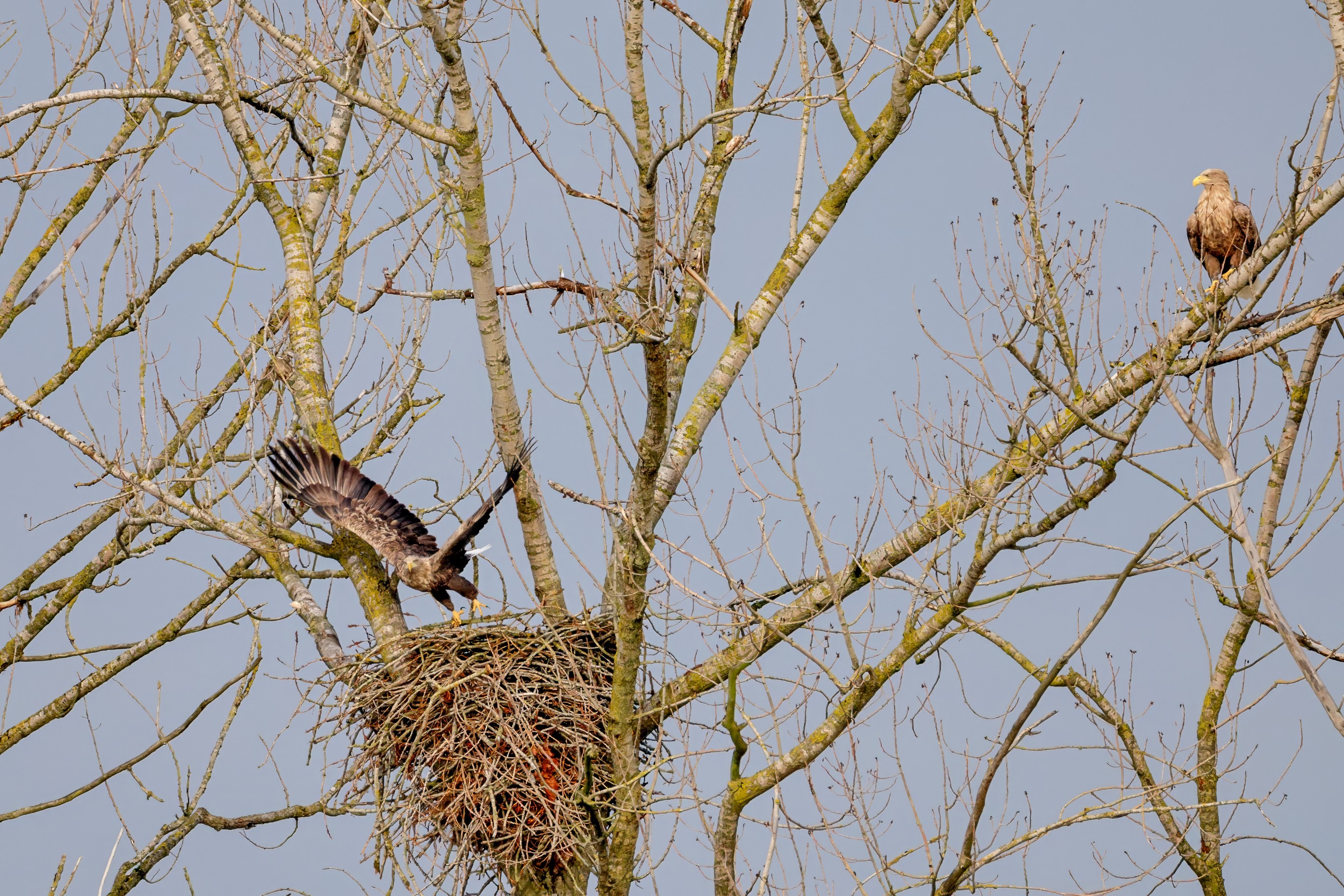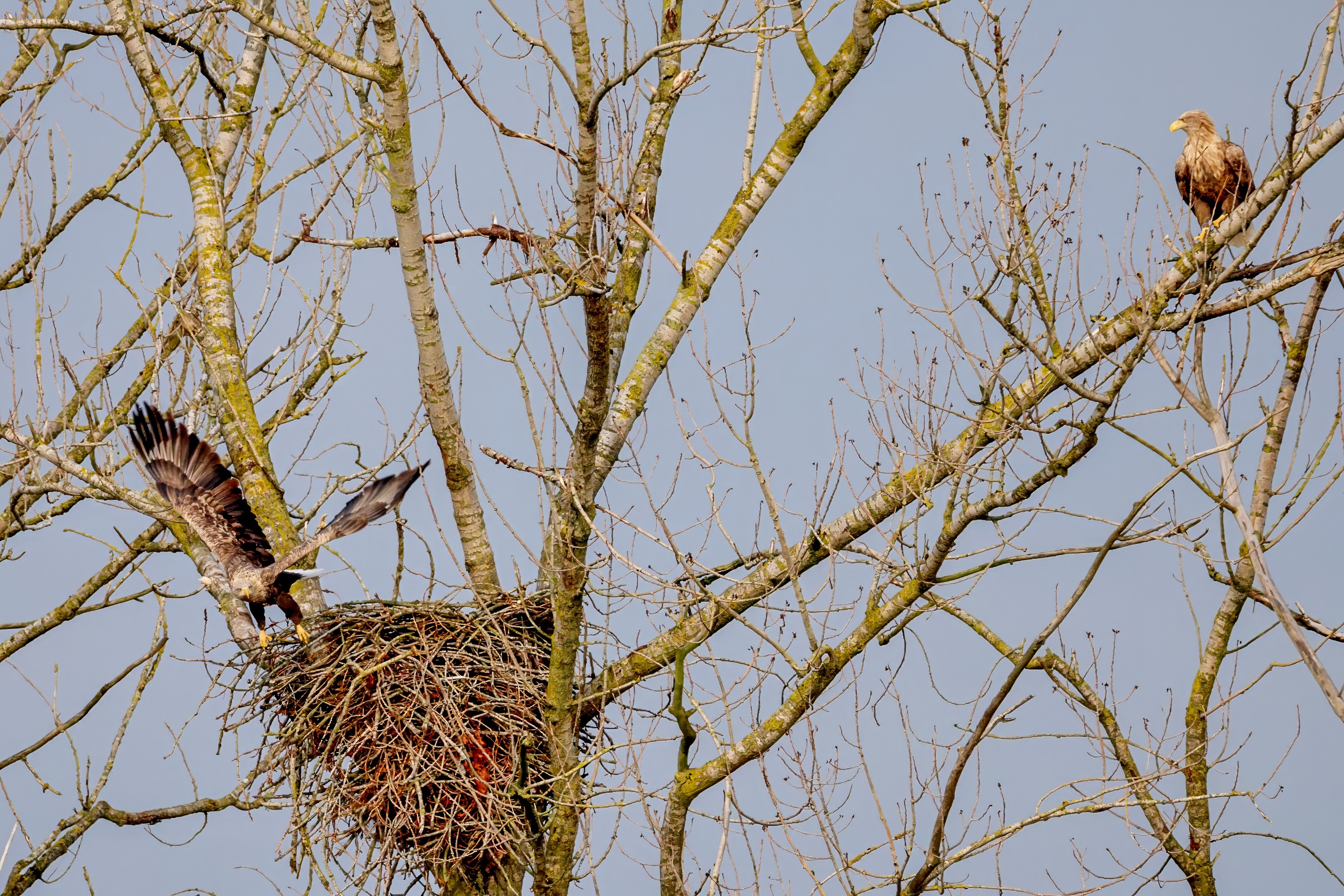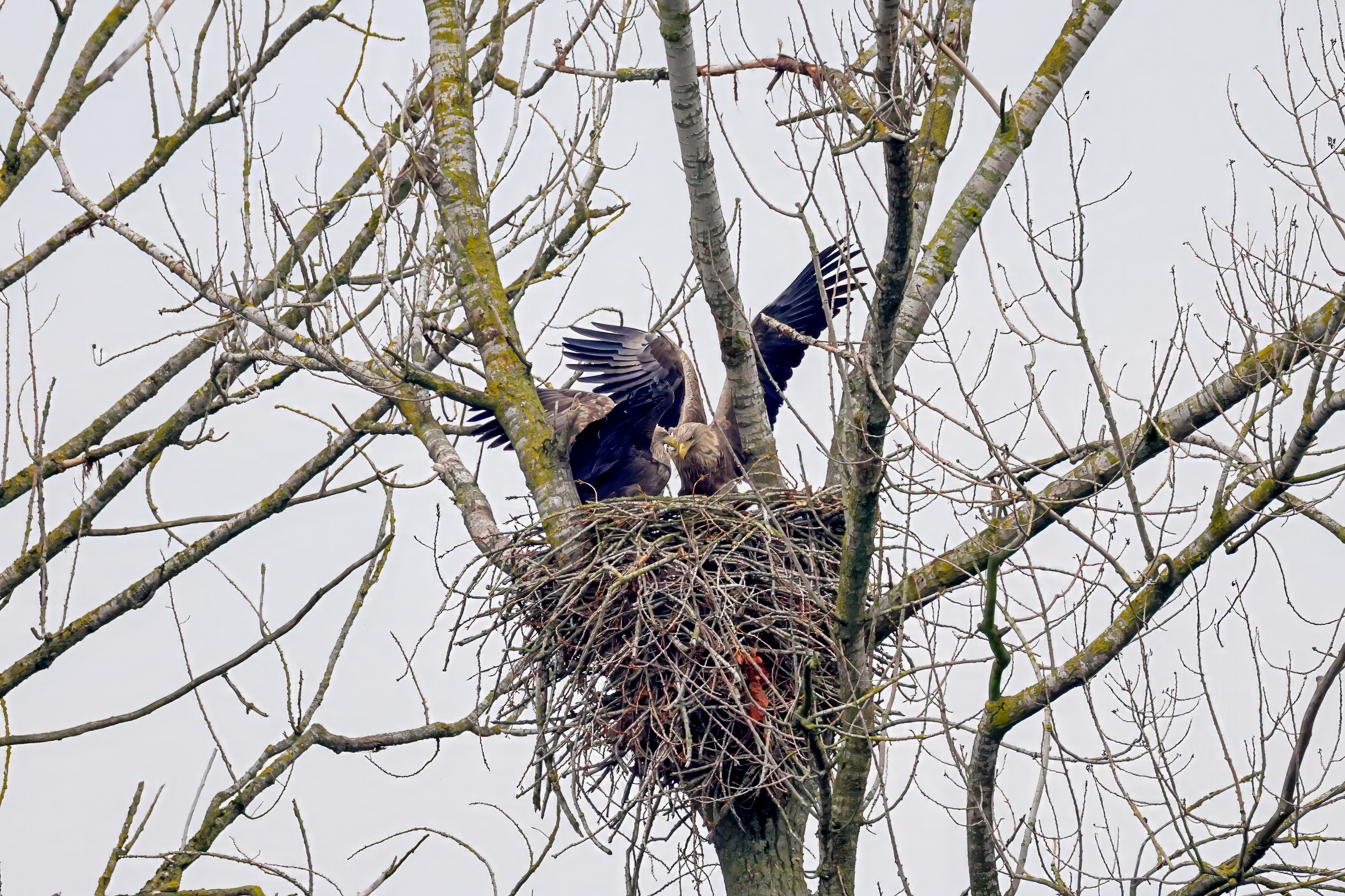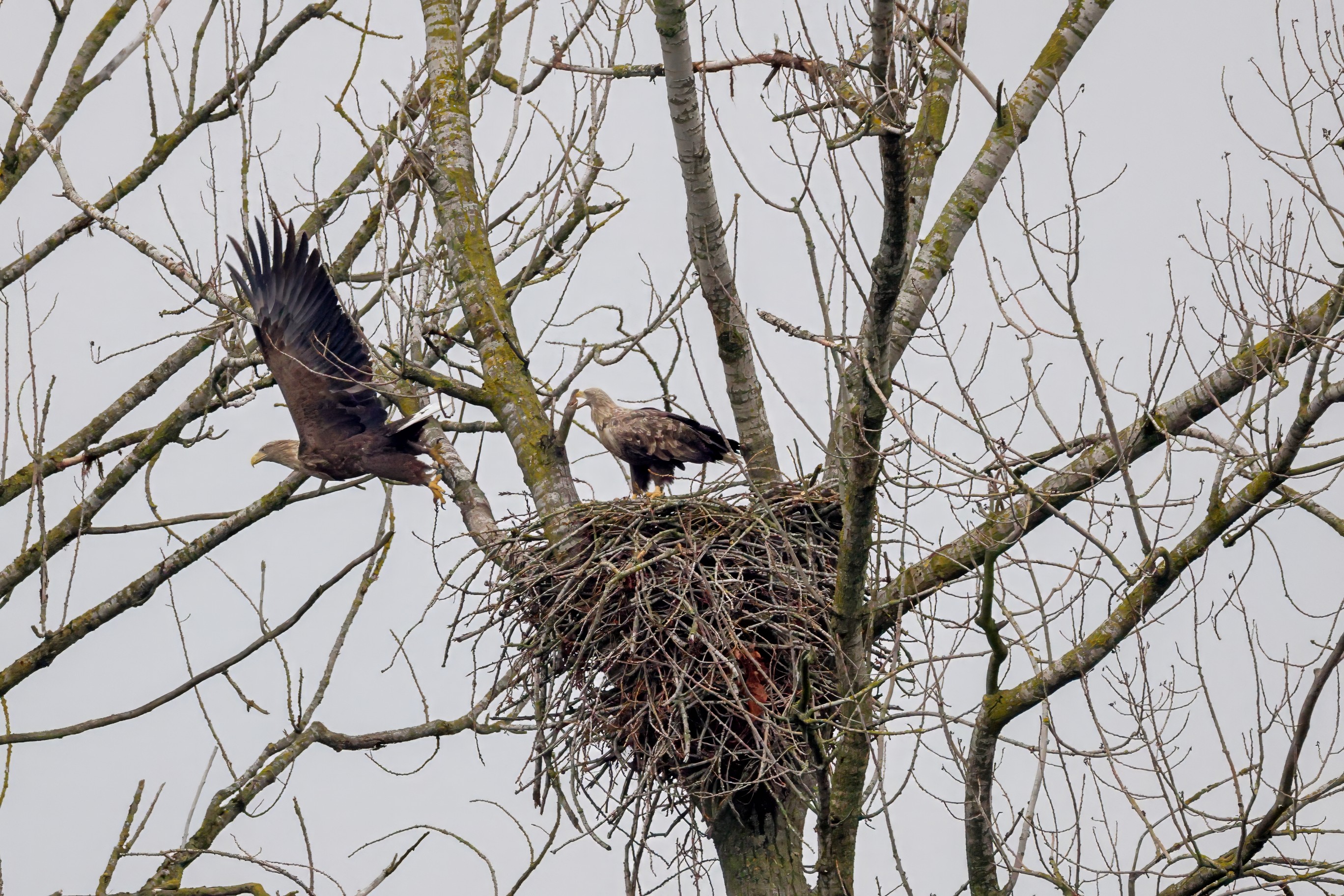 Währenddessen zeigen die adulten Seeadler im November eindrucksvoll ihre feste Partnerschaft. Gemeinsam arbeiten sie bereits an der Ausbesserung ihres Horstes – eine sorgfältige Vorbereitung auf das kommende Jahr.