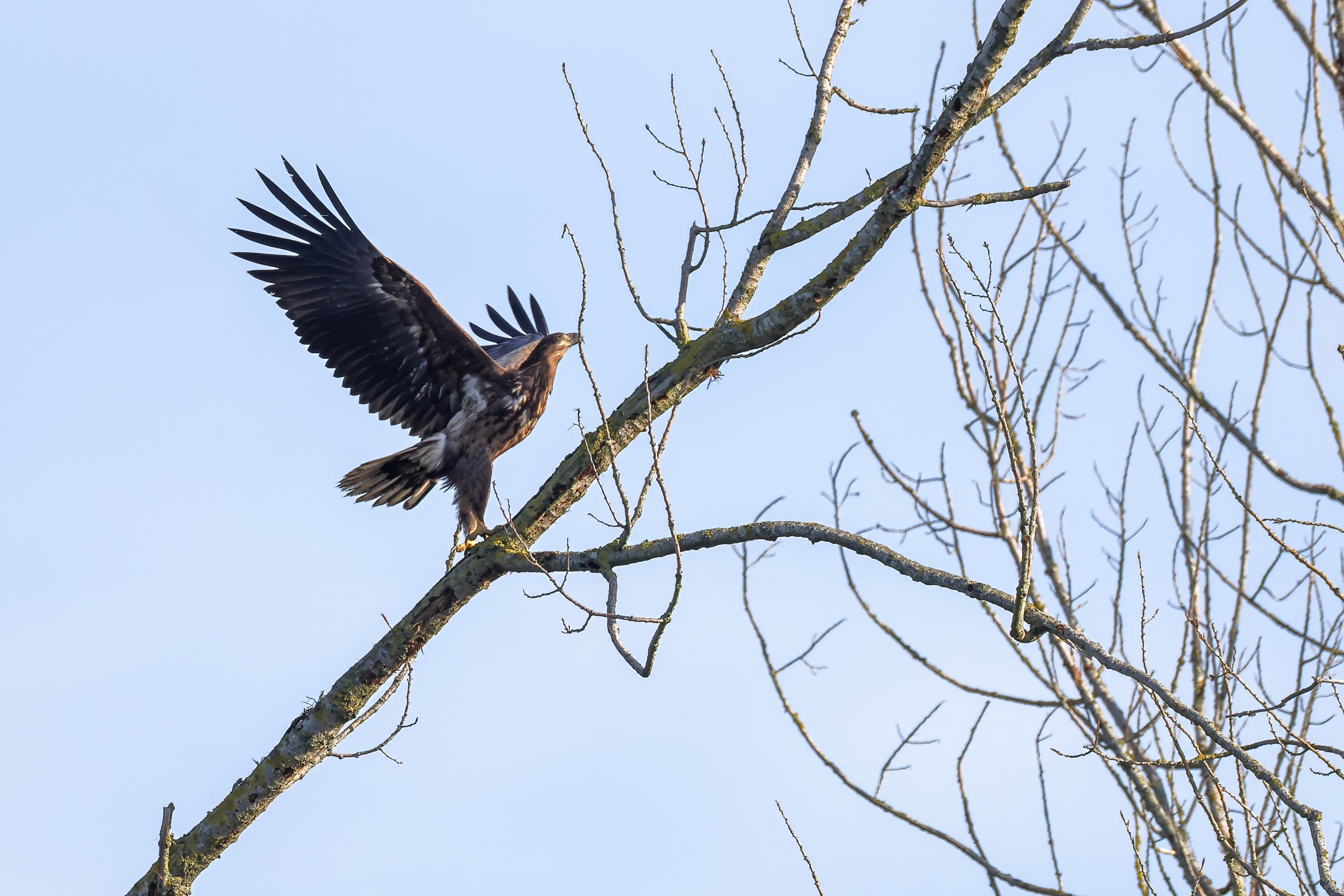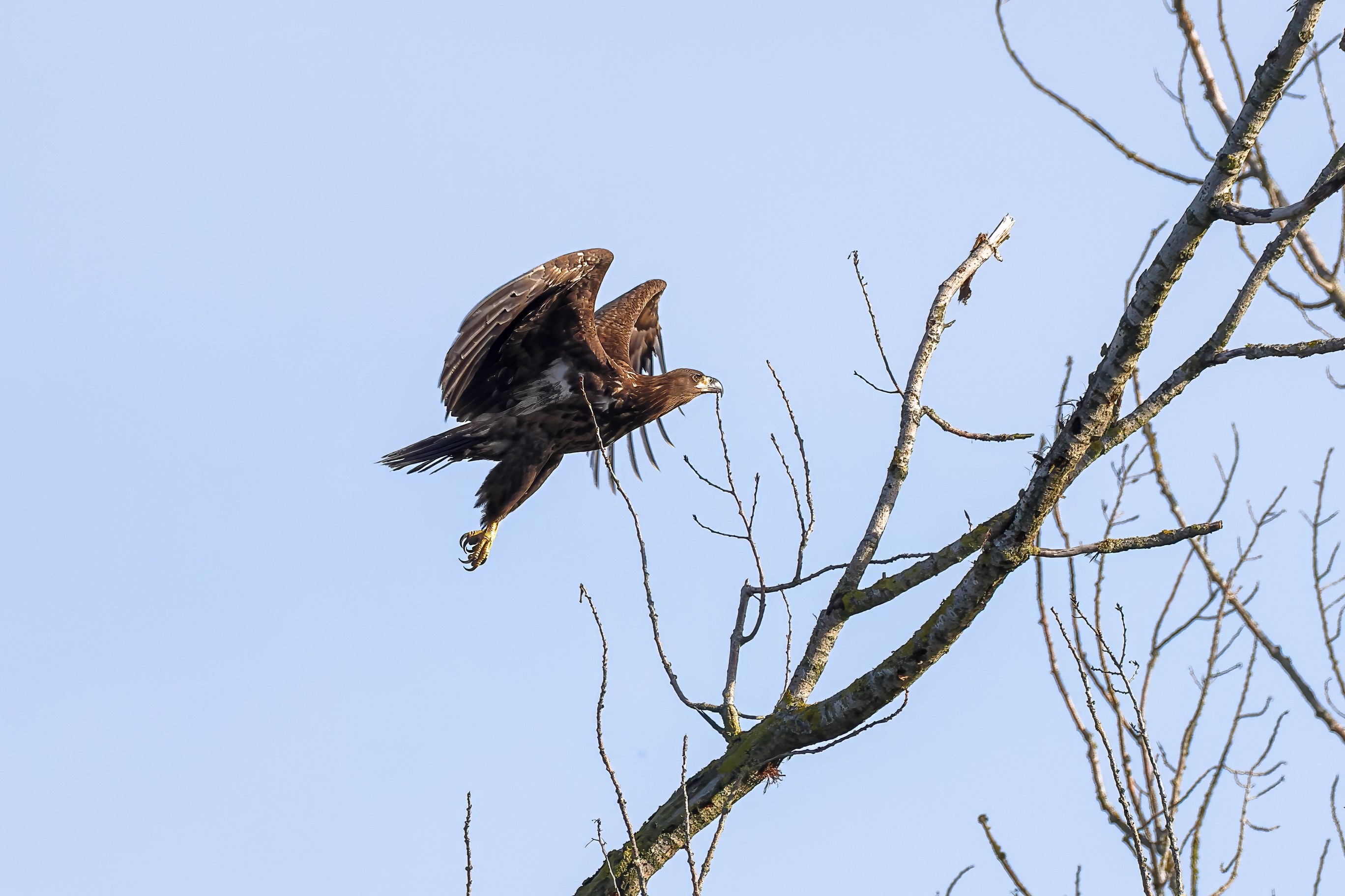 Nur selten lassen sich die jungen Seeadler in ihrem angestammten Revier blicken. Nachdem die elterliche Fürsorge beendet ist, beginnt für sie eine neue Lebensphase: die große Reise, die mehrere Jahre dauern wird, bis sie zu adulten Seeadlern herangereift sind. Dieser natürliche Prozess gehört zum Lebenszyklus aller Jungseeadler.