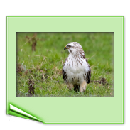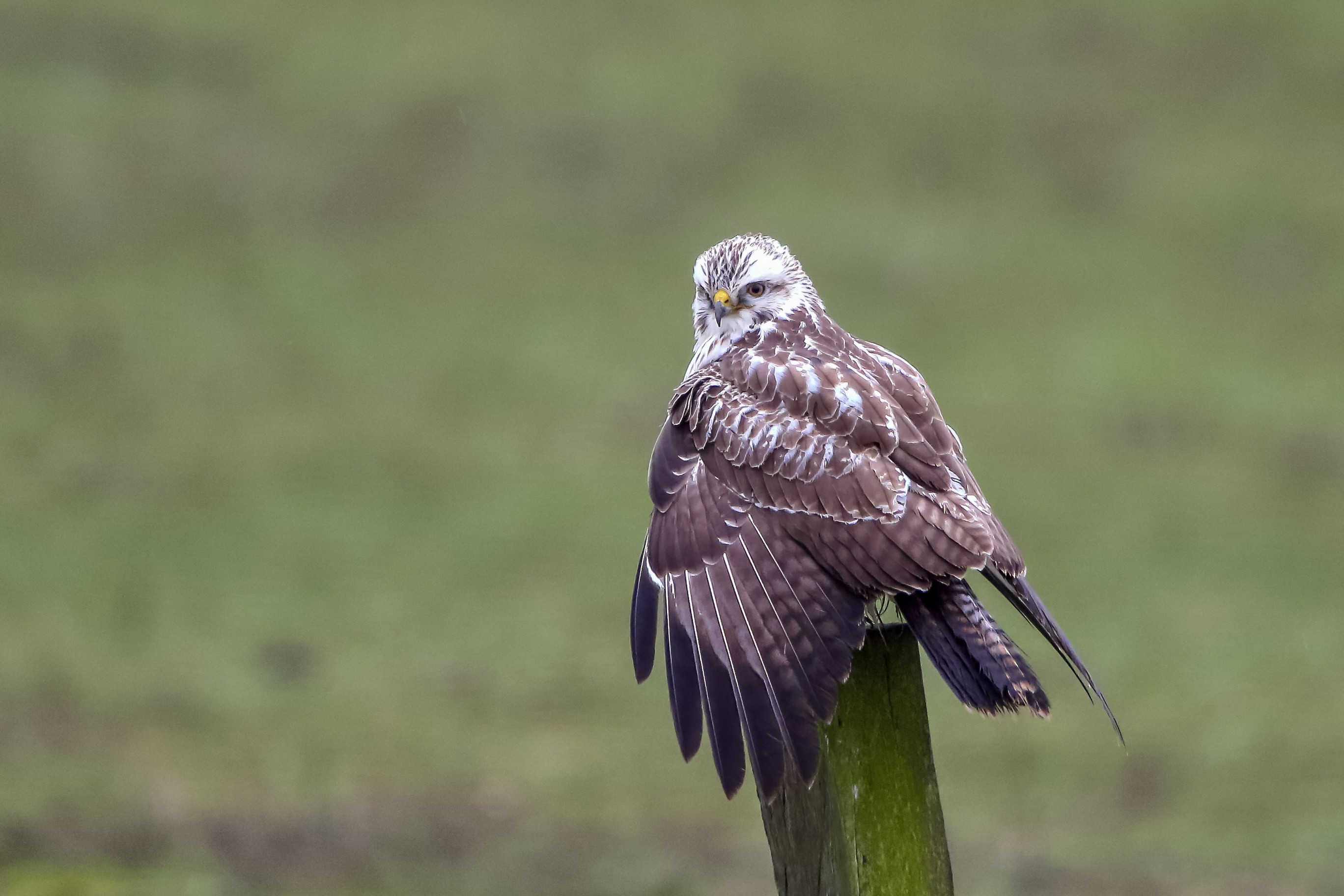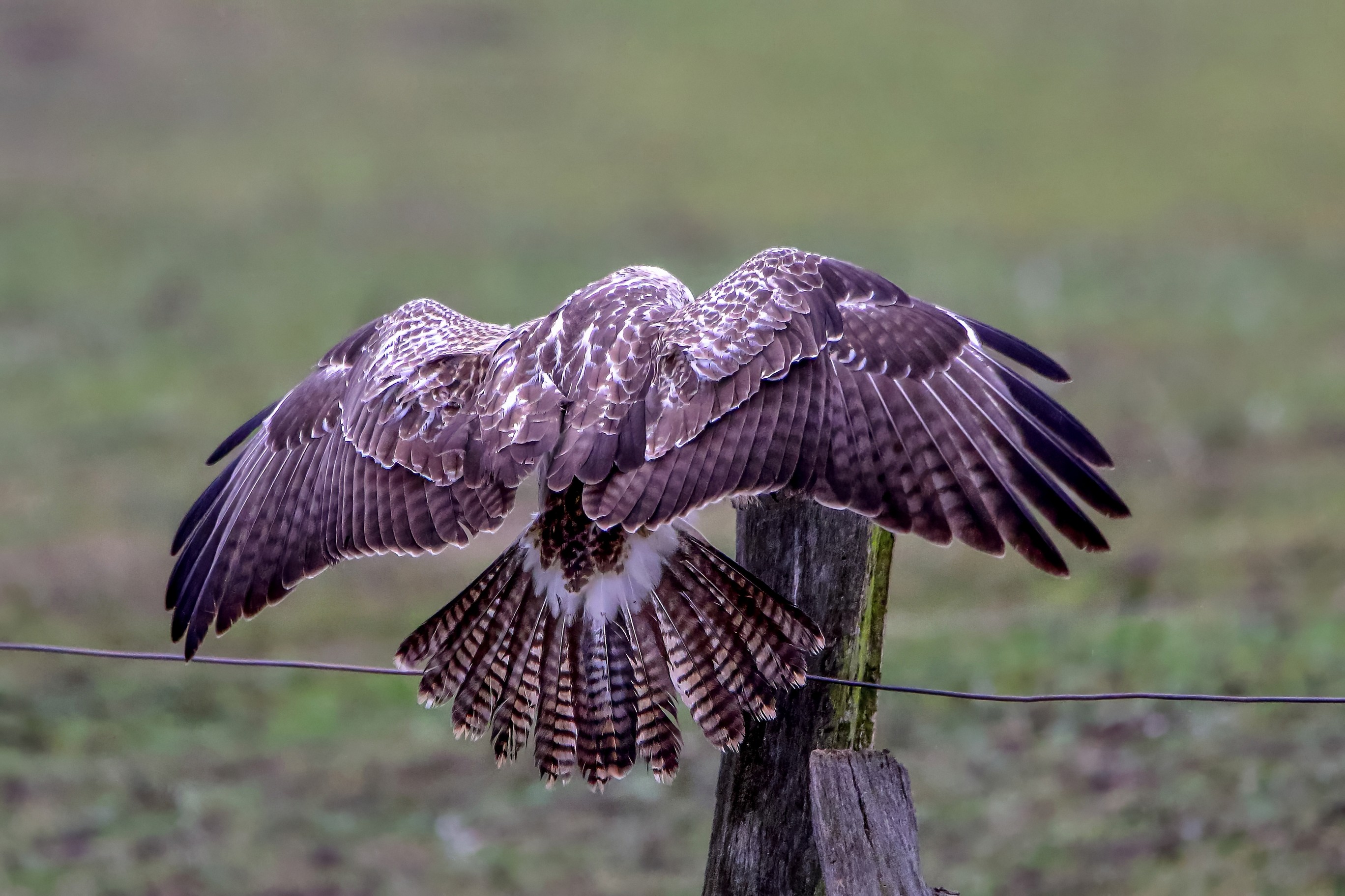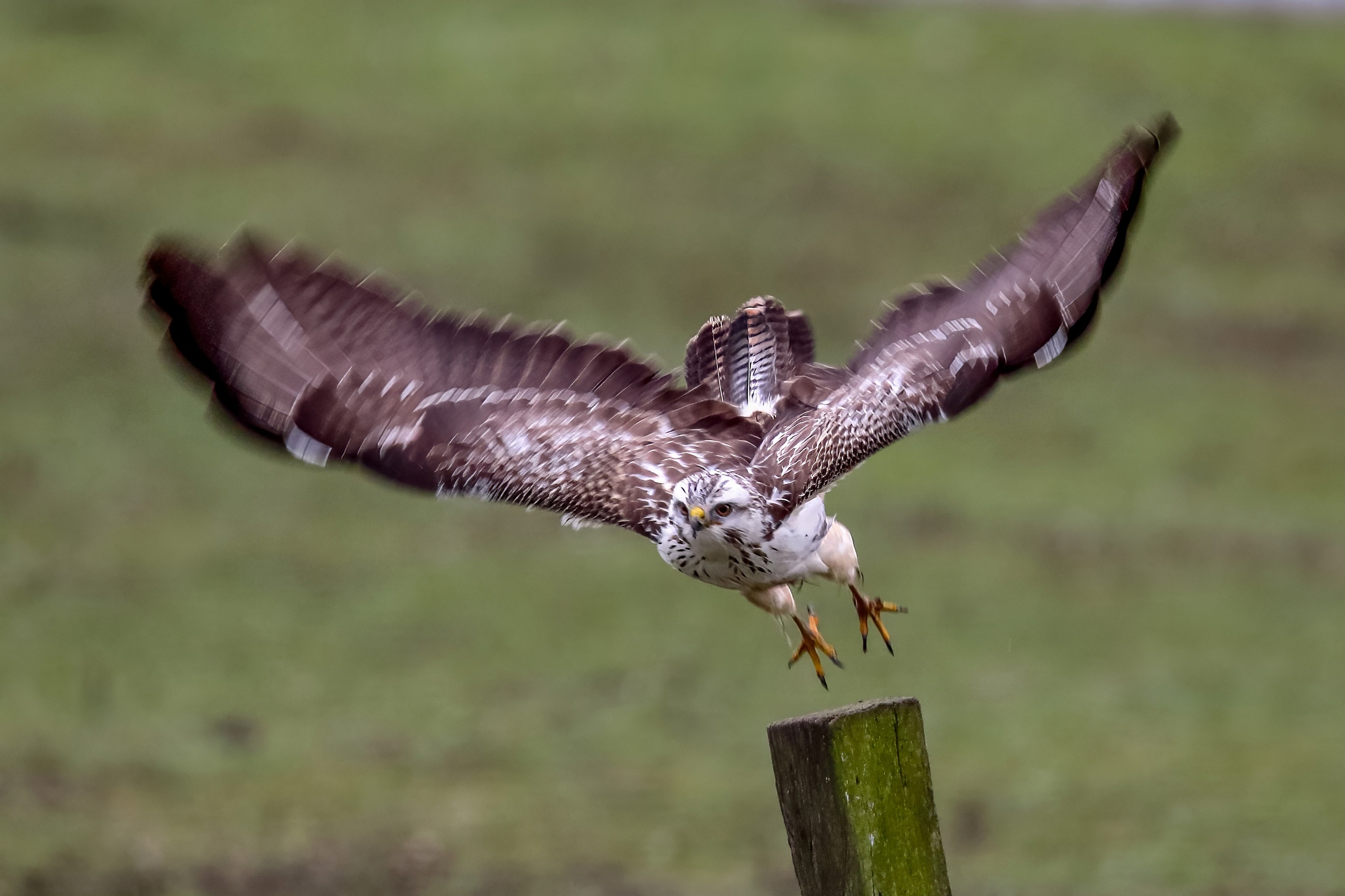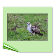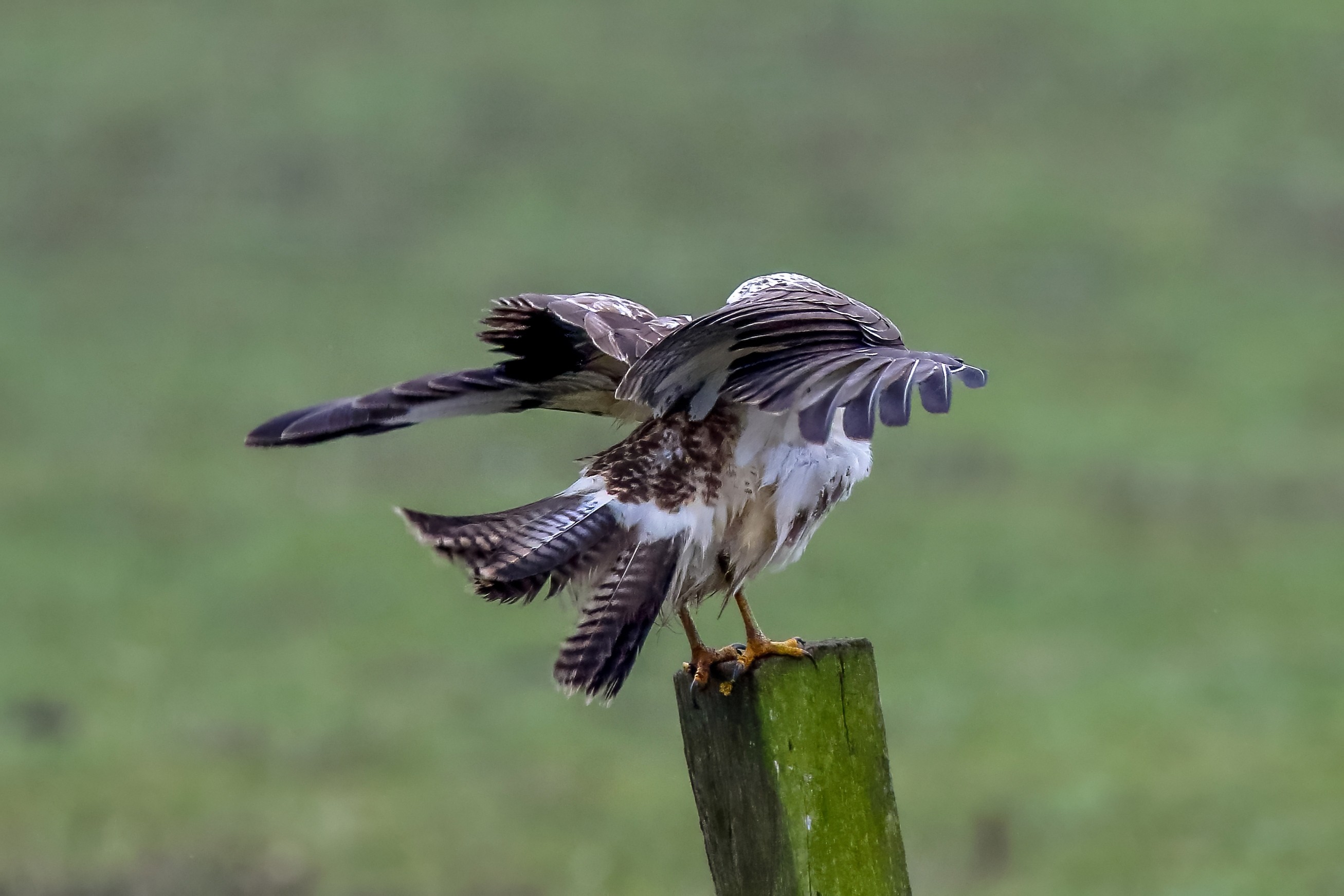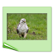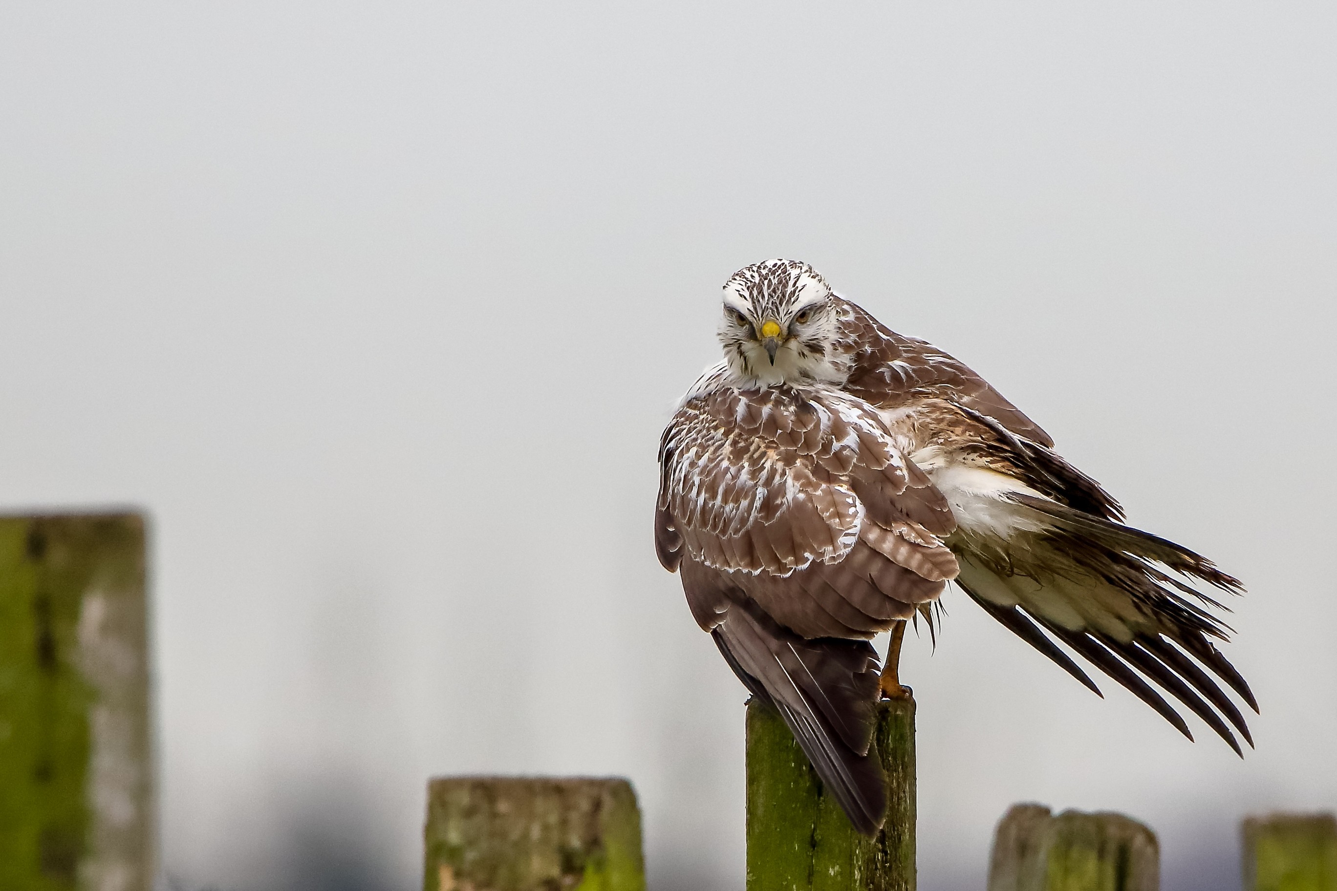 Bussarde haben sehr unterschiedliche Federkleider. Eine seltene und auffällige Farbgebung des Federkleides, wie auf diesen Aufnahmen zu sehen, nennt man helle Farbmorphe. Stets Abstand vom Fotografen einnehmend präsentiert er sich meist mit in größerer Entfernung.