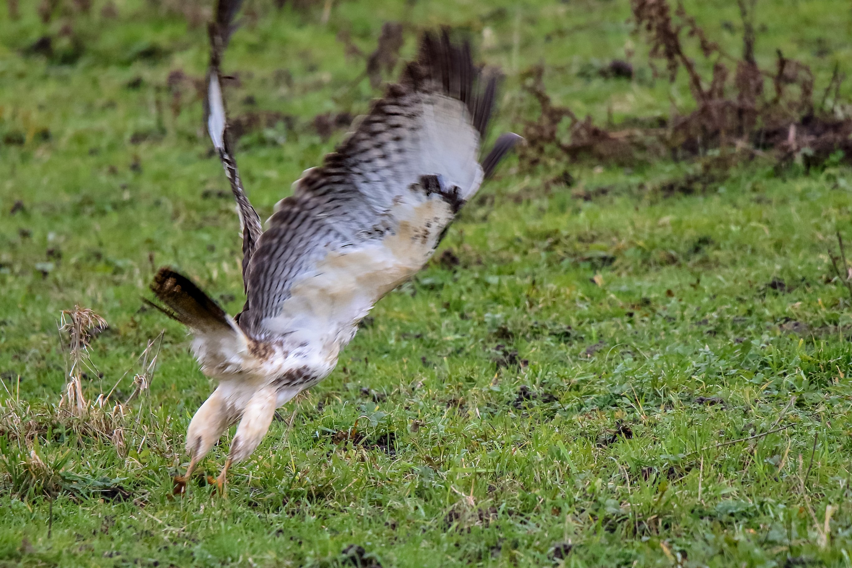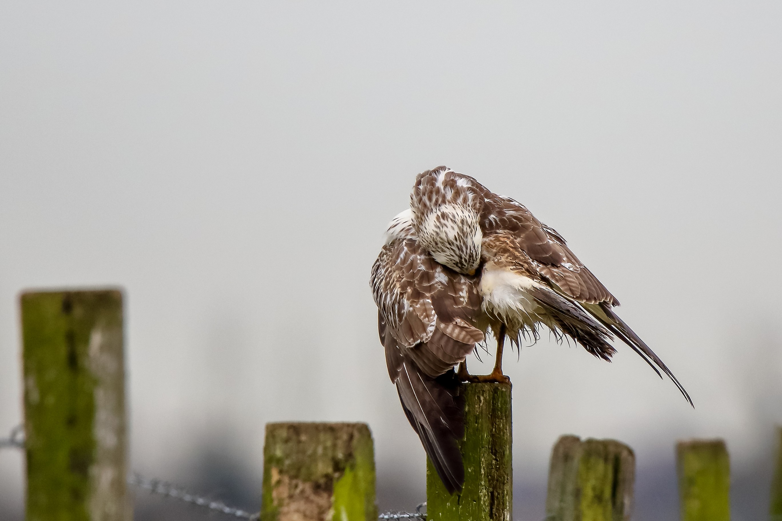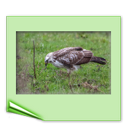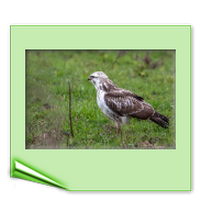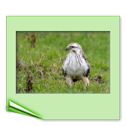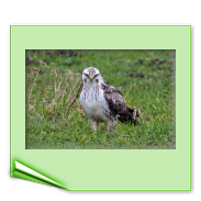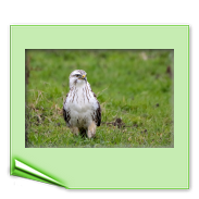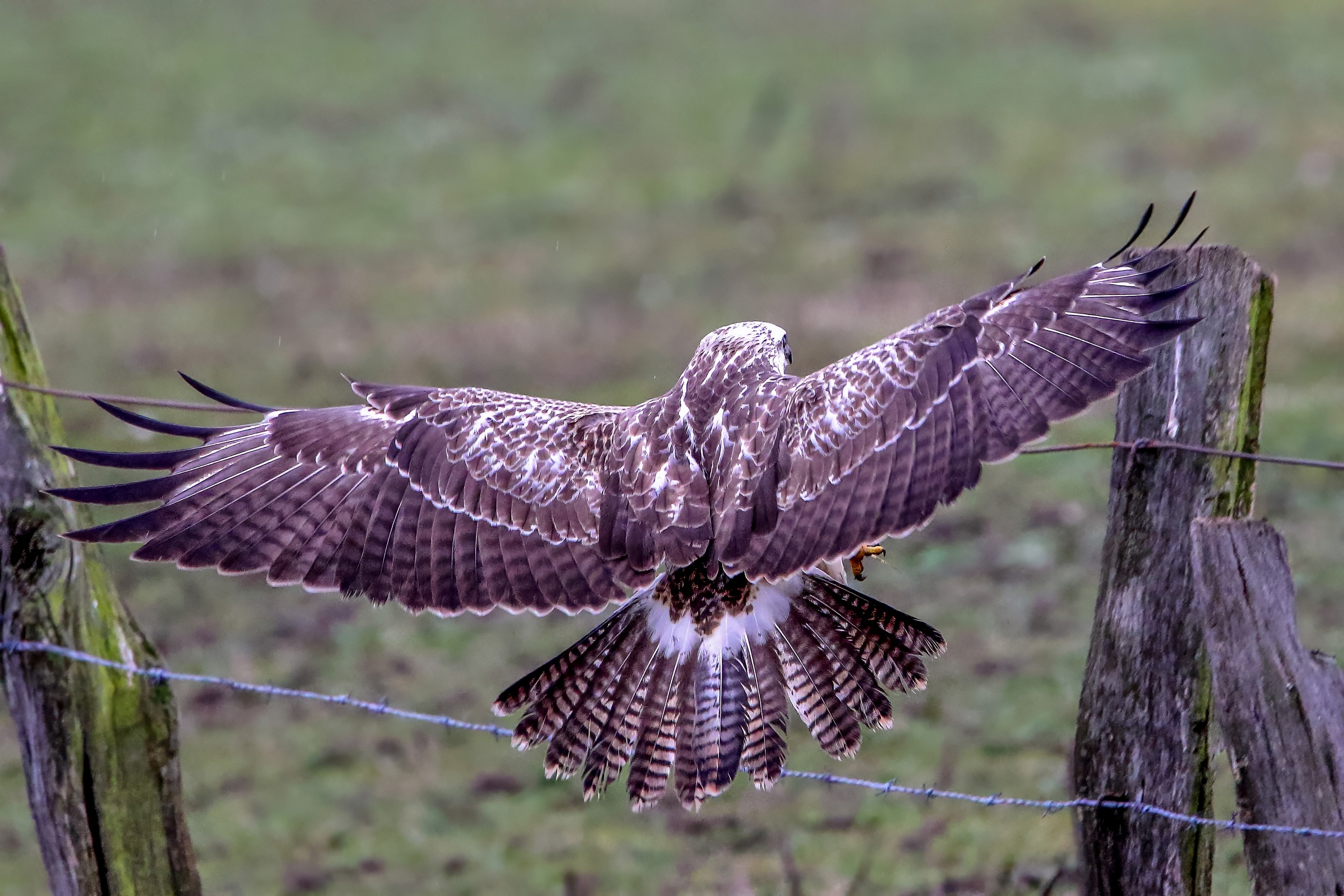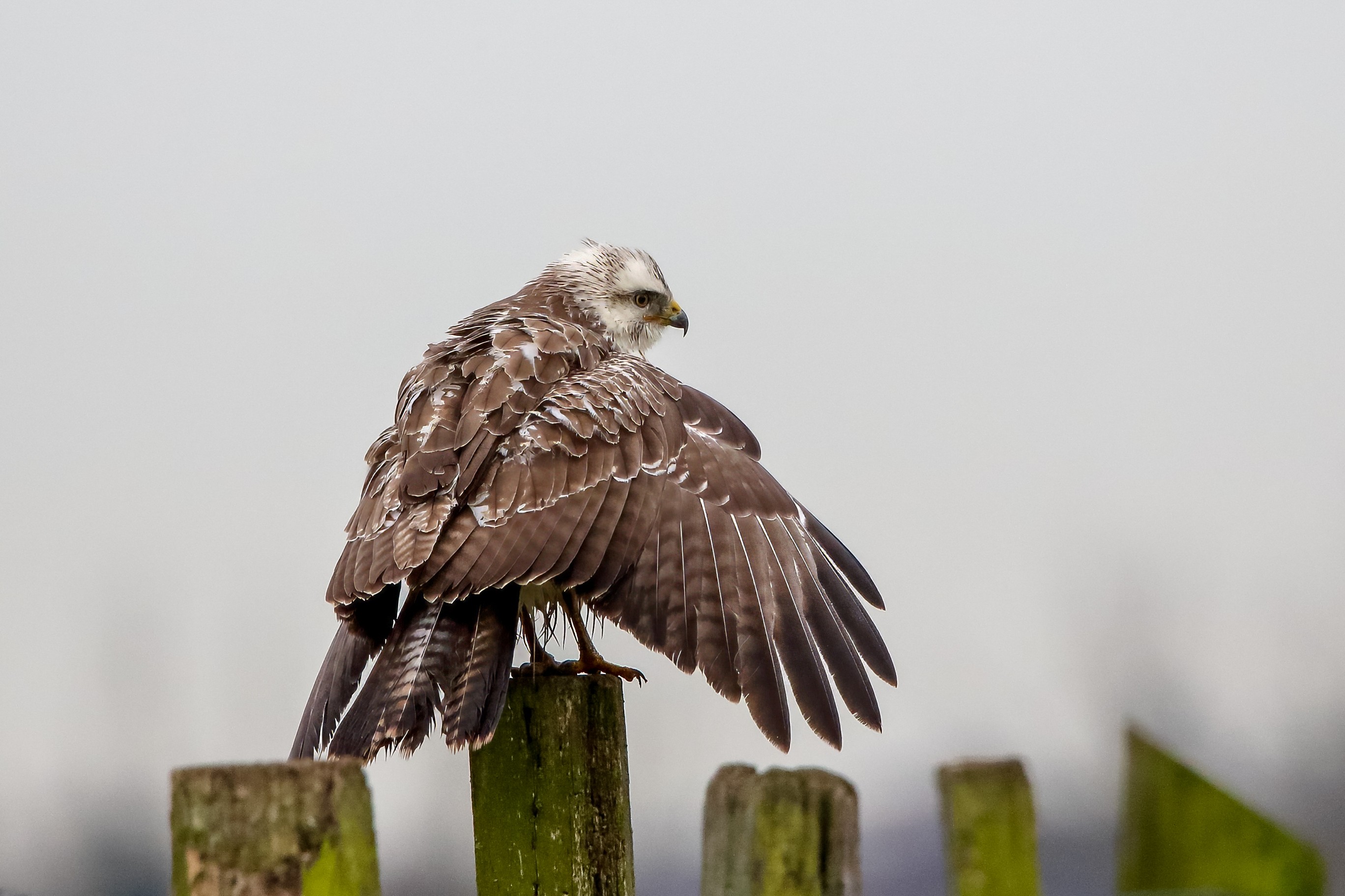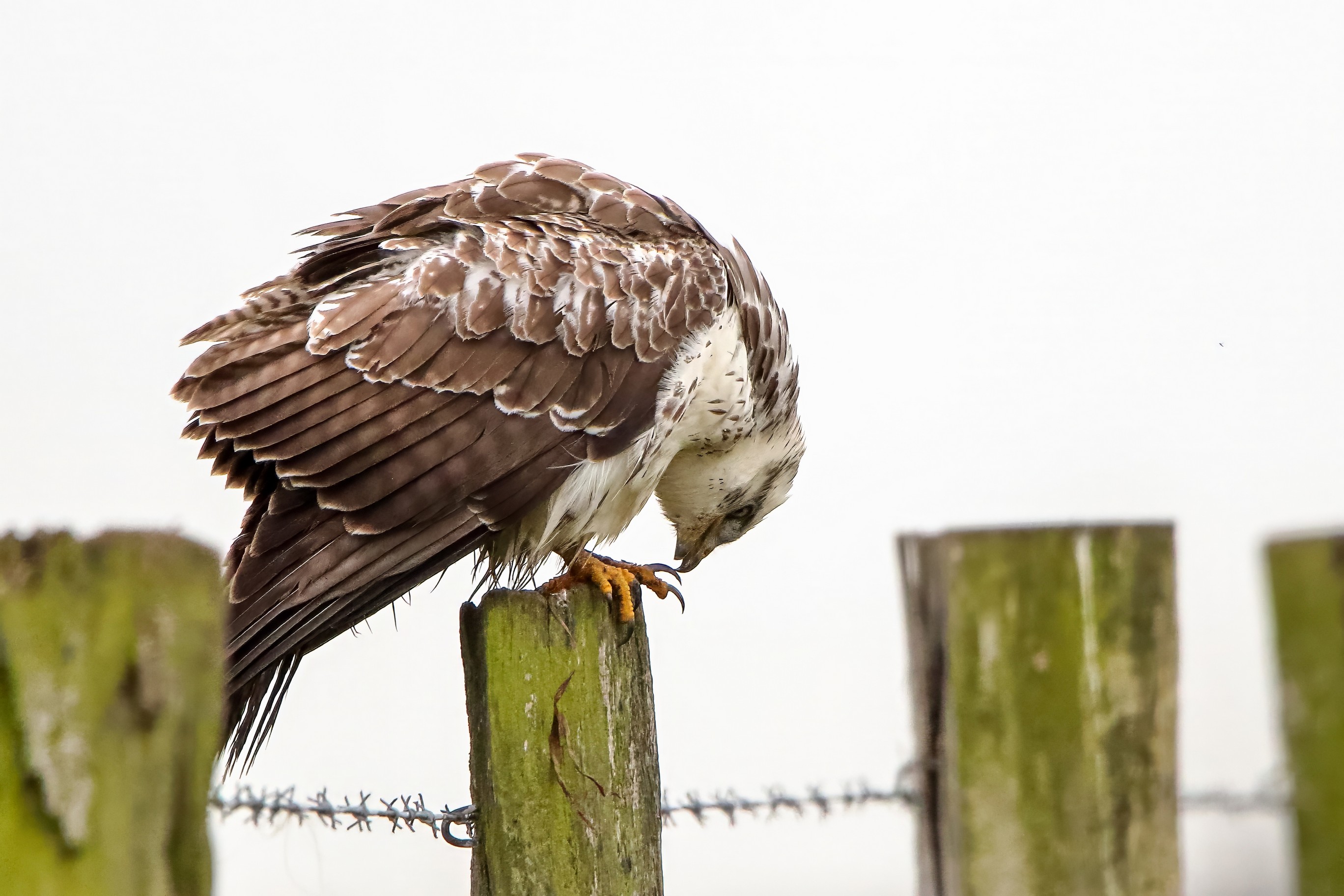 Bussarde haben sehr unterschiedliche Federkleider. Eine seltene und auffällige Farbgebung des Federkleides, wie auf diesen Aufnahmen zu sehen, nennt man helle Farbmorphe. Stets Abstand vom Fotografen einnehmend präsentiert er sich meist mit in größerer Entfernung.